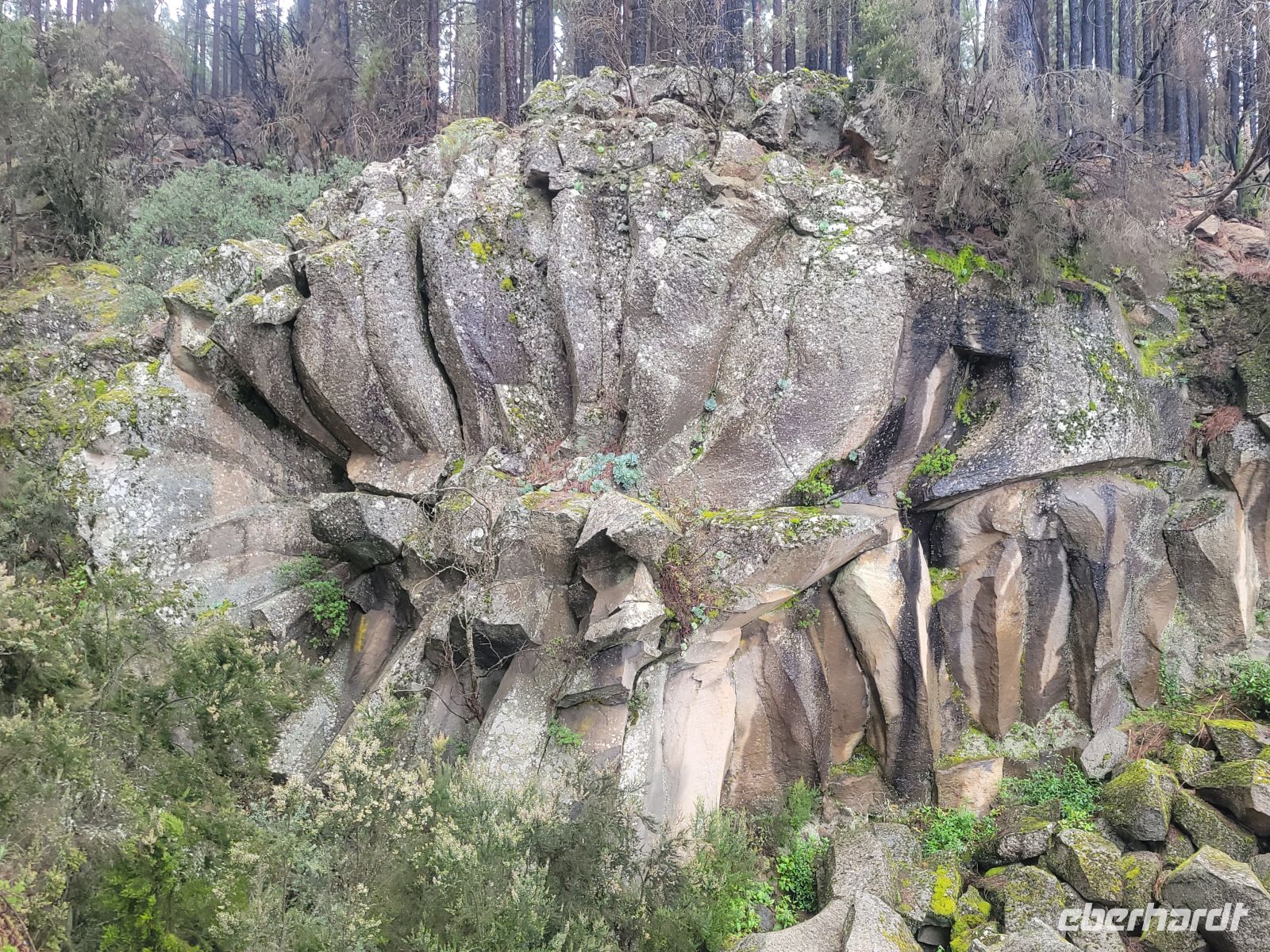 Nach einer Fahrt durch Lorbeerwald dient unser nächster Stopp auf einer Höhe von etwa 1020 Metern – hier ist es bereits merklich kühler – einem kurzen Besuch der Basalt Margarite (Margarita de la Piedra oder auch Margarita de la Rosa), einer eindrucksvollen Basaltformation, deren fünf bis sieben Meter hohe Säulen aus Basalt radial angeordnet sind und tatsächlich einer riesigen Blüte aus Stein gleichen.