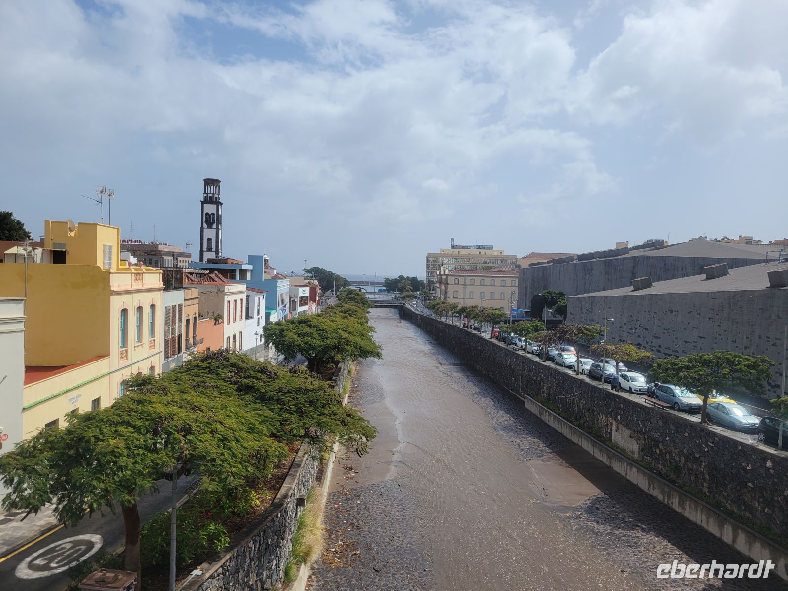 Hierzu lassen wir uns von Taxis zur Busstation in Puerto de la Cruz bringen. Von hier gibt es durchgehende Schnellbusse, die wir einfach mal ausprobieren. Nach einer knappen Stunde und einer Fahrt, auf der es „cats and dogs“ regnet, so dass die Scheibenwischer die Wassermengen kaum bewältigen, kommen wir in Santa Cruz an. Hier regnet es nicht und die Temperatur ist angenehm mild.