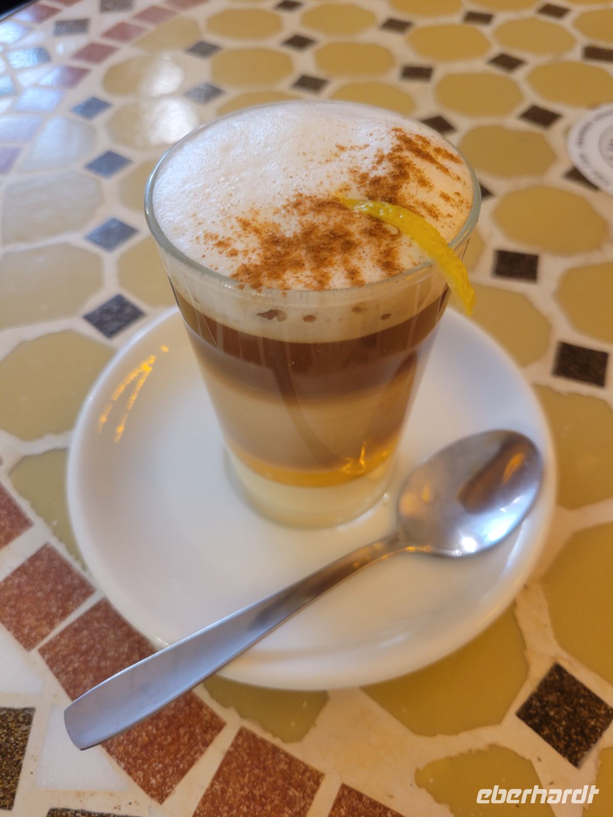 Die Mittagspause wird im Restaurant Mirador de Garachico eingelegt, -- nachdem sich der Nebel verzogen hat – sogar mit herrlichem Blick auf die Küste. Zur Abrundung gibt es einen Barraquito, eine typische kanarische Kaffeespezialität aus Espresso, Likör, gezuckerter Kondensmilch und geschäumter Milch – ebenso geschmackvoll wie dekorativ.