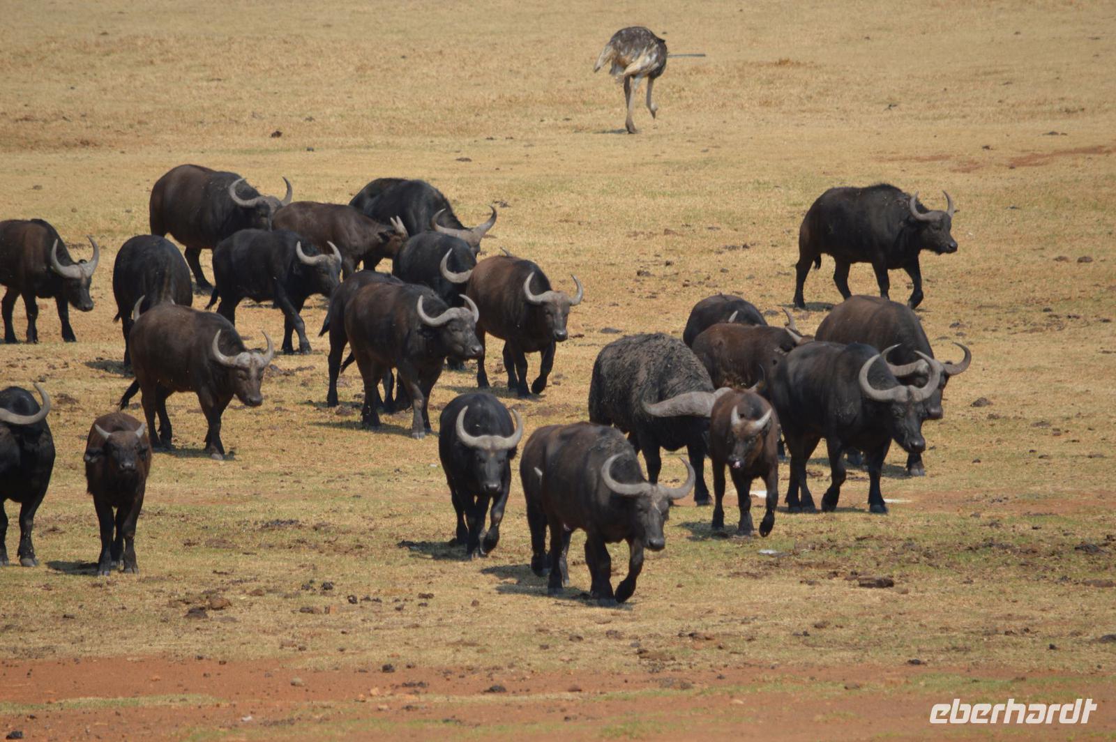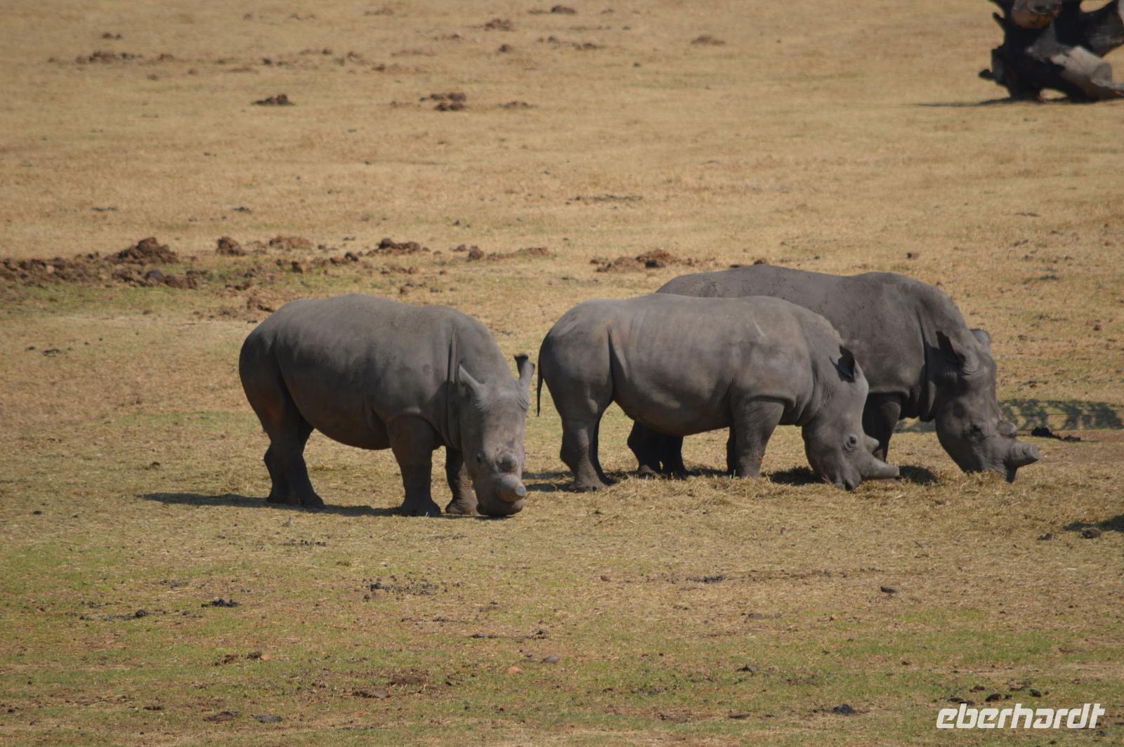 Nach dem Frühstück fahren wir Richtung Swaziland und erleben dabei auch rasch die Vielfalt des Hochlandes. Den Lunch haben wir an einer relativ neuen Raststätte an der Autobahn. Die Ratsstätte gehört zu einer Wildgame Farm, die auch Breitmaulnashörner, Büffel und diverse Antilopen hält und die sehen wir natürlich auch. Nach dem Lunch geht es weiter nach Swaziland. Der Grenzübertritt ist problemlos. Direkt hinter der Grenze befindet sich die Glasfabrik von Swaziland, die wir besuchen. Danach fahren wir weiter Richtung Hauptstadt und in unsere Lodge. In der Nacht regnet es etwas in der „Schweiz Südafrikas", wie Swaziland auch öfter zu Recht genannt wird.