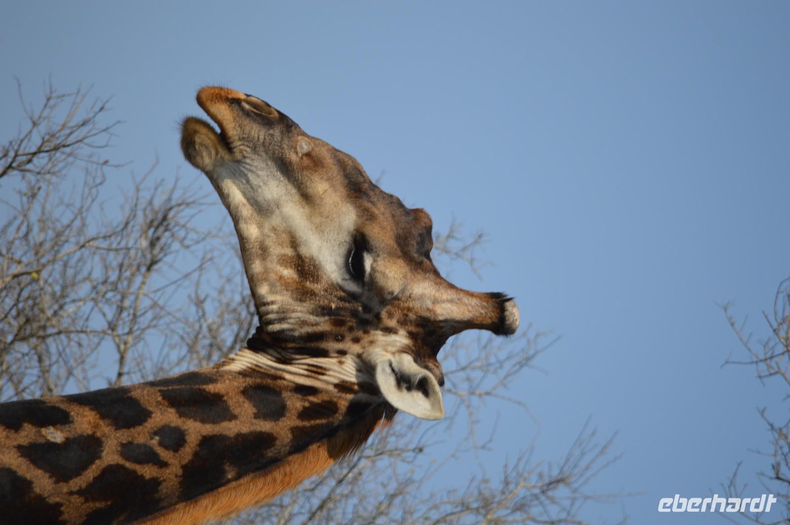 Während die zwei Mitreisenden früh zum Flug nach Windhoek gebracht werden, haben die anderen den Tag bis zur Abfahrt zum Flughafen an Nachmittag zur freien Verfügung. Die Lodge liegt in einem Game Park und man kann dort auch zu Fuß an Giraffen, Zebras und Antilopen heran, da dieser Park weder Löwen noch Leoparden hat. Am Nachmittag erfolgt der Transfer zum Flughafen von Johannesburg. Der Flug nach Europa geht pünktlich, der Anschlußflug in Frankfurt ebenso. Eine schöne Reise ist zu Ende.