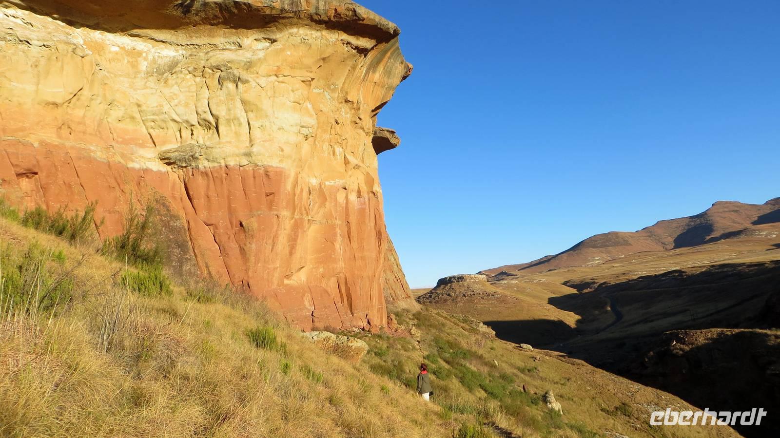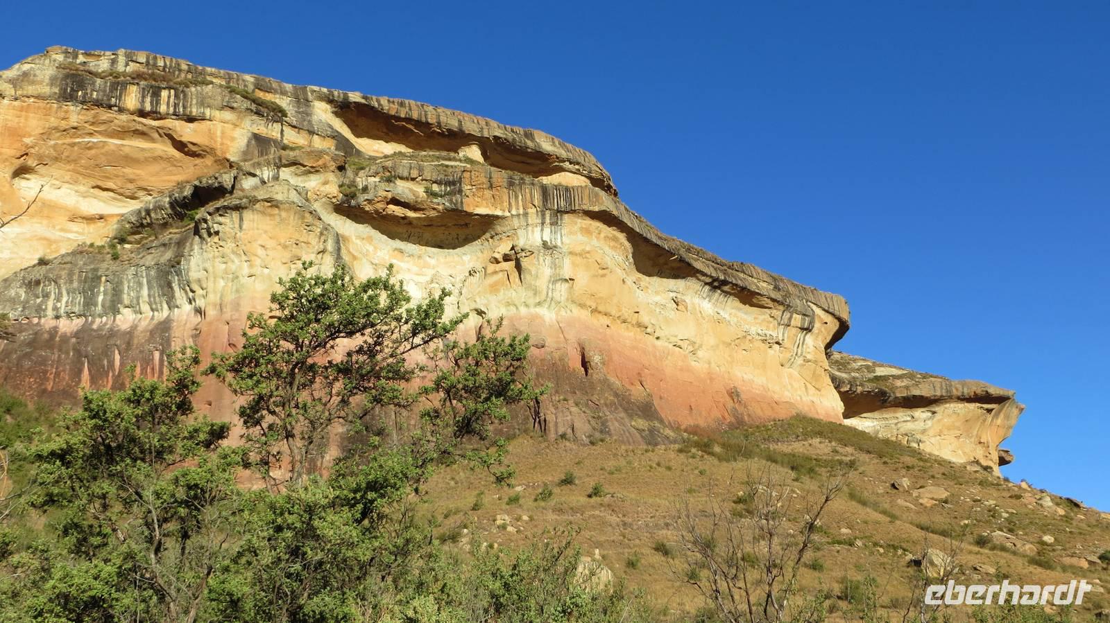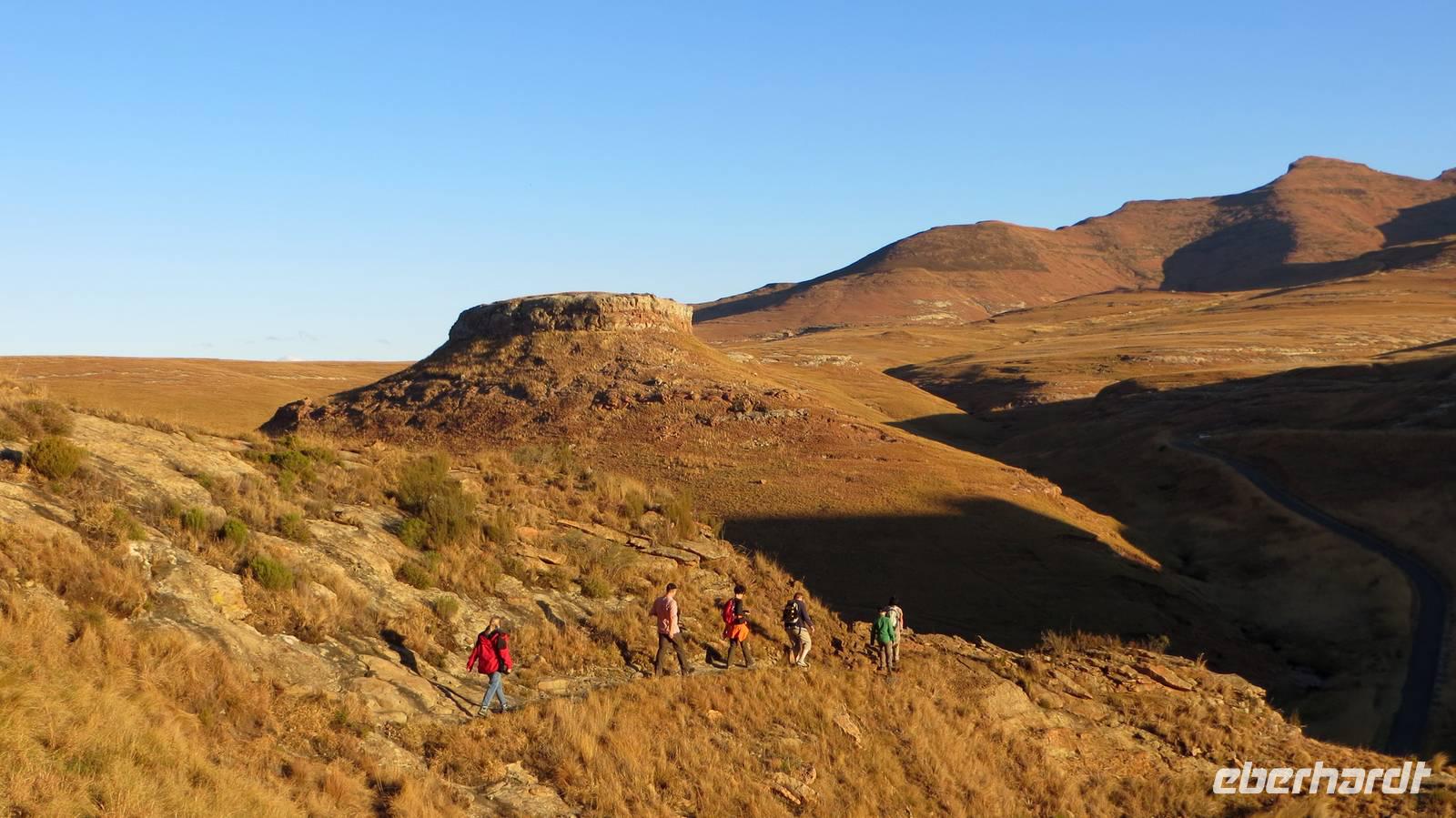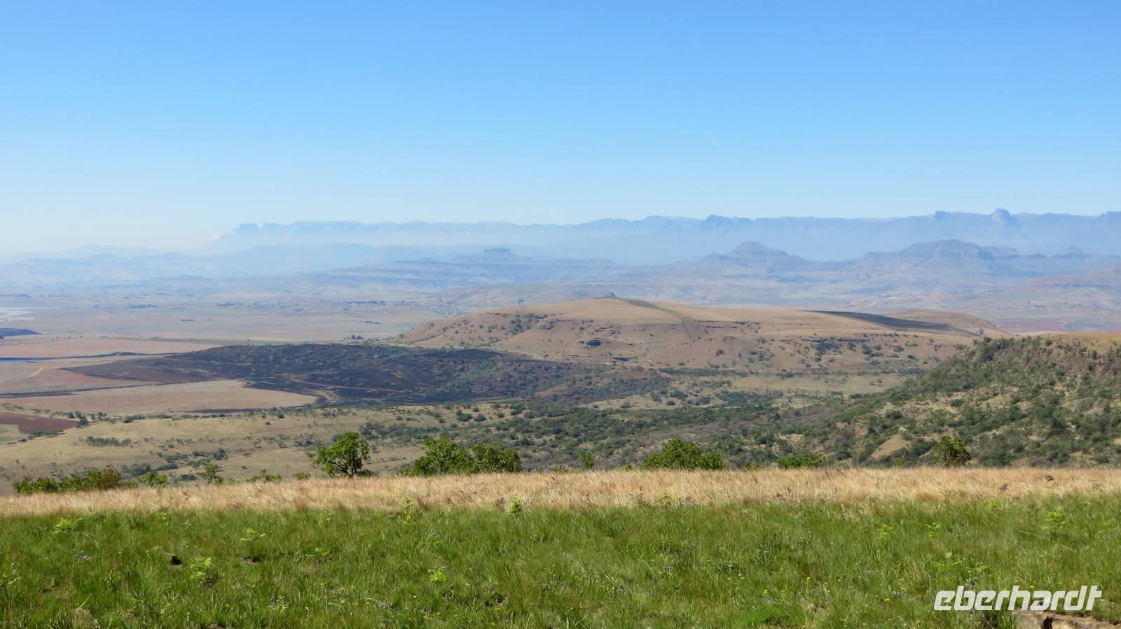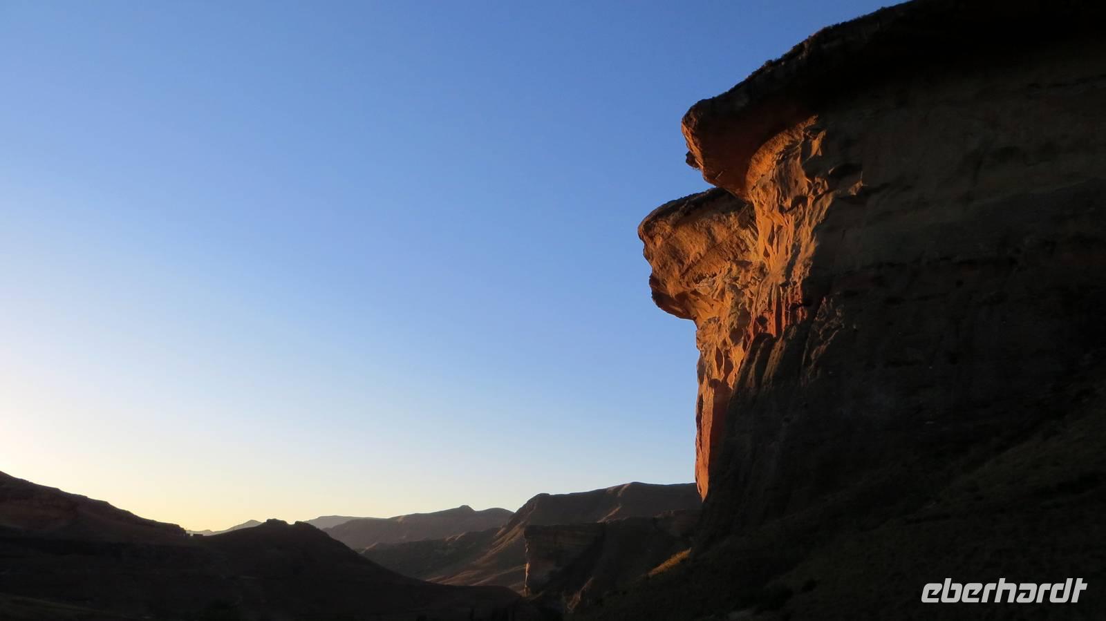 Wie eine uneinnehmbare Festung ragen die Felswand des Amphitheaters auf. Das Bergpanorama erinnert etwas an die Dolomiten. Am Abend erreichen wir unsere Lodge am Fuße von Giants Castle.