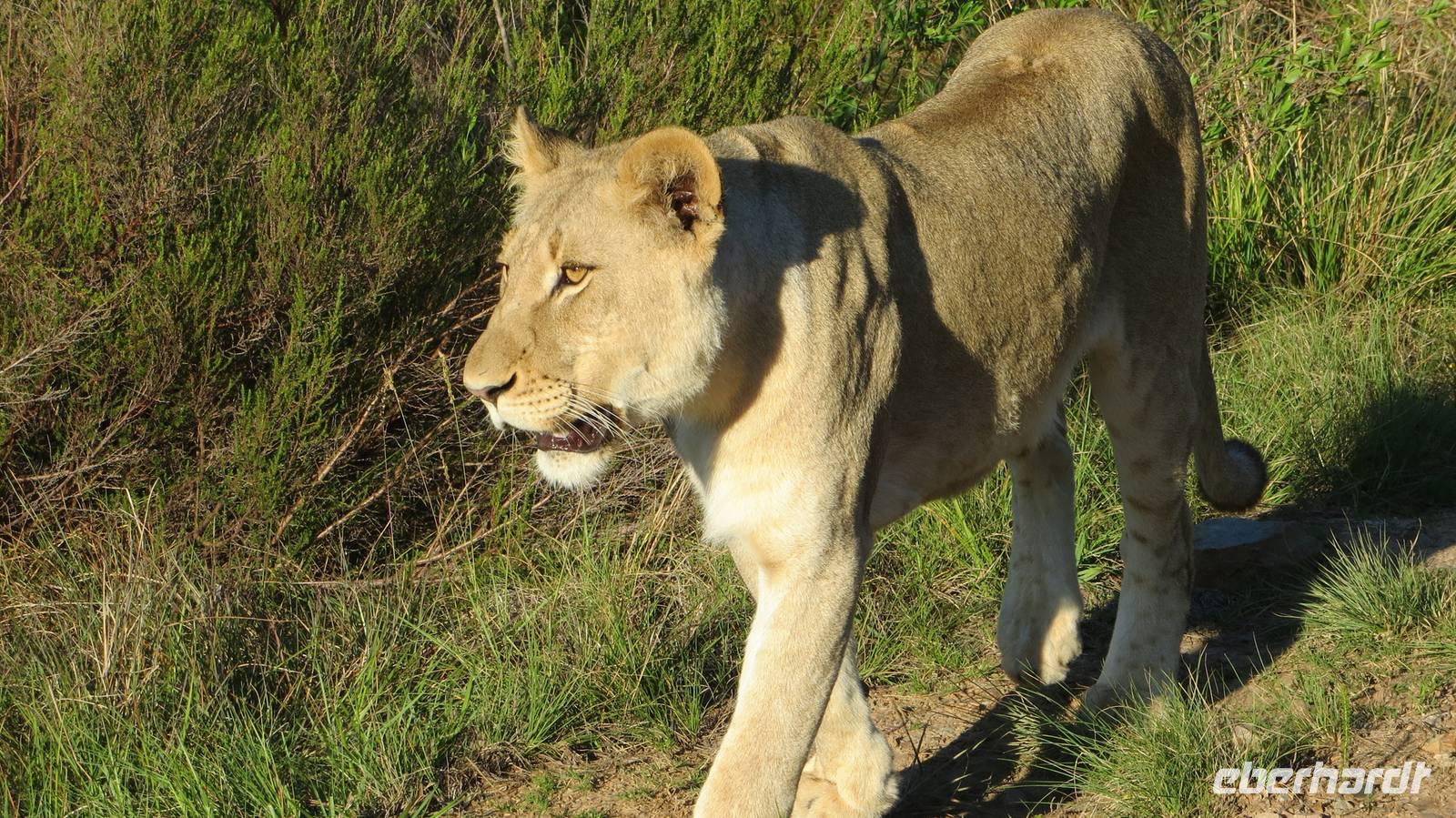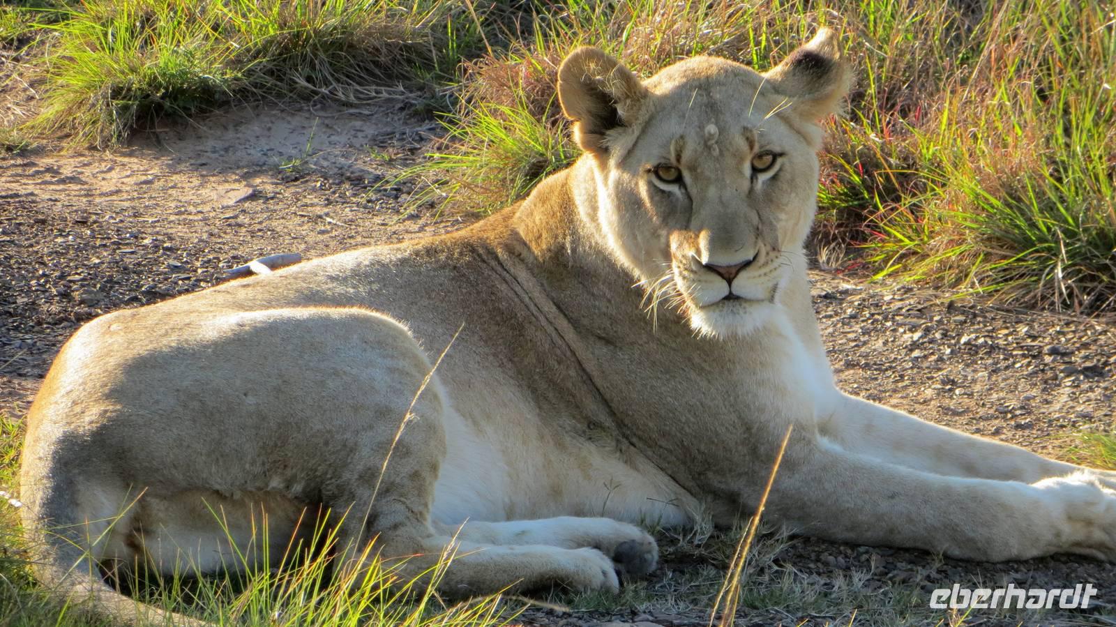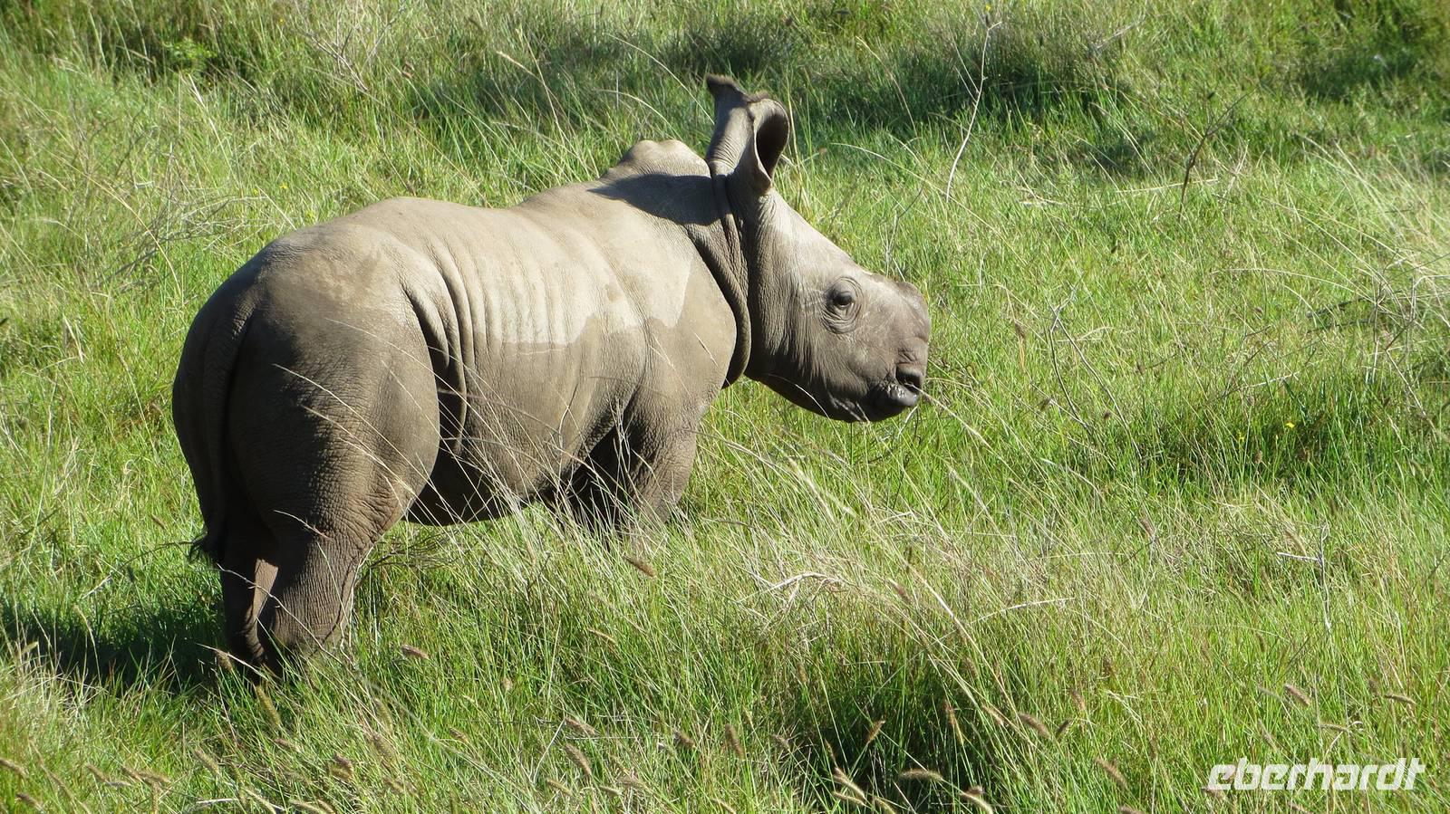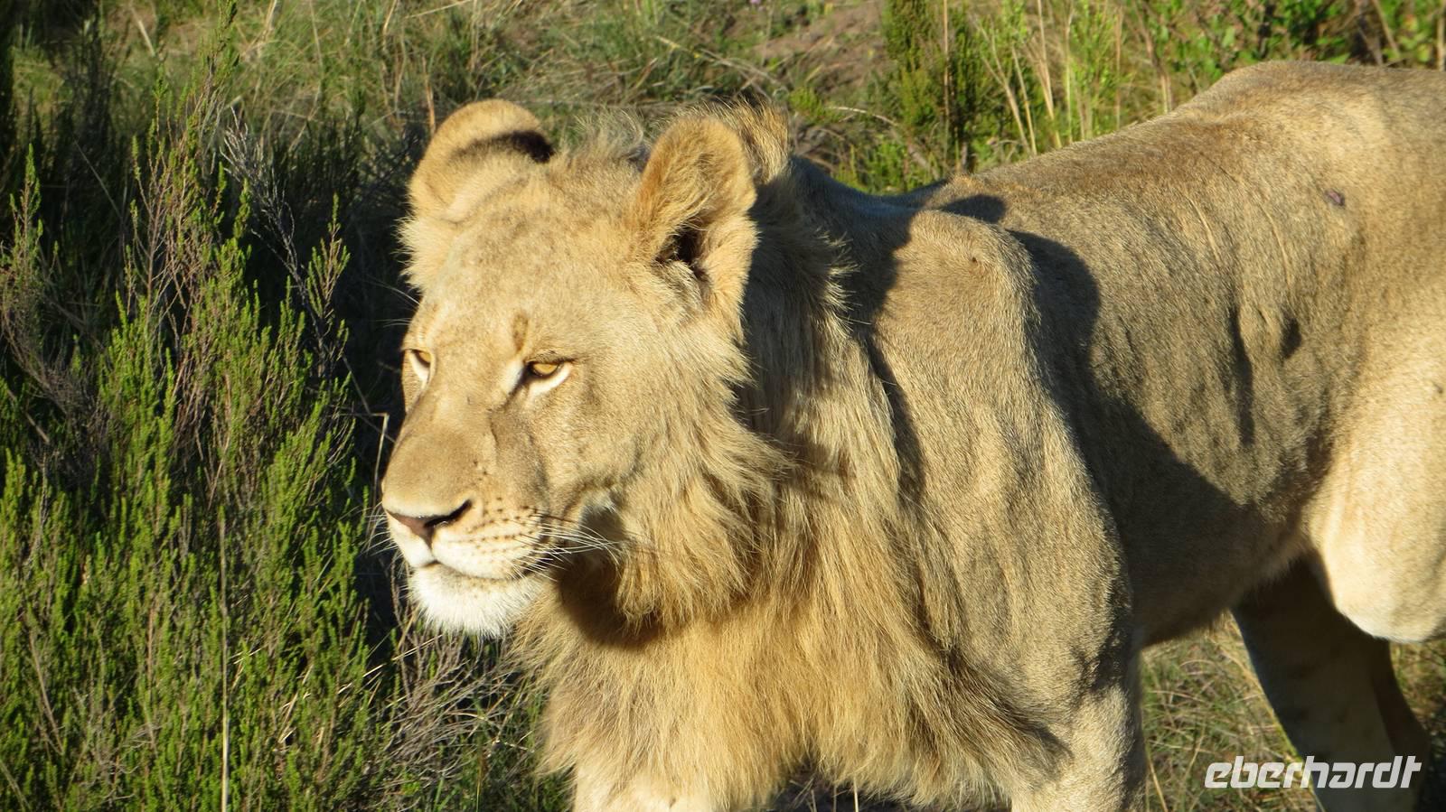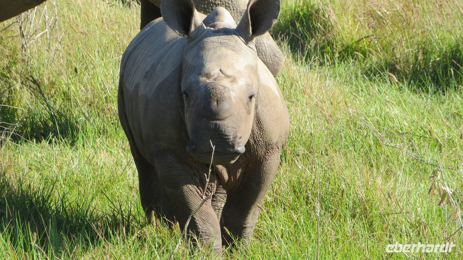 Schon früh am Morgen beginnen wir unsere Safari - heute geht es in das zweite Areal des Parks, wo es auch Löwen gibt! Augen auf... und siehe da, in der Ferne entdecken wir zwei Löwen! Wir fahren näher heran und können die beiden Geschwister beim Rumtollen beobachten. Die Großkatzen kommen ganz nah an den Jeep heran, so dass mir fast ein bisschen mulmig zumute wird. Es ist ein großartiges Erlebnis und wir sind voller Freude! Danach legen wir erstmal eine Kaffeepause ein und stärken uns mit leckeren Muffins. Das Glück ist auf unserer Seite, denn bald darauf sehen wir ein Breitmaulnashorn mit seinem Jungen... ein echtes Riesenbaby. Um die Nashörner vor Wilderern zu schützen, werden ihnen hier kontrolliert die Hörner abgesägt. Was zunächst grausam klingt, ist letztendlich nur zu deren Schutz. Das nächste Highlight lässt nicht lange auf sich warten und wir sehen zwei Elefanten, die aber so schnell verschwunden sind, wie sie aufgetaucht sind. Dafür erfreuen wir uns an den hübschen Impalas, ein paar Zebras und einer Leopardenschildkröte. Zum Abschluss der Pirsch zeigt sich noch ein Hippo in einem kleinen Teich nahe der Rezeption, so kann man sagen, dass wir eine ausgesprochen erfolgreiche Safari hatten! Vier der Big Five sind damit schon „im Kasten"! Nach dem Frühstück können wir die Annehmlichkeiten der wunderschönen Lodge genießen und einfach mal entspannen, bis es nach dem Mittagessen noch einmal auf die Pirsch geht.