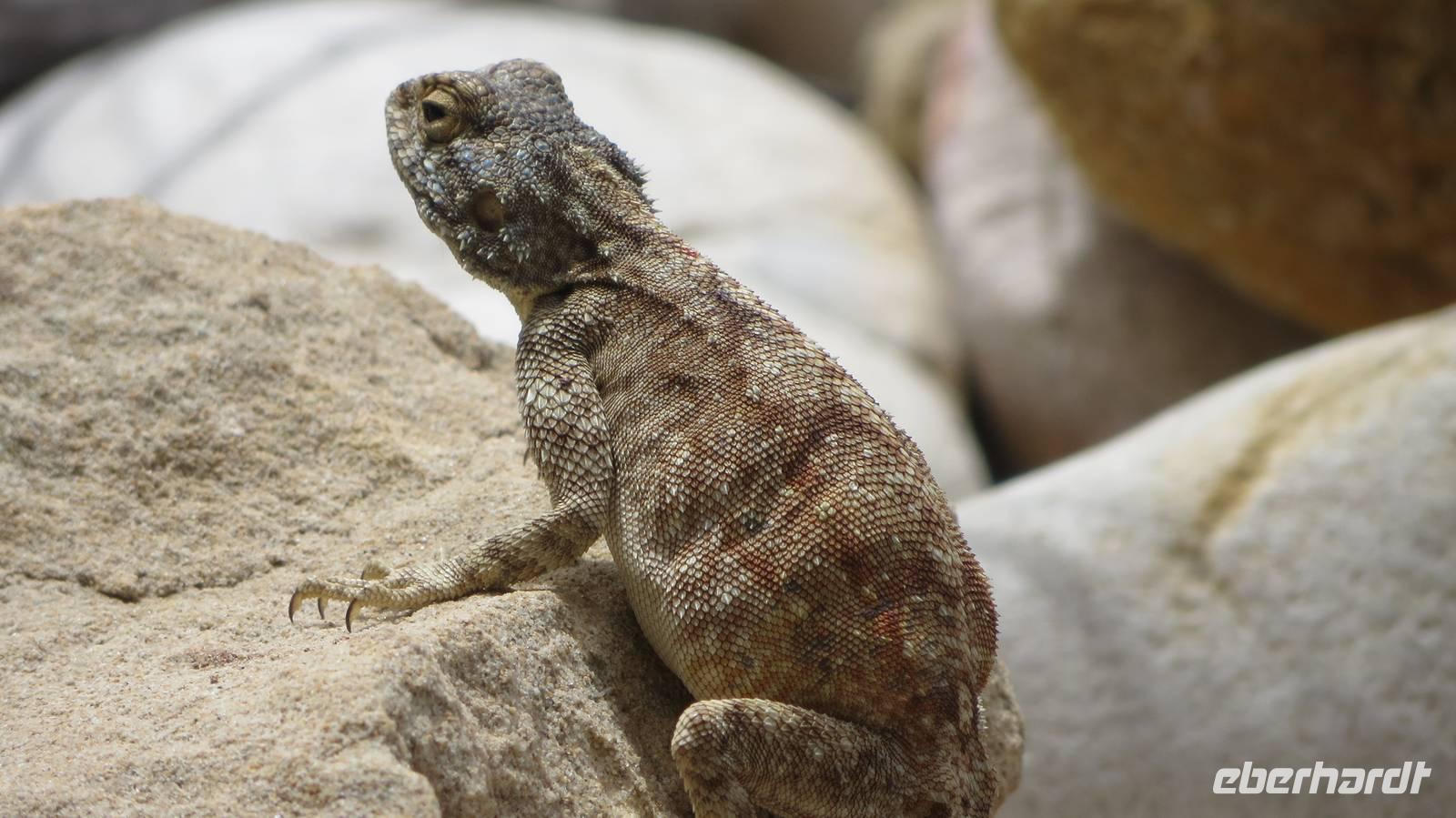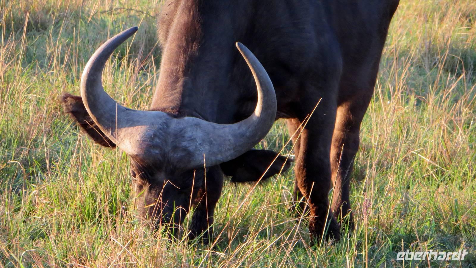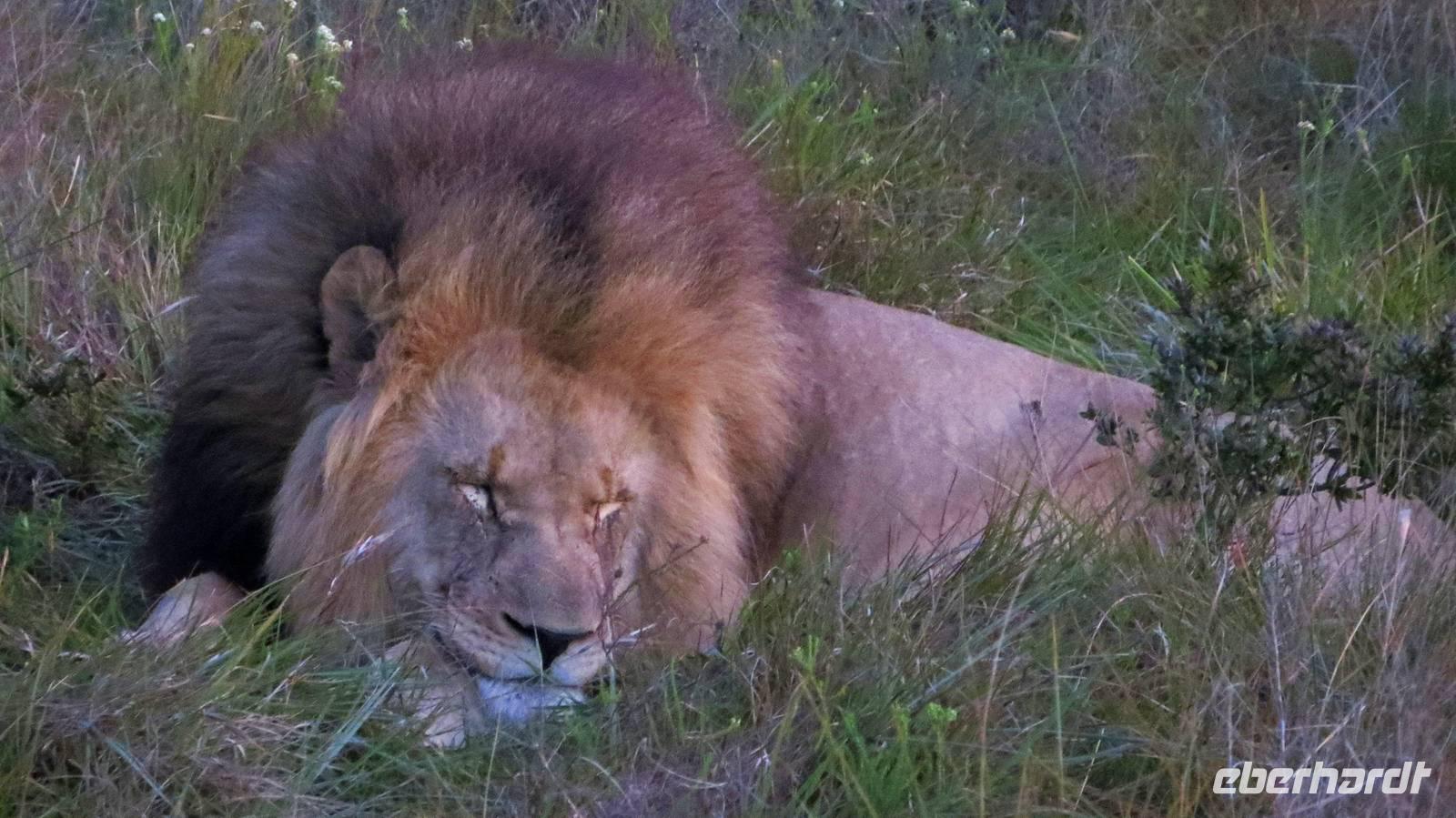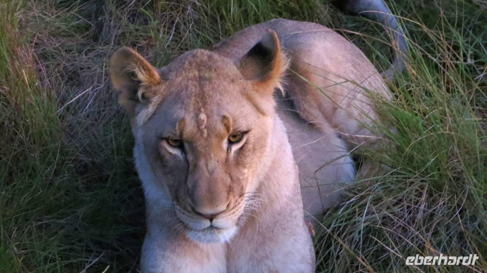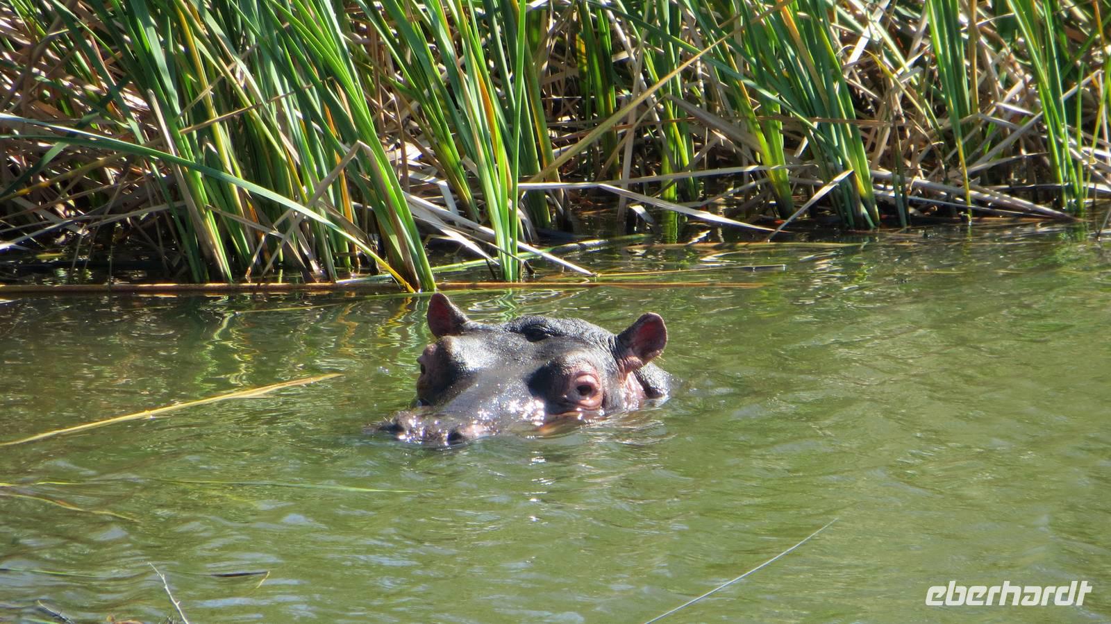 Schon früh am Morgen beginnen wir unsere Safari - heute geht es in das zweite Areal des Parks, wo es auch Löwen gibt! Augen auf... und siehe da, in der Ferne entdecken wir zwei Löwen! Wir fahren näher heran und können die beiden Geschwister beim Rumtollen beobachten. Die Großkatzen kommen ganz nah an den Jeep heran, so dass mir fast ein bisschen mulmig zumute wird. Es ist ein großartiges Erlebnis und wir sind voller Freude! Danach legen wir erstmal eine Kaffeepause ein und stärken uns mit leckeren Muffins. Das Glück ist auf unserer Seite, denn bald darauf sehen wir ein Breitmaulnashorn mit seinem Jungen... ein echtes Riesenbaby. Um die Nashörner vor Wilderern zu schützen, werden ihnen hier kontrolliert die Hörner abgesägt. Was zunächst grausam klingt, ist letztendlich nur zu deren Schutz. Das nächste Highlight lässt nicht lange auf sich warten und wir sehen zwei Elefanten, die aber so schnell verschwunden sind, wie sie aufgetaucht sind. Dafür erfreuen wir uns an den hübschen Impalas, ein paar Zebras und einer Leopardenschildkröte. Zum Abschluss der Pirsch zeigt sich noch ein Hippo in einem kleinen Teich nahe der Rezeption, so kann man sagen, dass wir eine ausgesprochen erfolgreiche Safari hatten! Vier der Big Five sind damit schon „im Kasten"! Nach dem Frühstück können wir die Annehmlichkeiten der wunderschönen Lodge genießen und einfach mal entspannen, bis es nach dem Mittagessen noch einmal auf die Pirsch geht.