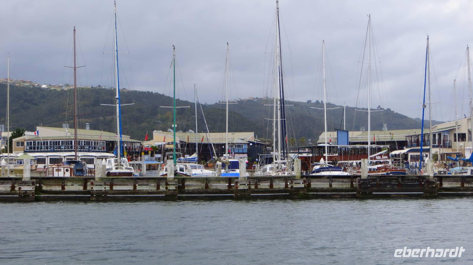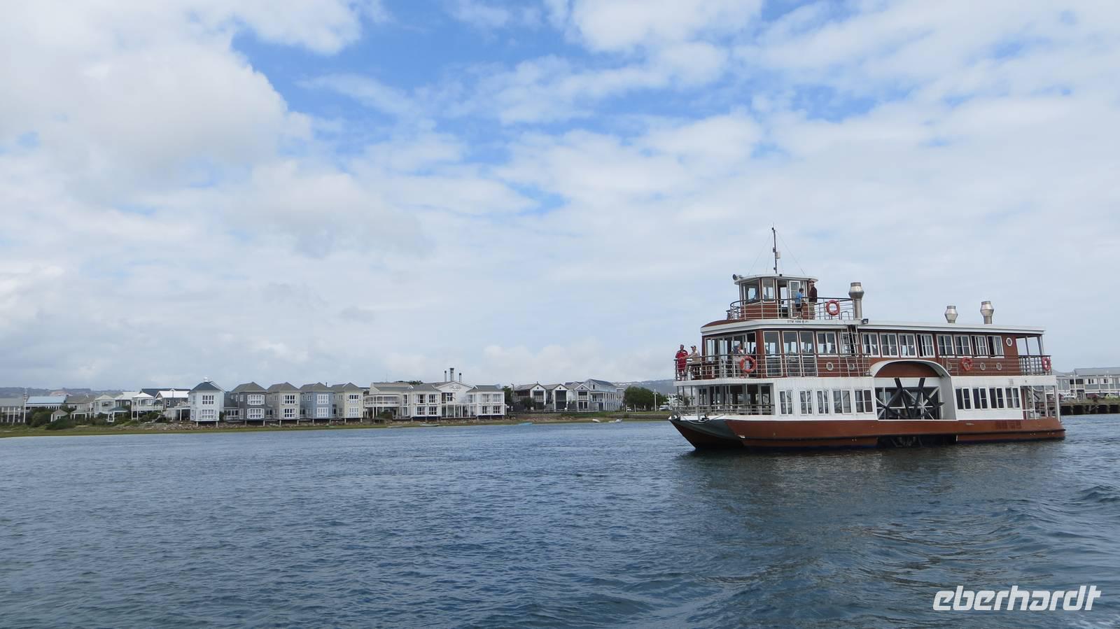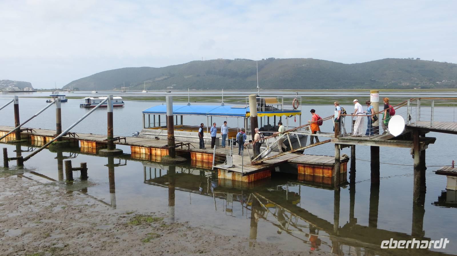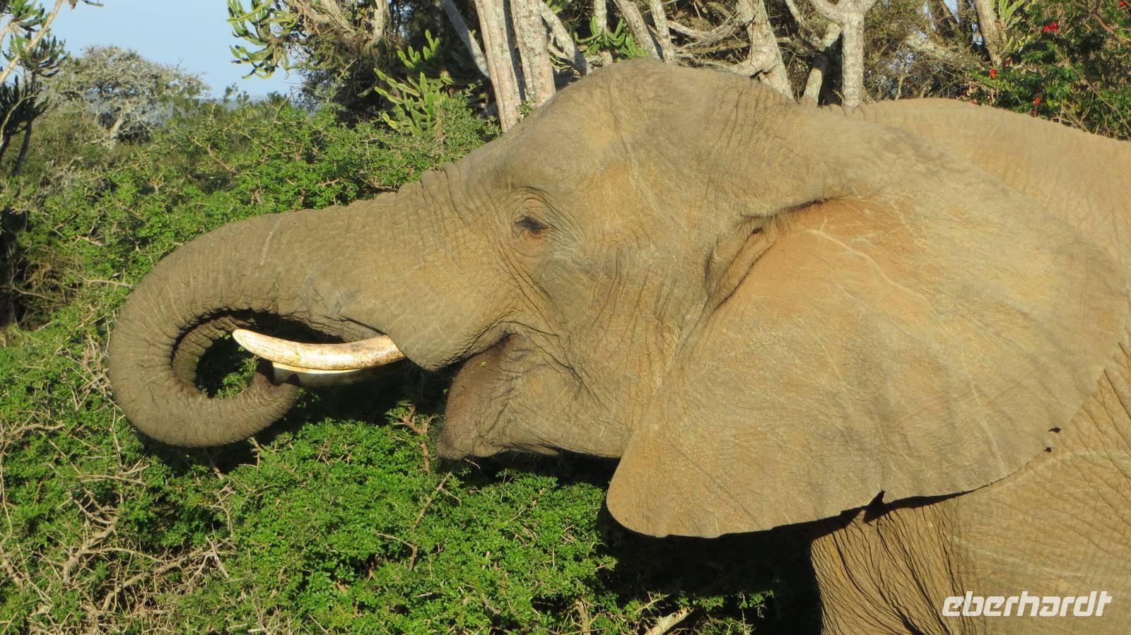 Nach einem guten Frühstück laufen wir zum Bootsanleger in Knysna, von hier legt am Vormittag das Schiff zum Featherbed Nature Reserve ab. Während der Überfahrt haben wir einen tollen Blick auf die Waterfront von Knysna, auf Leisure Island mit den schicken Villen und auf den östlichen und westlichen „Head". Am letzteren legen wir schließlich an und werden mit einem Truck auf den Gipfel gefahren. Hier bietet sich uns ein fantastischer Ausblick auf die wilde Küste und das Meer. Ich finde es immer wieder beeindruckend, wenn man nicht ausmachen kann, wo das Meer endet und der Himmel anfängt. Auf unserer Wanderung bergab bestaunen wir die abwechslungsreiche Flora und die herrlichen Ausblicke auf die Küste. Danach haben wir uns ein schmackhaftes Mittagessen verdient. Nach der Rückkehr zum „Festland" fahren wir zum Knysna Elephant Park. Hier kommen wir den sanften Dickhäutern ganz nah. Wir können sie füttern und anfassen und tolle Fotos machen. Den Abend lassen wir bei typisch afrikanischer Küche im "JJ's Restaurant" an der Waterfront ausklingen.