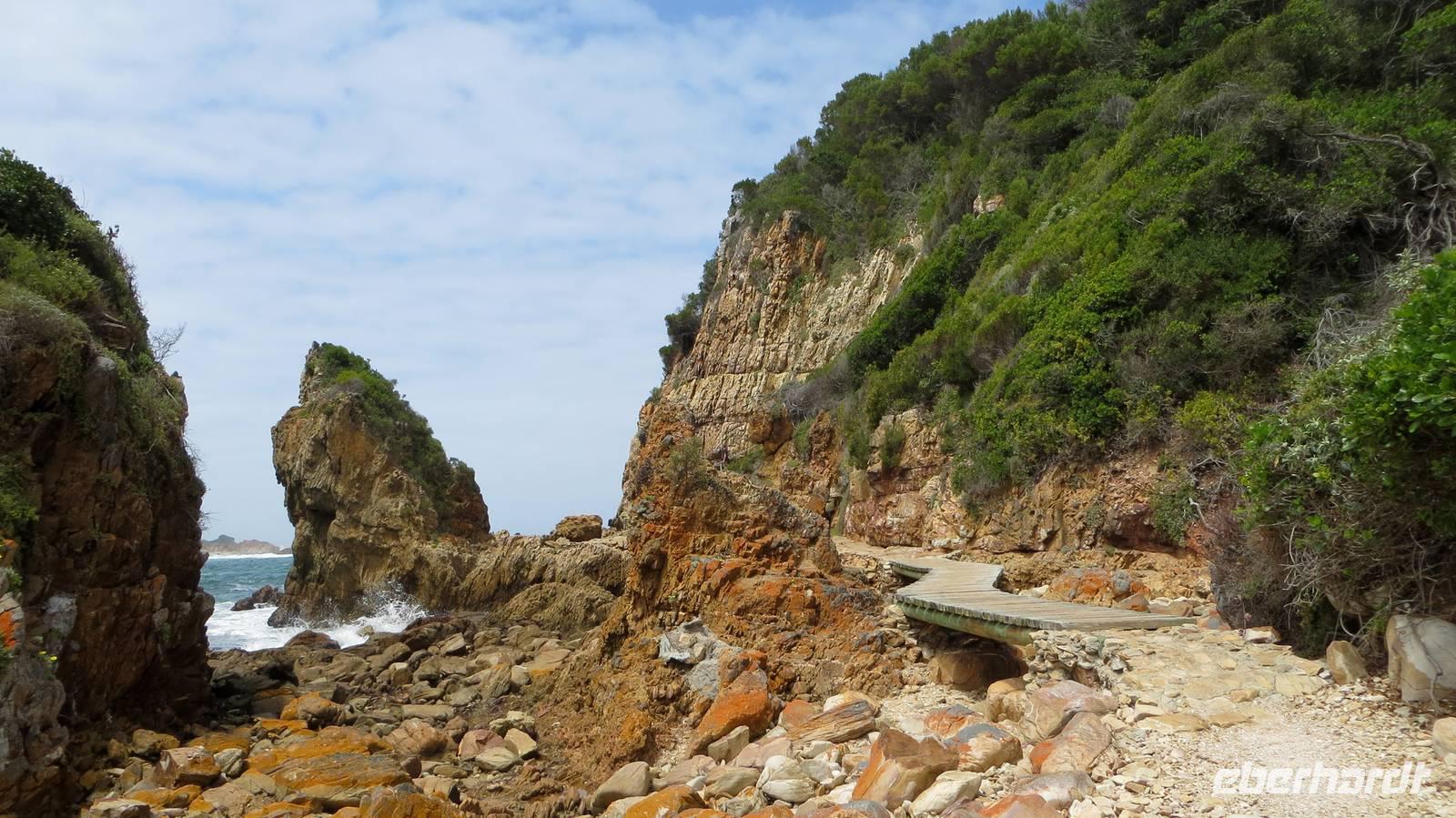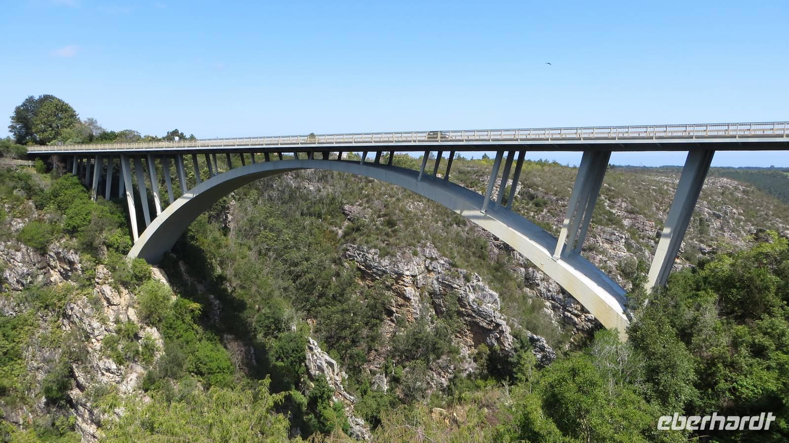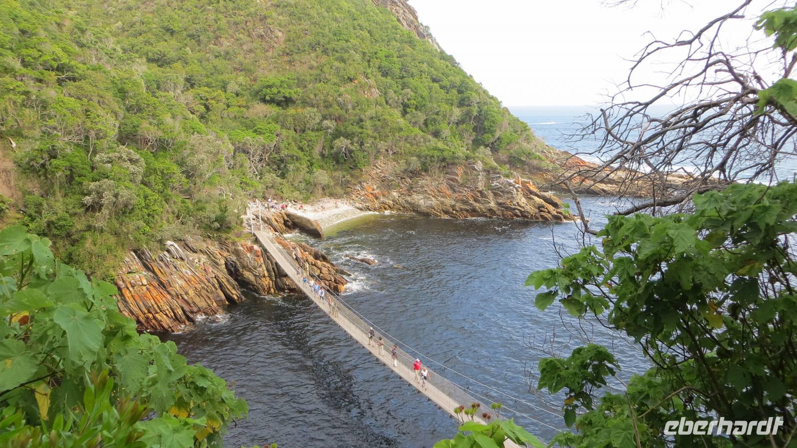 Die Stille des Morgens wird erfüllt durch das Singen der Vögel. Plötzlich passiert ein Wunder der Natur - wir erleben live, wie ein Zebra-Fohlen das Licht der Welt erblickt und seine ersten wackeligen Schritte macht. Danach spielt uns wohl der Tokolosh einen Streich, so dass wir erst mit etwas Verspätung Richtung Knysna starten können. Nach einer Mittagspause an der Storm River Bridge gelangen wir zu dem 1.000-jährigen Gelbholzbaum. Anschließend bestaunen wir die tosende Brandung und den Küstenregenwald im Tsitsikamma-Nationalpark. Bei unserer Wanderung sehen wir blühende Calla und die putzigen Klippschliefer. Am Abend erreichen wir die Lagunenstadt Knysna und essen im Restaurant „Dry Dock" zu Abend.