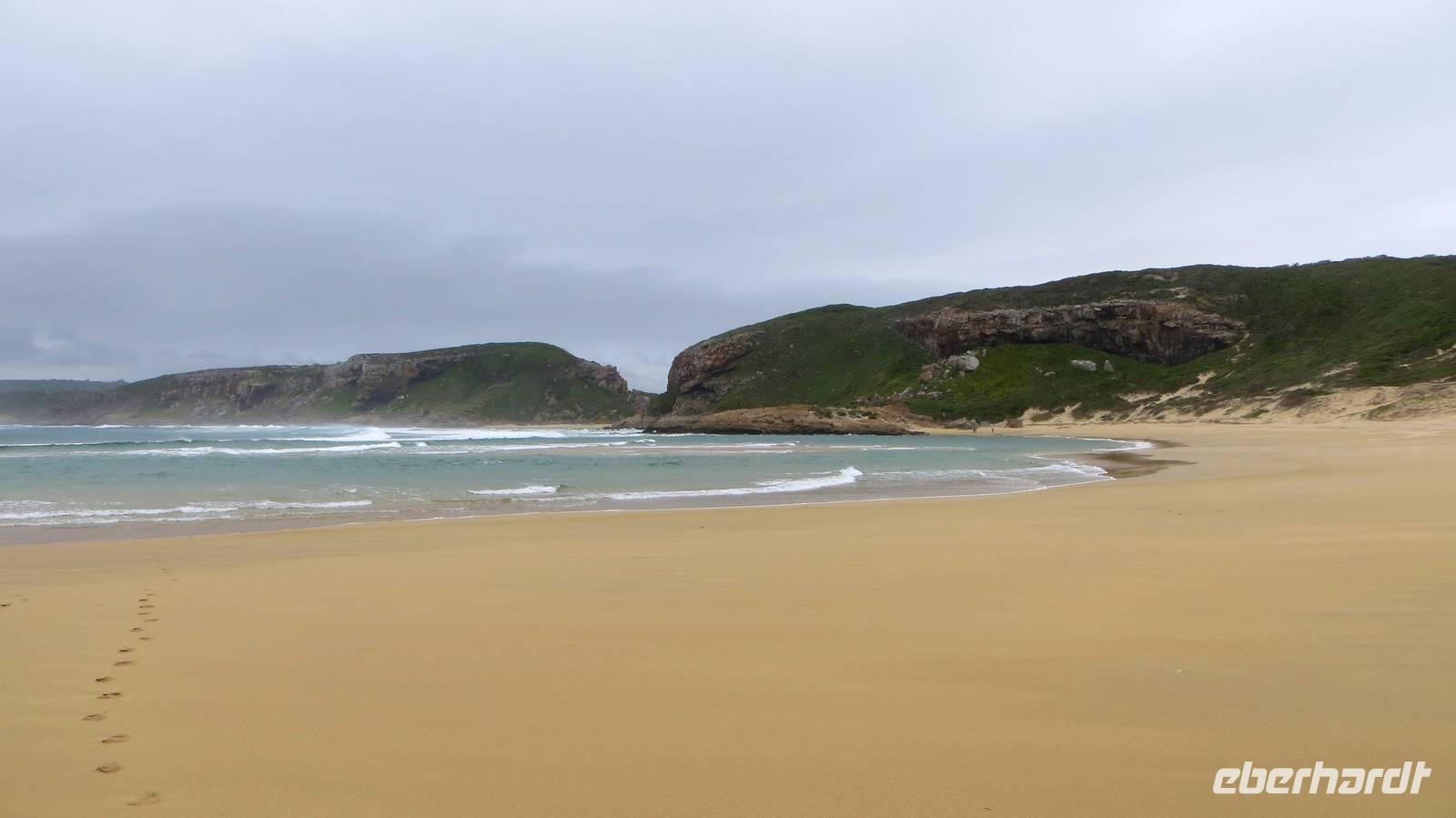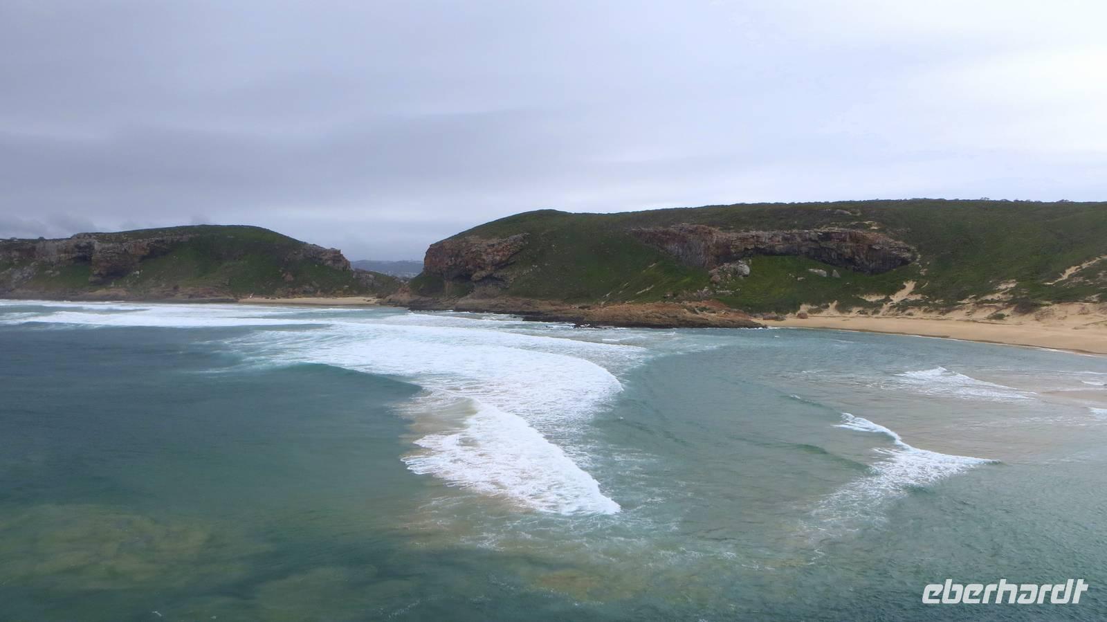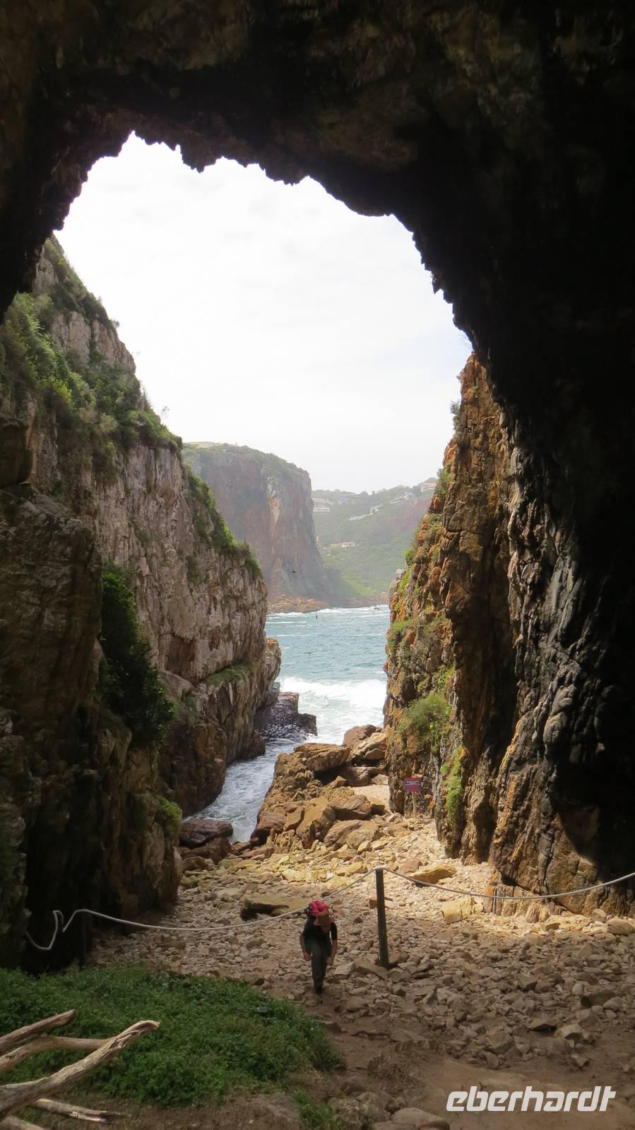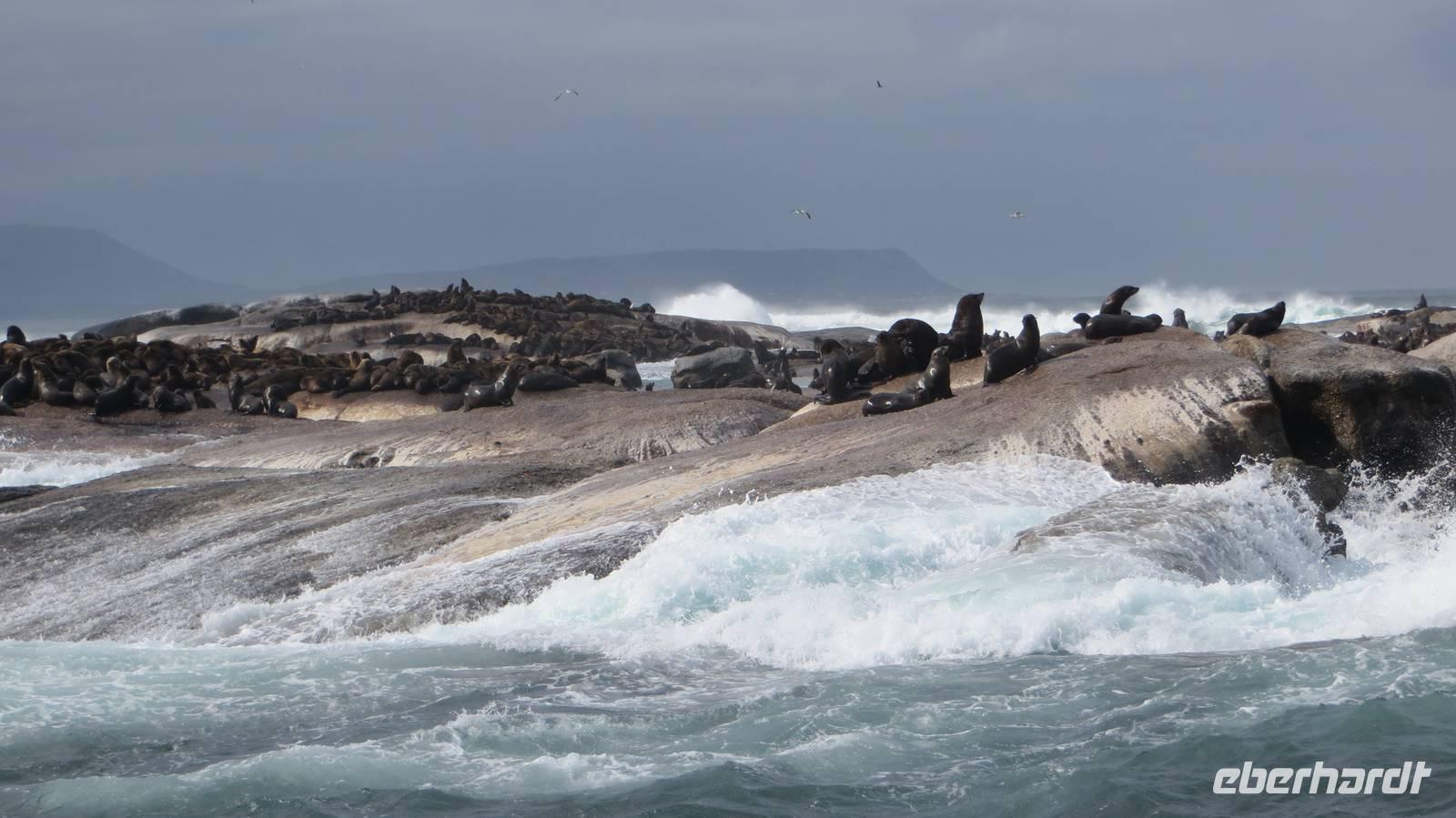 Wir haben offenbar einen guten Draht zum Tokolosh, denn entgegen der Wettervorhersage regnet es glücklicherweise nicht. So können wir während unserer Wanderung im Robberg Naturreservat die herrliche Natur und traumhafte Ausblicke auf die Küste und das Meer voll und ganz genießen. Der Wanderpfad führt uns über Stock und Stein, über goldgelbe Strände ans Meer und wieder über Felsen hinauf. Unterwegs sehen wir die abwechslungsreiche Flora, Seevögel, eine Robbenkolonie und zur Krönung sogar Wale in der Bucht! Nach diesen großartigen Erlebnissen haben wir uns ein Überraschungspicknick verdient. Mit der Aussicht über die weit geschwungene Bucht von Plettenberg gibt es allerlei kleine Leckereien. Ein paar Mutige haben sich abschließend noch das „kleine Seepferdchen" verdient und waren im 18° kalten Wasser baden. Wir beschließen den Tag bei einem Abendessen an der Waterfront von Knysna.