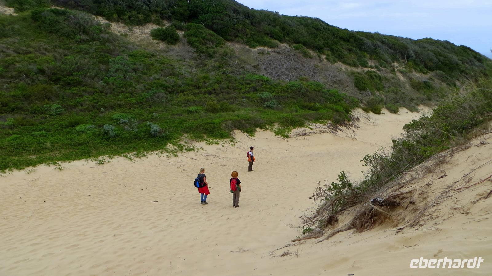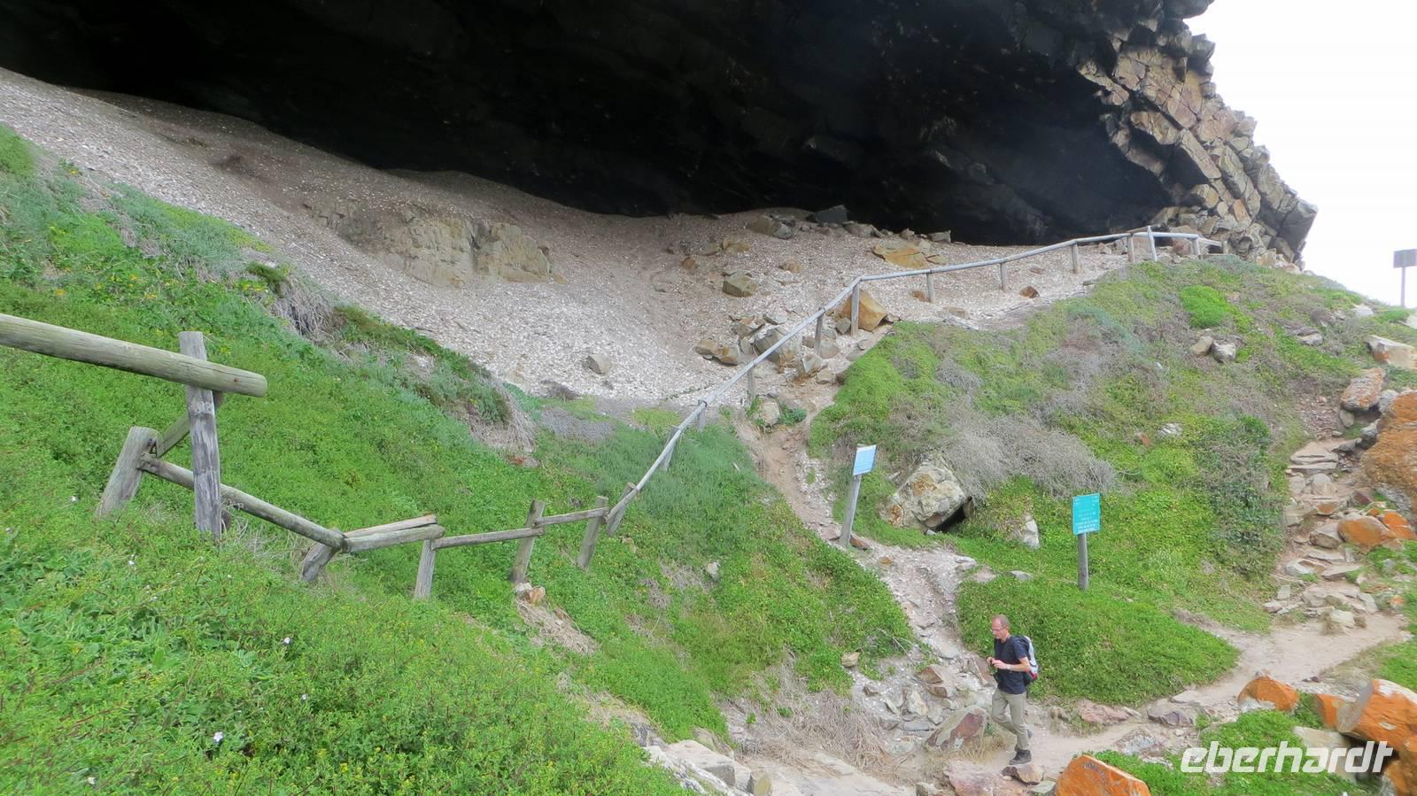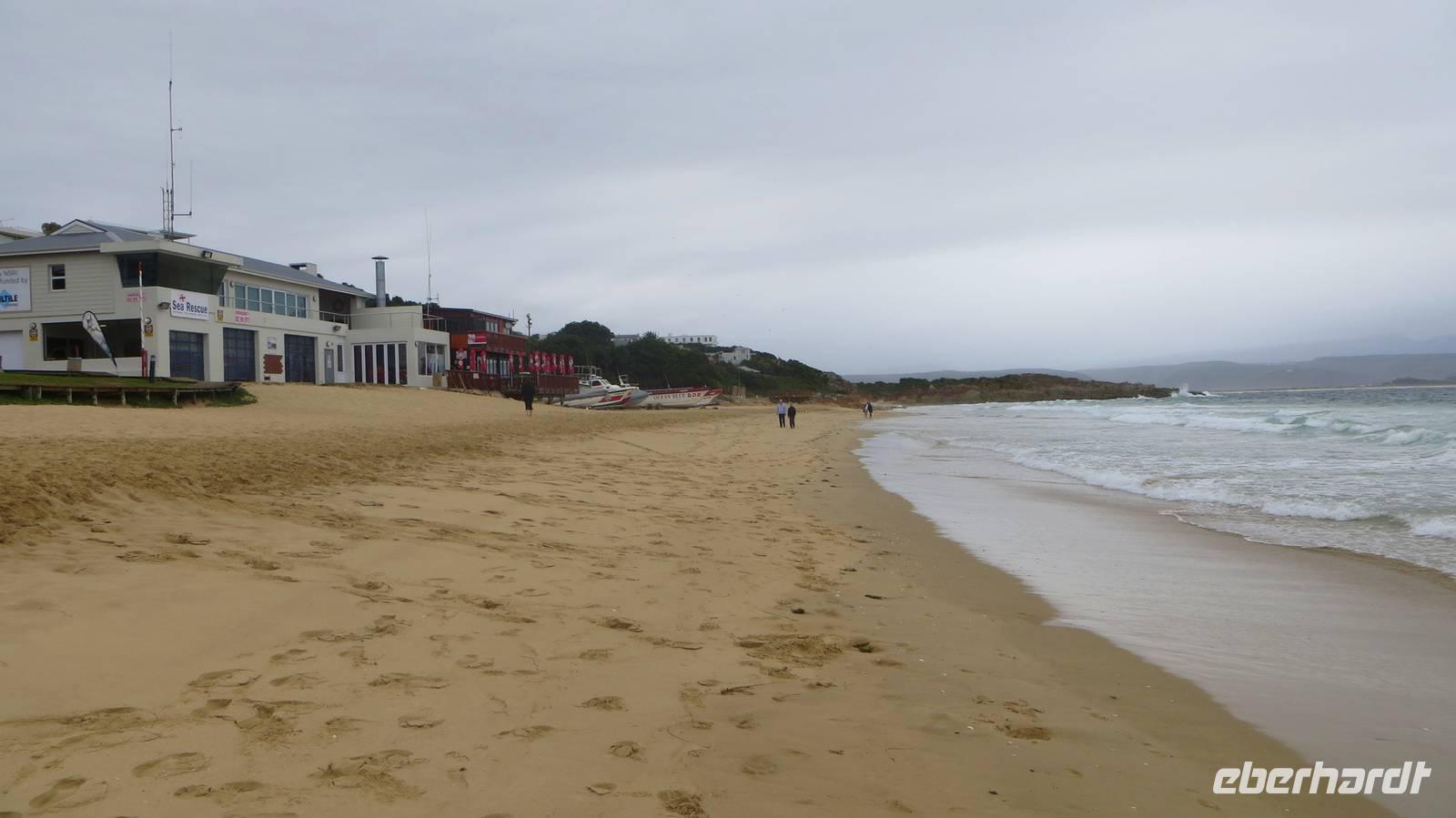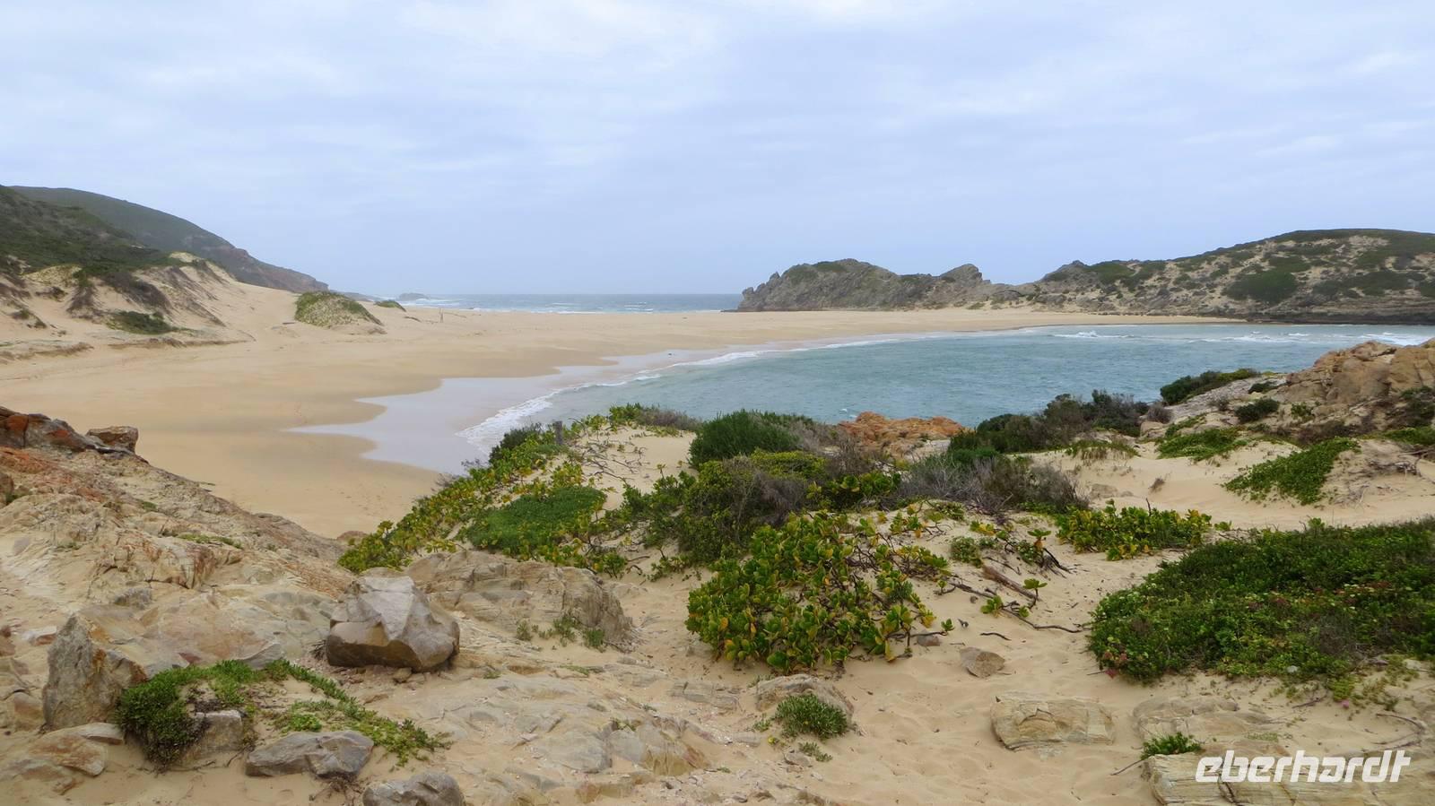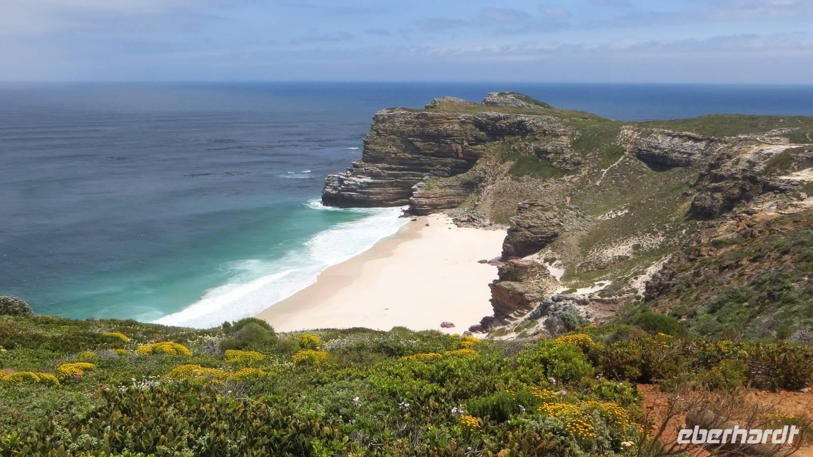 Wir haben offenbar einen guten Draht zum Tokolosh, denn entgegen der Wettervorhersage regnet es glücklicherweise nicht. So können wir während unserer Wanderung im Robberg Naturreservat die herrliche Natur und traumhafte Ausblicke auf die Küste und das Meer voll und ganz genießen. Der Wanderpfad führt uns über Stock und Stein, über goldgelbe Strände ans Meer und wieder über Felsen hinauf. Unterwegs sehen wir die abwechslungsreiche Flora, Seevögel, eine Robbenkolonie und zur Krönung sogar Wale in der Bucht! Nach diesen großartigen Erlebnissen haben wir uns ein Überraschungspicknick verdient. Mit der Aussicht über die weit geschwungene Bucht von Plettenberg gibt es allerlei kleine Leckereien. Ein paar Mutige haben sich abschließend noch das „kleine Seepferdchen" verdient und waren im 18° kalten Wasser baden. Wir beschließen den Tag bei einem Abendessen an der Waterfront von Knysna.