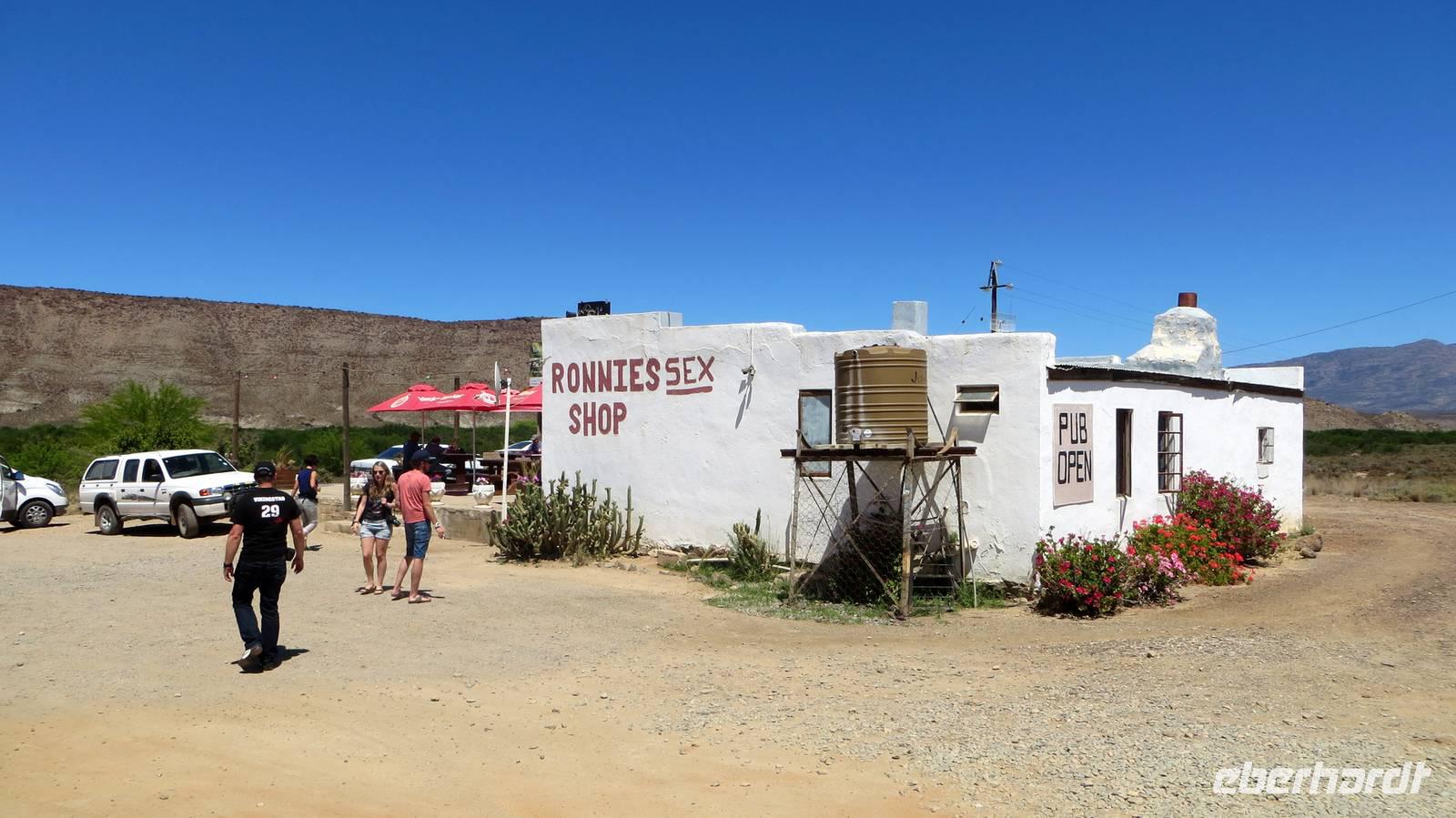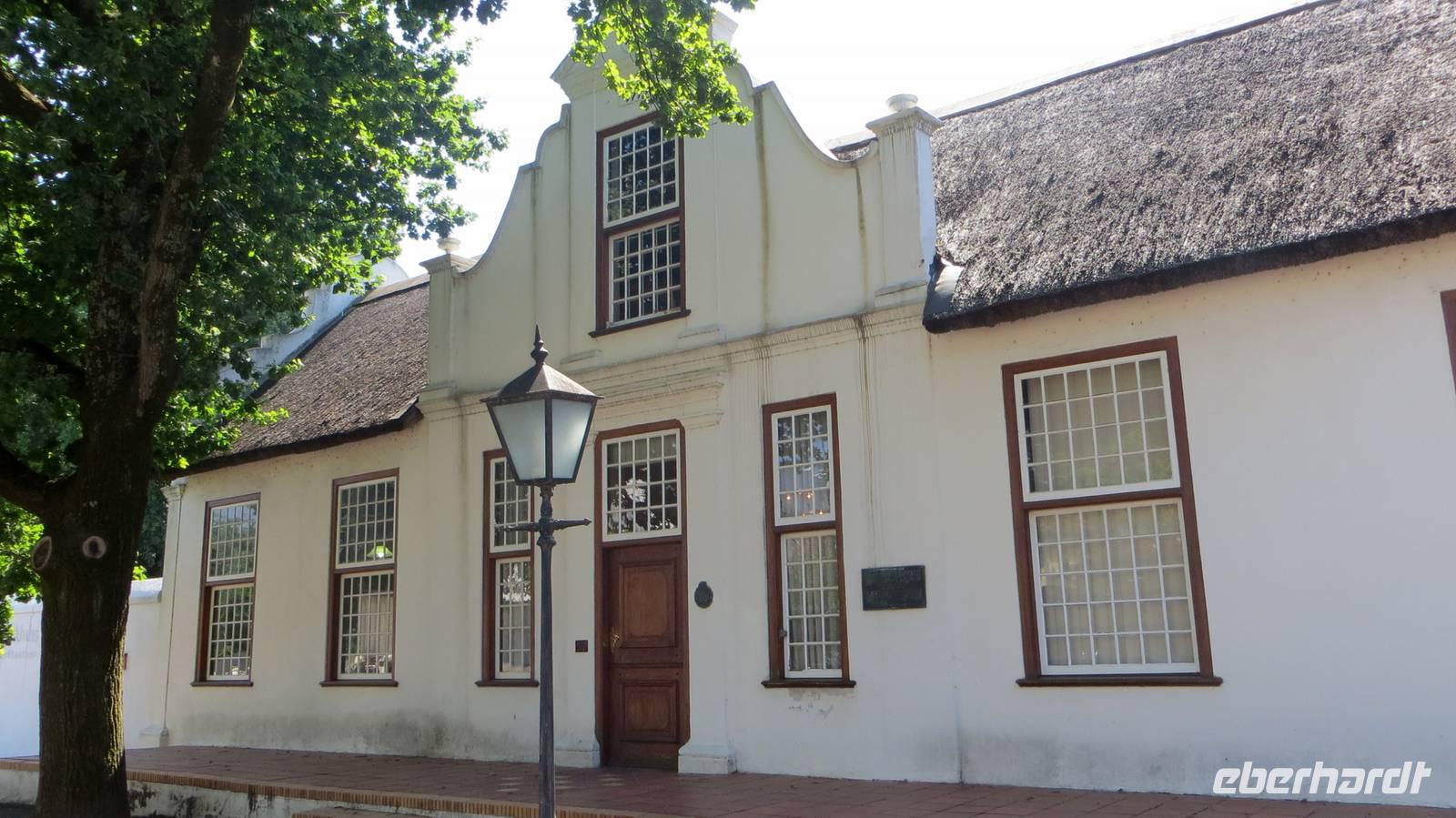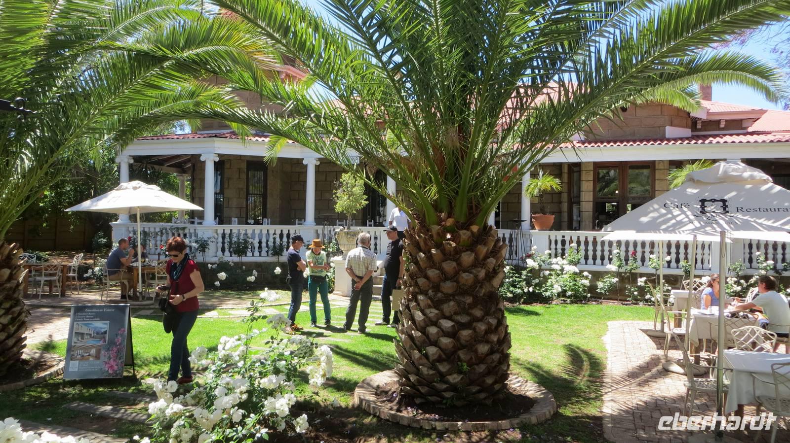 Dank ein wenig Verspätung am Morgen ändern wir unsere Pläne - mit vielen schönen Fotostopps reisen wir durch die Kleine Karoo weiter westwärts. Unser erster Halt ist oberhalb von Wilderness, wo wir einen herrlichen Blick auf die weit geschwungene Bucht mit dem Strand haben. Und noch einmal haben wir Glück und können nahe der Küste Wale beobachten. Über den Outeniqua Pass gelangen wir in die Kleine Karoo und nach Outshoorn. Die Gegend ist insbesondere durch die Straußenzucht bekannt. Auf den Feldern können wir die ulkigen Vögel mit dem langen Hals und den großen Augen beobachten. Im Garten des Montagu House, einem ehemaligen Federpalast, genießen wir unter einem violett blühenden Jacarandabaum Apfelstrudel und Kaffee. Dann heißt es „on the Road again" und wir reisen begleitet von afrikanischen Klängen durch eine karge Landschaft mit roten Felsen, dem Kapfaltengebirge. Nach einem Fotostopp an „Ronnies Sex Shop" auf der Route 62 und einem Road(s)trip vom Feinsten erreichen wir bald Stellenbosch. Das kleine Städtchen begeistert mit kapholländischer Architektur und allerlei Kunstgegenständen. Im hübschen Restaurant „Wijnhus" genießen wir unser Abendessen bei Wein (oder Bier).