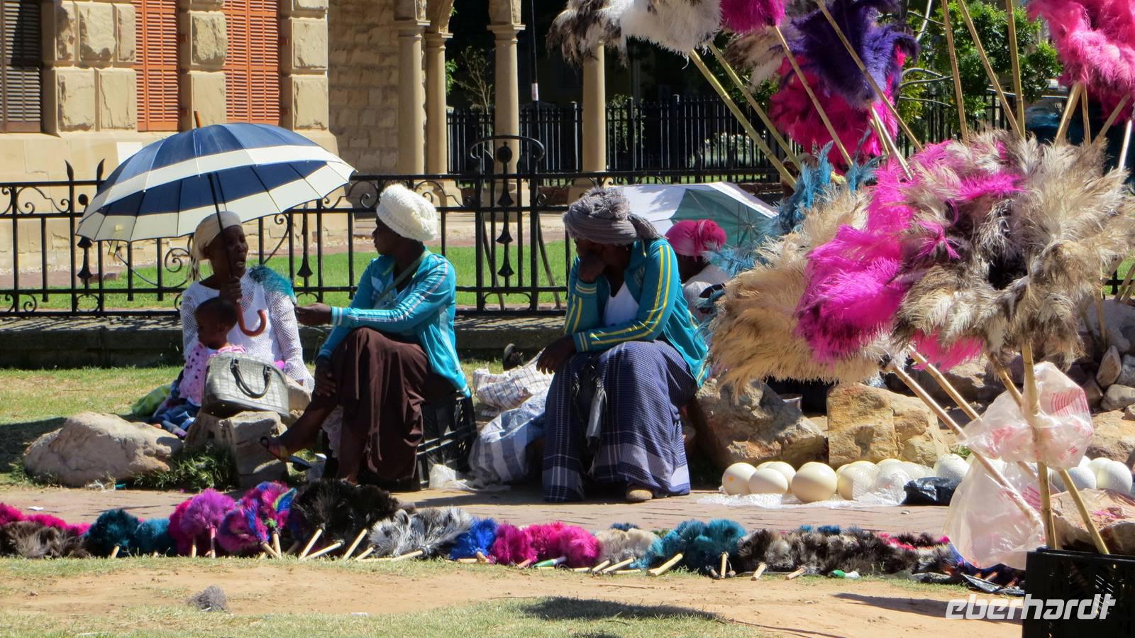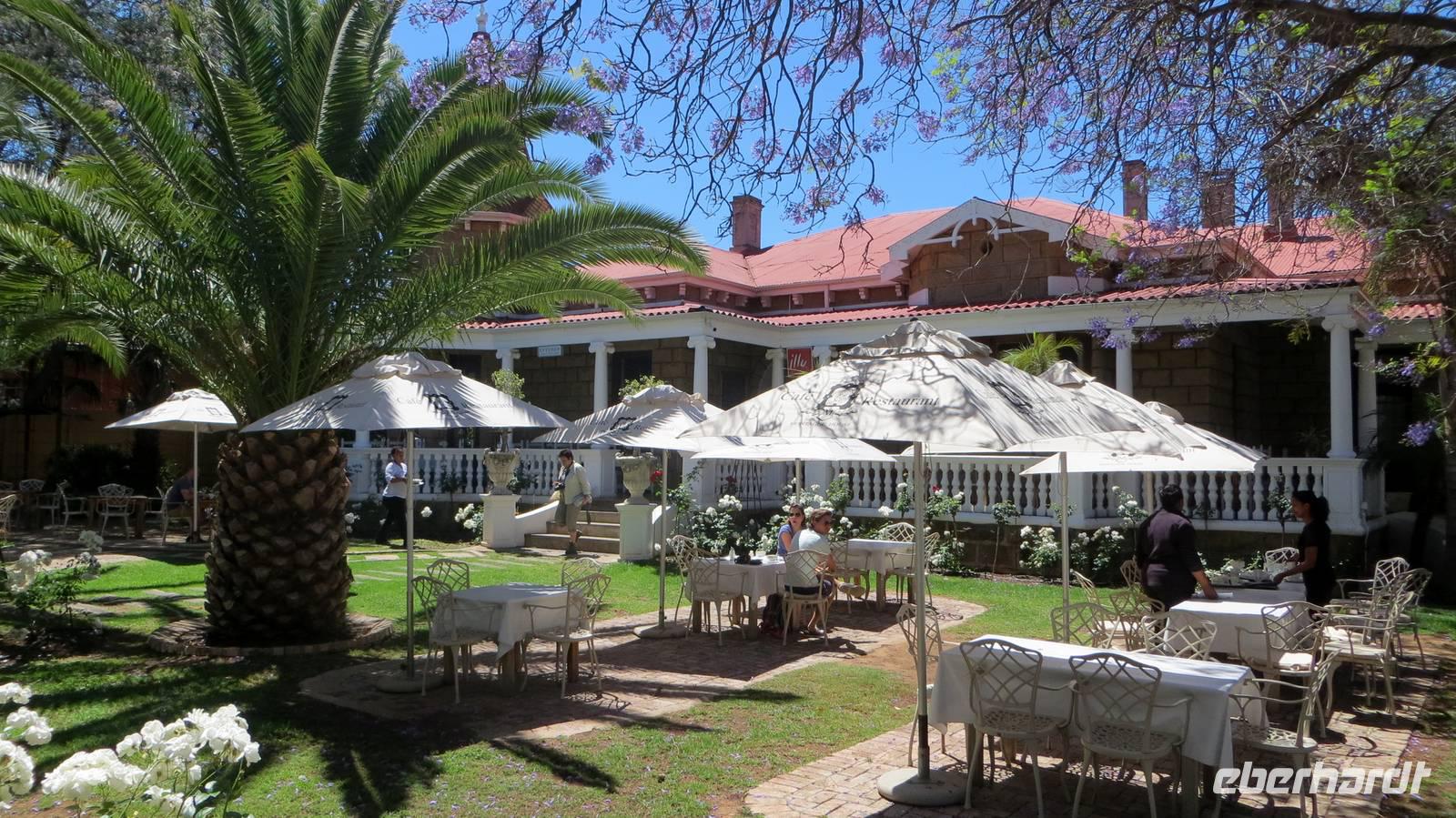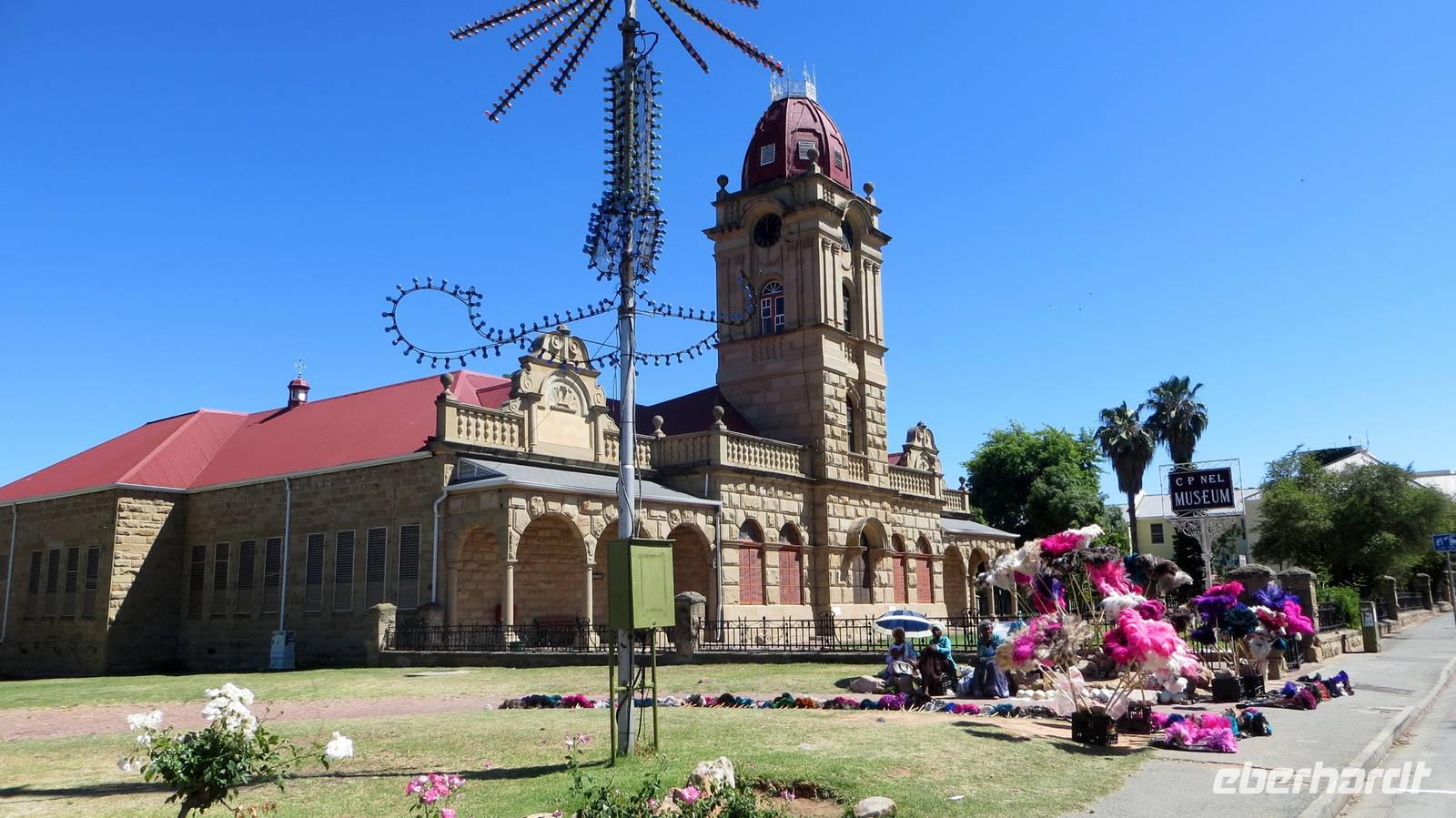 Dank ein wenig Verspätung am Morgen ändern wir unsere Pläne - mit vielen schönen Fotostopps reisen wir durch die Kleine Karoo weiter westwärts. Unser erster Halt ist oberhalb von Wilderness, wo wir einen herrlichen Blick auf die weit geschwungene Bucht mit dem Strand haben. Und noch einmal haben wir Glück und können nahe der Küste Wale beobachten. Über den Outeniqua Pass gelangen wir in die Kleine Karoo und nach Outshoorn. Die Gegend ist insbesondere durch die Straußenzucht bekannt. Auf den Feldern können wir die ulkigen Vögel mit dem langen Hals und den großen Augen beobachten. Im Garten des Montagu House, einem ehemaligen Federpalast, genießen wir unter einem violett blühenden Jacarandabaum Apfelstrudel und Kaffee. Dann heißt es „on the Road again" und wir reisen begleitet von afrikanischen Klängen durch eine karge Landschaft mit roten Felsen, dem Kapfaltengebirge. Nach einem Fotostopp an „Ronnies Sex Shop" auf der Route 62 und einem Road(s)trip vom Feinsten erreichen wir bald Stellenbosch. Das kleine Städtchen begeistert mit kapholländischer Architektur und allerlei Kunstgegenständen. Im hübschen Restaurant „Wijnhus" genießen wir unser Abendessen bei Wein (oder Bier).