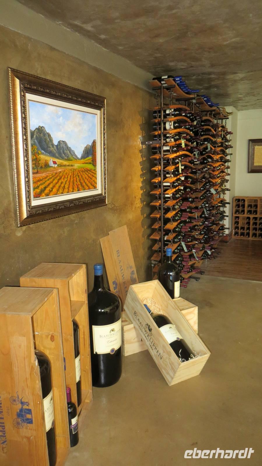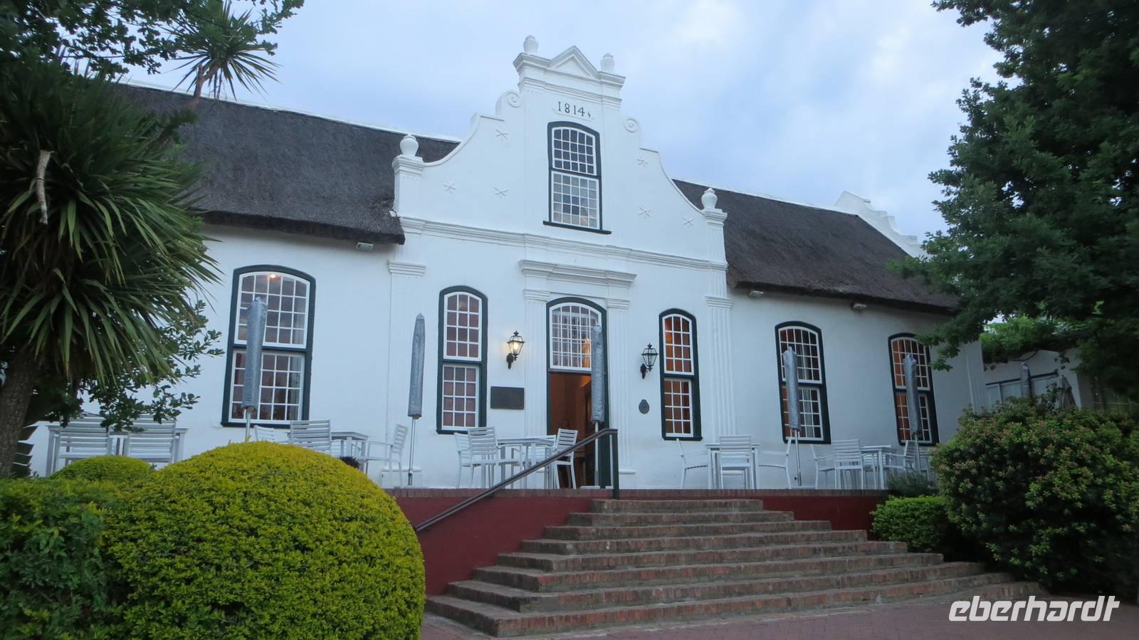 Zu einem Aufenthalt in der Weinregion Südafrikas gehört ja eigentlich auch eine Weinbergwanderung... wider Erwarten begeben wir uns auf eine Wanderung abseits der Weinberge. Die Landschaft im Jonkershoek Nationalpark ist atemberaubend schön - steil aufragende, graue Felsen und ein „Garten Eden" mit einer abwechslungsreichen Flora. Über Stock und Stein wandern wir zu einem kleinen Wasserfall und zurück zum Parkplatz. Nun kommen wir auch endlich zum Thema Wein... auf dem Weingut „Blaauwklippen" machen wir eine Kellerführung und Weinverkostung. Und zu guter Letzt gibt es noch ein leckeres Picknick im schönen Garten. Das soll es aber noch nicht gewesen sein - heiter geht es weiter zum Weingut „Tokara" wo wir noch eine Verkostung haben und die schönen Kunstwerke bestaunen können. Nun brauchen wir erst einmal eine Pause, um am Abend auf dem Weingut „Neethlingshof" erneut zum Weinglas zu greifen und das köstliche Essen in schöner Atmosphäre zu genießen.