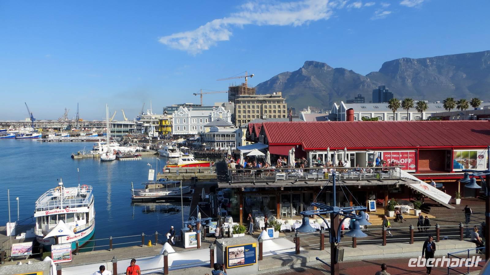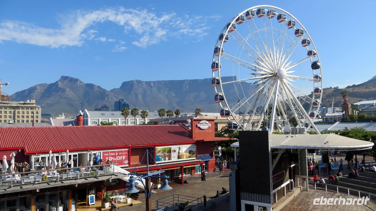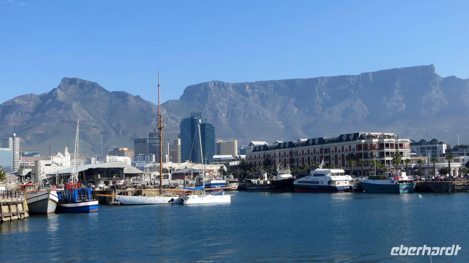 Am Vormittag haben wir noch etwas Freizeit in Stellenbosch, um Souvenirs und Mitbringsel zu kaufen. Danach heißt es „Welcome to Capetown"! Der Tafelberg wird von den Wolken umspielt, also begeben wir uns erst einmal auf eine kleine Rundfahrt durch Kapstadt. Dann ziehen die Wolken ab und wir nutzen gleich die Chance zur Auffahrt zum Wahrzeichen der Stadt bei Bilderbuchwetter. Mit der rotierenden Gondel schweben wir auf über 1.000 Meter Höhe und genießen die fantastische Aussicht bei strahlend blauem Himmel und Sonnenschein! So schön und windstill ist es wohl selten, wir haben riesiges Glück! Das 360°-Panorama auf Kapstadt, das Wolkenmeer über Camps Bay und die Küste bis hin zur Kap-Halbinsel ist atemberaubend! Schließlich erwartet uns noch eine kleine Überraschung und wir werden auf dem Signal Hill mit Sekt und kleinen Häppchen begrüßt - so stoßen wir mit Blick zum Tafelberg auf eine schöne Reise an. Danach bleibt noch etwas Zeit für einen Bummel entlang der Waterfront.