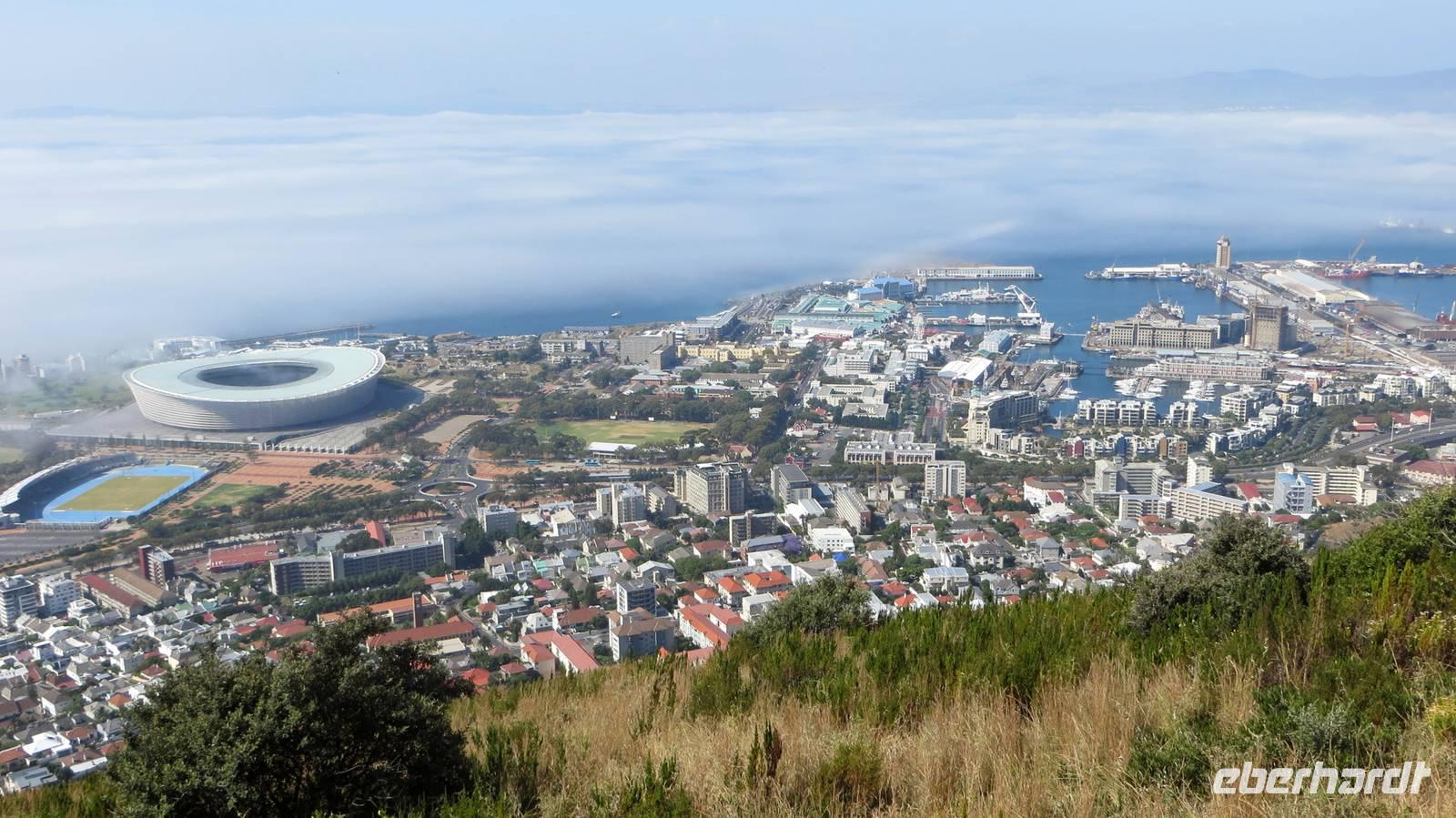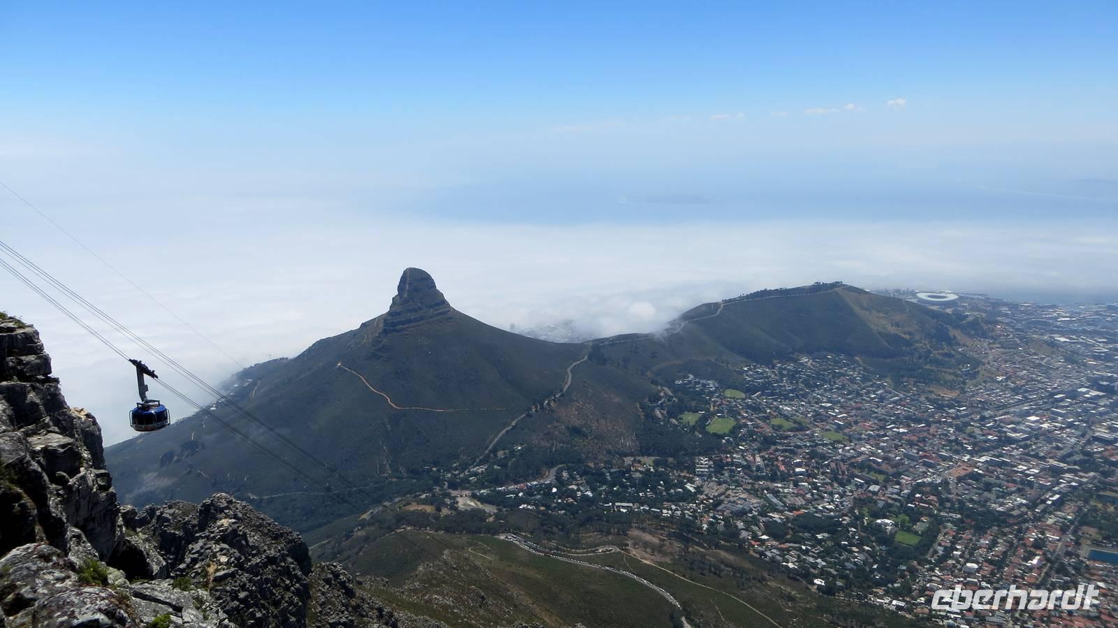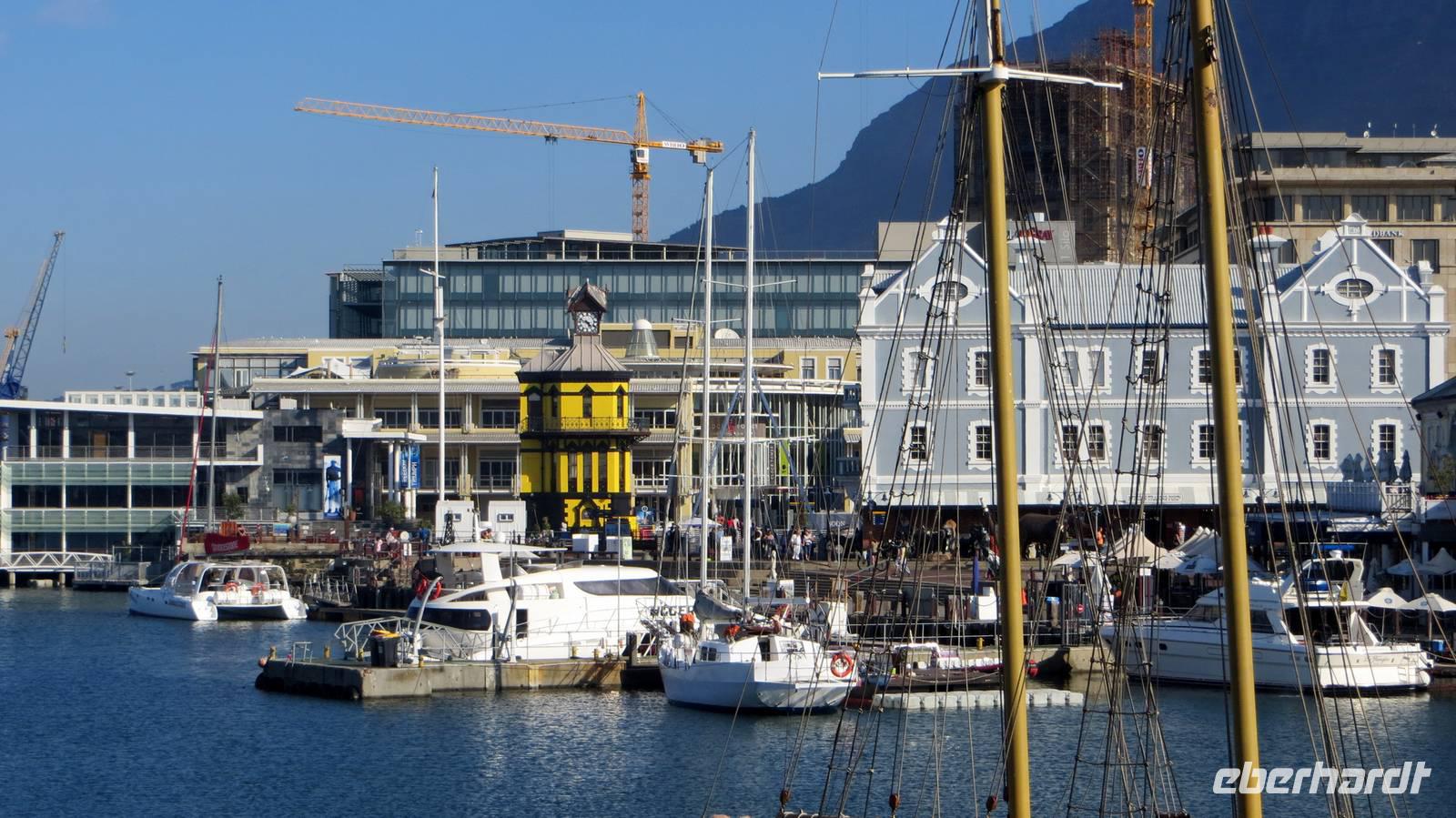 Am Vormittag haben wir noch etwas Freizeit in Stellenbosch, um Souvenirs und Mitbringsel zu kaufen. Danach heißt es „Welcome to Capetown"! Der Tafelberg wird von den Wolken umspielt, also begeben wir uns erst einmal auf eine kleine Rundfahrt durch Kapstadt. Dann ziehen die Wolken ab und wir nutzen gleich die Chance zur Auffahrt zum Wahrzeichen der Stadt bei Bilderbuchwetter. Mit der rotierenden Gondel schweben wir auf über 1.000 Meter Höhe und genießen die fantastische Aussicht bei strahlend blauem Himmel und Sonnenschein! So schön und windstill ist es wohl selten, wir haben riesiges Glück! Das 360°-Panorama auf Kapstadt, das Wolkenmeer über Camps Bay und die Küste bis hin zur Kap-Halbinsel ist atemberaubend! Schließlich erwartet uns noch eine kleine Überraschung und wir werden auf dem Signal Hill mit Sekt und kleinen Häppchen begrüßt - so stoßen wir mit Blick zum Tafelberg auf eine schöne Reise an. Danach bleibt noch etwas Zeit für einen Bummel entlang der Waterfront.