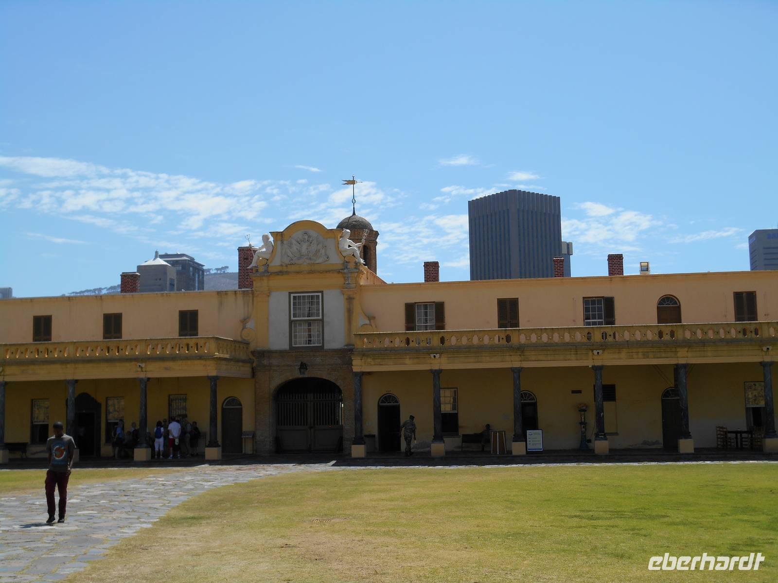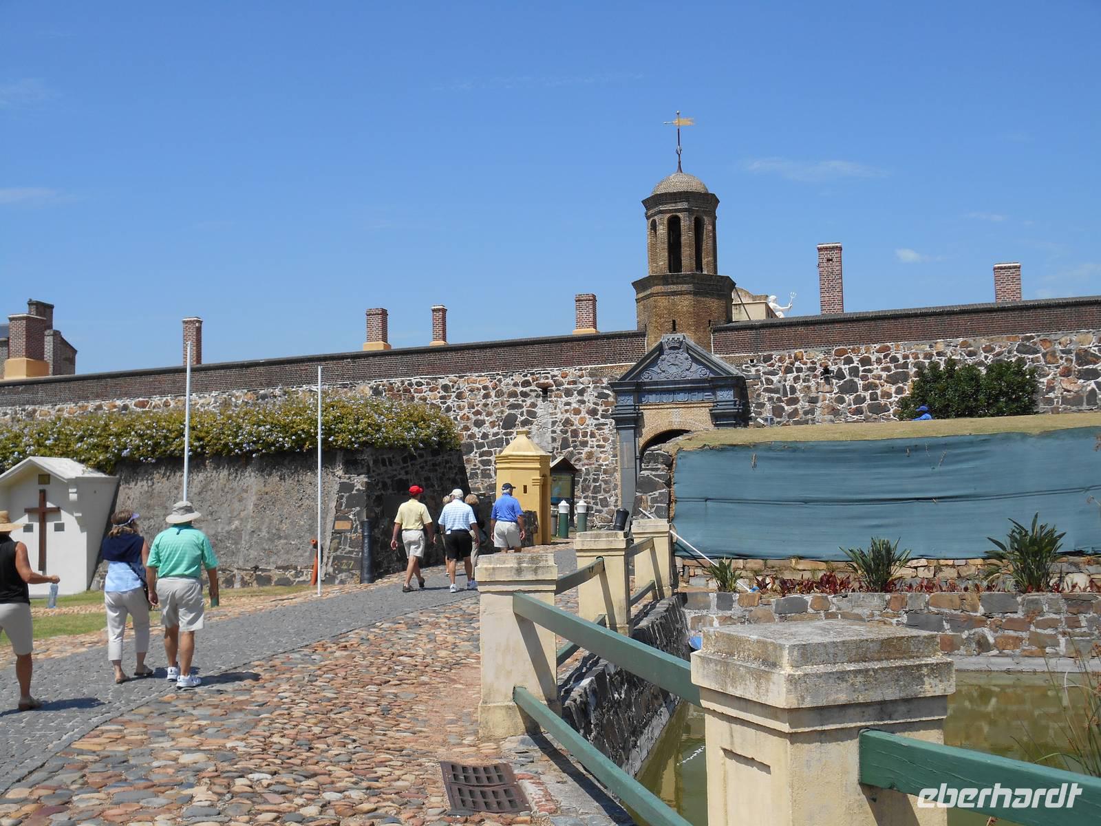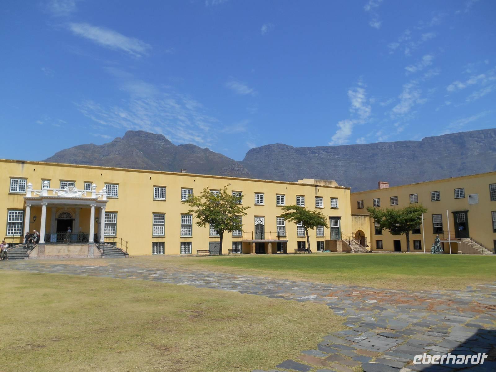 Nach einem angenehmen, reichlich 10-stündigen Flug erreichten wir am Morgen Johannesburg, von wo aus wir weitere knapp zwei Stunden bis Kapstadt flogen. Schon aus der Luft erblickten wir den gigantischen Tafelberg, das Wahrzeichen Kapstadts. Es ist eine Ehrfurcht, die man fühlt, wenn man aus dem Flugzeug den allerersten Blick auf den Tafelberg wirft - unbeschreiblich! Gegen Mittag landeten wir hier und wurden von unserem örtlichen Reiseleiter Chris herzlich begrüßt. Wir starteten gleich mit einer kleinen Stadtrundfahrt, kamen auch an den ersten Townships vorbei und besuchten unter anderem auch das Castle of Good Hope, das älteste erhaltene Gebäude aus der Kolonialzeit in Südafrika. Es wurde im 17. Jahrhundert von der niederländischen Ostindien-Kompanie (VOC) als maritime Nachschubstation errichtet und war ehemals das Zentrum des zivilen, administrativen und militärischen Lebens.