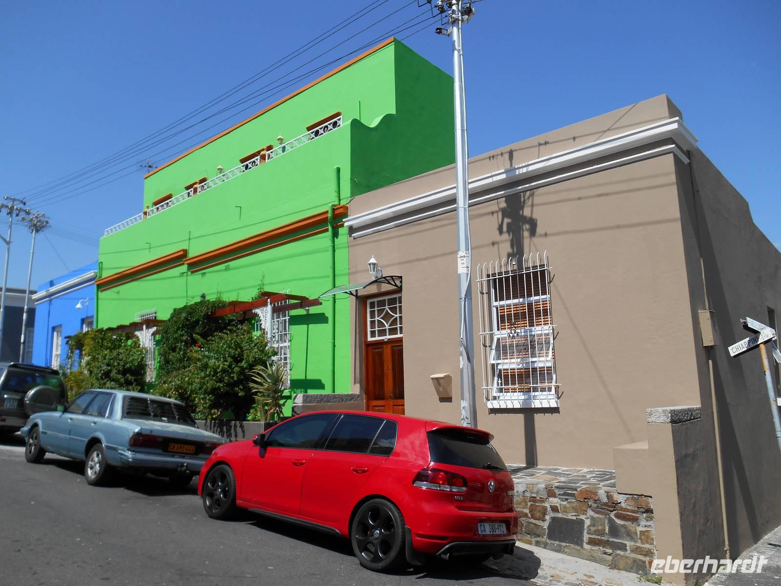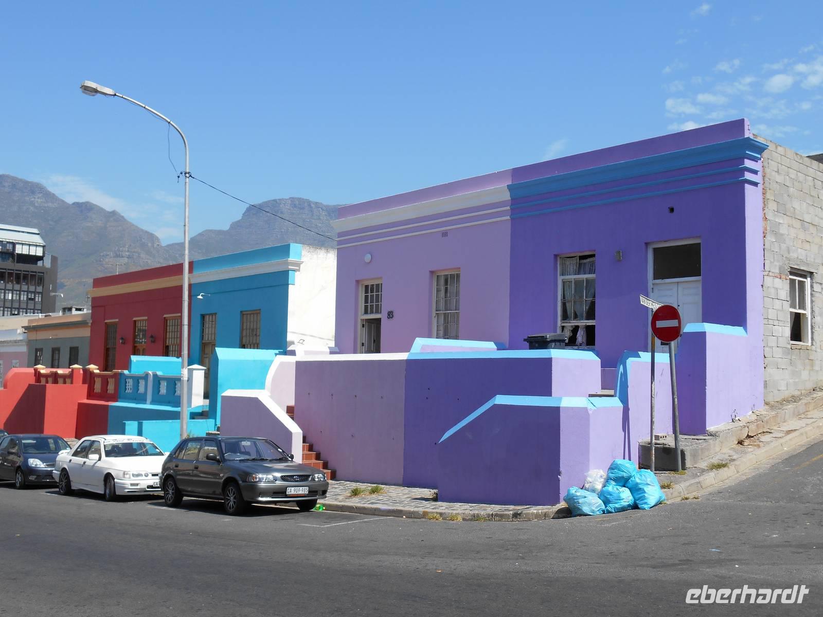 Wir fuhren anschließend weiter durch die verschiedenen Stadtteile Kapstadts, besonders beeindruckte uns jedoch das Viertel Bo-Kaap mit seinen bunten Häusern zu Füssen des Signal Hills. Enge Gassen, teilweise steil bergauf führend und noch mit Kopfsteinpflaster bedeckt, dazwischen Moscheen - der Stadtteil Bo-Kaap versprüht noch den Charme vergangener Jahrhunderte, als sich hier die freigelassenen Sklaven niederließen und ihre Kultur und Bräuche mitbrachten. Wir spazierten durch einen Teil dieses Viertels - die bunten Häuser sind übrigens alle sehr gepflegt und wunderschön anzusehen!