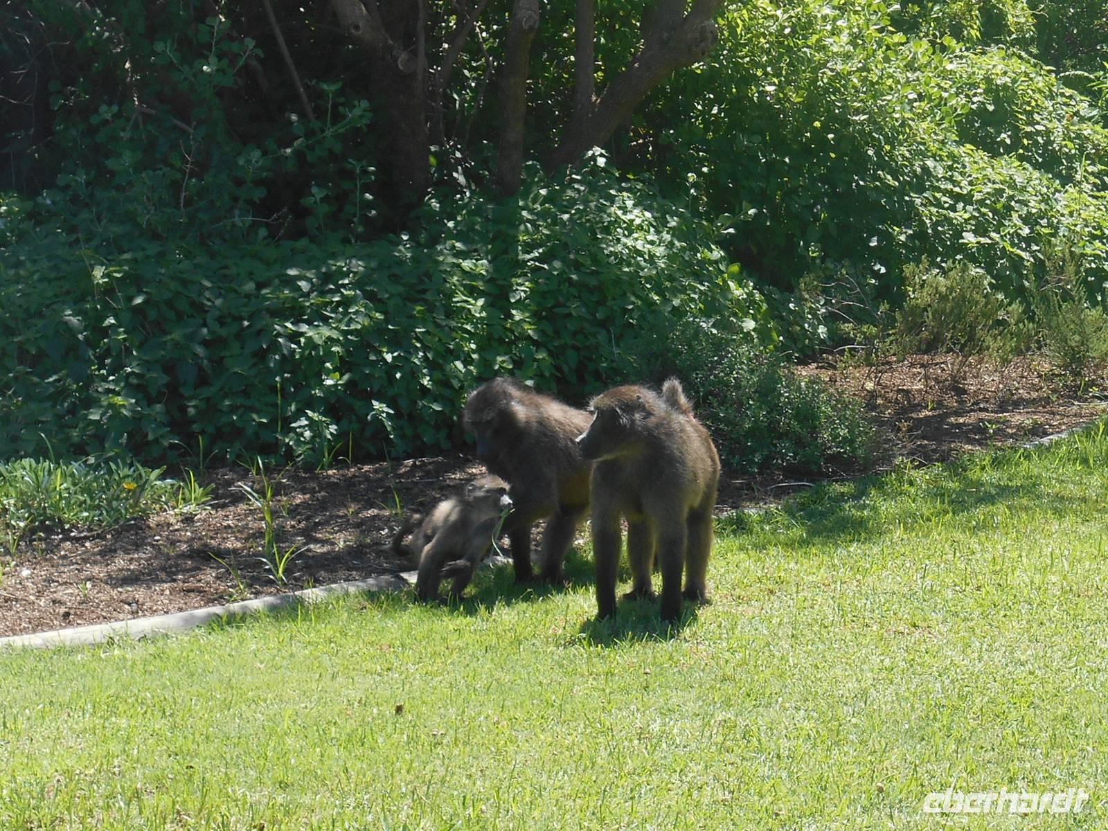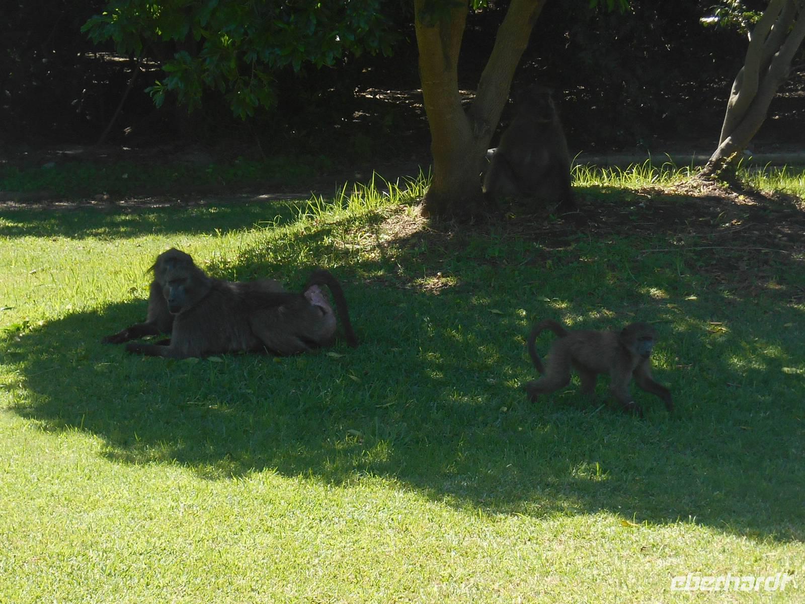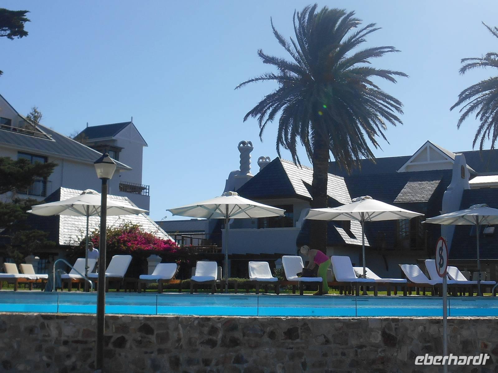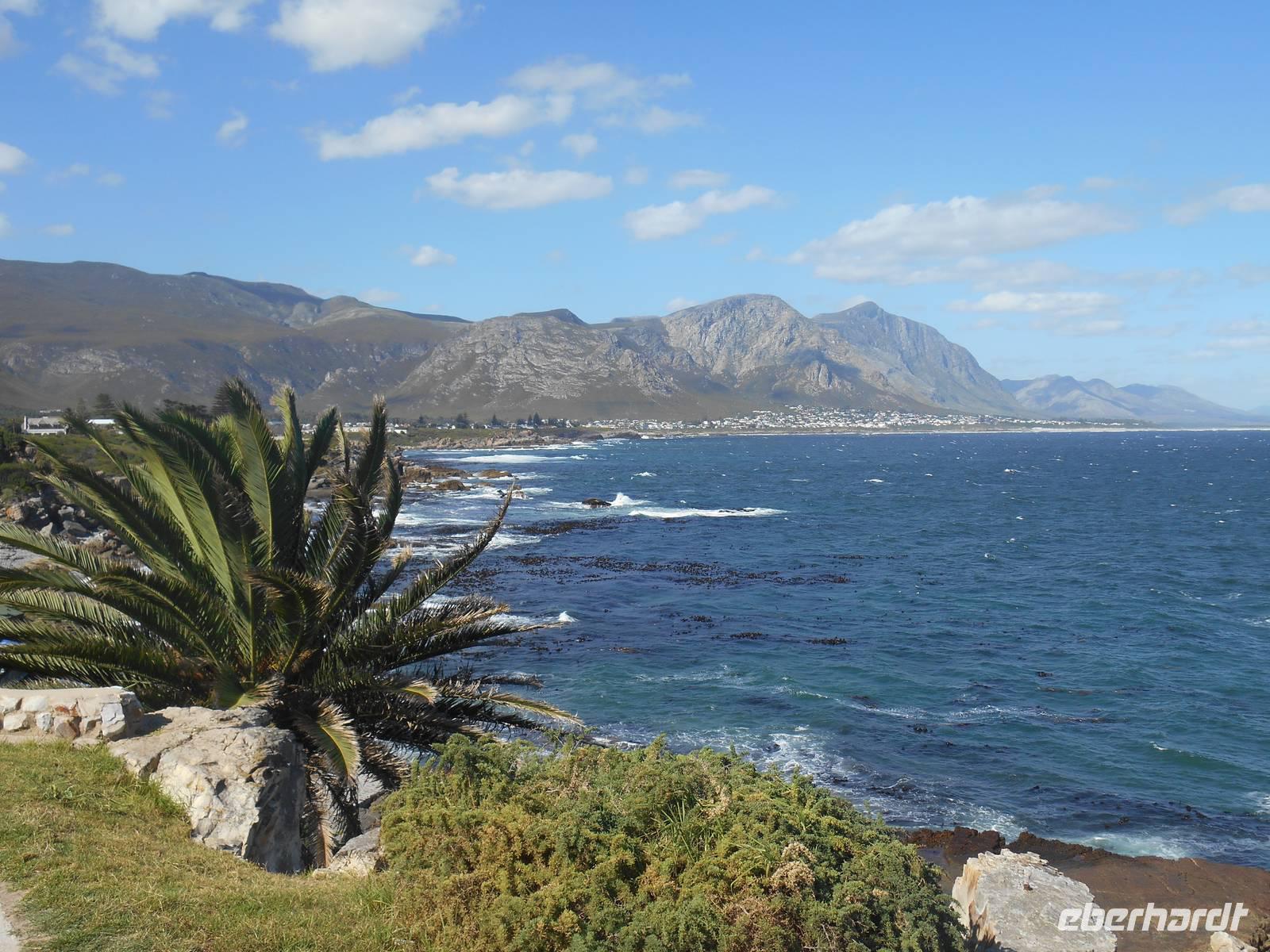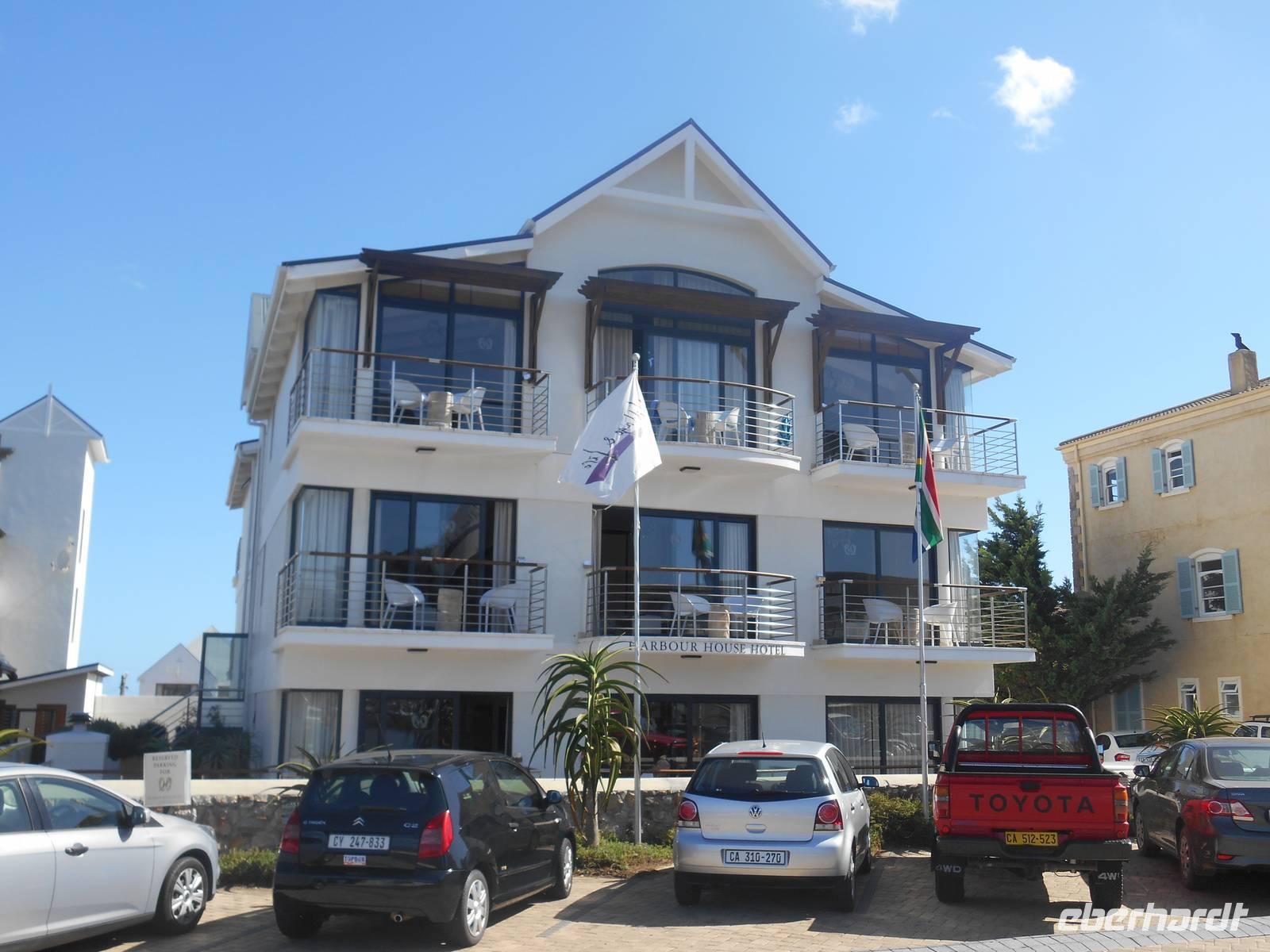 Alles hat ein Ende - der Abschied von Kapstadt nahte! Da heute eigentlich nur die ca. 130 Kilometer lange Fahrt von Kapstadt nach Hermanus anstand, entschlossen wir uns kurzerhand, ein paar weitere Attraktionen entlang unserer Fahrtroute in unser Reiseprogramm zu integrieren. Die Fahrt führte uns in Richtung Somerset West, genauer gesagt nach Strand. Hier gibt es einen interessanten Geparden-Park und wir konnten uns hier eindrücklich über das Leben dieser geschützten Tiere informieren. Das Highlight des Parks ist das Gehege, in welchem man hautnah mit den Geparden in Kontakt kommen kann. Unter der Aufsicht eines Tierpflegers darf man in kleinen Gruppen in ein Gehege mit 2-3 Geparden - eine einzige Mutige gab es auch in unserer Gruppe! Nach diesen tierischen Eindrücken machten wir noch einen kurzen Aufenthalt in der sog. "False Bay" (Strand) und warfen auch die letzten Blicke hinüber zur Kap-Halbinsel. False Bay heißt wörtlich übersetzt "falsche Bucht". Der Name entstand dadurch, dass Seefahrer in der Vergangenheit irrtümlich annahmen, sie hätten das Kap bereits umsegelt. Die False Bay ließen wir bei Gordon´s Bay hinter uns und entlang der wunderschönen Küstenstraße führte uns unser Weg nach Betty´s Bay, wo wir Harold Porter´s Botanischen Garten besuchten. Die ersten Paviane empfingen uns hier bereits am Parkplatz! Dieser ruhige Garten befindet sich zwischen den Bergen und dem Meer im Herzen der Fynbos-Region. Er bietet die Möglichkeit von ebenen Rasenflächen und farbenfrohen Blumenbeeten mit einheimischen Pflanzen zu natürlichen Fynbos-Biotopen am Berghang zu wandern. Fynbos findet man auf nährstoffarmen Sandsteinböden in den Bergen und Tälern und ist durch Straucharten charakterisiert, die feine und harte Blätter haben. Eingeschlossen sind auch solche Pflanzen wie: Proteen, Erikaarten, Leguminosen und Zwiebelpflanzen wie Iris und Lilien sowie die schilfartigen Restios an Stelle von Gras. Nach diesem Rundgang an der frischen Luft bekamen wir allmählich etwas Hunger - die Mittagszeit war schließlich längst angebrochen! Bei einem Bummel durch einen Supermarkt in Kleinmond versorgten wir uns mit Lebensmitteln wie Wurst, Käse und Brot bzw. Getränken, um uns am Strand von Kleinmond bei einem Mittags-Picknick zu stärken! Am Nachmittag checkten wir im stilvollen "Harbour House Hotel" in Hermanus ein, um die restliche Zeit bis zum Abendessen ganz individuell zu verbringen. Hermanus wird jedes Jahr zwischen Juni und Dezember von den Southern Right Walen besucht und bewohnt und ist weltbekannt hierfür. Da wir jedoch außerhalb der Wal-Saison hier waren, beschränkten wir uns auf einen gemütlichen Spaziergang durch das beschauliche Städtchen. Zum Abendessen wurden wir heute im "Harbour Rock Restaurant" erwartet - auf der Spitze der Klippe mit Blick auf den Hafen von Hermanus gelegen. Dies ist der ideale Ort, um den atemberaubenden Meerblick über die Bucht zu genießen - eine Ansicht, die übrigens nur noch vom Ambiente des Restaurants und dem wahrhaft perfekten Essen übertroffen wurde!