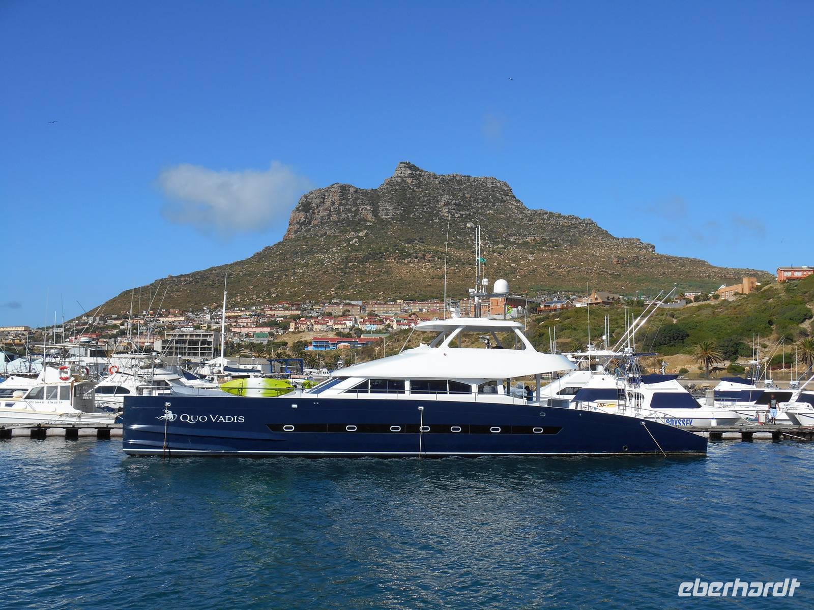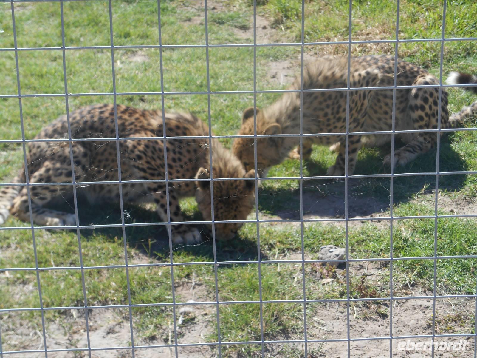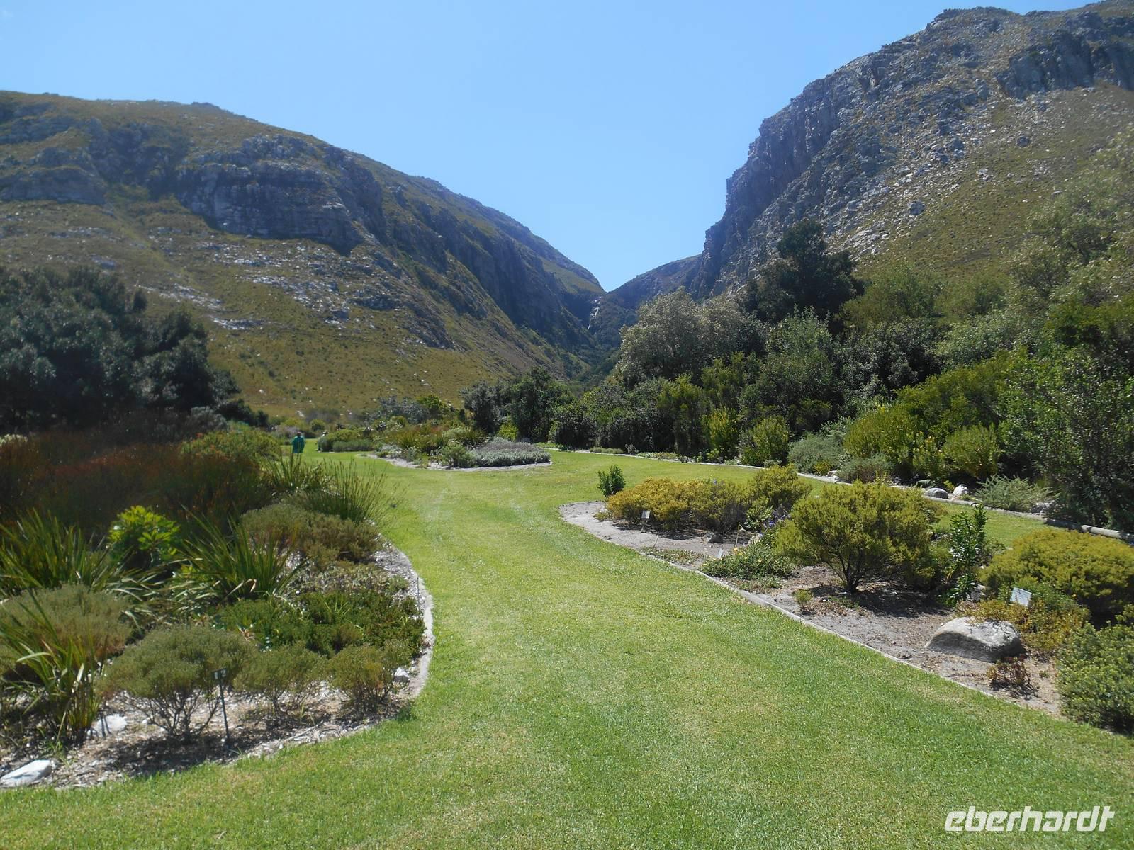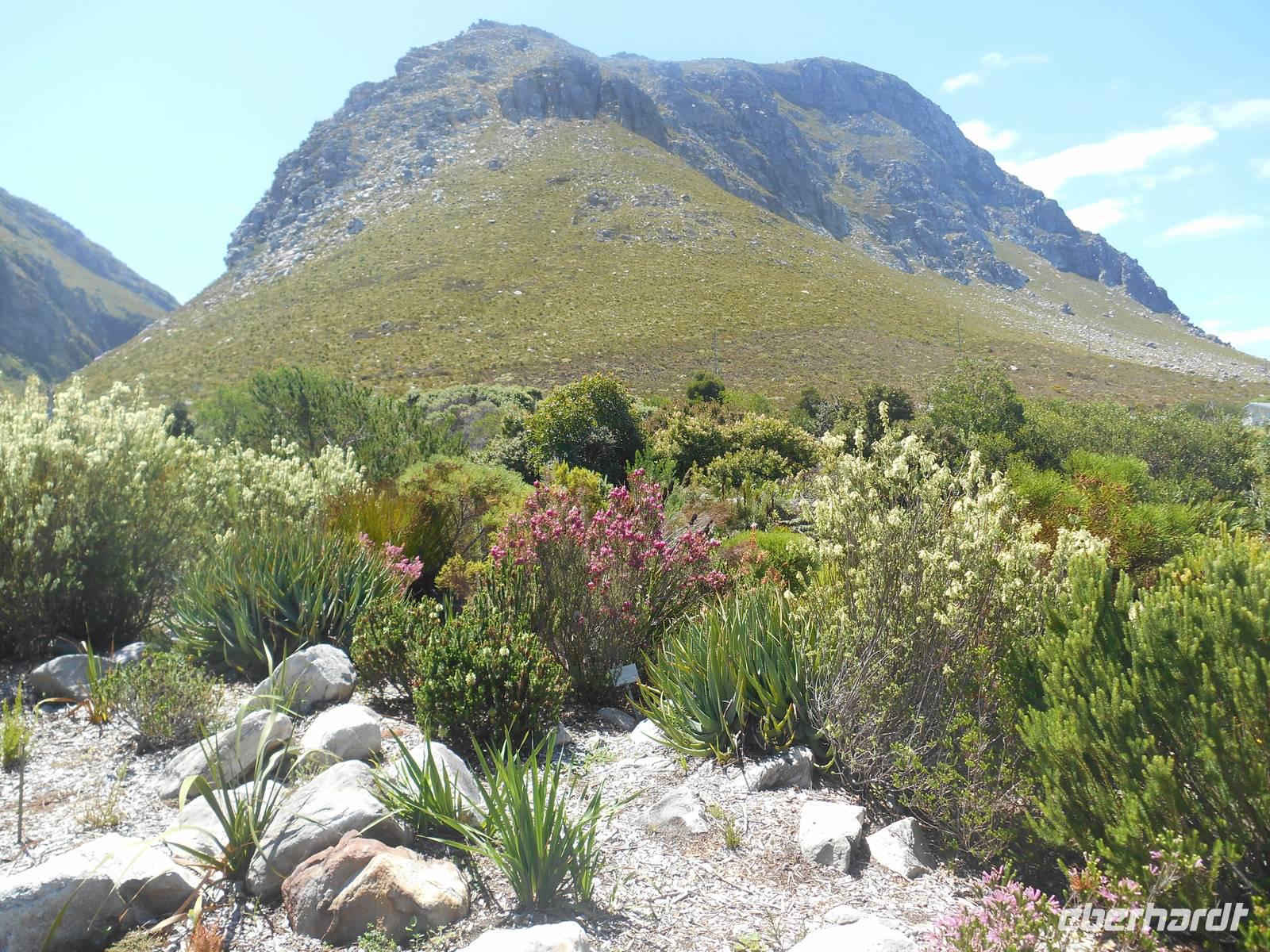 Alles hat ein Ende - der Abschied von Kapstadt nahte! Da heute eigentlich nur die ca. 130 Kilometer lange Fahrt von Kapstadt nach Hermanus anstand, entschlossen wir uns kurzerhand, ein paar weitere Attraktionen entlang unserer Fahrtroute in unser Reiseprogramm zu integrieren. Die Fahrt führte uns in Richtung Somerset West, genauer gesagt nach Strand. Hier gibt es einen interessanten Geparden-Park und wir konnten uns hier eindrücklich über das Leben dieser geschützten Tiere informieren. Das Highlight des Parks ist das Gehege, in welchem man hautnah mit den Geparden in Kontakt kommen kann. Unter der Aufsicht eines Tierpflegers darf man in kleinen Gruppen in ein Gehege mit 2-3 Geparden - eine einzige Mutige gab es auch in unserer Gruppe! Nach diesen tierischen Eindrücken machten wir noch einen kurzen Aufenthalt in der sog. "False Bay" (Strand) und warfen auch die letzten Blicke hinüber zur Kap-Halbinsel. False Bay heißt wörtlich übersetzt "falsche Bucht". Der Name entstand dadurch, dass Seefahrer in der Vergangenheit irrtümlich annahmen, sie hätten das Kap bereits umsegelt. Die False Bay ließen wir bei Gordon´s Bay hinter uns und entlang der wunderschönen Küstenstraße führte uns unser Weg nach Betty´s Bay, wo wir Harold Porter´s Botanischen Garten besuchten. Die ersten Paviane empfingen uns hier bereits am Parkplatz! Dieser ruhige Garten befindet sich zwischen den Bergen und dem Meer im Herzen der Fynbos-Region. Er bietet die Möglichkeit von ebenen Rasenflächen und farbenfrohen Blumenbeeten mit einheimischen Pflanzen zu natürlichen Fynbos-Biotopen am Berghang zu wandern. Fynbos findet man auf nährstoffarmen Sandsteinböden in den Bergen und Tälern und ist durch Straucharten charakterisiert, die feine und harte Blätter haben. Eingeschlossen sind auch solche Pflanzen wie: Proteen, Erikaarten, Leguminosen und Zwiebelpflanzen wie Iris und Lilien sowie die schilfartigen Restios an Stelle von Gras. Nach diesem Rundgang an der frischen Luft bekamen wir allmählich etwas Hunger - die Mittagszeit war schließlich längst angebrochen! Bei einem Bummel durch einen Supermarkt in Kleinmond versorgten wir uns mit Lebensmitteln wie Wurst, Käse und Brot bzw. Getränken, um uns am Strand von Kleinmond bei einem Mittags-Picknick zu stärken! Am Nachmittag checkten wir im stilvollen "Harbour House Hotel" in Hermanus ein, um die restliche Zeit bis zum Abendessen ganz individuell zu verbringen. Hermanus wird jedes Jahr zwischen Juni und Dezember von den Southern Right Walen besucht und bewohnt und ist weltbekannt hierfür. Da wir jedoch außerhalb der Wal-Saison hier waren, beschränkten wir uns auf einen gemütlichen Spaziergang durch das beschauliche Städtchen. Zum Abendessen wurden wir heute im "Harbour Rock Restaurant" erwartet - auf der Spitze der Klippe mit Blick auf den Hafen von Hermanus gelegen. Dies ist der ideale Ort, um den atemberaubenden Meerblick über die Bucht zu genießen - eine Ansicht, die übrigens nur noch vom Ambiente des Restaurants und dem wahrhaft perfekten Essen übertroffen wurde!
