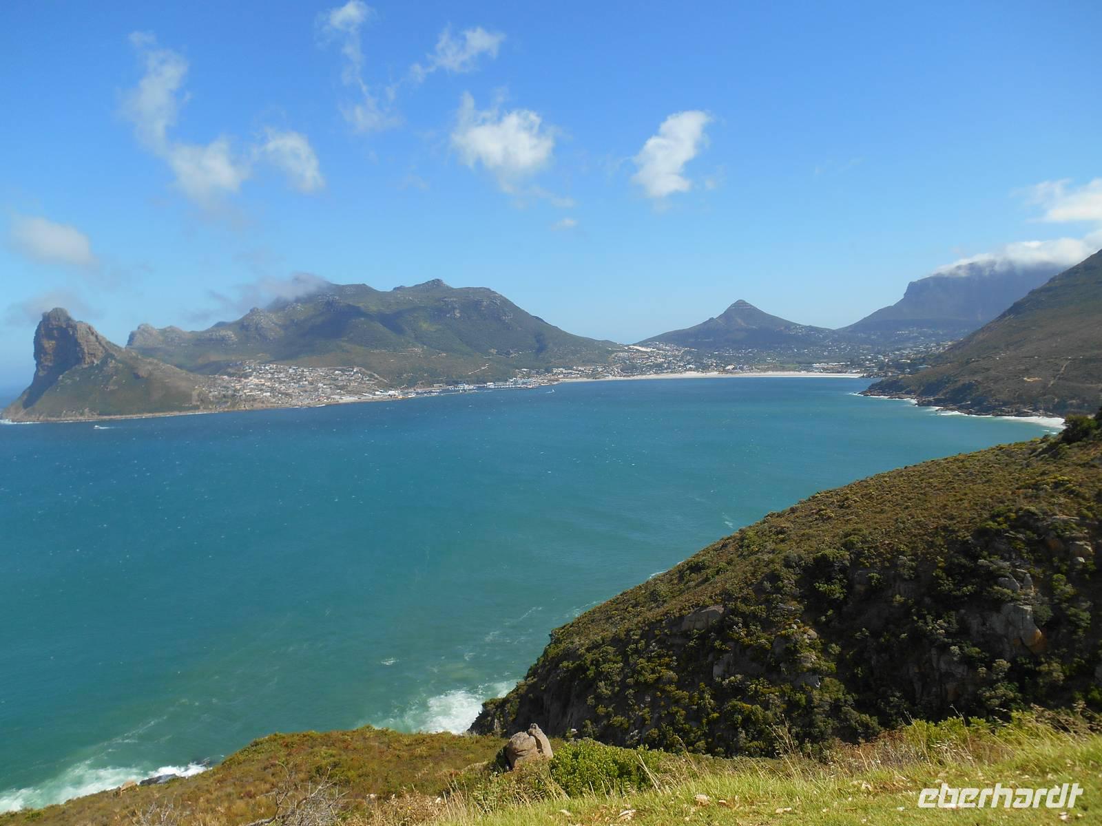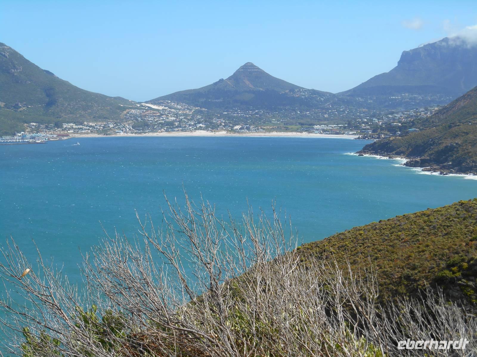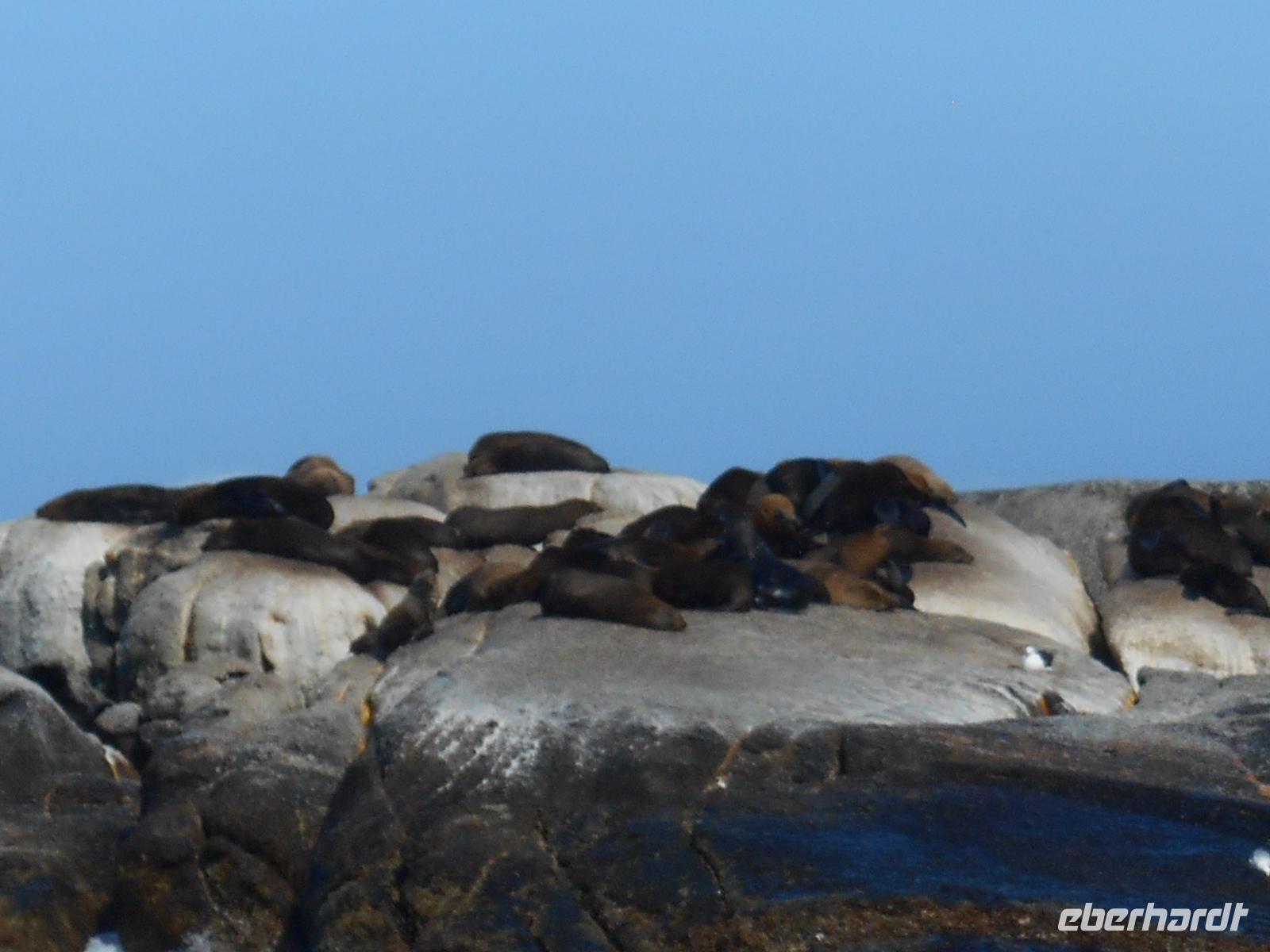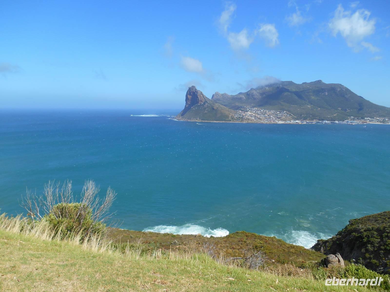 Ausgeruht und gut gestärkt vom reichhaltigen Frühstücksbuffet nahmen wir unsere traumhafte Panoramafahrt in Richtung Süden auf. Die Route führte uns vorerst durch die Küstenorte Camps Bay und Clifton bis zum Hafen von Hout Bay, von wo aus wir eine kleine Schifffahrt zur etwa 1.500 Quadratmeter großen Insel "Duiker Island" unternahmen. In der Sommerzeit tummeln sich hier bis zu 8.000 Robben - wir konnten Hunderte davon beobachten! Nebenbei sieht man hier unzählige Seevögel, die auf die Überreste der Fischfänge der Pelzrobben lauern. Wieder an Land, fuhren wir weiter auf einer der berühmtesten und wohl schönsten Küstenstraßen Südafrikas - dem sog. "Chapman's Peak Drive". Er schlängelt sich in 114 Kurven zwischen Meer und steilen Felswänden von Hout Bay nach Noordhoek entlang und bietet eine wunderschöne Kulisse und atemberaubende Aussichten. Aus diesem Grund drehen auch viele Autokonzerne ihre Werbeaufnahmen hier.
