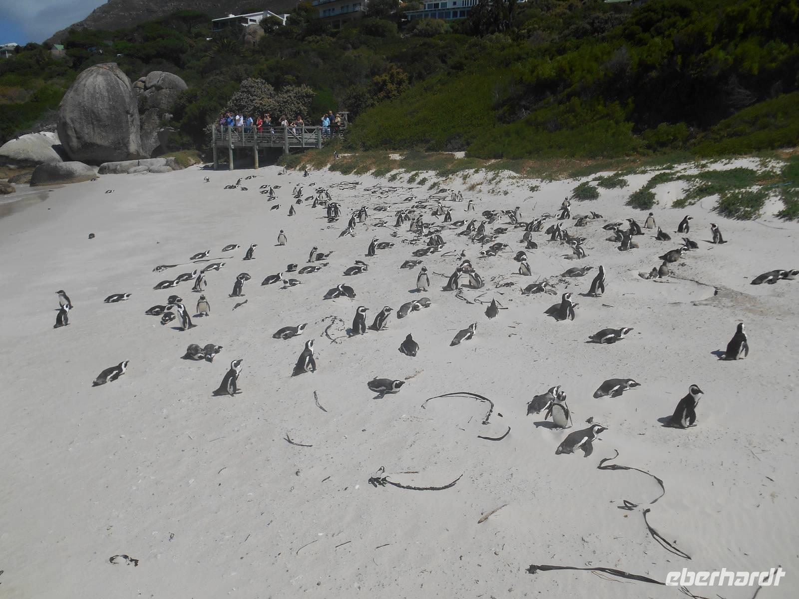 Bekannt ist der Ort unter anderem durch den weltberühmten Strand "Boulders Beach". Auf der ganzen Welt gibt es nur zwei Festlandkolonien von Pinguinen. Die Brillenpinguine sind hier beheimatet und bringen in der Felsenlandschaft oder den naheliegenden Sträuchern des Strandes ihre Jungen zur Welt. Es war durchaus beeindruckend, den Pinguinen so nahe zu sein - das einzig unangenehme hier war der stürmische Wind, der uns den Sand regelrecht in die Augen triebStirnrunzelnd! Da wir genügend Zeit hatten, legten wir am Nachmittag noch einen Stopp im Zentrum von Simon´s Town ein - wir bummelten durch die zahlreichen Geschäfte und tranken gemeinsam Kaffee. Das vom damaligen Kapstädter Gouverneur Simon van der Steel gegründete Hafenstädtchen besitzt viel Geschichte und war seit Mitte des 18. Jahrhunderts der Winter-Ankerplatz für die Niederländische Ostindiengesellschaft in Südafrika. Die Engländer bauten Simon´s Town später als Marinestützpunkt aus und der Hafen galt einst praktisch als britisches Hoheitsgebiet. Die Architektur ist daher sehr britisch geprägt. Die Hauptstraße wird heute "Historical Mile" genannt, weil hier viele historische Häuser einen Einblick in die Geschichte von Kapstadt geben. Diesen erlebnisreichen Tag ließen wir bei einem gemeinsamen Abendessen und einem Glas BierZwinkerndin "Arnold´s Restaurant" ausklingen - das Essen war auch heute wiederum hervorragend!