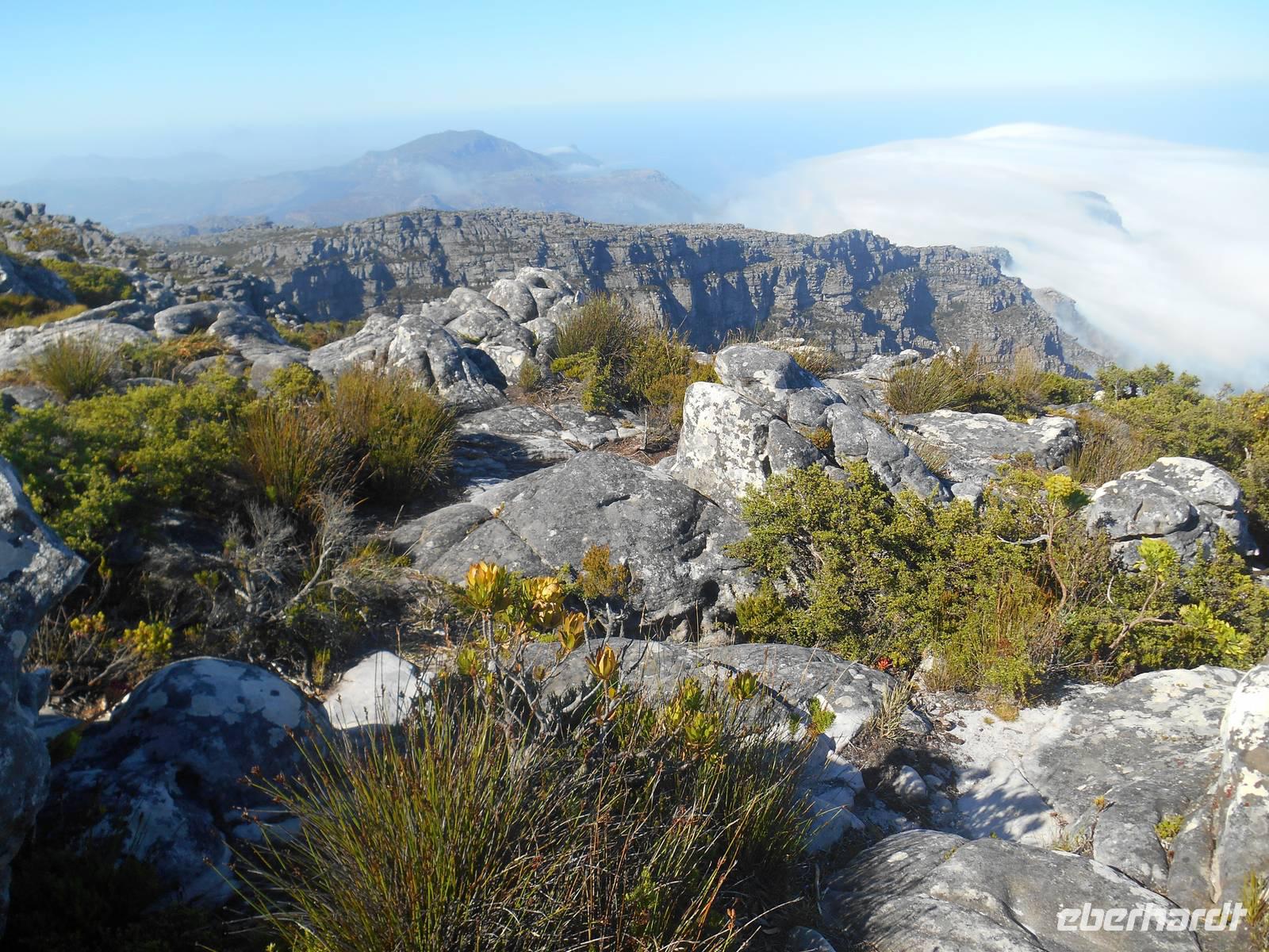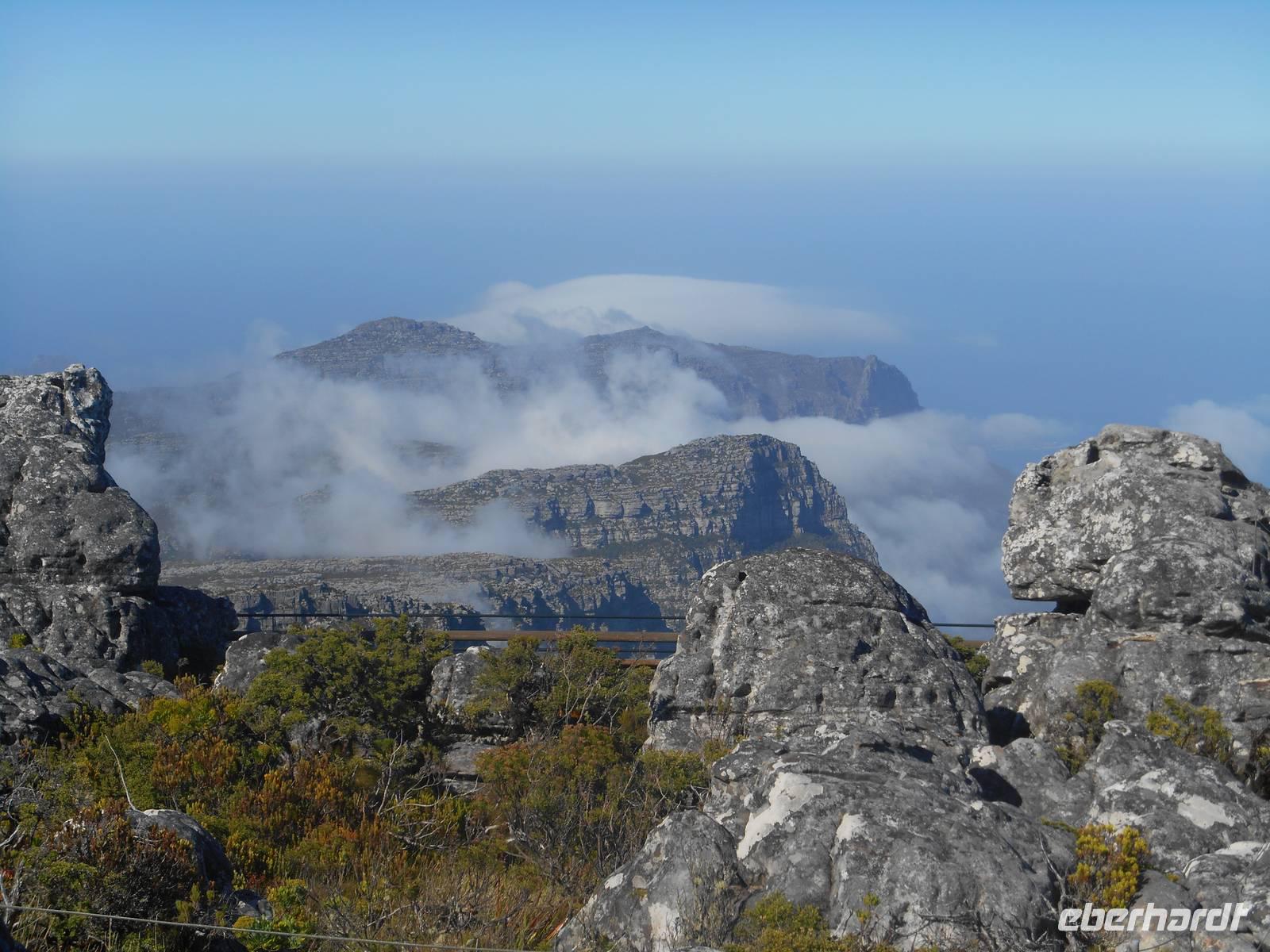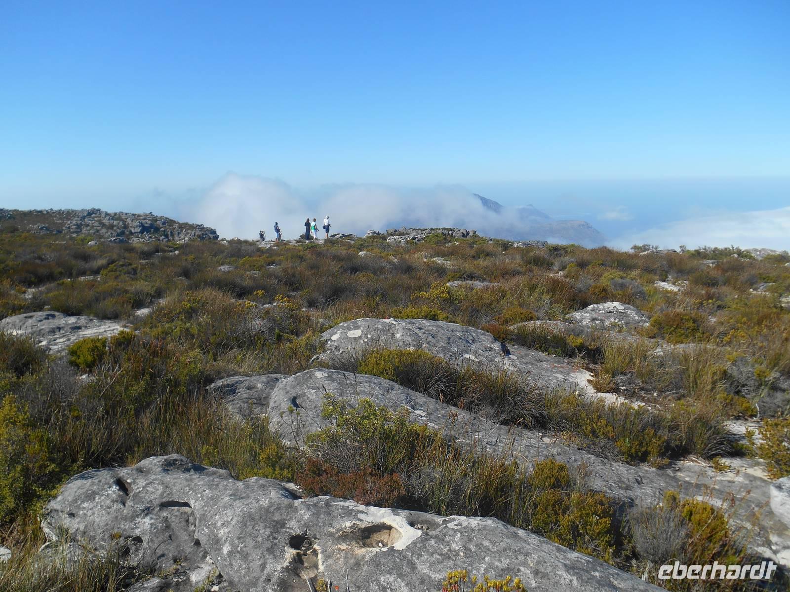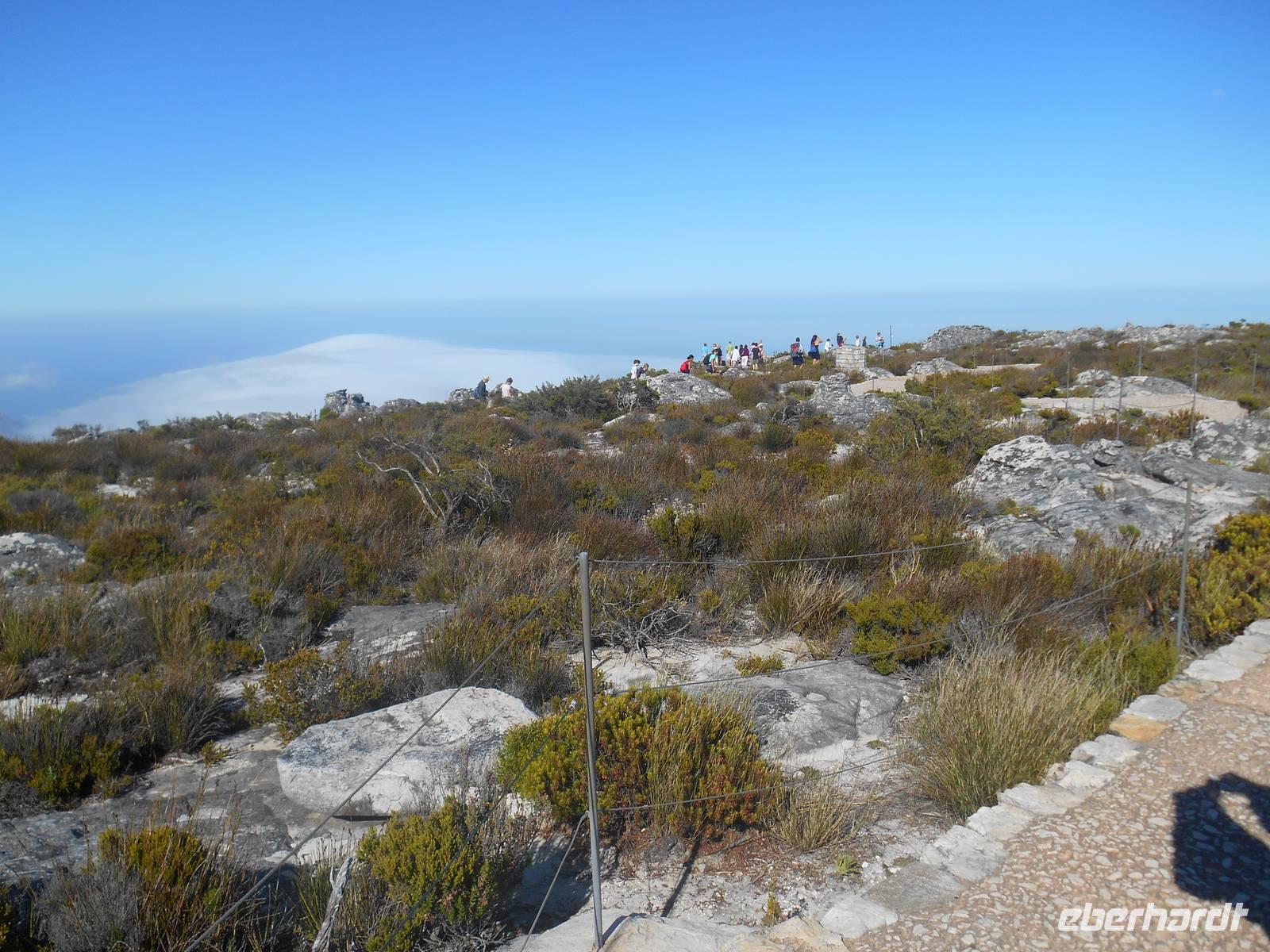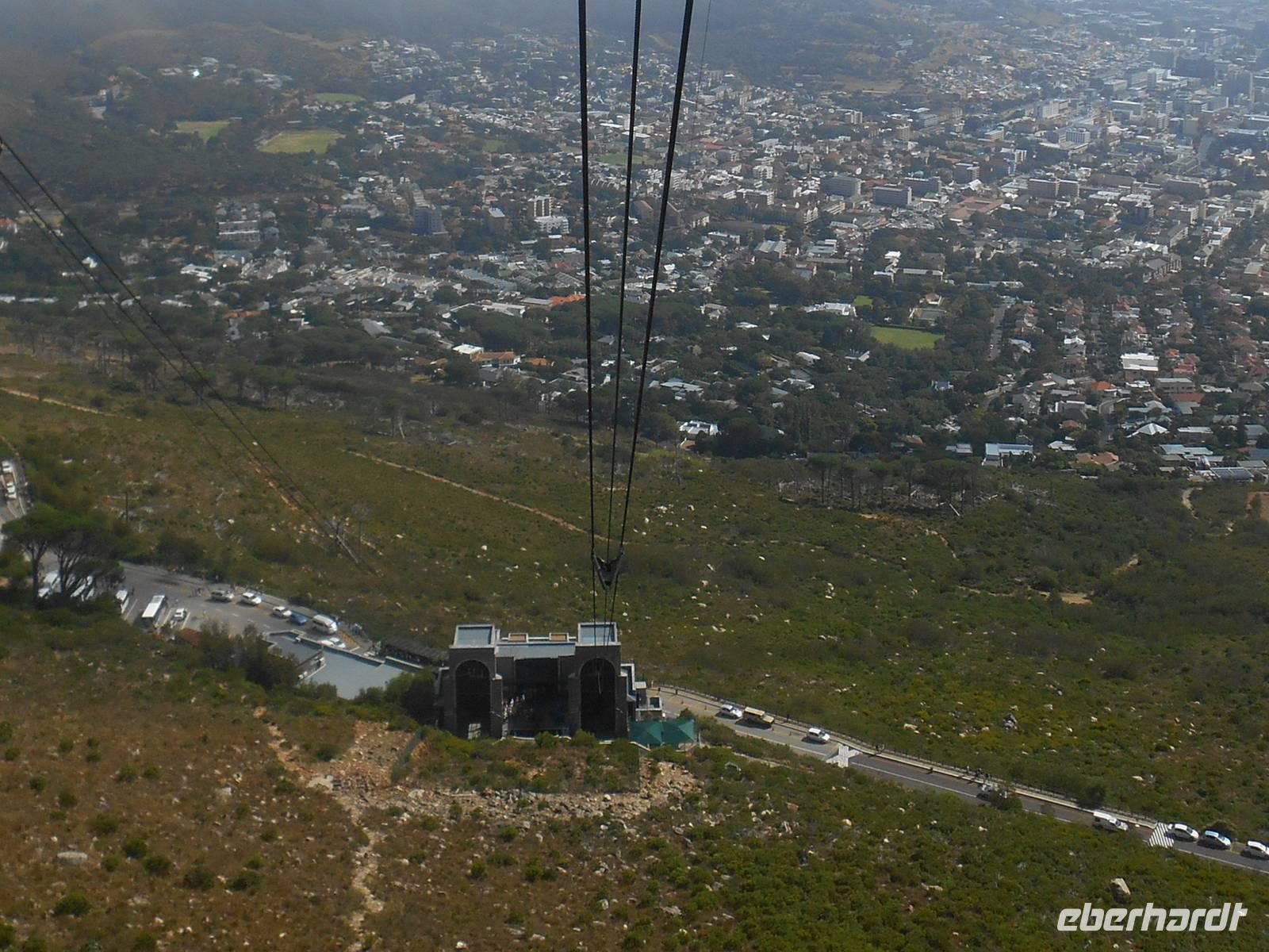Heute stand ein Halbtagesausflug auf unserem Programm. Die ganze Zeit hofften wir auf schönes Wetter und drückten die Daumen, denn bei schlechtem Wetter (vor allem Wind und Nebel) gibt es keine Chance, auf dem Tafelberg zu stehen! Wir aber hatten großes Glück, denn unserer Fahrt auf den Tafelberg stand nichts im Wege. Der Himmel am Morgen war klar und die Sonne lachte und so starteten wir gleich früh um 8 Uhr zur nahe gelegenen Talstation der Seilbahn, die uns bequem auf den Berg hinauf brachte. Wir hatten es auch insofern gut, dass wir nicht lange Anstehen mussten - das zeitige Aufstehen hatte sich also gelohnt! Die Auffahrt dauerte ca. sieben Minuten, und während dieser Zeit rotierte die in der Schweiz hergestellte Gondel um 360°. Somit brauchte niemand darauf achten, an welchem Fenster er steht - sehr praktisch! Schon seit die ersten Seefahrer um das Kap der Guten Hoffnung gesegelt waren, galt der 1.086 Meter hohe Tafelberg als ein Wahrzeichen, welches bei gutem Wetter über 100 Kilometer auszumachen war. Oben auf dem Tafelberg angekommen, ließen wir bei angenehmen 20 Grad in Ruhe das Panorama auf uns wirken - zur Stadtseite hin sahen wir den markanten Felsen des Löwenkopfes bzw. den Signal Hill und nun lag uns endlich auch die Tafelbucht mit Kapstadts Häusermeer zu Füßen. In der Ferne erkannten wir die berühmte historische Insel Robben Island, die jetzt zum wichtigsten Museum des Landes im 21. Jahrhundert wird. Kein anderer Ort im neuen Südafrika ist so sehr mit der Geschichte des Landes verbunden, wie diese Insel in der Tafelbucht. Als 1488 der Portugiese Bartholomeu Diaz das Kap erkundete, fanden nur einige Expeditionen statt. Über 500 Jahre sollten vergehen, bis im demokratischen Südafrika heute Touristen vor allem die Zelle Nummer 5 ansteuern, wo Präsident Nelson Mandela 18 seiner 27 Haftjahre verbringen musste. Natürlich schauten wir auf unserem Rundgang auf dem Tafelberg auch in Richtung Süden, wo sich die Kap-Halbinsel zu unseren Füßen ausbreitete. Es war beeindruckend und wir genossen es in vollen Zügen, denn so langsam machten sich ein paar böse Wolken zu uns auf den WegZwinkernd - der Tafelberg ist für sein tückisches Wetter bekannt, es kann sich nämlich innerhalb weniger Minuten dramatisch ändern. In kürzester Zeit schwankt das Wetter dann von schön warm zu eisig kalt. Teilweise wird es auch innerhalb von Minuten so nebelig, dass man die Hand vor Augen nicht mehr sehen kann! Feuchte Luftmassen, die vom offenen Meer her den Tafelberg als erstes Hindernis überströmen, bilden daher häufig auch das sogenannte "Tischtuch". Das blieb uns allerdings heute Morgen glücklicherweise erspart! Nachdem wir wieder unten waren, bemerkten wir schnell, dass sich das Wetter mittlerweile wirklich ganz schnell verändert hatte und waren ganz einfach nur froh, dass wir es zeitlich alles gut abgepasst hatten!