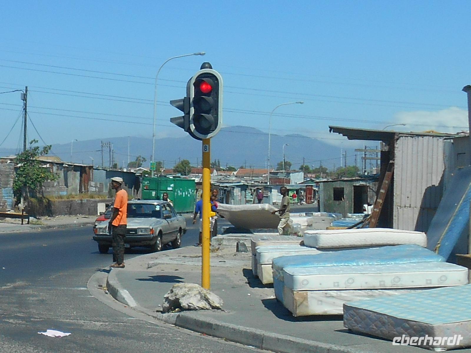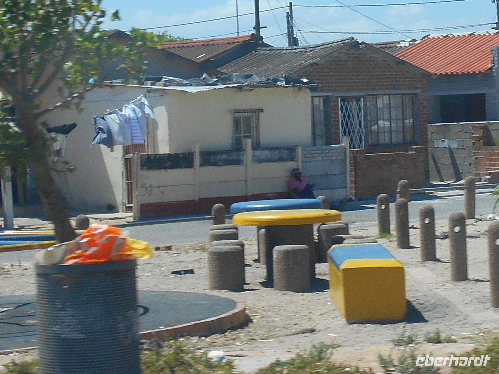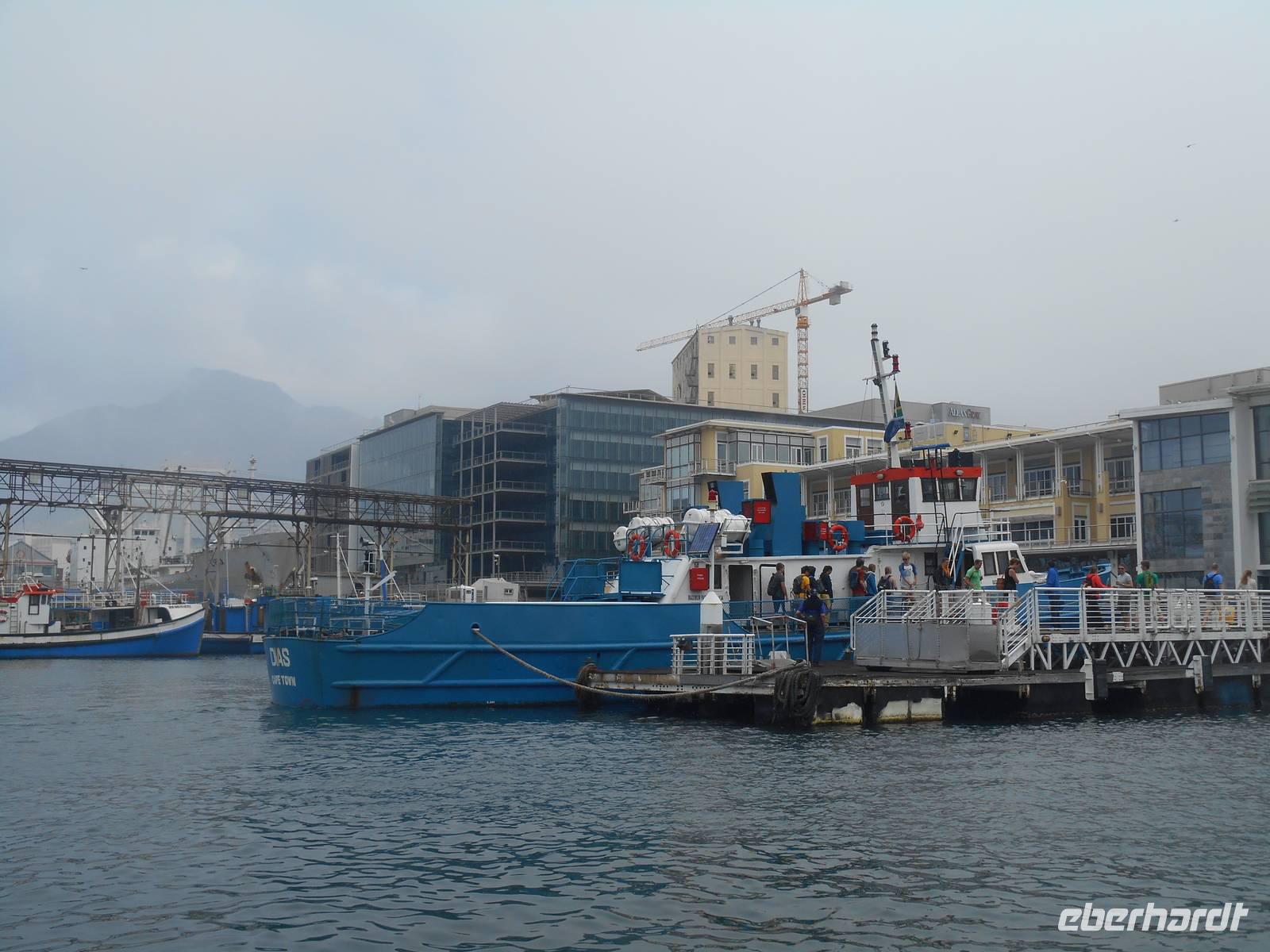 Voller Erwartungen fuhren wir nun hinaus aus der Stadt - unser nächstes Ziel war der Township Philipp in der Nähe des Flughafens. Es ist eines der größeren Townships von Kapstadt und ein relativ junger Stadtteil, welcher erst in den frühen 80er-Jahren entstanden ist. Hier besuchten wir das Gemeindezentrum "Themba Labantu", welches seit 2003 vom deutschen Pastor Otto Kohlstock geleitet wird, um die Situation der Menschen vor Ort zu verbessern. Heute leben an die 500.000 Einwohner in Philippi, ein großer Teil von ihnen in bitterer Armut und an Hunger leidend. Viele sind aus dem Ostkap gekommen, in der Hoffnung auf ein besseres Leben in Kapstadt. Aber Arbeit ist auch hier schwierig zu finden und so enden viele in kleinen Holz- und Blechhütten in dieser Ansiedlung - ohne eigentliches öffentliches Sozialsystem, mit der höchsten Mordrate von ganz Südafrika und mit einer AIDS-Rate von ca. 40%. Die Regierung kann ihr Versprechen, allen Südafrikanern ein gemauertes Haus und eine Grundversorgung zu liefern, nicht einhalten. So lebt die Hälfte der Familien in Philippi, wie in anderen Townships und informalen Siedlungen, ohne Toilette und Kanalisationsanschluss - die Gemeinschaftstoiletten sind in einem schlechten Zustand und extrem unhygienisch. Nur die Hälfte der Einwohner verfügt über Elektrizität. Theoretisch ist Schulbildung kostenlos, aber 30% der Kinder aus Philippi besuchen heute keine Grundschule, weil Bücher, Gebühren und Schuluniformen für die Eltern unbezahlbar sind. Zudem ist die Qualität der öffentlichen Schulen sehr schlecht, was dazu führt, dass viele Studenten vorzeitig die Schule verlassen. Die Arbeitslosenquote von Jugendlichen von gegen 50% kann deshalb nicht überraschen. Wir erfuhren viele interessante Fakten und von einer deutschen jungen Frau, die hier in Südafrika ein freiwilliges soziales Jahr absolviert, wurden wir durch die Anlage geführt. Wir besuchten das neue Gesundheitszentrum, welches immerhin Platz für 20 AIDS-Patienten im fortgeschrittenen Stadium bietet und die Schule bzw. erhielten einen Einblick in die hier geleistete Jugendarbeit, um die Kinder von der Straße zu ziehen, wo sie mit Drogen und Kriminalität konfrontiert werden. Dieser Besuch hat uns alle sehr bewegt - es ist ganz sicher nur ein winziger Teil, dem hier geholfen werden kann, aber es ist immerhin ein Anfang! Am frühen Nachmittag kehrten wir ins touristische Zentrum von Kapstadt zurück und besichtigten in unserer Freizeit gemeinsam das "Two Ocean Aquarium" an der Waterfront, wo wir einen tollen Einblick in die faszinierende Unterwasserwelt erhielten. Seinen Namen verdankt die Kapstädter Sehenswürdigkeit übrigens dem Umstand, dass ausschließlich tierische und pflanzliche Bewohner des Atlantiks und des Indischen Ozeans bestaunt werden können, eben genau den beiden Meeren, die an die Küsten Südafrikas beheimatet sind. Eine kleine Hafenrundfahrt rundete den Tag ab - leider zeigte das Wetter nun kein Einsehen mehr mit uns, denn der Himmel weinte!