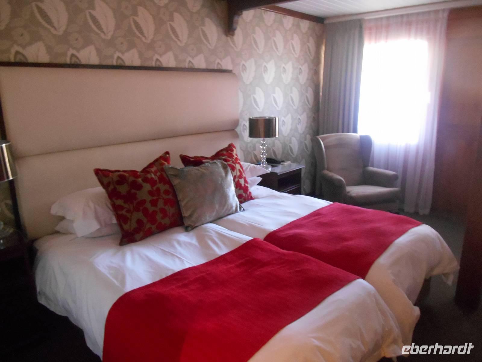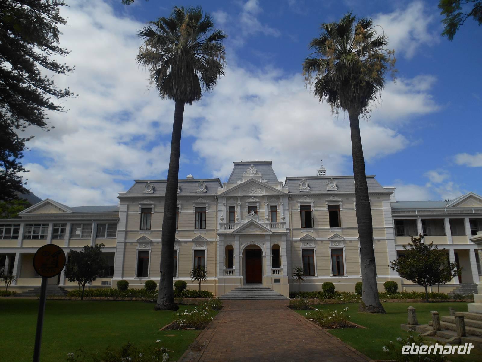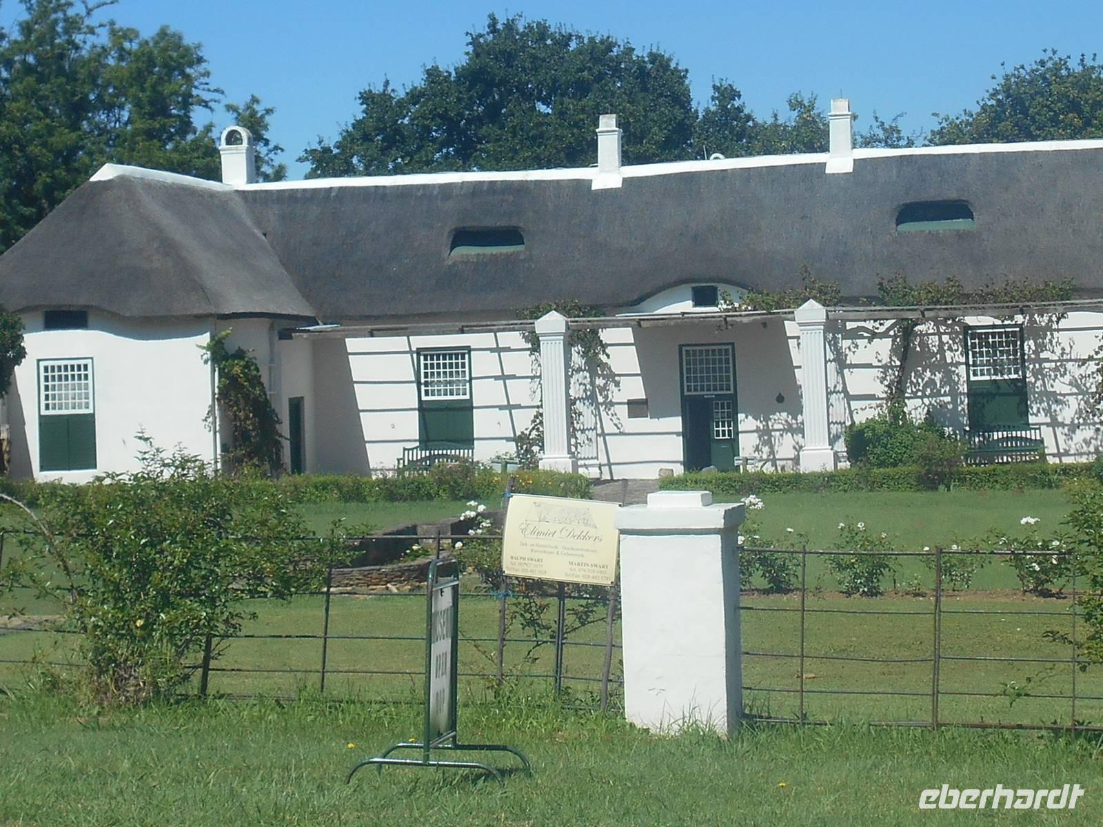 Gegen 9 Uhr ging es los - und zwar ins Weinland, heute zur Abwechslung mal mit einem anderen Bus und Reiseleiter Egon! Das Weinland konzentriert sich im Städtedreieck Stellenbosch-Franschhoek-Paarl und ist die Wiege des südafrikanischen Weinanbaus - seit 340 Jahren werden hier Trauben angebaut und gepresst. Unser erstes Ziel war das Weingut "Zevenwacht", welches an der "Stellenbosch Wine Route" liegt. Die Ursprünge des Weingutes reichen weit in die Geschichte Südafrikas zurück. Im 17. Jahrhundert gründete der Weinfarmer Jean Le Roux das Weingut "Lanverwacht" (lange erwartet). Im Jahre 1798 übernahm Pieter de Waal das Weingut und später ging auch das Nachbarweingut "Zevenfontein" (Sieben Quellen) in seinen Besitz über und beide Weingüter wurden verschmolzen zu "Zevenwacht". Heute werden auf ca. 200 Hektar des insgesamt 450 Hektar umfassenden Besitzes Trauben angebaut. Der Önologe Jacques Viljoen verbindet Tradition mit Moderne und erzeugt so wunderbare Weine mit Charakter und südafrikanischem Temperament. Davon konnten wir uns bei der Verkostung von vier Weinen schließlich überzeugen! Auch eine eigene Käserei wird hier betrieben - der Geschmack ist ebenfalls vorzüglich! Abschließend nahmen wir an einer kurzen Kellerführung teil und schon ging es weiter nach Stellenbosch, der zweitältesten Stadt Südafrikas. Die Stadt liegt in einem sehr fruchtbaren Tal und wurde als Zentrum eines der besten südafrikanischen Weinanbaugebiete und als Sitz der renommierten Stellenbosch-Universität bekannt. Außerdem ist Stellenbosch berühmt für seinen Reichtum an historischer Bausubstanz. Von allen Siedlungen, die am Kap während der Zeit der Holländisch-Ostindischen Handelskompanie gegründet wurden, ist die Innenstadt von Stellenbosch am besten erhalten geblieben. So bekamen wir während unseres Aufenthaltes in diesem idyllisch gelegenen Städtchen hervorragende Zeugnisse kapholländischer, aber auch viktorianischer Architektur zu sehen. Die Mittagspause auf dem Weingut "Allée Bleu" nutzten wir für einen Spaziergang durch die Anlage. Am Nachmittag legten wir einen kurzen Stopp am Hugenotten-Museum in Franschhoek ein und letztendlich erreichten wir Paarl, wo wir im Weingut "KWV" zu einer Verkostung von fünf verschiedenen Weinen/Brandys/Likören erwartet wurden. Es ist ja längst kein Geheimnis mehr, dass die Weine vom Kap der Guten Hoffnung zur Weltspitze zählen. Seit jeher bieten die beeindruckenden Landschaften Südafrikas beste Voraussetzungen für hervorragenden Weinanbau und einen entscheidenden Anteil am heute so hohen Qualitätsniveau hat die KWV, Südafrikas wohl bedeutendster Weinerzeuger. Die Weine der KWV sind Bestseller. Ein großer Teil der vom Kap der Guten Hoffnung in alle Welt exportierten Weine stammt aus ihren Kellern in Paarl. Das Kürzel KWV für die 1918 vor fast 100 Jahren gegründete „Kooperatieve Wijnbouwers Vereniging" ist international längst zu einem Siegel für herausragende Qualität geworden. In Kapstadt zurück, fuhren wir mit dem Taxi zum gemeinsamen Abendessen im Restaurant "Five Flies", welches als eines der kultigsten Restaurants in Kapstadt gilt! Es befindet sich in einem denkmalgeschützten Gebäude, in dem früher eine Bank eingerichtet war. Eigentlich besteht es aus zwei Gebäuden und im Zentrum befindet sich ein Innenhof, wo wir Platz nehmen durften und sofort vom angenehmen Ambiente begeistert waren. Leider waren wir letztendlich vom Essen enttäuscht - schließlich hatten wir die letzten drei Abende in Kapstadt hervorragend gespeist - unsere Steaks entsprachen so gar nicht unseren VorstellungenWeinend!