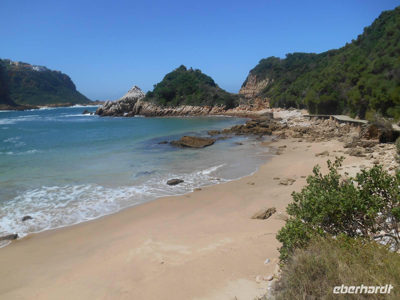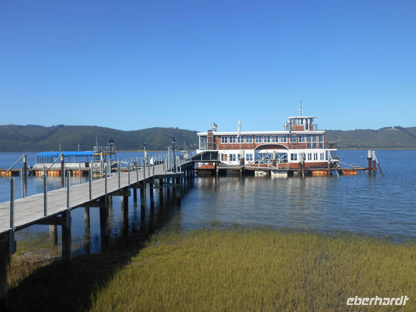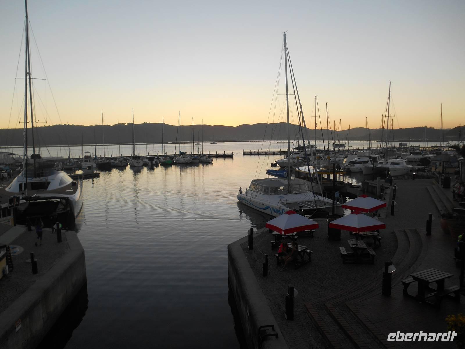 Satt und zufrieden besuchten wir am Nachmittag das Dias-Museum in Mossel Bay - etwas Kultur musste dann doch noch sein! Das Bartolomeu Dias-Museum ist sicherlich das Interessanteste, was man in Mossel Bay besichtigen kann. Mitten in der Stadt und etwas oberhalb des Hafens gelegen, kann man schöne Blicke genießen. Bartolomeu Dias landete 1488 als erster Europäer in der Bucht von Mossel Bay. Allerdings wurde er von den hier lebenden Hottentotten nicht gerade freundlich empfangen, und so musste er ohne die erhoffte Auffüllung der Fleischvorräte weitersegeln. Wesentlich bessere Bedingungen fand einige Jahre darauf Vasco da Gama vor, der hier im November 1497 eintraf. Nach seiner erfolgreichen Landung entwickelte sich der Ort zum Anlaufpunkt für portugiesische Schiffe, die hier Frischwasser aufnahmen und ihre Vorräte ergänzten. Die Seefahrer entwickelten auch ein System für die Kommunikation. In einem alten Milchholz-Baum hing ein Stiefel, in dem die Seeleute Nachrichten für andere Schiffe hinterließen. Heute erinnert ein steinerner Schuh oberhalb des Strandes von Mossel Bay an diesen "Post-Office-Tree". Im Dias-Museum besichtigten wir einen Nachbau des Segelschiffes, das Dias auf seiner Reise im Jahre 1488 benutzte. Die Karavelle wurde in Portugal gebaut und segelte 1988 zum 500sten Geburtstag des Seefahrers nach Mossel Bay - absolut sehenswert! Weitere knapp 90 Minuten mit dem Bus und wir erreichten Knysna, insgesamt lagen jetzt am heutigen Tag ca. 500 Kilometer hinter uns! Wir waren froh, im Hotel "Knysna Log-Inn" angekommen zu sein, unserem Domizil für die nächsten zwei Nächte. Am Abend spazierten wir dann zur hiesigen Waterfront, um im Restaurant "Drydock" zu Abend zu essen; auch hier wurden wir wieder kulinarisch verwöhnt - es gab frische Austern und köstliche Muscheln, einfach nur lecker! Wenn man in Knysna ist, sollte man auf alle Fälle die frischen Austern probieren. In der Lagune gibt es die größte Austernzucht von Südafrika und nirgendwo im Land kann man frischere bzw. köstlichere Muscheln auf den Tisch bekommen!