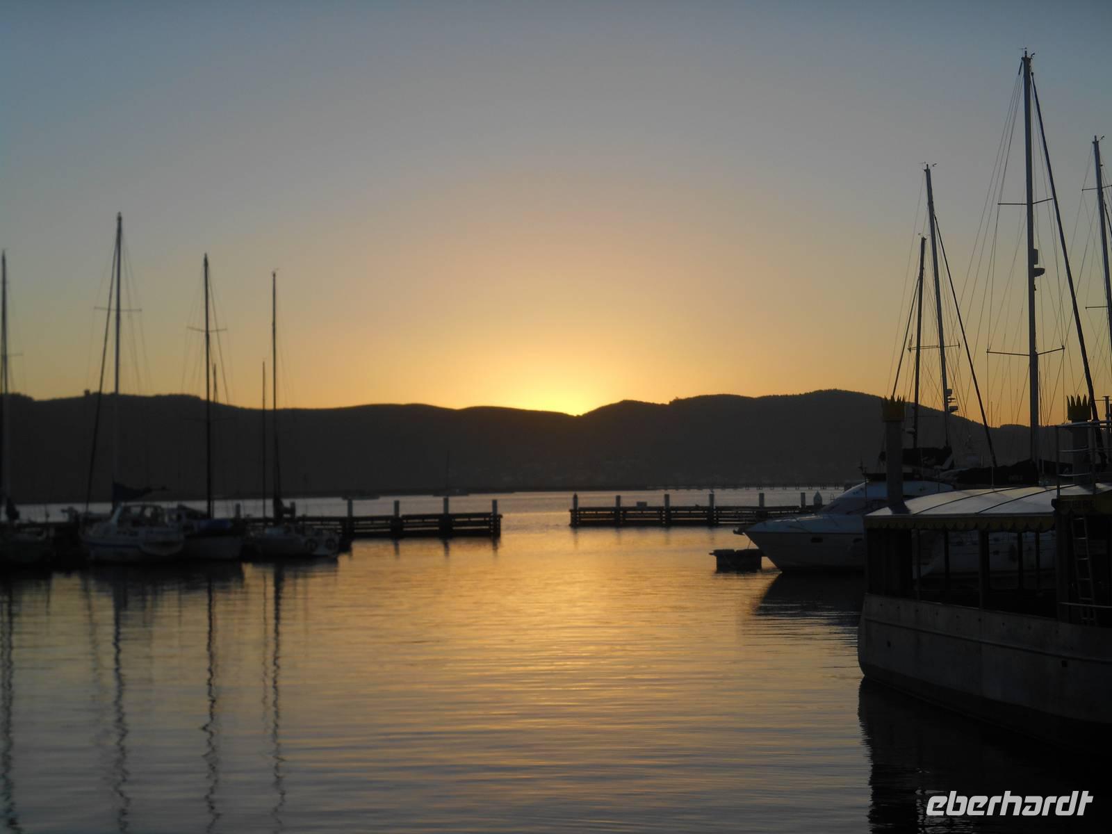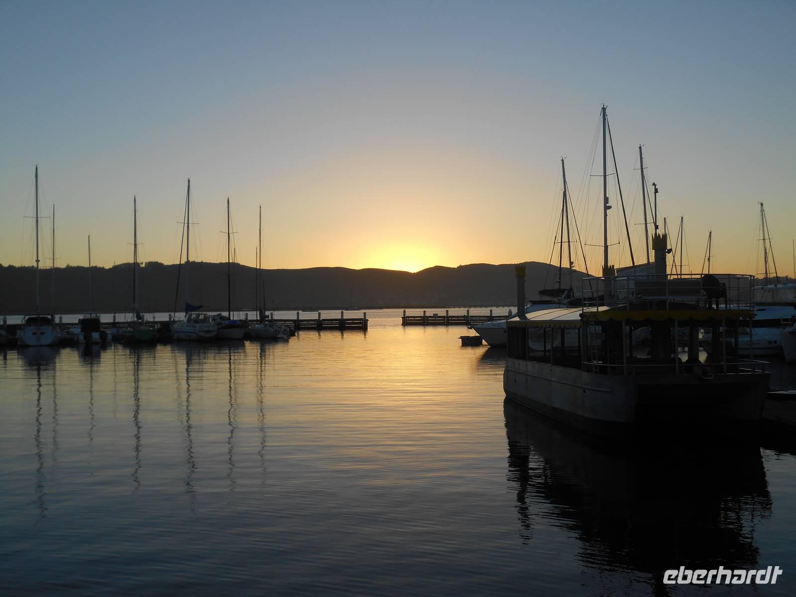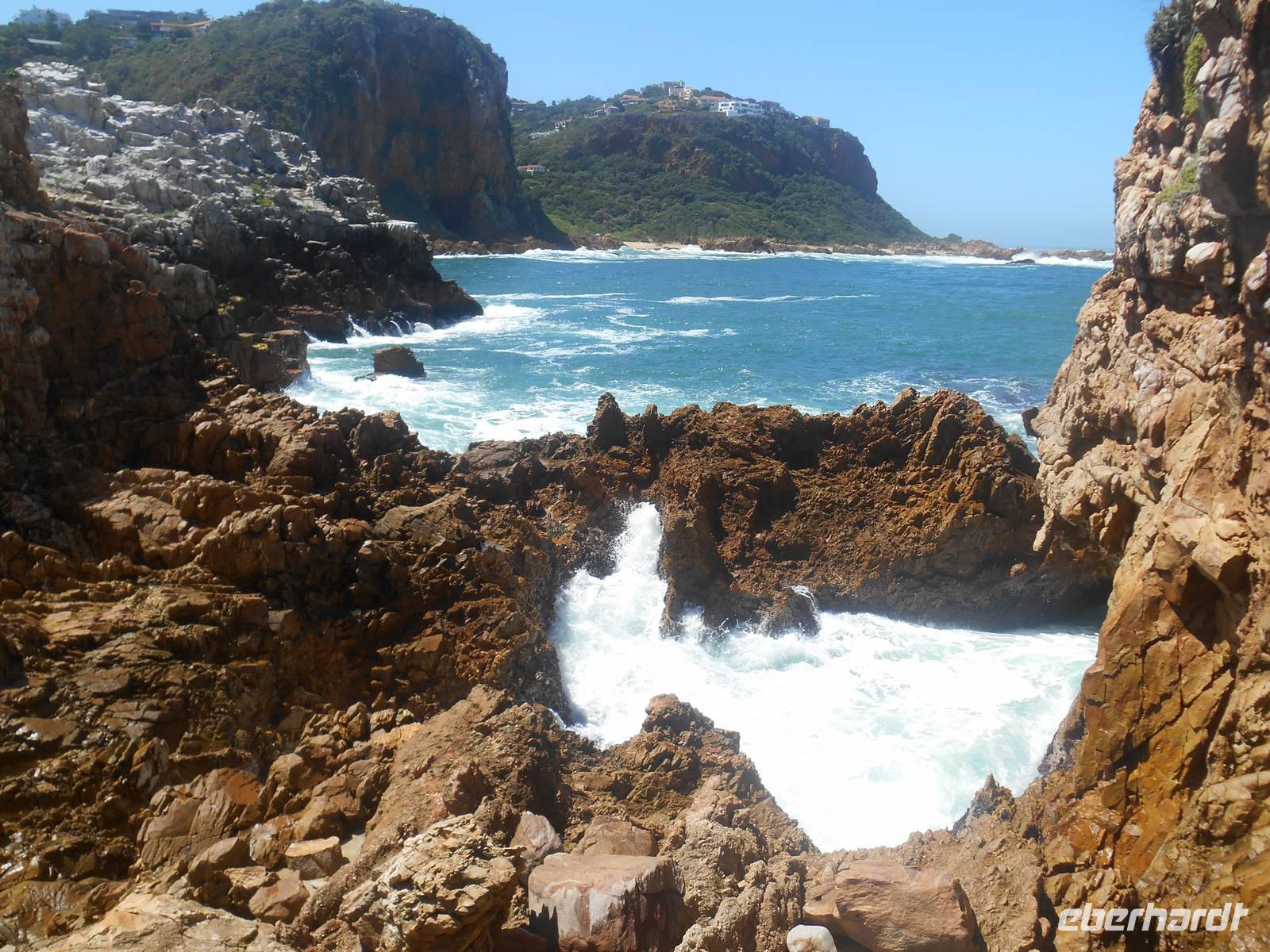 Satt und zufrieden besuchten wir am Nachmittag das Dias-Museum in Mossel Bay - etwas Kultur musste dann doch noch sein! Das Bartolomeu Dias-Museum ist sicherlich das Interessanteste, was man in Mossel Bay besichtigen kann. Mitten in der Stadt und etwas oberhalb des Hafens gelegen, kann man schöne Blicke genießen. Bartolomeu Dias landete 1488 als erster Europäer in der Bucht von Mossel Bay. Allerdings wurde er von den hier lebenden Hottentotten nicht gerade freundlich empfangen, und so musste er ohne die erhoffte Auffüllung der Fleischvorräte weitersegeln. Wesentlich bessere Bedingungen fand einige Jahre darauf Vasco da Gama vor, der hier im November 1497 eintraf. Nach seiner erfolgreichen Landung entwickelte sich der Ort zum Anlaufpunkt für portugiesische Schiffe, die hier Frischwasser aufnahmen und ihre Vorräte ergänzten. Die Seefahrer entwickelten auch ein System für die Kommunikation. In einem alten Milchholz-Baum hing ein Stiefel, in dem die Seeleute Nachrichten für andere Schiffe hinterließen. Heute erinnert ein steinerner Schuh oberhalb des Strandes von Mossel Bay an diesen "Post-Office-Tree". Im Dias-Museum besichtigten wir einen Nachbau des Segelschiffes, das Dias auf seiner Reise im Jahre 1488 benutzte. Die Karavelle wurde in Portugal gebaut und segelte 1988 zum 500sten Geburtstag des Seefahrers nach Mossel Bay - absolut sehenswert! Weitere knapp 90 Minuten mit dem Bus und wir erreichten Knysna, insgesamt lagen jetzt am heutigen Tag ca. 500 Kilometer hinter uns! Wir waren froh, im Hotel "Knysna Log-Inn" angekommen zu sein, unserem Domizil für die nächsten zwei Nächte. Am Abend spazierten wir dann zur hiesigen Waterfront, um im Restaurant "Drydock" zu Abend zu essen; auch hier wurden wir wieder kulinarisch verwöhnt - es gab frische Austern und köstliche Muscheln, einfach nur lecker! Wenn man in Knysna ist, sollte man auf alle Fälle die frischen Austern probieren. In der Lagune gibt es die größte Austernzucht von Südafrika und nirgendwo im Land kann man frischere bzw. köstlichere Muscheln auf den Tisch bekommen!