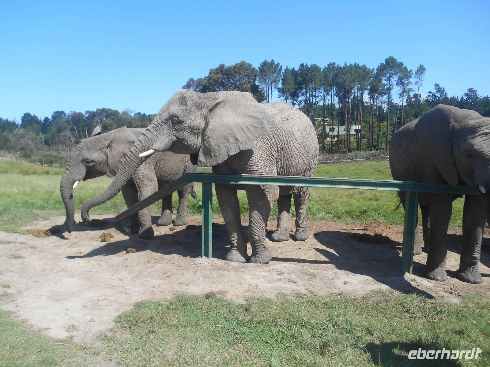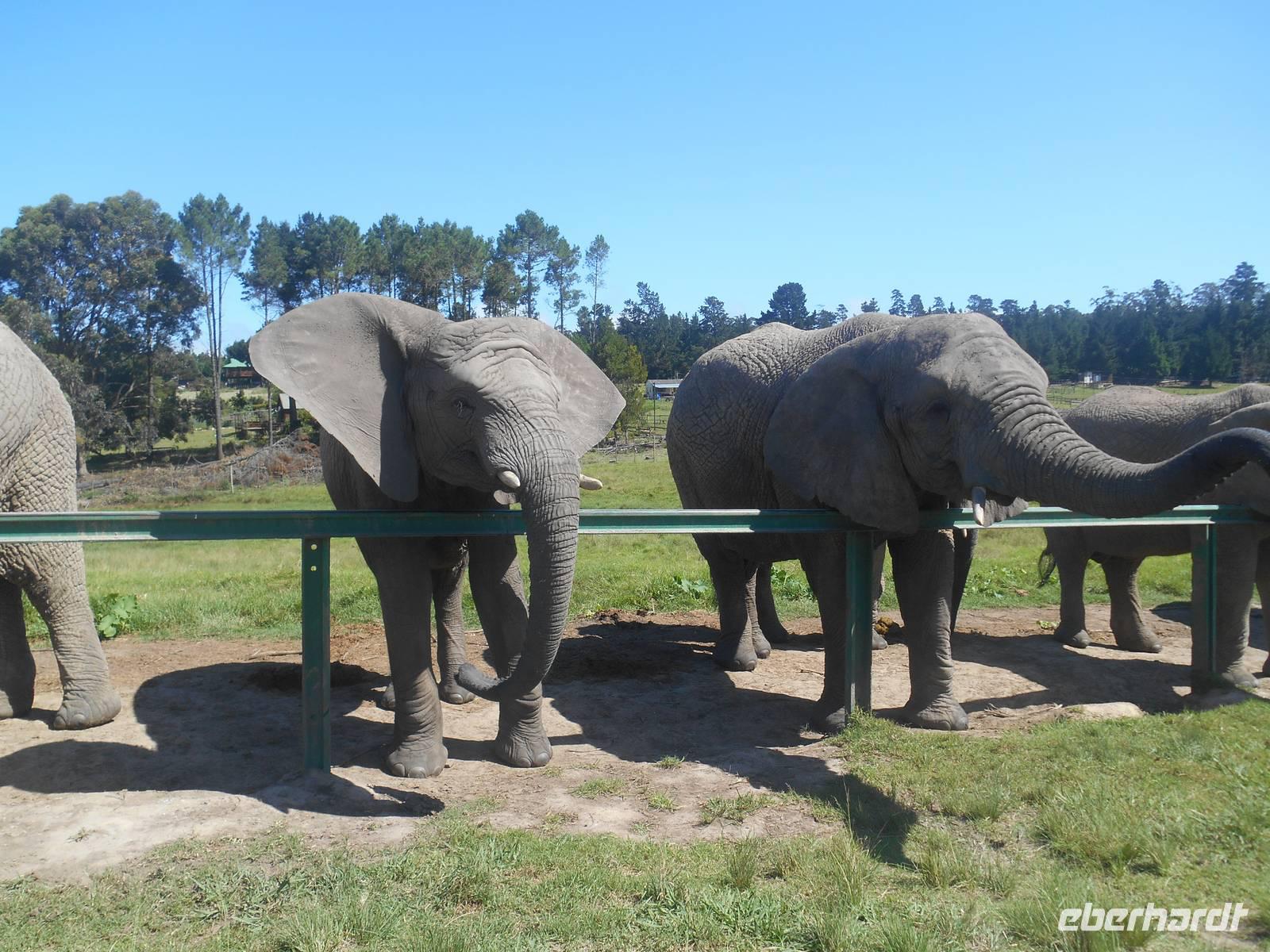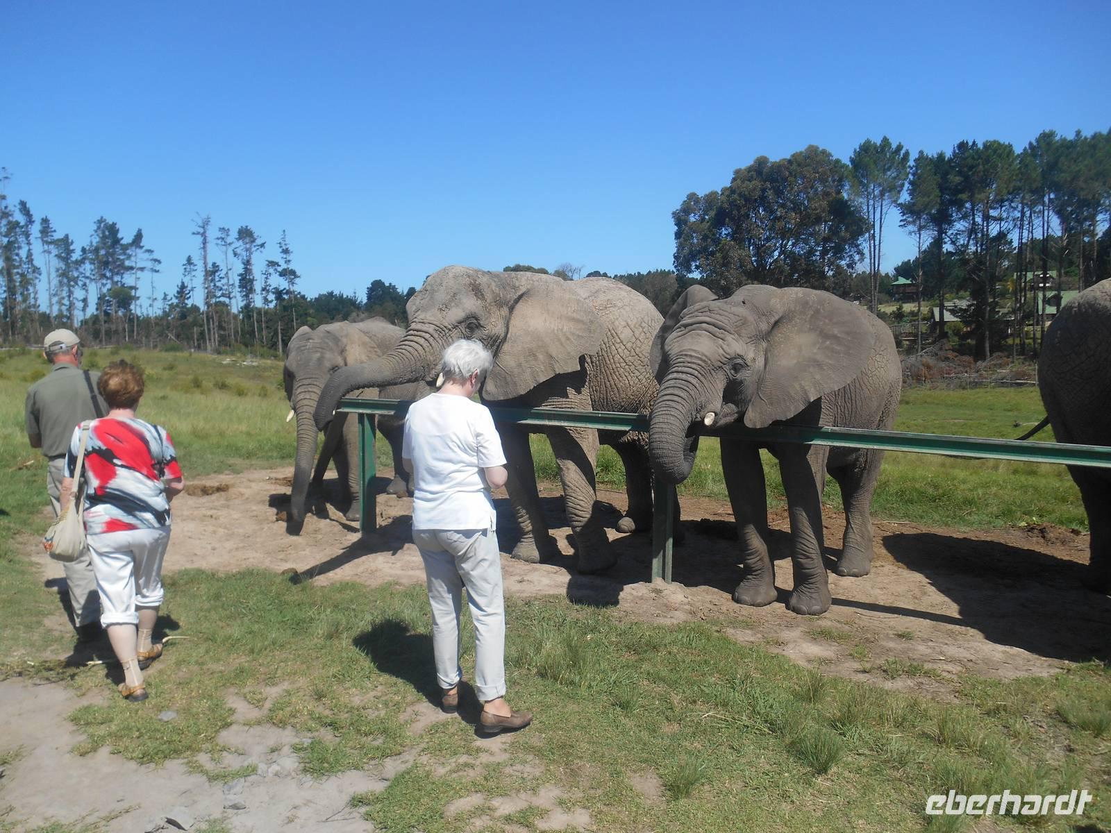 Der Nachmittag stand eigentlich zur freien Verfügung, wir entschlossen uns jedoch für einen Besuch im privaten Knysna Elephant Park. Hier leben 10 Elefanten, die bis auf Thandi allesamt Waisen sind. Die Elefanten haben hier auf einem 60 Hektar großen Gelände eine artgerechte und sichere Heimat gefunden. Sie sind zahm und unter der sachkundigen Führung von Wärtern kann man ganz nah an sie heran, sie füttern und sogar streicheln - eine tolle Erfahrung, wo man hautnah in die faszinierende Welt der Elefanten abtauchen kann!