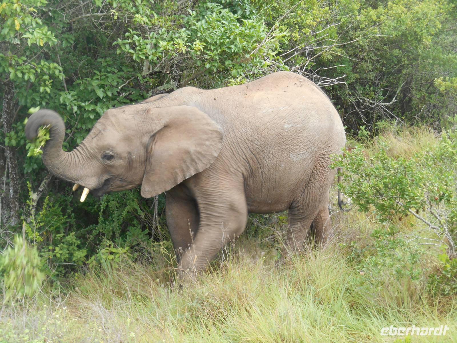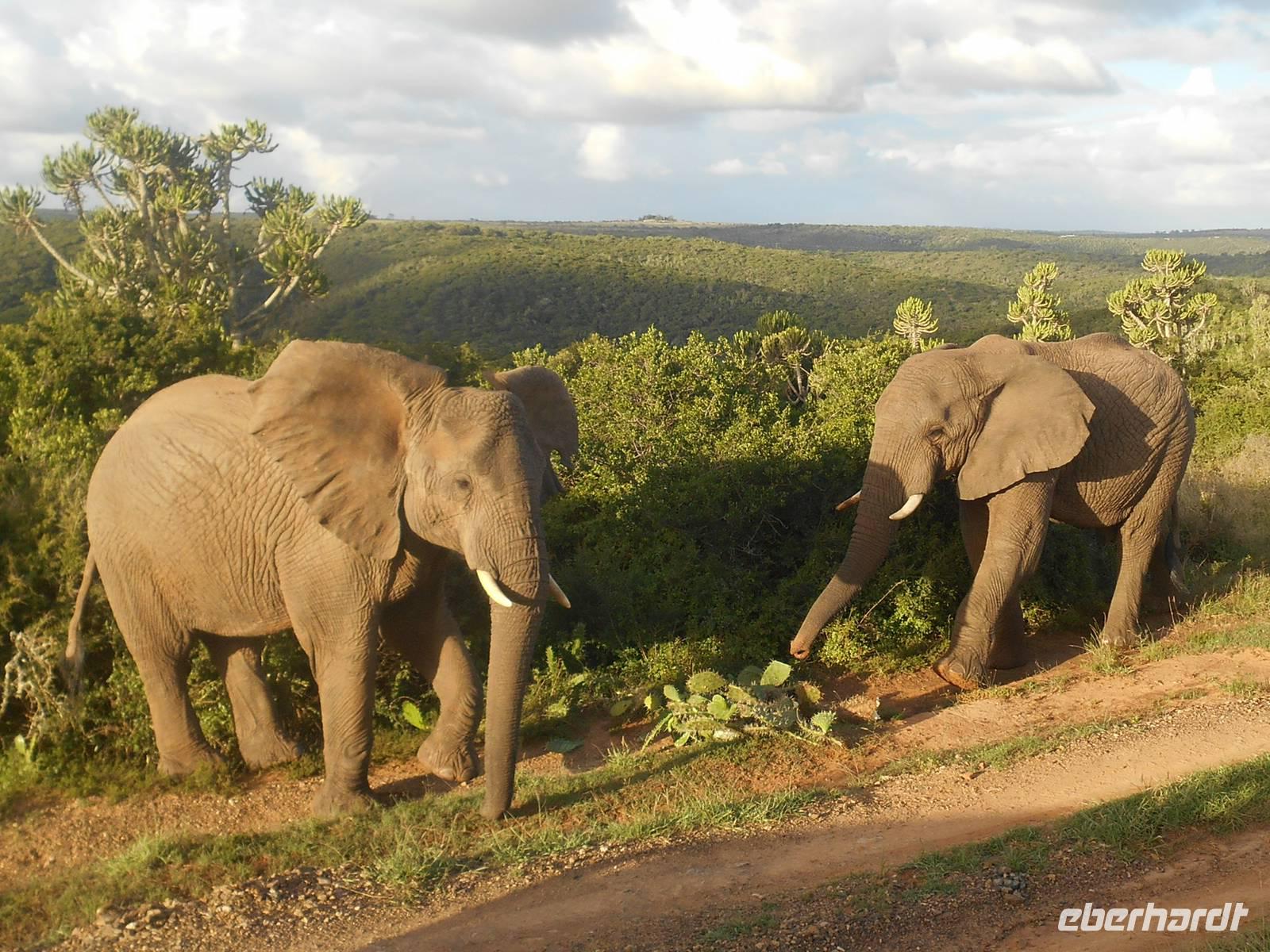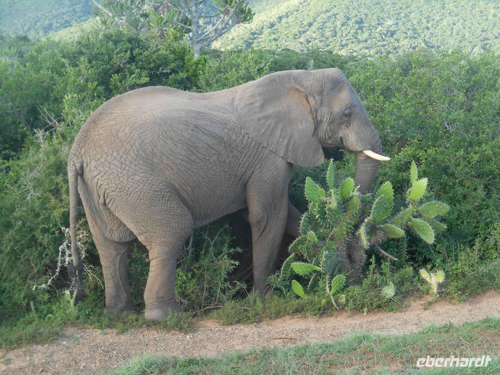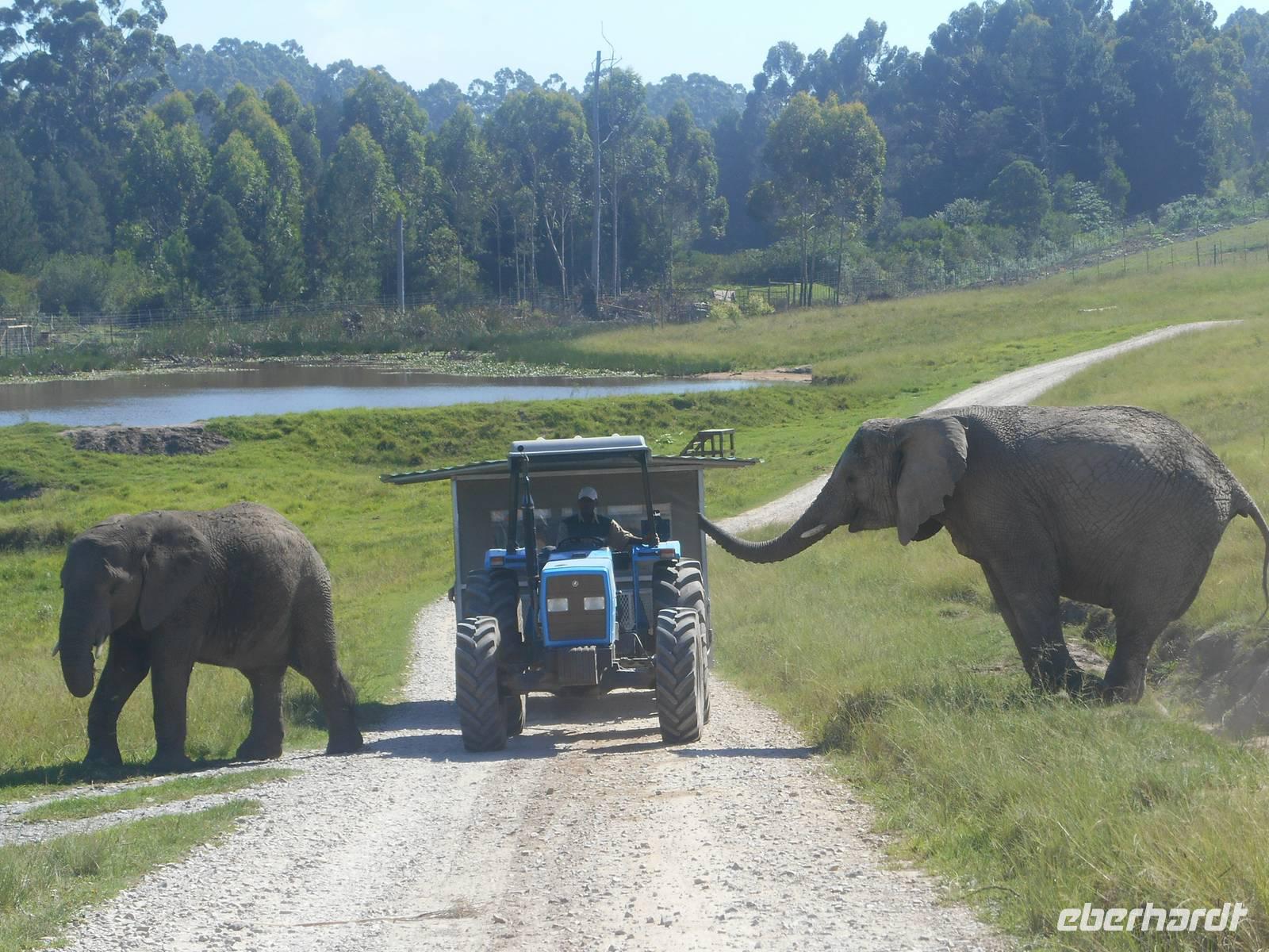 Der Nachmittag stand eigentlich zur freien Verfügung, wir entschlossen uns jedoch für einen Besuch im privaten Knysna Elephant Park. Hier leben 10 Elefanten, die bis auf Thandi allesamt Waisen sind. Die Elefanten haben hier auf einem 60 Hektar großen Gelände eine artgerechte und sichere Heimat gefunden. Sie sind zahm und unter der sachkundigen Führung von Wärtern kann man ganz nah an sie heran, sie füttern und sogar streicheln - eine tolle Erfahrung, wo man hautnah in die faszinierende Welt der Elefanten abtauchen kann!