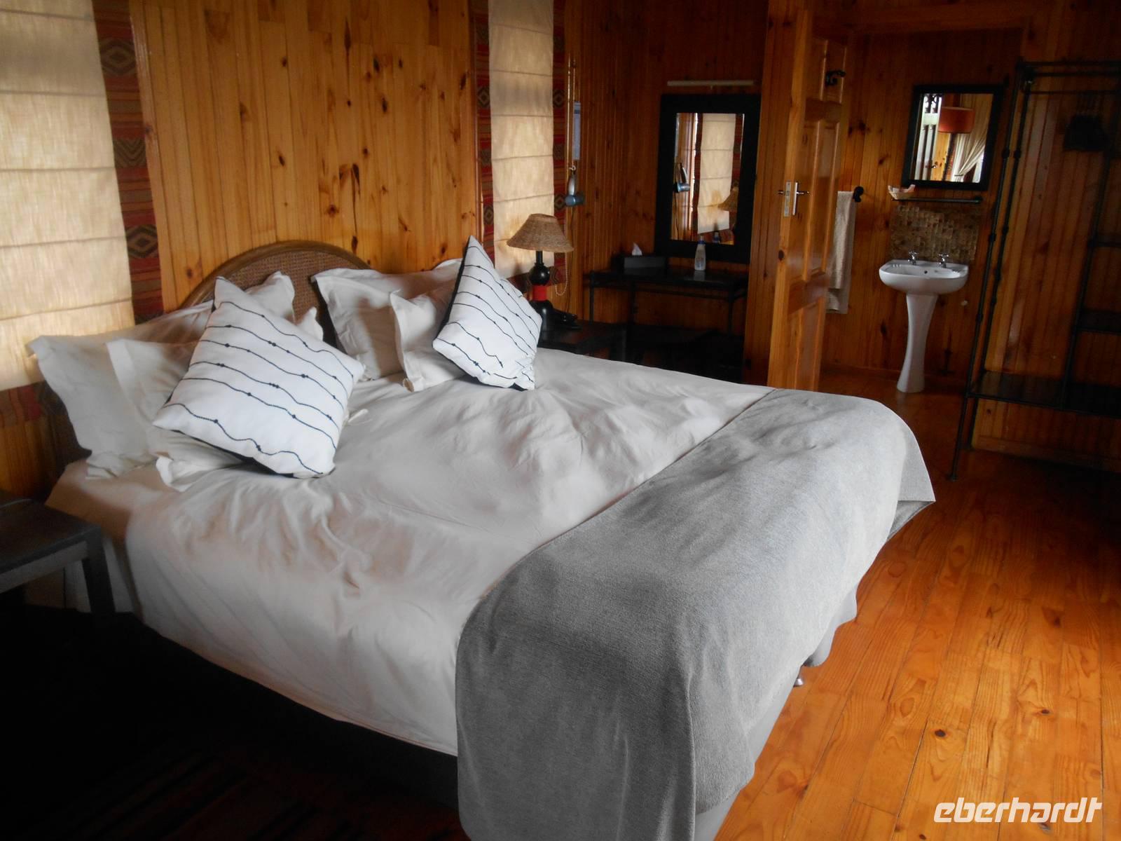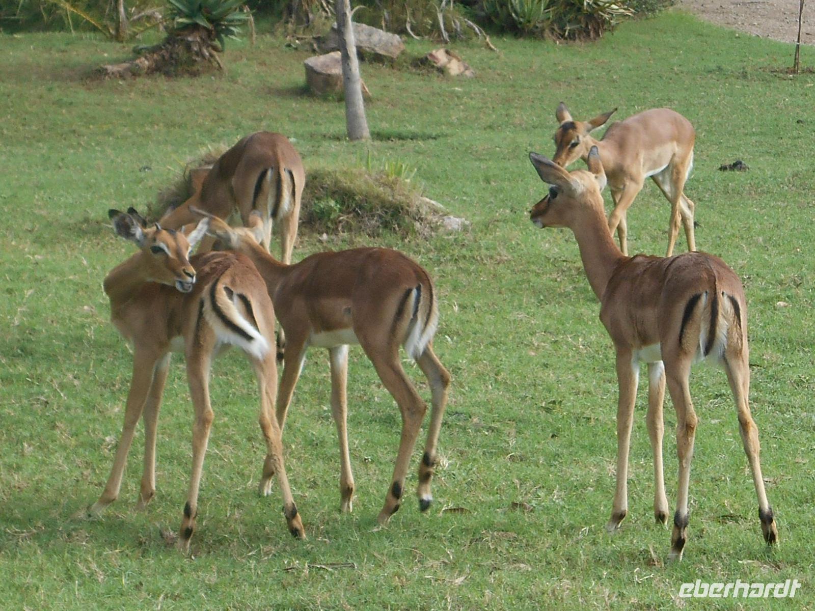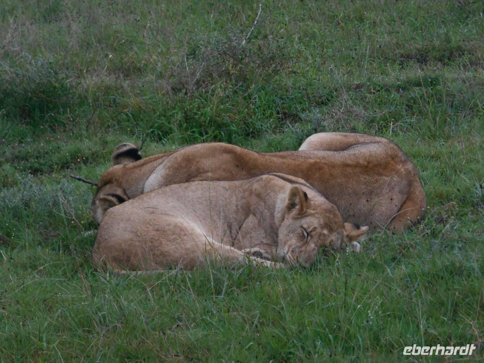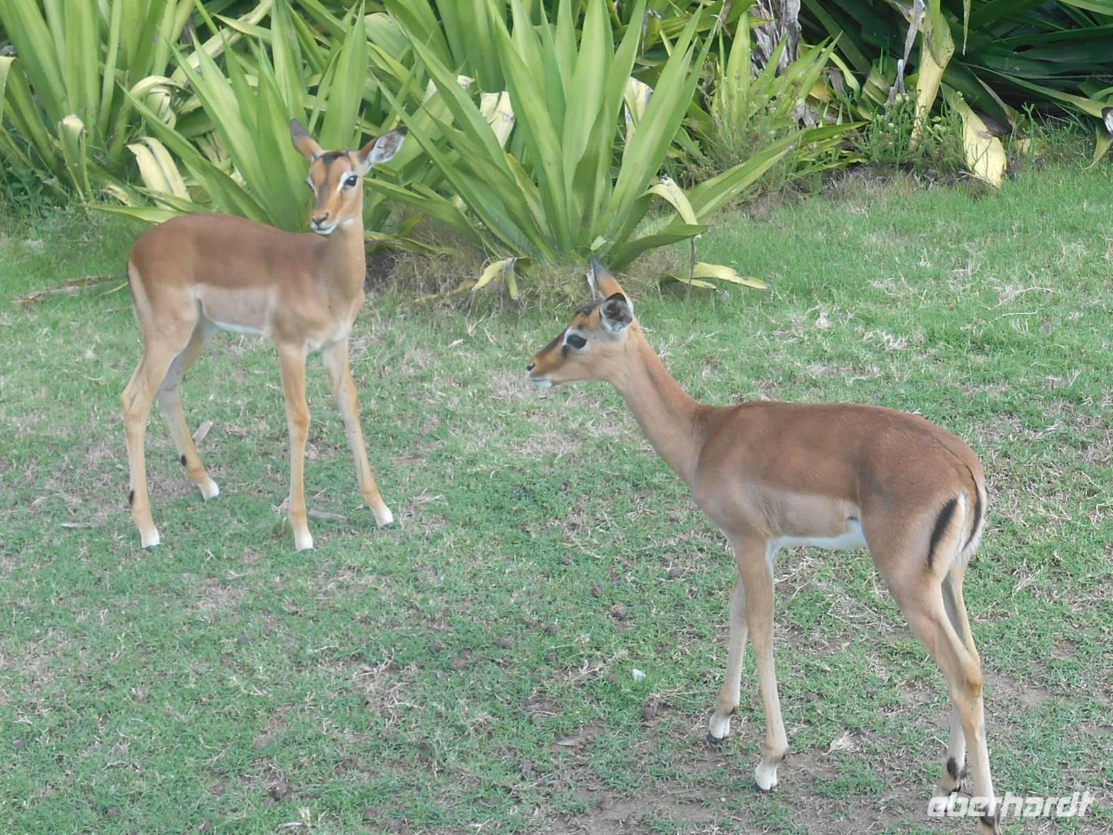 Am frühen Nachmittag mussten wir uns nunmehr leider von unserem Fahrer bzw. Reiseleiter Chris verabschieden und wurden von unserem persönlichen Ranger Dan vom Kariega Wildreservat in Empfang genommen. Der erste Eindruck von hier war allerdings nicht unbedingt vielversprechend, denn ein überdimensionaler Regenguss begleitete uns auf unserer Fahrt zur Lodge. Die Kariega Main Lodge verfügt über mehrere Holz-Chalets, die gekonnt in den Busch integriert sind und damit eine natürliche Umgebung schaffen. Jedes Chalets verfügt über eine eigene Aussichtsterrasse - eine erholsame und freundliche Umgebung, um den afrikanischen Busch ganz einfach zu genießen! Das Geländefahrzeug jedoch, das uns zu den Chalets chauffierte, verfügte allerdings über kein Dach und somit wurden wir alle innerhalb der 5-minütigen Fahrt klatschnass - unglaublich! Nach diversen "TrockenlegungsarbeitenZwinkernd" in unserer Lodge trafen wir uns zum gemeinsamen Mittagessen im Restaurant. Pünktlich kurz vor 17 Uhr begann dann unsere erste Abend-Safari und diese bot uns trotz Nieselregens einiges - Impalas, Löwen und vieles mehr! Wir waren begeistert - die ersten "Big Five" zum Greifen nah! Unter dem Begriff "Big Five" versteht man in Afrika den Löwen, Leoparden, Büffel, Elefanten und das Nashorn. Der Name "Big Five" stammt noch aus der Zeit der Großwildjäger - hier wurden die großen Fünf nicht nach der Körpergröße bemessen, sondern nach der Schwierigkeit und Gefährlichkeit des zu bejagenden Wildes.