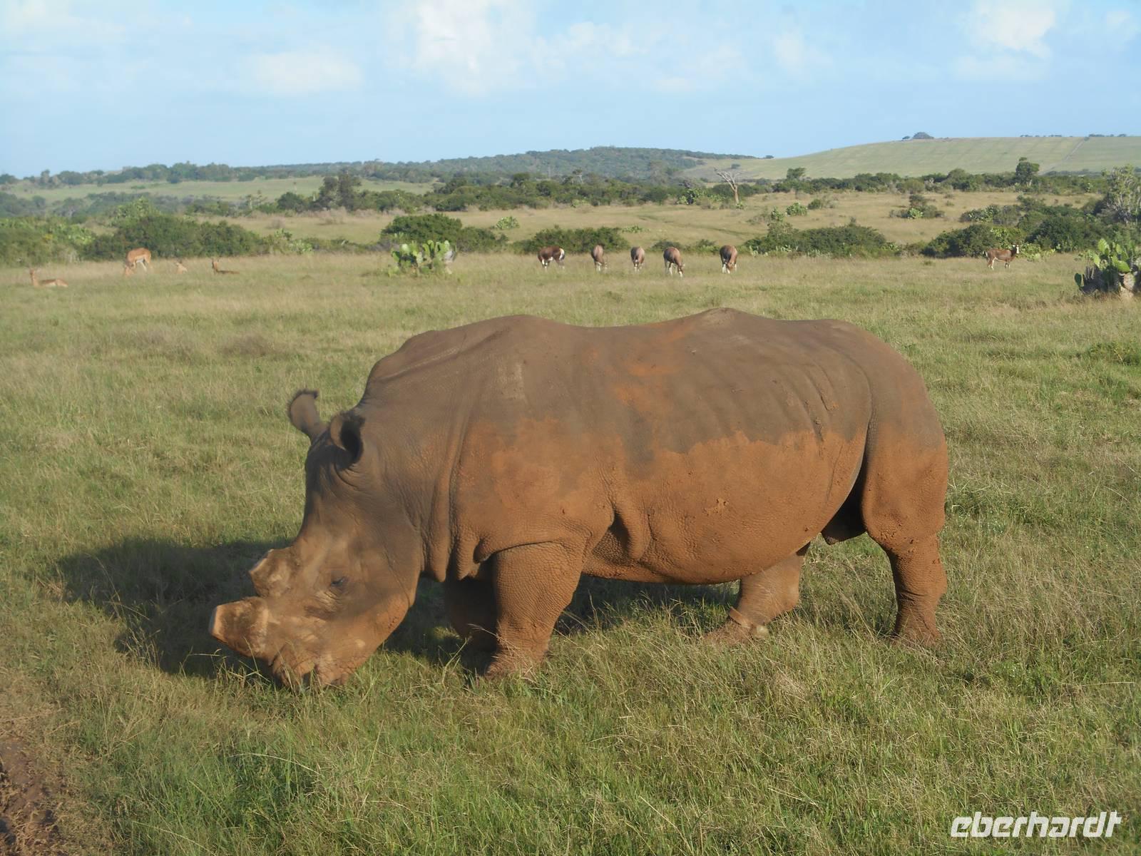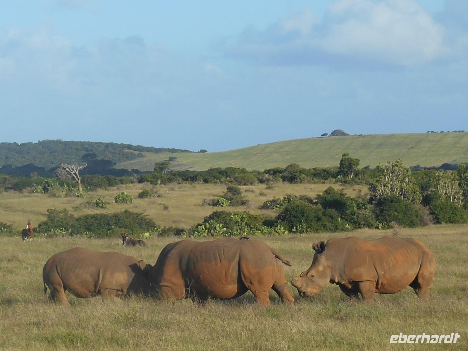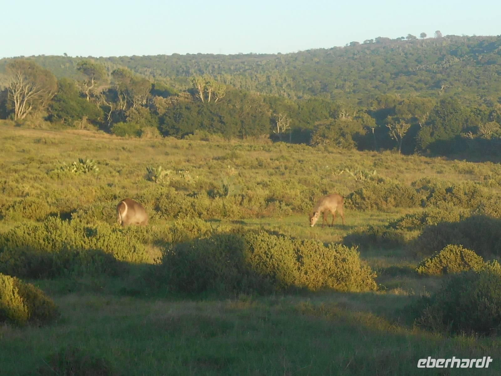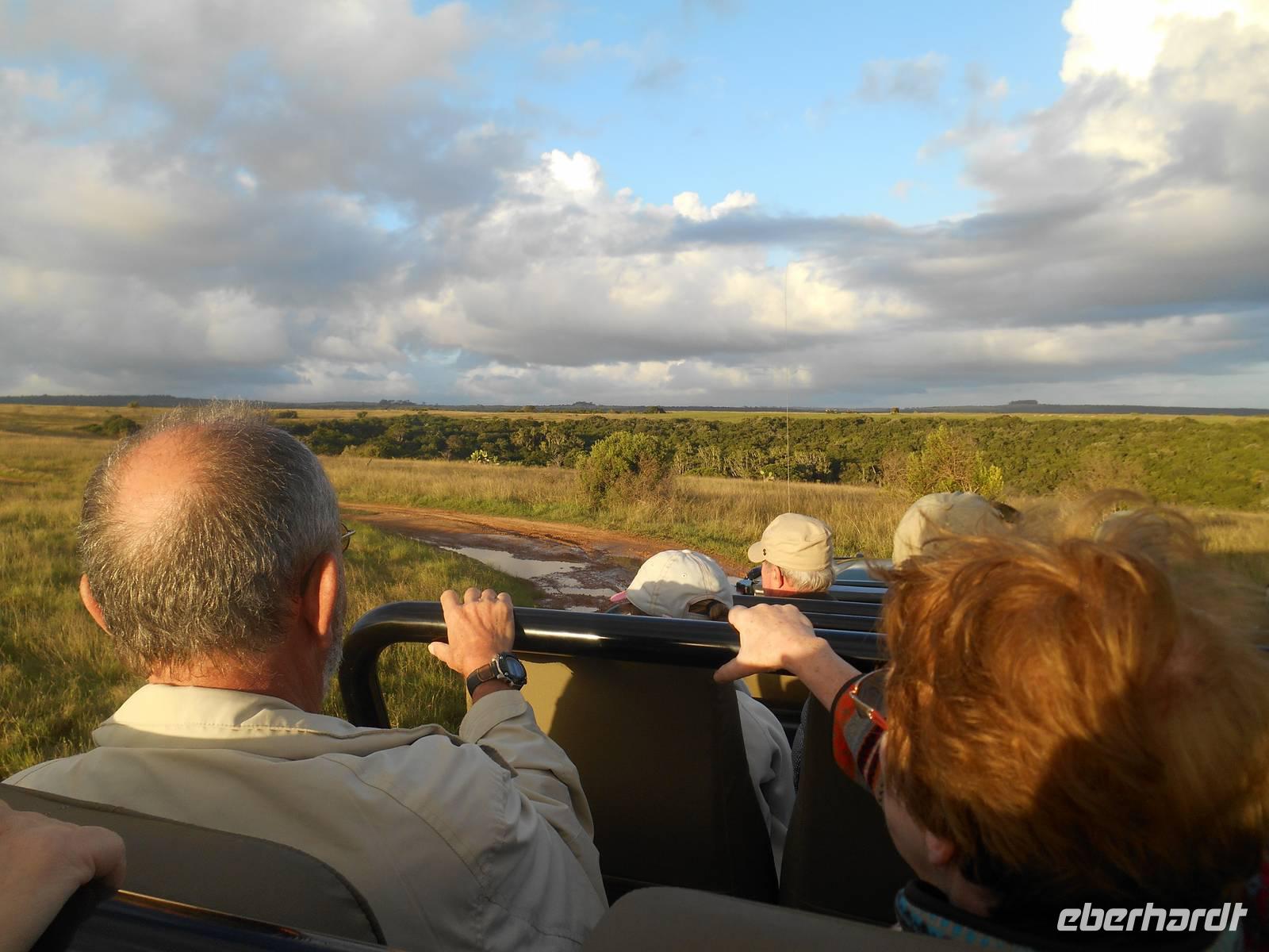 Kariega ist ein privat geführtes Wildreservat, das sich über 10.000 Hektar unberührter Wildnis erstreckt. Diese beiden Tage verbrachten wir hier im Reservat und unternahmen gemeinsam mit Ranger Dan jeweils eine Früh- und eine Abend-Safari! Das Wetter meinte es gut mit uns und auf den verschiedenen Safarifahrten hatten wir nicht nur Gelegenheit, die BIG FIVE zu beobachten, sondern auch Zebras, Giraffen, Flusspferde, Gnus, mehrere Arten von Antilopen, eine ausgeprägte Vogelwelt und eine Vielzahl anderer wilder Tiere. Die Zeit zwischen den Safaris nutzten wir für ausgedehnte Spaziergänge und Entspannung! Außerdem wurden wir kulinarisch mit Vollpension verwöhnt - das Restaurant ist auf traditionell südafrikanische Küche spezialisiert und gab uns die Gelegenheit, mitten in der Natur zu speisen!