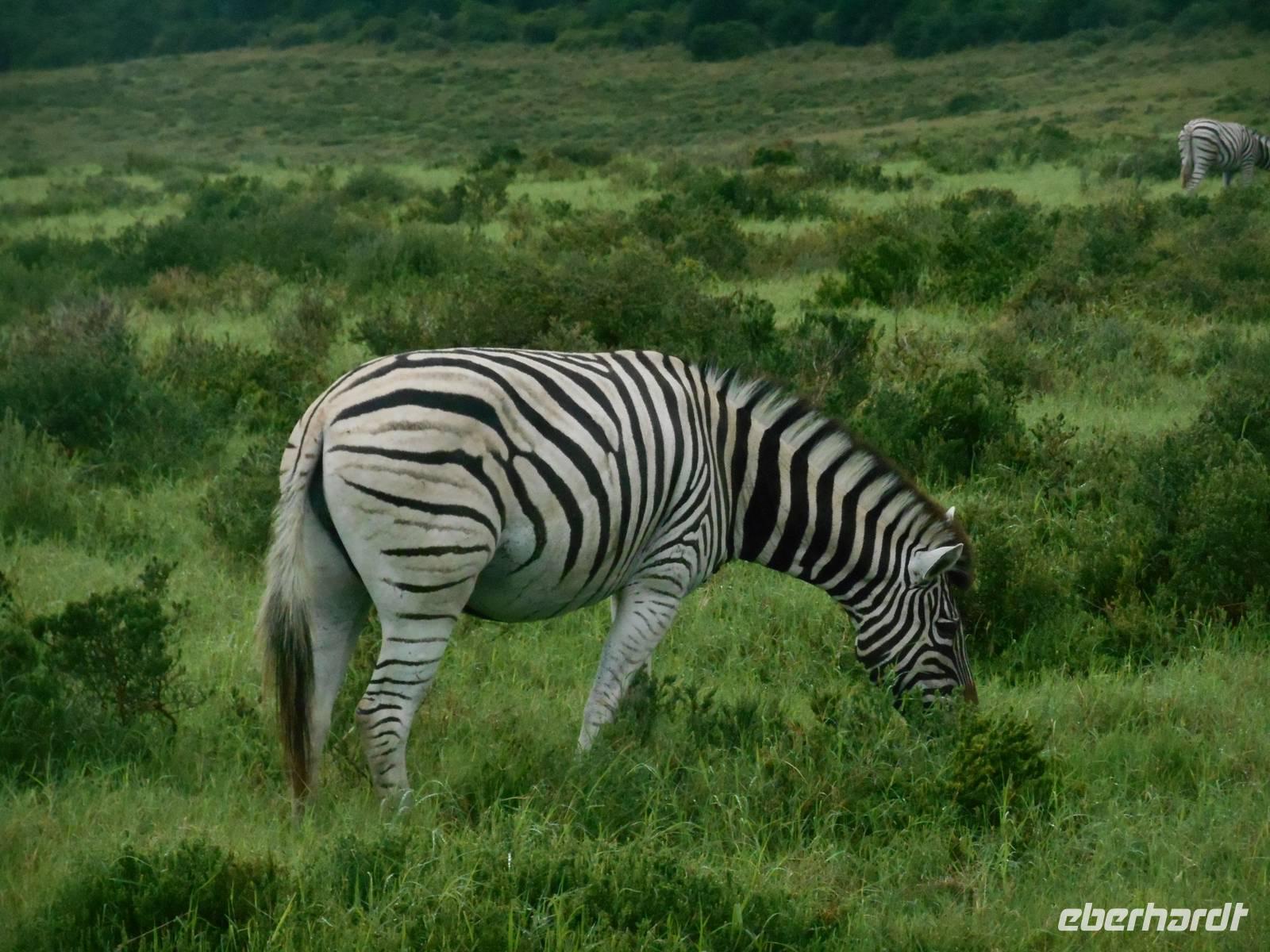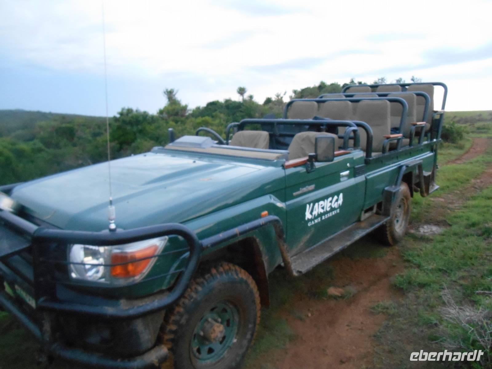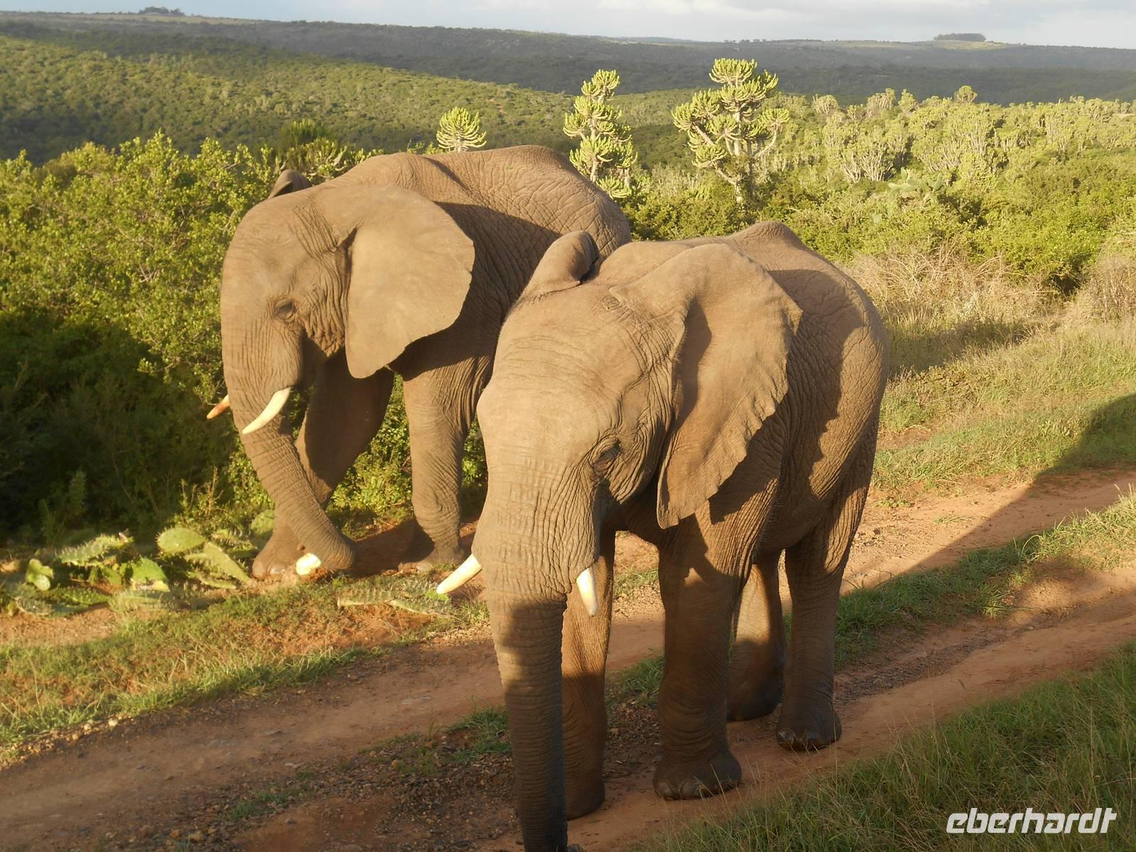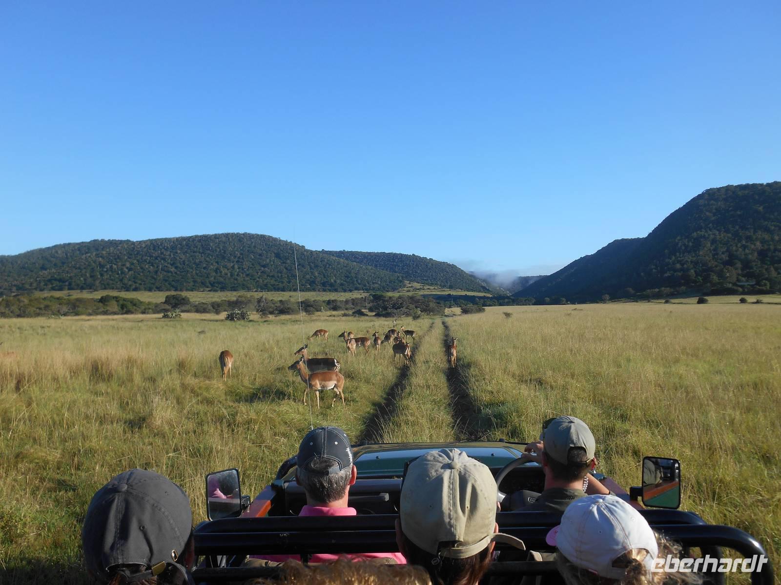 Kariega ist ein privat geführtes Wildreservat, das sich über 10.000 Hektar unberührter Wildnis erstreckt. Diese beiden Tage verbrachten wir hier im Reservat und unternahmen gemeinsam mit Ranger Dan jeweils eine Früh- und eine Abend-Safari! Das Wetter meinte es gut mit uns und auf den verschiedenen Safarifahrten hatten wir nicht nur Gelegenheit, die BIG FIVE zu beobachten, sondern auch Zebras, Giraffen, Flusspferde, Gnus, mehrere Arten von Antilopen, eine ausgeprägte Vogelwelt und eine Vielzahl anderer wilder Tiere. Die Zeit zwischen den Safaris nutzten wir für ausgedehnte Spaziergänge und Entspannung! Außerdem wurden wir kulinarisch mit Vollpension verwöhnt - das Restaurant ist auf traditionell südafrikanische Küche spezialisiert und gab uns die Gelegenheit, mitten in der Natur zu speisen!