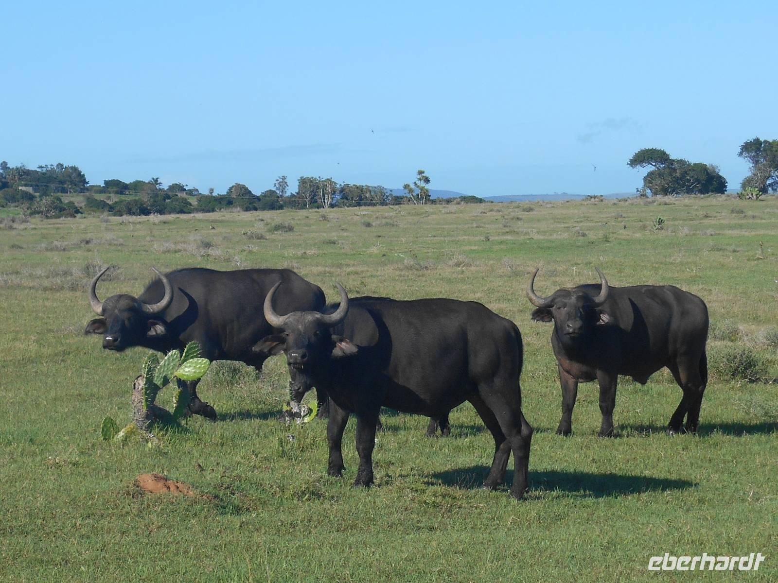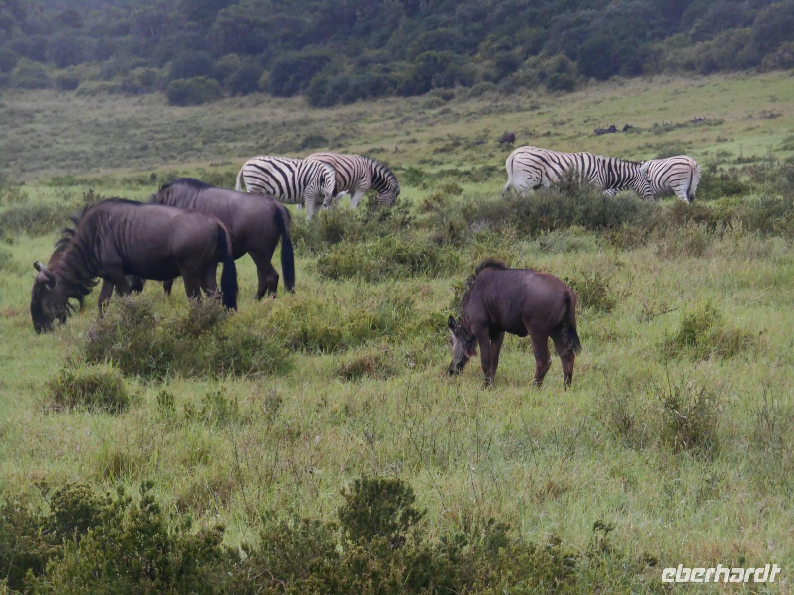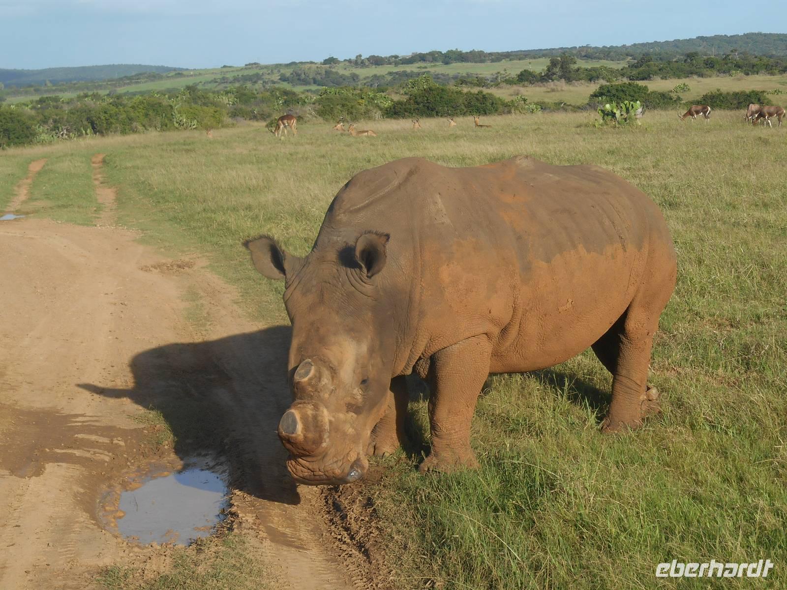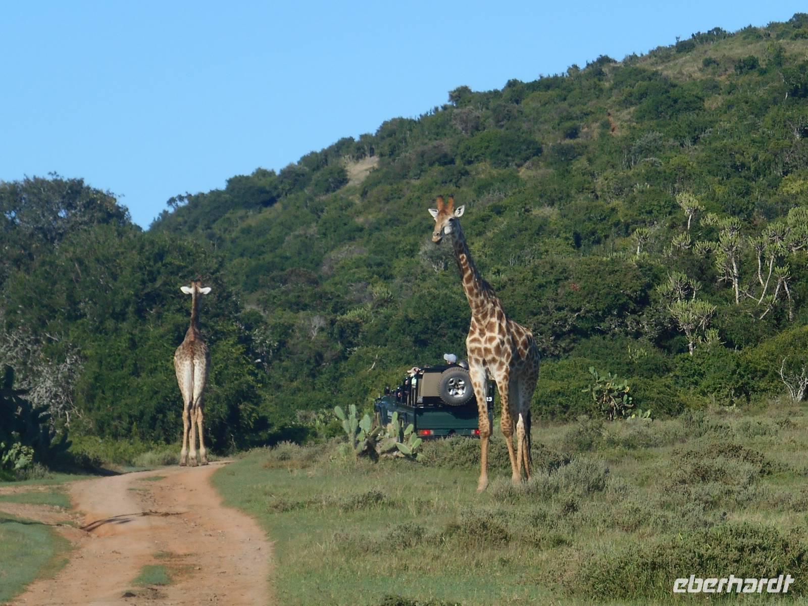 Kariega ist ein privat geführtes Wildreservat, das sich über 10.000 Hektar unberührter Wildnis erstreckt. Diese beiden Tage verbrachten wir hier im Reservat und unternahmen gemeinsam mit Ranger Dan jeweils eine Früh- und eine Abend-Safari! Das Wetter meinte es gut mit uns und auf den verschiedenen Safarifahrten hatten wir nicht nur Gelegenheit, die BIG FIVE zu beobachten, sondern auch Zebras, Giraffen, Flusspferde, Gnus, mehrere Arten von Antilopen, eine ausgeprägte Vogelwelt und eine Vielzahl anderer wilder Tiere. Die Zeit zwischen den Safaris nutzten wir für ausgedehnte Spaziergänge und Entspannung! Außerdem wurden wir kulinarisch mit Vollpension verwöhnt - das Restaurant ist auf traditionell südafrikanische Küche spezialisiert und gab uns die Gelegenheit, mitten in der Natur zu speisen!