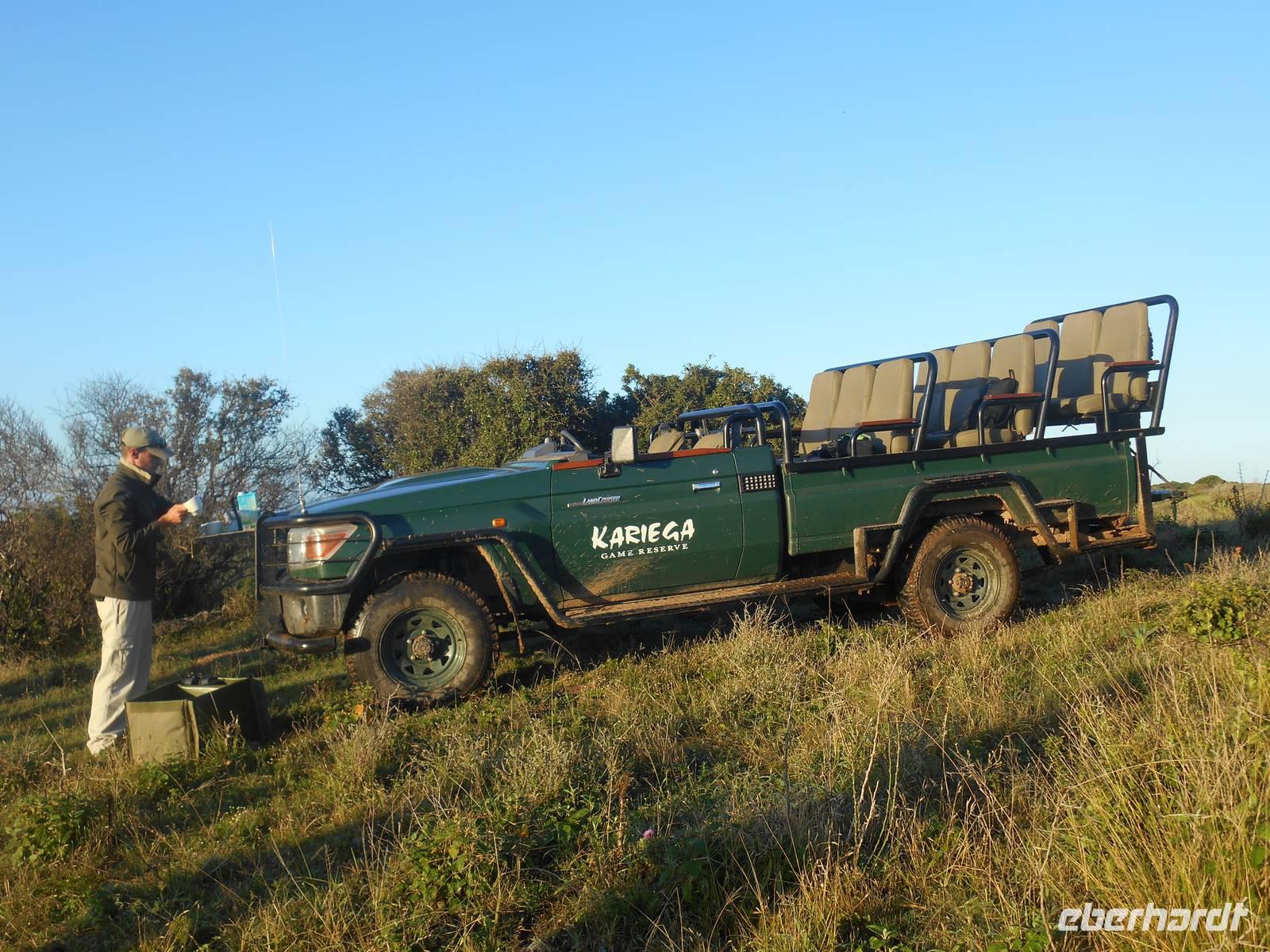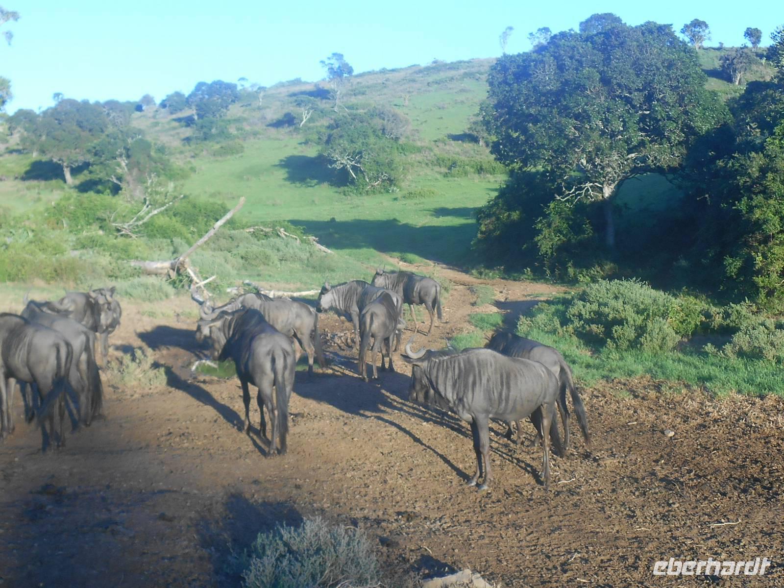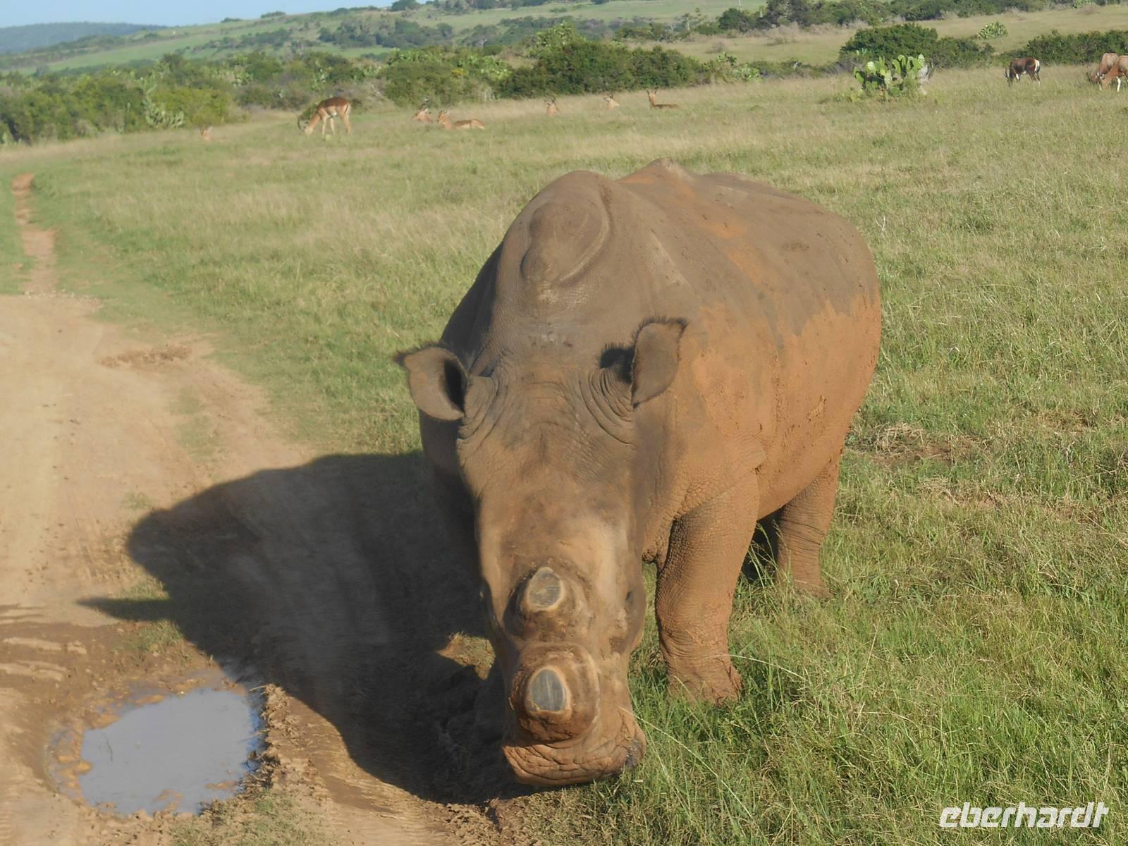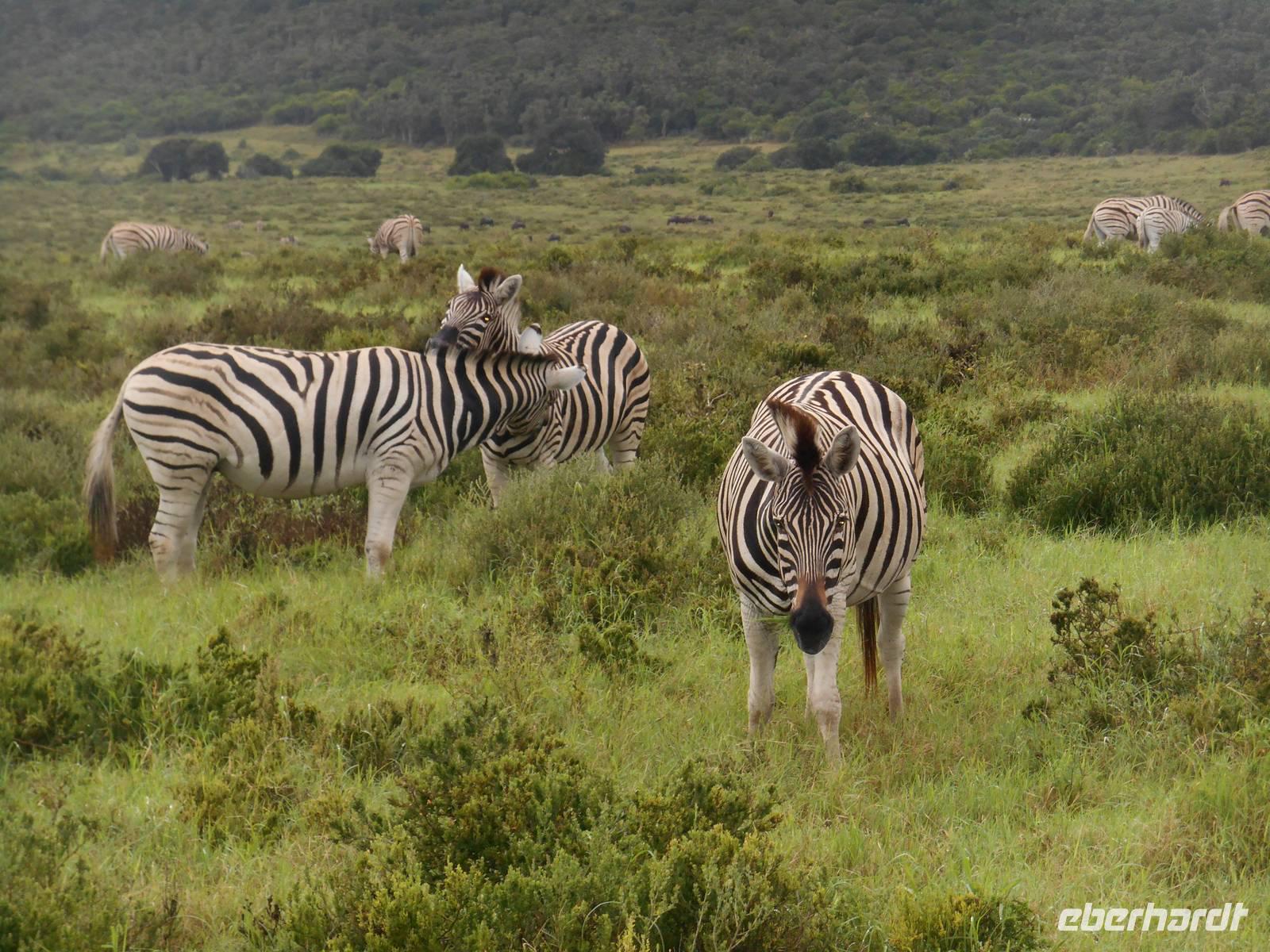 Kariega ist ein privat geführtes Wildreservat, das sich über 10.000 Hektar unberührter Wildnis erstreckt. Diese beiden Tage verbrachten wir hier im Reservat und unternahmen gemeinsam mit Ranger Dan jeweils eine Früh- und eine Abend-Safari! Das Wetter meinte es gut mit uns und auf den verschiedenen Safarifahrten hatten wir nicht nur Gelegenheit, die BIG FIVE zu beobachten, sondern auch Zebras, Giraffen, Flusspferde, Gnus, mehrere Arten von Antilopen, eine ausgeprägte Vogelwelt und eine Vielzahl anderer wilder Tiere. Die Zeit zwischen den Safaris nutzten wir für ausgedehnte Spaziergänge und Entspannung! Außerdem wurden wir kulinarisch mit Vollpension verwöhnt - das Restaurant ist auf traditionell südafrikanische Küche spezialisiert und gab uns die Gelegenheit, mitten in der Natur zu speisen!