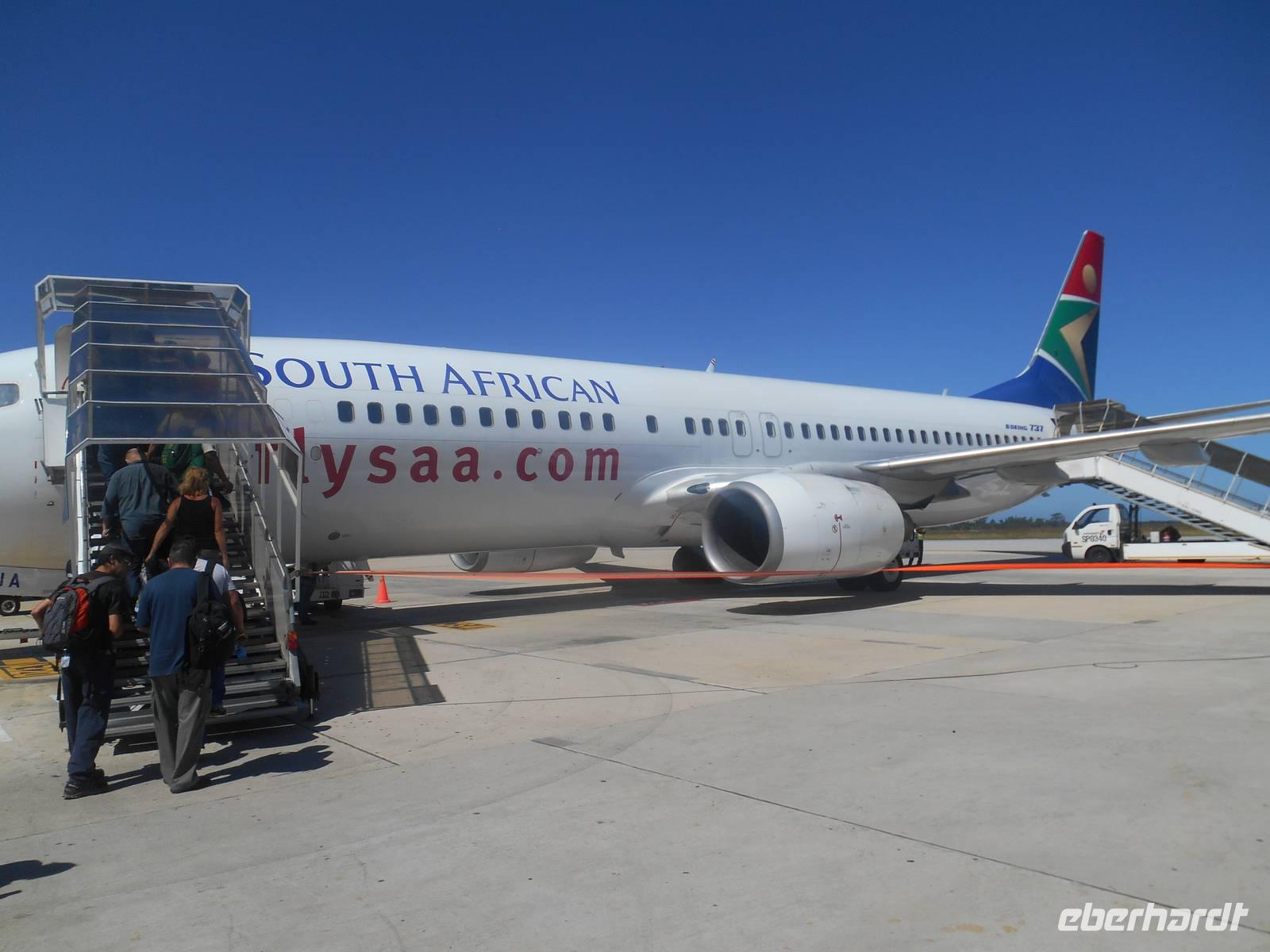 Unsere kleine "5-köpfige Reisefamilie" traf ich am Nachmittag am Dresdner Flughafen, wo wir uns bei einem gemeinsamen kleinen Snack schon etwas kennen lernen konnten. Gut gestärkt ging es anschließend mit Lufthansa nach Frankfurt, wo wir kurz nach 21 Uhr mit einer Linienmaschine der South African Airways in Richtung Johannesburg starteten.