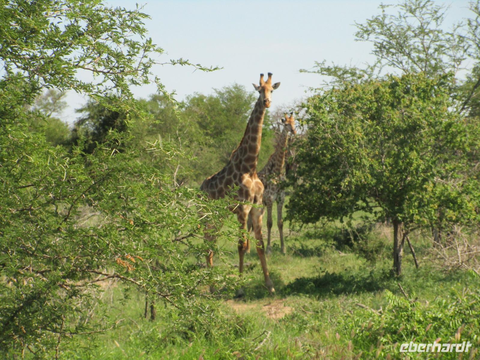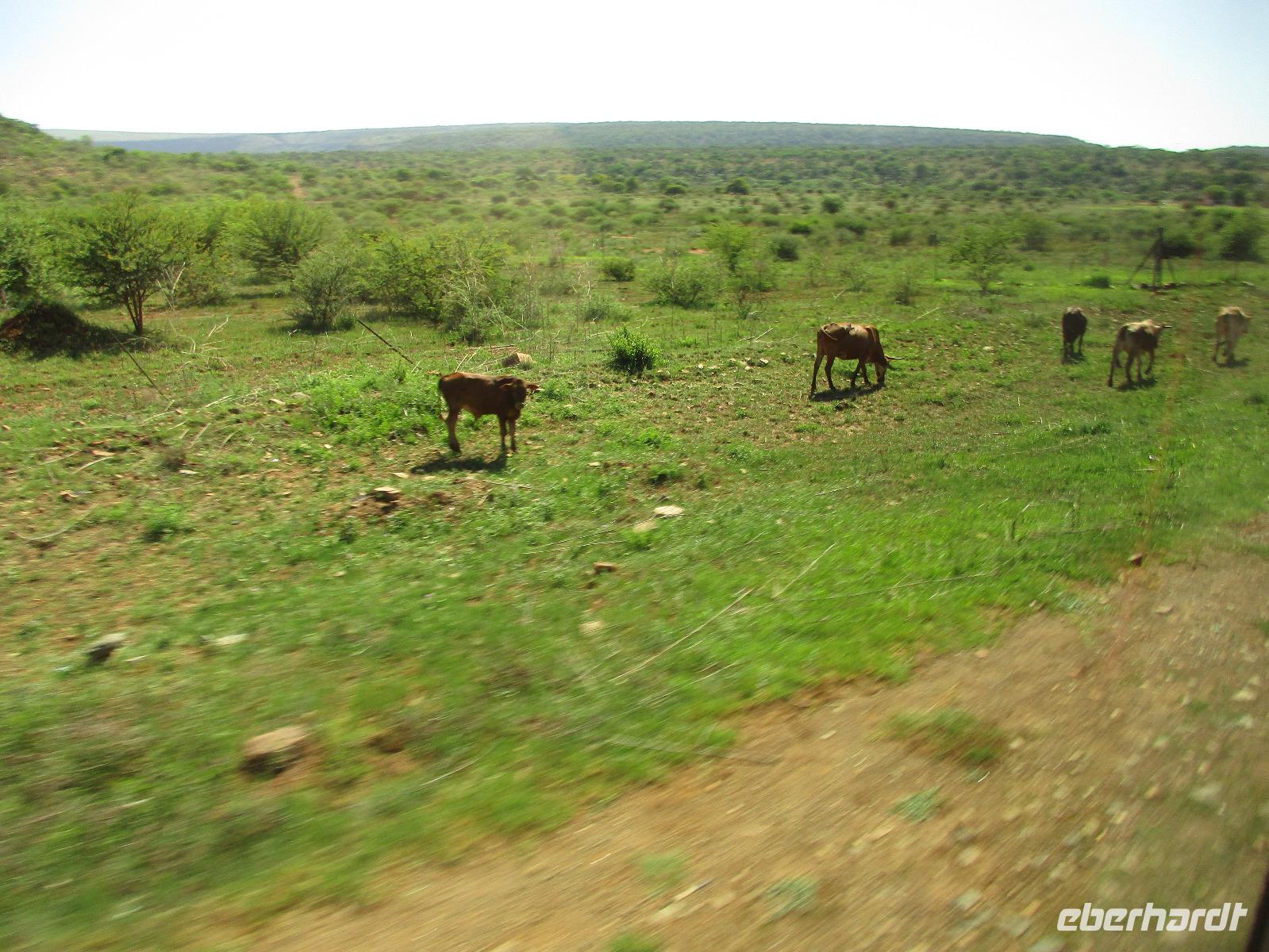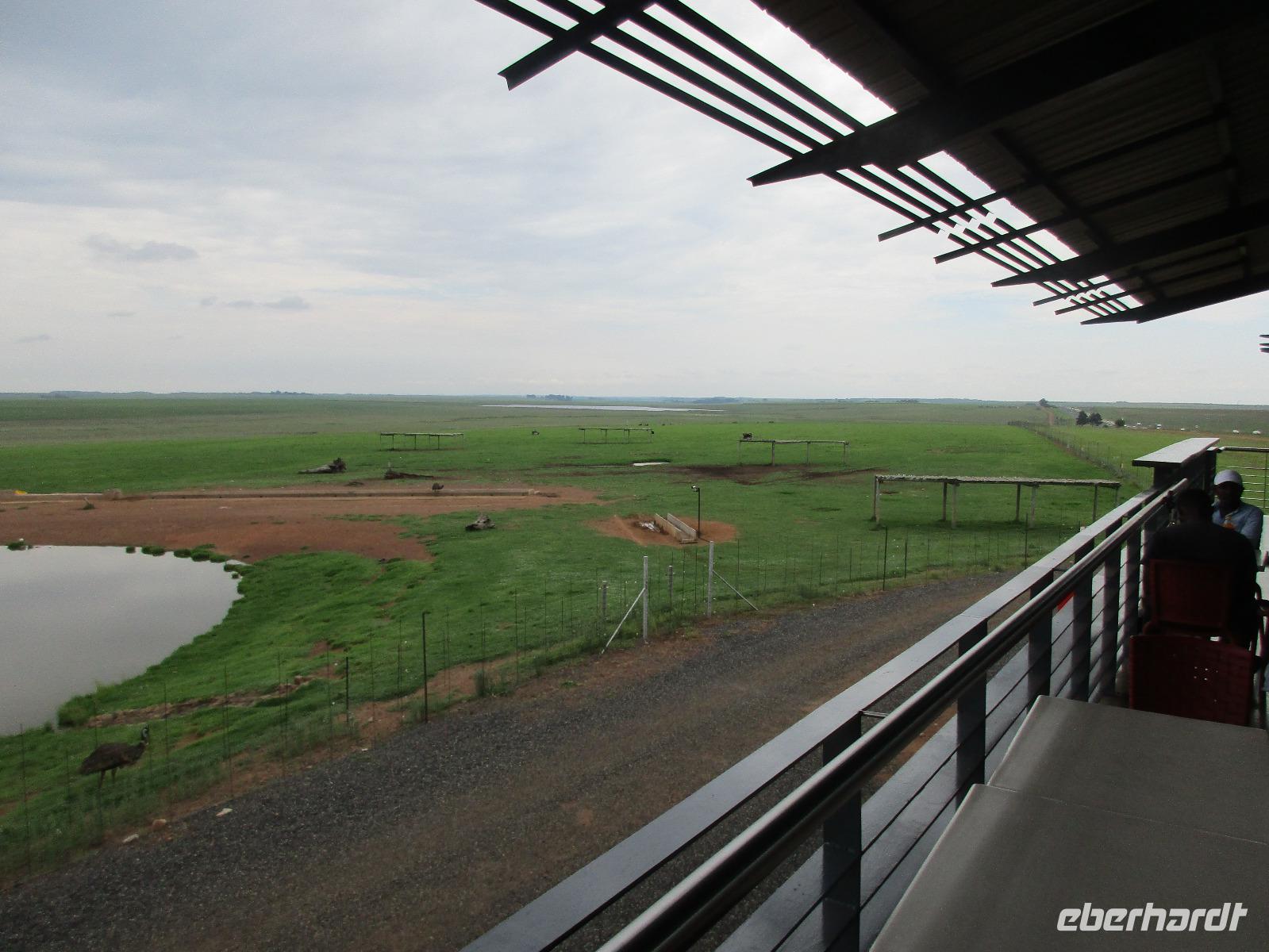 Kurz vor Weihnachten sollte es für sechs Personen zum ersten Mal nach Afrika gehen, zumindest südlich der Sahara. In Deutschland versprach das Wetter nicht gerade winterlich über die Feiertage zu werden, sodass man froh war den milden Temperaturen und Regen in der Heimat zu entgehen und sich in Südafrika von der Sonne verwöhnen zu lassen. Über München ging es in elf Stunden in die größte Stadt Südafrikas- Johannesburg (von den Einheimischen "Joburg" genannt). An Bord des A330 von South African Airlines konnte man ganz akzeptabel nächtigen, sodass man halbwegs ausgeruht den auf 1800m im Hochplateau gelegenen OR Tambo Airport erreichte. Nach dem schnellen Einreiseprozedere wurden zunächst Südafrikanische Rand getauscht, ehe man sich im Mercedes Sprinter widerfand. Vier weitere Gäste waren bereits im Vorfeld nach Joburg gereist. Das erste Ziel war ein Supermarkt um sich mit Adaptern und Mückenspray einzudecken. Anschließend ging es entlang riesiger Kohleabraumhalden (Steinkohle) in Richtung Ohringstad in der Provinz Limpopo. Die Kohle liegt ziemlich nah an der Oberfläche und ist somit sehr einfach abzubauen- kein Wunder dass Südafrika seine Elektrizität vor allem aus dieser Energiequelle bezieht. Die zahlreichen Seen, die man auf der Fahrt sah, sind ehemalige Tagebaue, die mittlerweile geflutet wurden. Inmitten des Steinkohlerevieres liegt E-Malalehni die sogenannte "Kohlehauptstadt". An der Raststätte Alzu wurde sich gestärkt und es gab die erste Möglichkeit einen Strauß zu sehen. Während ein Mechaniker unseren Mercedes Sprinter unter die Lupe nahm, erklärte unser Guide Frans, dass in Südafrika nur ein TÜV bei gebrauchten Autos vonnöten sei und danach nie wieder, sobald er einmal bestanden wurde. Nach zwei weiteren Stunden waren wir endlich am ersten Ziel der Reise, der Hannah Game Lodge. Auf dem riesigen Areal konnten die ersten Tiere gesichtet werden. Nach einem Begrüßungsgetränk, in Form eines frischen Apfelsaftes, bezog man die Chalets und begab sich im Anschluss ins Restaurant, wo man gemeinsam das erste Abendessen zu sich nahm. Geschafft von der Anreise, wurden alsbald die Betten aufgesucht, um sich etwas zu erholen.