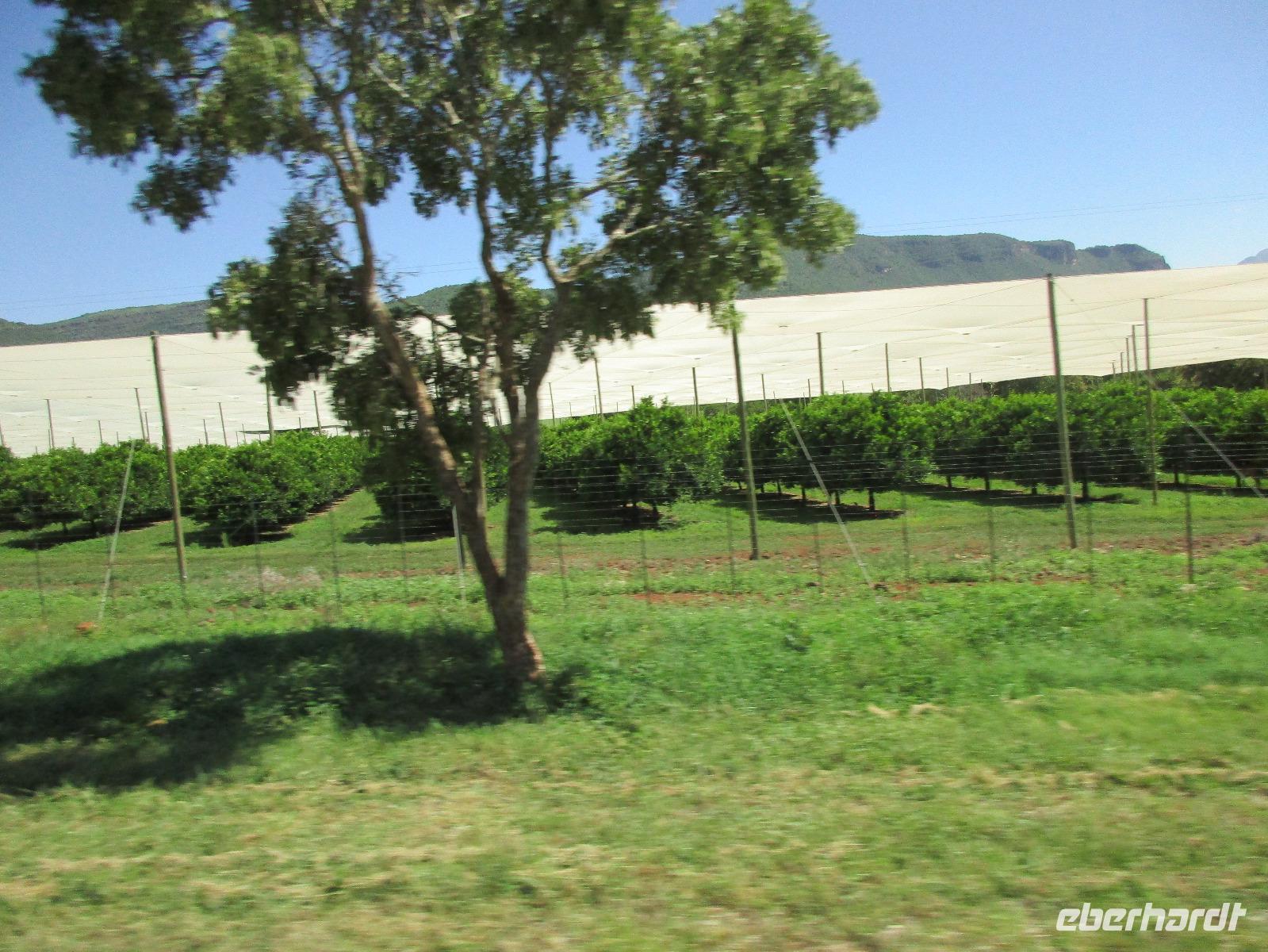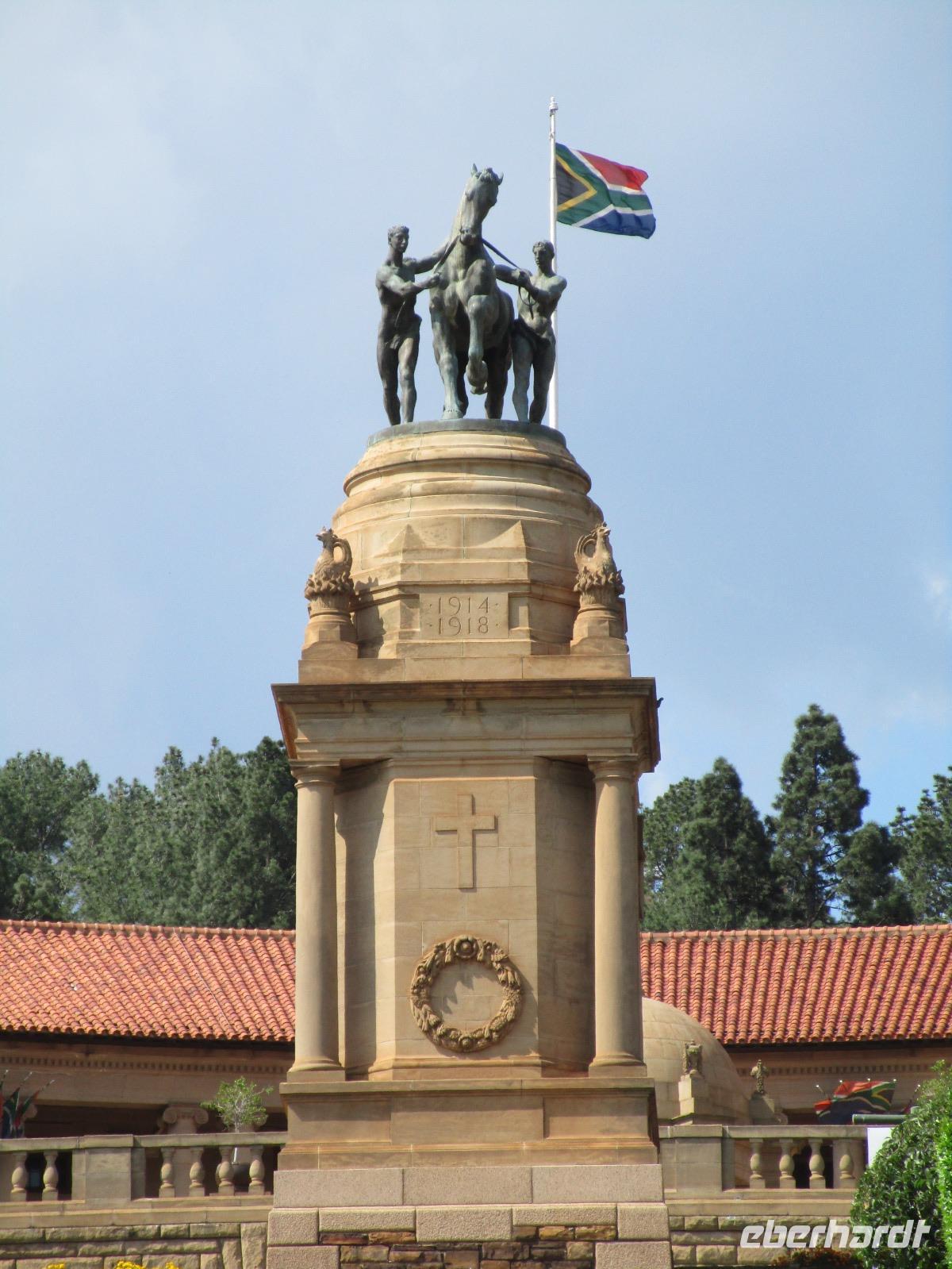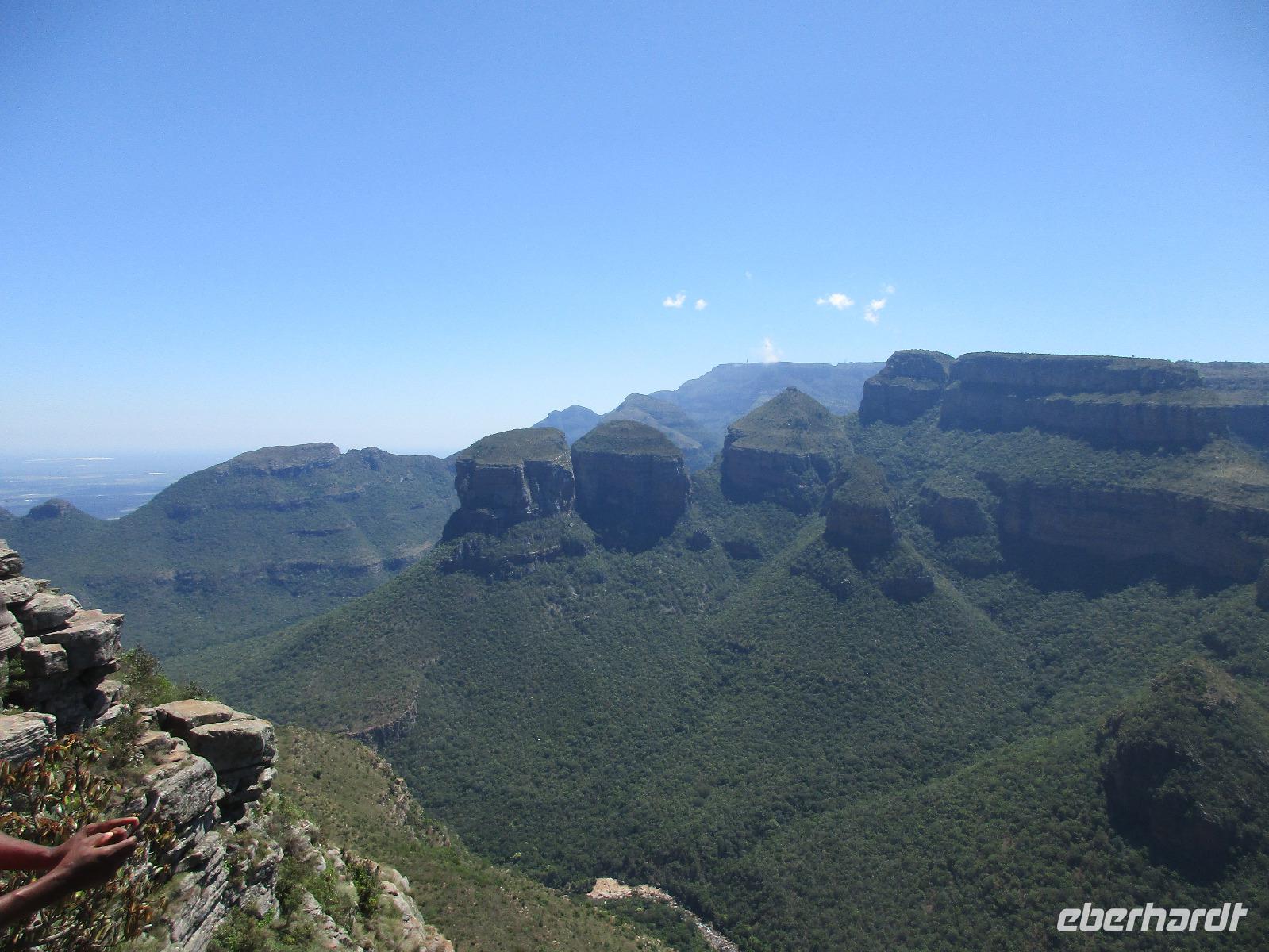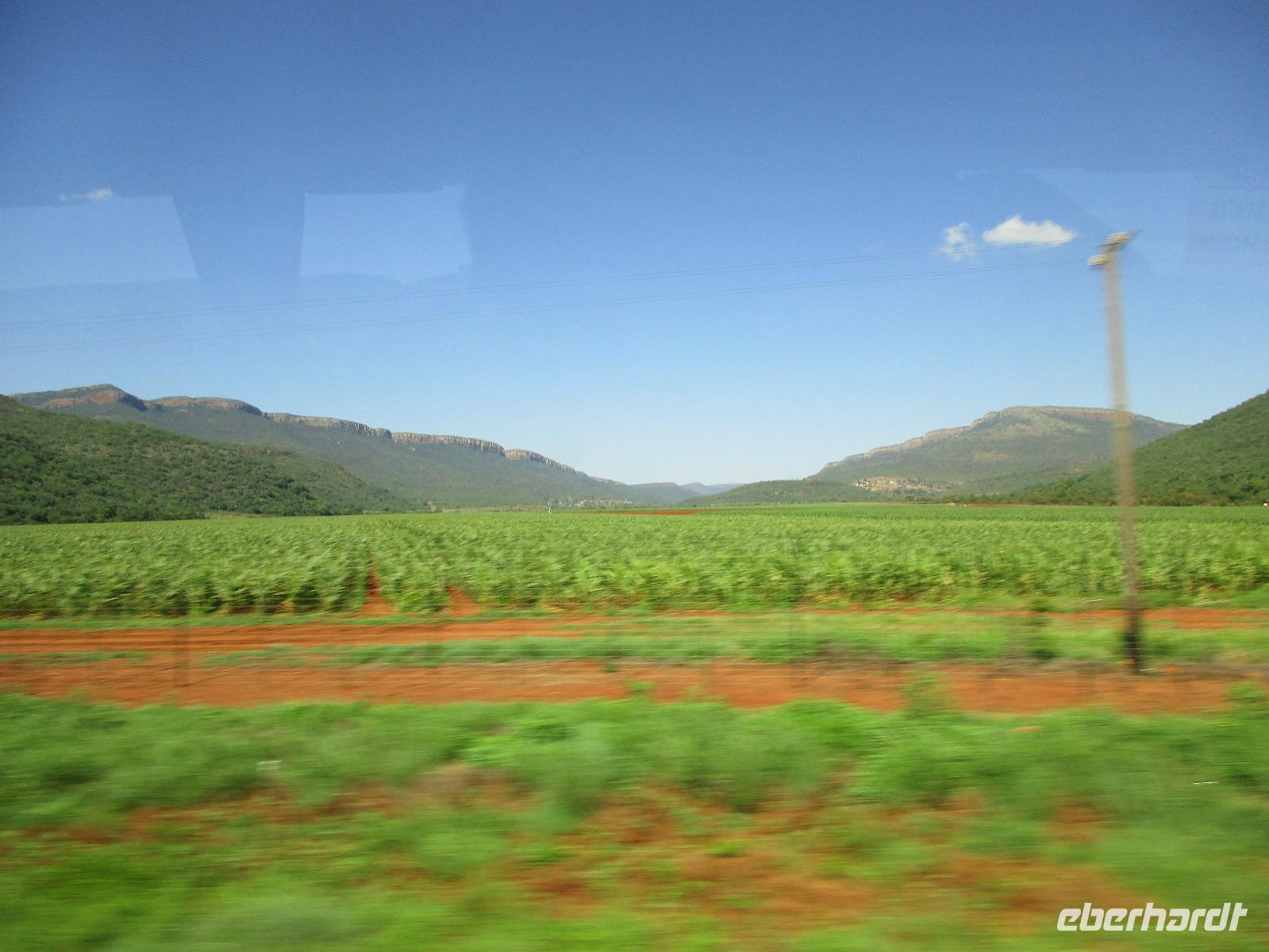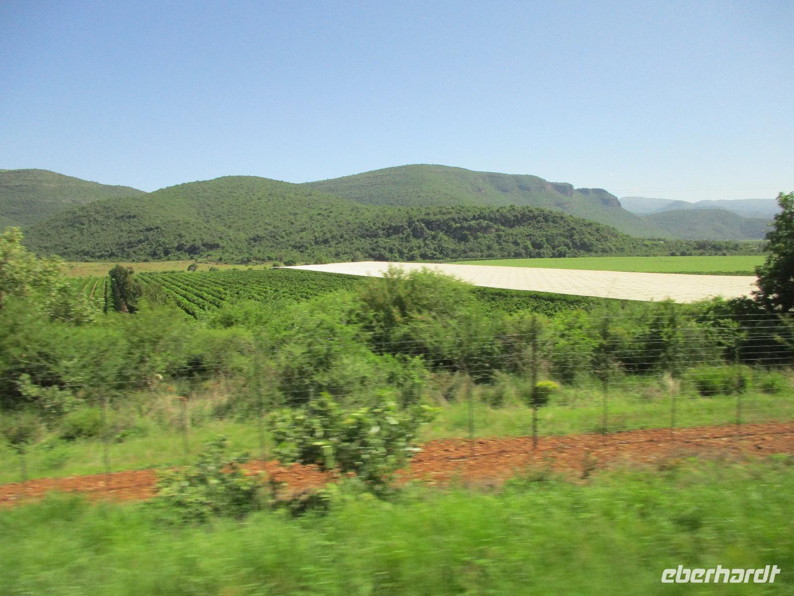 Nach dem Frühstück, das man auf der Terrasse am Fluss einnahm, ging es im Anschluss in Richtung der Hauptstadt Pretoria. Hierbei muss man unterscheiden, dass Pretoria nur die Hauptstadt für die Exekutive ist. Daneben gibt es noch Kapstadt mit der Sitz der Legislative und Bloemfontain, wo die Judikative zu Hause ist. Nachdem man Hazyview hinter sich gelassen hatte, dominierten zuerst Bananenplantagen das Bild entlang der Route. Der Bananenbaum besteht aus ineinander gedrehten Blättern und muss daher von zusätzlichen Stöckern gestützt werden. Daher stellt man sich die Frage, warum man am Frühstücksbuffet dieses Obst so selten zu Gesicht bekam. Weiter ging es entlang piniengesäumter Straßen in Richtung Mbombela, der Hauptstadt von Mpumalanga. Neben der Holzproduktion ist vor allem der Obstanbau (Mangos, Litchies und Orangen) wichtig für die hiesige Wirtschaft. Dies konnten wir bei Joubert & Sons erschmecken. Der Hofladen bietet frisch gepresste Säfte und allerhand weitere Köstlichkeiten. Ein weiteres kulinarisches Highlight war der Besuch bei Millys- einer Forellenfarm an der Autobahn- hier deckte so mancher mit dem frischen Fisch ein. Wieder zurück auf dem Hochplateau war es nur noch ein kurzes Stück bis Pretoria. Dort angekommen fuhr man zum Mittagessen in ein, in einem Park gelegenes, Restaurant und genoss die Zeit bei kühlen Getränken und interessanten Gesprächen innerhalb der Reisegruppe. Im Anschluss führte uns die Stadtrundfahrt vorbei an vielen Botschaften hoch zum Parlamentsgebäude Südafrikas, mit dem davor befindlichen Monument für Nelson Mandela. Von hier hatte man einen schönen Ausblick auf die Stadt, die heute offiziell Tshwane heißt. Auf dem Weg zum Hotel, das im Universitätsviertel „Hatfield" lag, wurde noch eine kleine Tour mit dem Bus durch die Innenstadt unternommen. Unser örtlicher Reiseleiter erklärte, dass die Innenstadt fast ausschließlich von Schwarzen frequentiert wird und Weißen, die dort über Tag arbeiten. Nach Feierabend fahren diese aber größtenteils wieder in die Vororte, wo sie leben. Lediglich ein paar Gebäude aus den 1900 Jahren sind vor allem am Kerkplein erhalten, ansonsten gibt es viele gesichtslose Bürogebäude in Downtown Pretoria. Nachdem wir die Zimmer bezogen hatten, ging ein Teil der Gruppe noch um den Block, allerdings war hier nach 18 Uhr nicht mehr sonderlich viel los, da gerade Semesterferien waren und alle Studenten dementsprechend bei Ihren Familien verweilten. Bei einem Abendessen ließen wir den Tag Revue passieren und freuten uns auf die kommenden Tage in der Region Kapstadt.