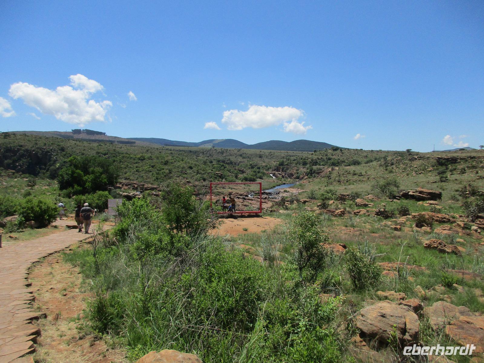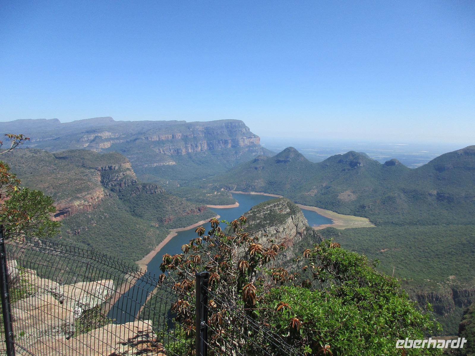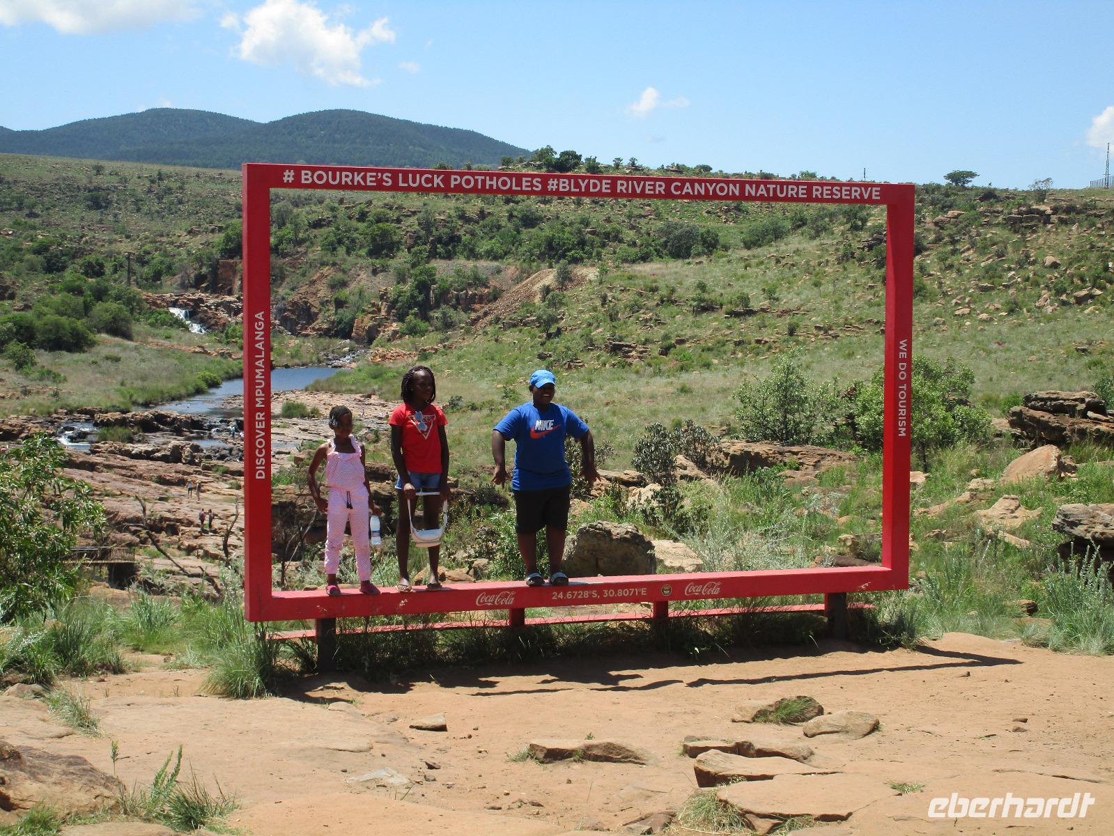 Anstatt sich mit endlosen Schlangen beim Einkaufen rumzuplagen und sich den Kopf darüber zu zerbrechen, wie die Gans am besten gelingt, setzten wir uns nach dem Frühstück in einen neuen Bus, samt neuem Fahrer, um bei einem Tagesausflug die Panoramaroure abzufahren. Das erste Ziel des Tages waren die "Three Rondavels", die mit ihrer Form an die afrikanische an Rundhütten erinnern. Im Anschluss führte uns der Weg zu den "Bourke's Luck Potholes". Von den Brücken hatte man einen direkten Blick auf die Strudellöcher, an der Vereinigung des Trauer Flusses (Treur River) mit dem Frohen Fluss (Blyde River). Bevor die Wolken zuzogen, gelang es uns noch die Aussicht von "God's Window" zu genießen. An dieser Stelle fallen die Klippen rund 700m ab und trennen das Lowveld vom Highfield. Im charmanten Ort Graskop aß man köstlich gefüllte Pfannkuchen zu Mittag, bevor man wieder in Richtung Hannah Game Lodge aufbrach. Auf dem Weg fielen die zahlreichen Fruchtplantagen auf, die mit Netzen überspannt sind, sodass man von weitem denkt, dort wäre ein See. Die Begründung warum dies so gemacht wird ist simpel - es soll sowohl als Schutz vor Hagel dienen, als auch, dass die Früchte nicht mit anderen Sorten in Kontakt kommen und sich vermischen. Als Weihnachtsmenü wartete ein traditionelles, südafrikanisches Braai auf uns. Braai beschreibt das Grillen in diesem Land. Bei warmen Temperaturen erinnerte nur das Lametta und das Geschenke bringende Christkind an Weihnachten. Anstelle des Weihnachtsbaumes saßen wir am Lagerfeuer unter einer Akazie. Spät abends an der Bar wurde noch der südafrikanische Amarula Schnaps (gewonnen aus der Marula Frucht und dem Baileys sehr ähnlich) probiert, ehe man schlafen ging.