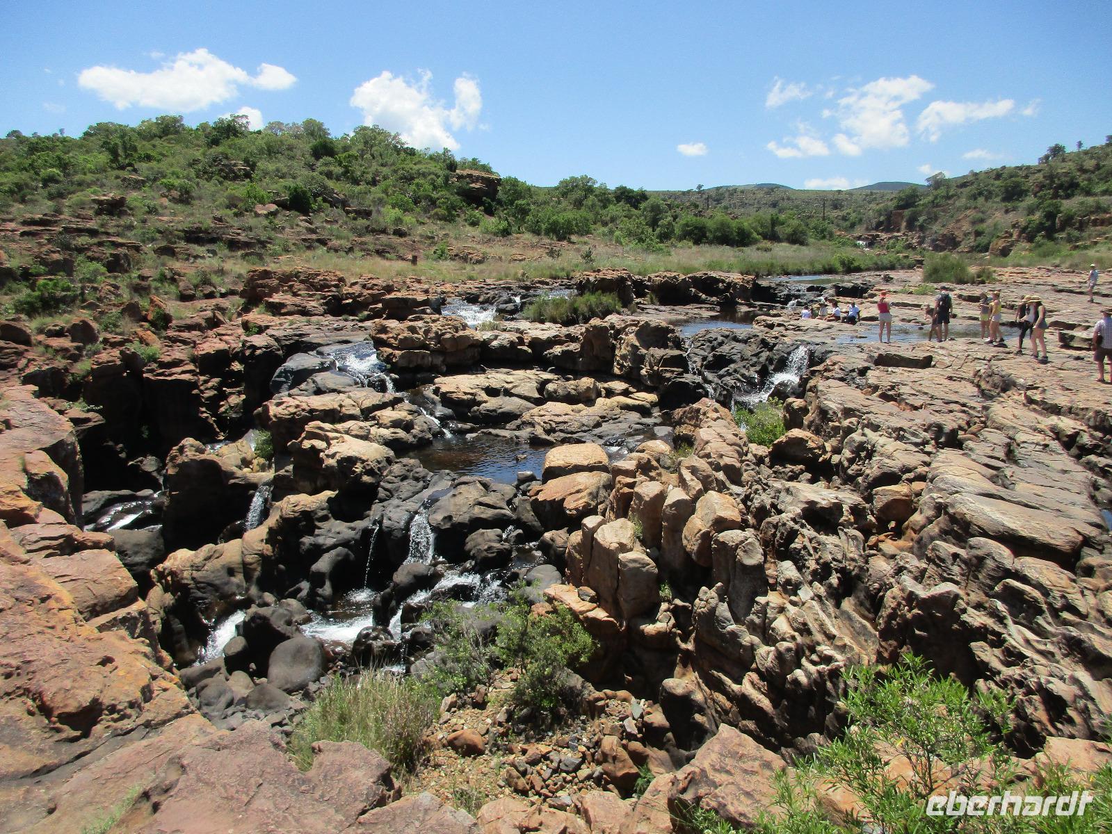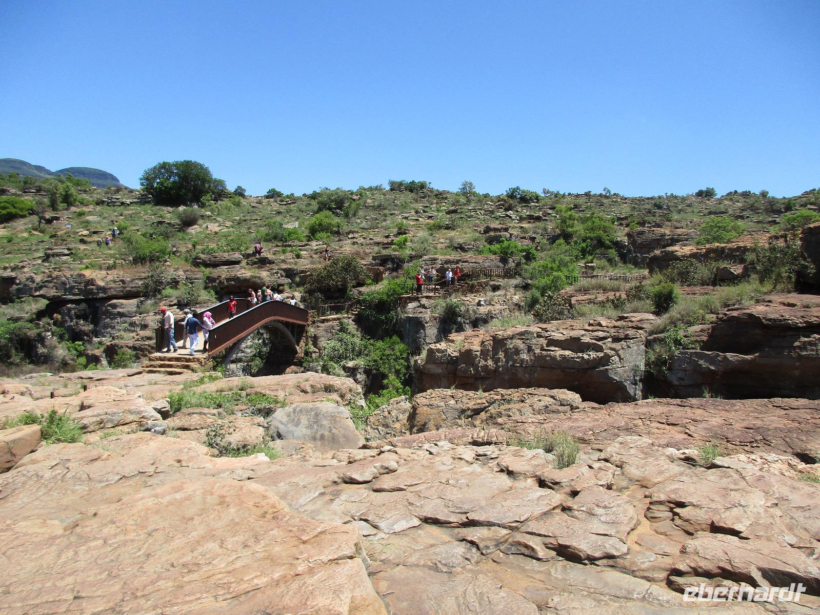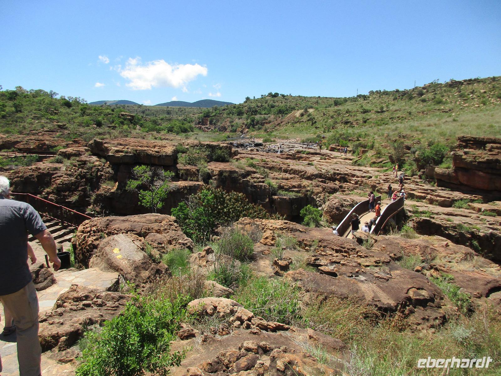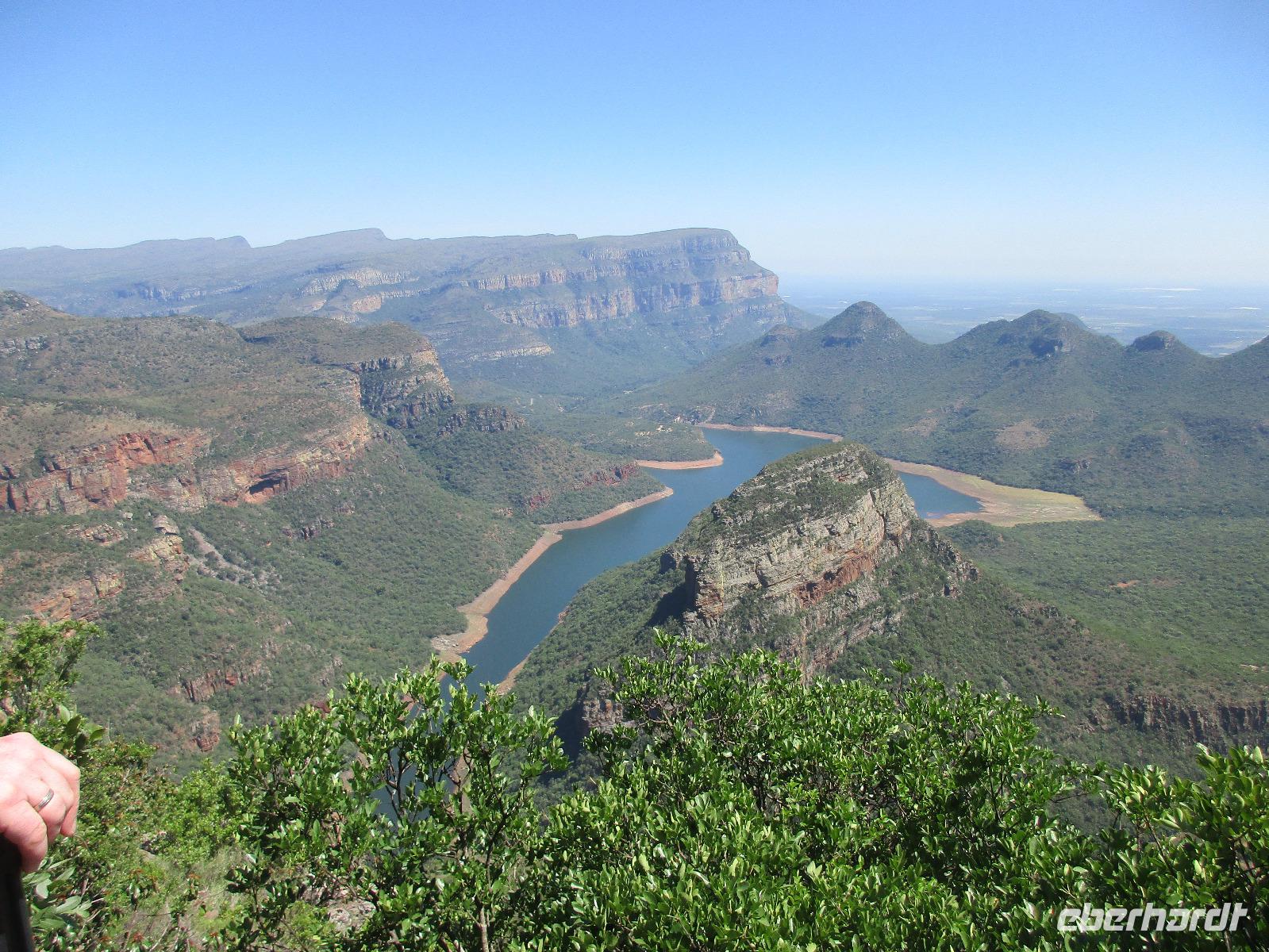 Anstatt sich mit endlosen Schlangen beim Einkaufen rumzuplagen und sich den Kopf darüber zu zerbrechen, wie die Gans am besten gelingt, setzten wir uns nach dem Frühstück in einen neuen Bus, samt neuem Fahrer, um bei einem Tagesausflug die Panoramaroure abzufahren. Das erste Ziel des Tages waren die "Three Rondavels", die mit ihrer Form an die afrikanische an Rundhütten erinnern. Im Anschluss führte uns der Weg zu den "Bourke's Luck Potholes". Von den Brücken hatte man einen direkten Blick auf die Strudellöcher, an der Vereinigung des Trauer Flusses (Treur River) mit dem Frohen Fluss (Blyde River). Bevor die Wolken zuzogen, gelang es uns noch die Aussicht von "God's Window" zu genießen. An dieser Stelle fallen die Klippen rund 700m ab und trennen das Lowveld vom Highfield. Im charmanten Ort Graskop aß man köstlich gefüllte Pfannkuchen zu Mittag, bevor man wieder in Richtung Hannah Game Lodge aufbrach. Auf dem Weg fielen die zahlreichen Fruchtplantagen auf, die mit Netzen überspannt sind, sodass man von weitem denkt, dort wäre ein See. Die Begründung warum dies so gemacht wird ist simpel - es soll sowohl als Schutz vor Hagel dienen, als auch, dass die Früchte nicht mit anderen Sorten in Kontakt kommen und sich vermischen. Als Weihnachtsmenü wartete ein traditionelles, südafrikanisches Braai auf uns. Braai beschreibt das Grillen in diesem Land. Bei warmen Temperaturen erinnerte nur das Lametta und das Geschenke bringende Christkind an Weihnachten. Anstelle des Weihnachtsbaumes saßen wir am Lagerfeuer unter einer Akazie. Spät abends an der Bar wurde noch der südafrikanische Amarula Schnaps (gewonnen aus der Marula Frucht und dem Baileys sehr ähnlich) probiert, ehe man schlafen ging.