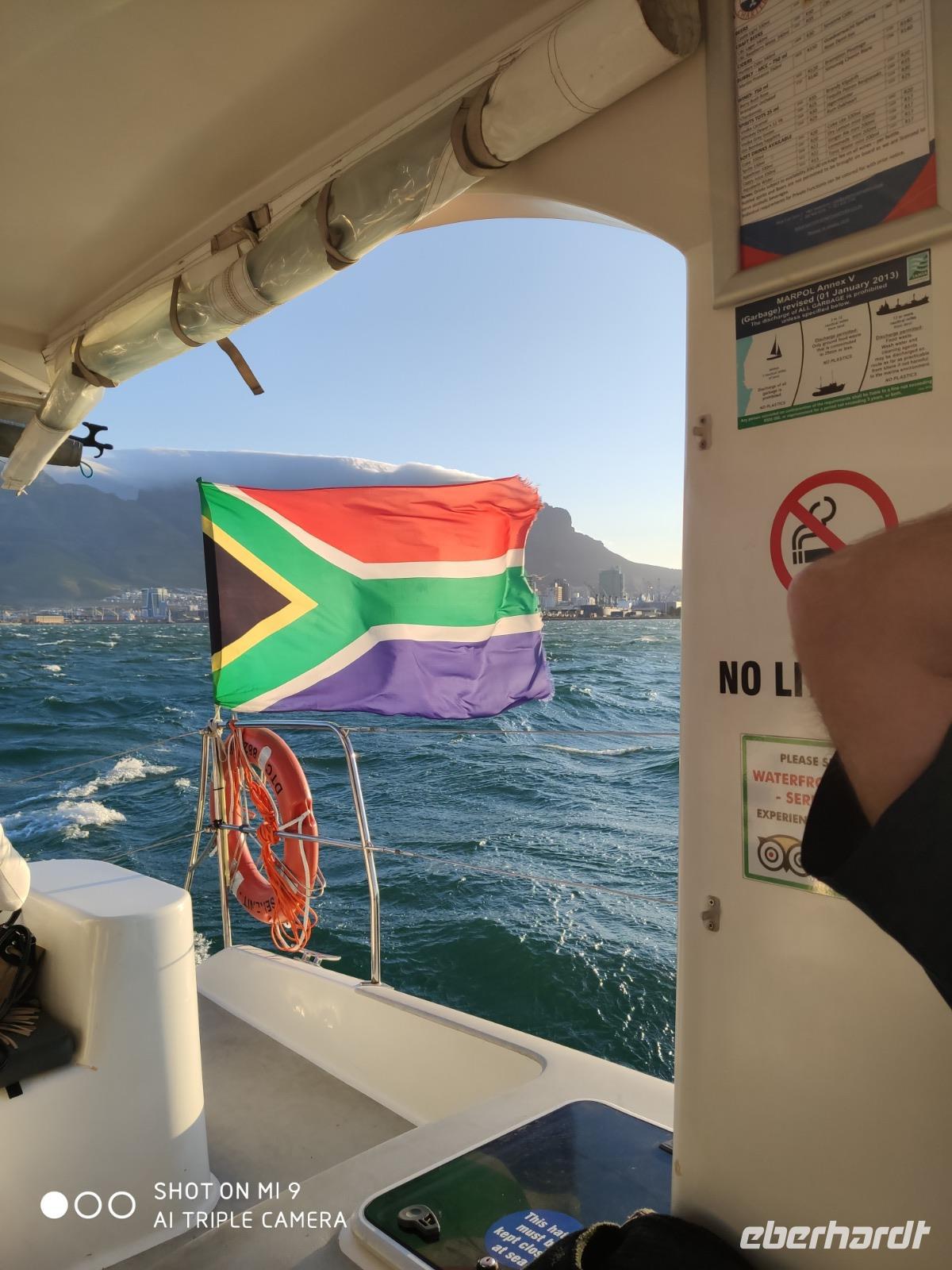 Nachdem man ausgeschlafen hatte, konnte man Kapstadt ganz individuell erkunden, bevor der Bus bestiegen wurde, um zum Botanischen Garten in Kirstenbosch zu gelangen. Dieser wurde ursprünglich von Jan van Riebeeck angelegt, mit dem Ziel das Vieh vor den einheimischen Stämmen zu schützen. Eine solche Hecke, die undurchdringlich sein sollte, konnten wir ebenso sehen, wie das Maggi-Kraut mit seinem einzigartigem Duft. Über den Baumkronenpfad ging es zurück zum Restaurant "Mojo", wo das Mittagessen auf uns warten sollte. Warten ist der richtige Stichpunkt, so erlebte man hier eine wahrhaft schlechte Organisation im Restaurant. Hier hilft nur eins: die Gelassenheit an den Tag legen wie die Südafrikaner. Wenngleich dies nicht immer mit der deutschen Pünktlichkeits-Mentalität konform geht und dementsprechend etwas gewöhnungsbedürftig ist. Am Abend stand zum Abschluss der Reise eine Champagner Bootsfahrt bei Sonnenuntergang auf dem Programm. Mit einem Glas Champagner wurde man an Bord der Serenity One willkommen geheißen, bevor es hieß "Leinen los". Bei der Ausfahrt aus dem Hafen begleiteten uns ein paar Delphine bevor man entlang der Küste schipperte. Die See war heute vergleichsweise ruhig und so konnte man nochmal einige tolle Fotos von Kapstadt und dem dahinter liegenden Tafelberg schießen. Auf der Terrasse des Hotels wurde im Anschluss bei einem Abschiedsgetränk noch einmal über die hinter uns liegenden Tage gesprochen und sich darüber ausgetauscht welche Reisen man in diesem Jahr noch vorhat.