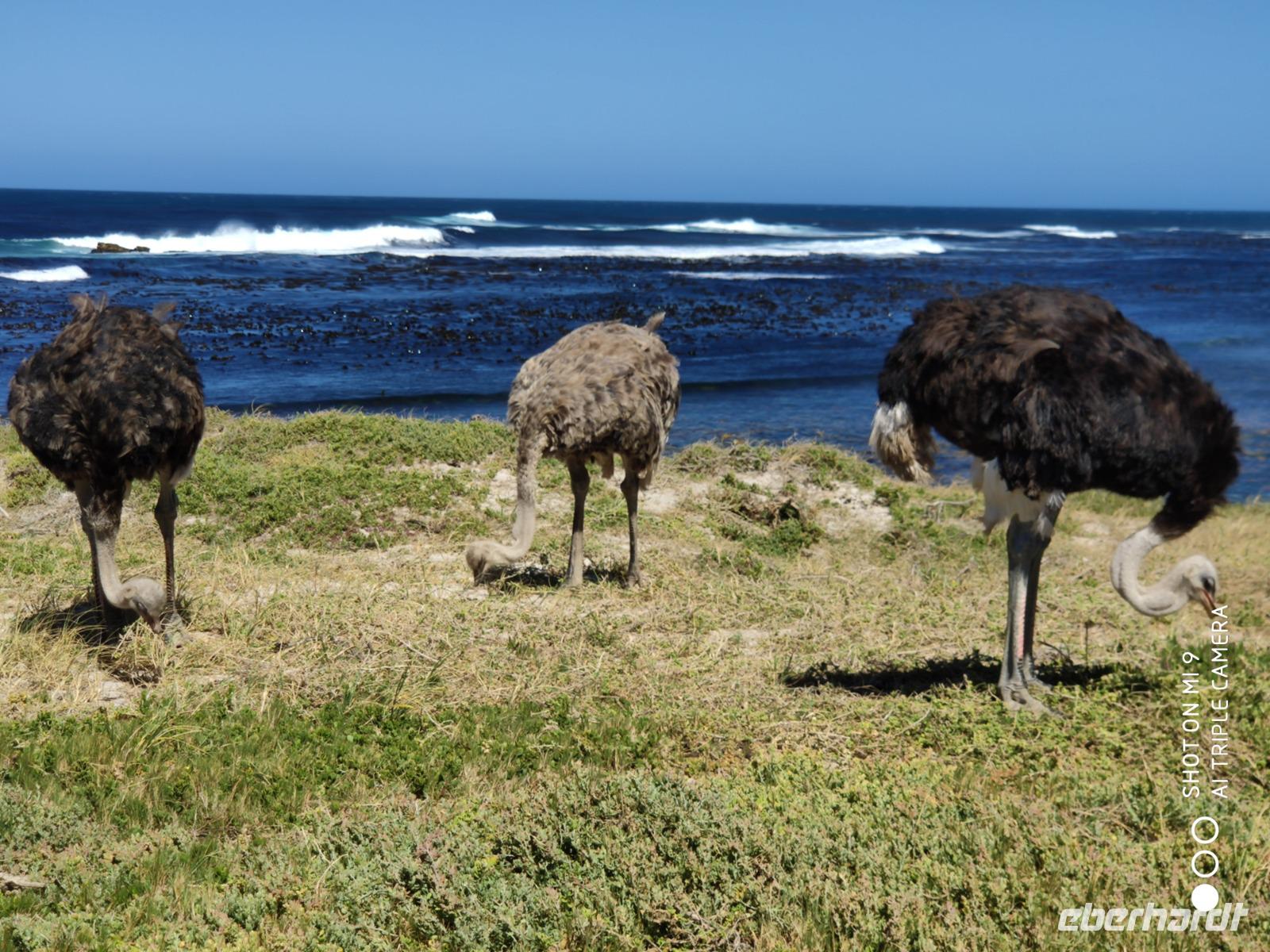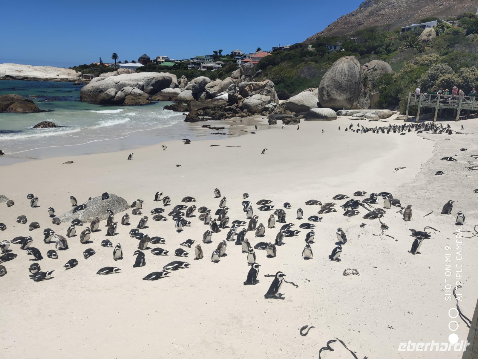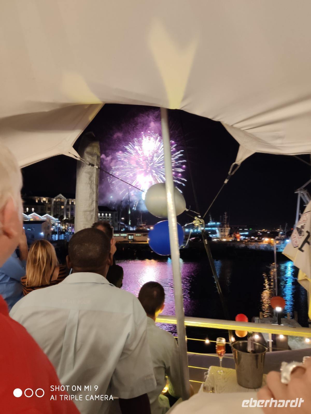 Das Frühstück wurde heute sehr zeitig eingenommen, schließlich wollte man zeitig im Nationalpark „Kap der guten Hoffnung" ankommen und den Menschenmassen dadurch voraus sein. Dies klappte hervorragend, betrachtete man die Menschenmassen und Wartezeiten am Eingang, als wir wieder herausfuhren. Doch der Reihe nach. Nachdem man wunderschöne Vororte wie Camp's Bay und Clifton hinter sich gelassen hatte erreichte man den Chapman´s Peak Drive, die nicht umsonst als eine der schönsten Straßen der Welt gilt. Hinter jeder Kurve zeigten sich spektakuläre Motive der Buchten und man konnte gar nicht genug fotografieren. Endlose weiße Traumstrände, schroffe Klippen und Felsen und das türkisblaue Meer- einfach sagenhaft. Der erste Stop führte uns zum südwestlichsten Punkt Afrikas, dem Kap der guten Hoffnung, mitsamt dem berühmten Schild. Ursprünglich wurde das Kap von den Portugiesen auch Kap der Stürme genannt, warum durfte jeder aus der Reisegruppe nun wissen. Es herrschte zwar kein Sturm, aber eine konstant steife Brise, die allerdings bei den Temperaturen dementsprechend für Abkühlung sorgte. Im Anschluss fuhr man weiter zum 3. Kilometer entfernten, 1859 errichteten Leuchtturm. Die einen fuhren mit der Cablecar nach oben, wieder andere wanderten 15 Minuten hinauf. Auch von hier bot sich ein spektakulärer Anblick, unter anderem auf den etwas später fertig gestellten zweiten Leuchtturm. Dieser war vonnöten, da der erste Leutturm falsch konstruiert wurde und das Leuchtfeuer von den Schiffen nicht gesehen werden konnte, lag er einfach zu hoch und somit überhalb der hier auftretenden Wolkendecke. Weiter führte uns der Weg zur Pinguinkolonie am Boulder's Beach nach Simon's Town. Ein Merkmal der Brillenpinguine sind die rotgefärbten Partien unterhalb der Augen. Diese geben Aufschluss über den Zustand des Tieres. Sind sie leicht rosa gefärbt, so geht es den Pinguinen gut. Entlang der Route lagen einige Traumhafte Städtchen, so zum Beispiel Fish Hoek und Kalk Bay. Die südafrikanische Regierung versuchte jahrzehntelang diesen Ort von der Inhaberin zu kaufen, was ihr auch schließlich gelang. Allerdings kam neben der Geldforderung noch die Bedingung, dass in diesem Ort nie Alkohol verkauft werden darf. Dies hat bis heute Bestand. Im örtlichen Fischrestaurant genoß man Meeresspezialitäten mit einem wundervollen Blick auf das Meer. Keinerlei Monsterwellen waren am heutigen Tag auszumachen, diese kommen hier von Zeit zu Zeit vor, auch wenn der Himmel strahlend blau und die See ruhig zu sein scheint, wie unsere Reiseleiterin vermittelte. Auf dem Rückweg hatten wir die Möglichkeit schon vorzeitig anzustoßen, da Maya uns einen Ihrer Lieblingsplätze im Natur Reservat "Silver Mine" zeigte. Eine tolle Aussicht über ganz Kapstadt und die umliegenden Berge ergab sich von hier. Zurück am Hotel bereitete man sich auf die Feierlichkeiten zu Silvester vor. Die drei Eberhardt Gruppen, die zeitgleich in Kapstadt weilten, hatten das Glück Plätze in einem Restaurant an der Waterfront ergattern zu können, sodass man das Feuerwerk aus nächster Nähe beobachten konnte. Bevor es allerdings so weit war, erfreute man sich an dem hervorragenden 5-Gänge Menü, dass die Küche zusammengestellt hatte. So konnte man Carpaccio vom Springbock probieren und nicht wenige staunten über die riesige Portion Meeresspezialitäten, die als Hauptgang serviert wurde. Um Mitternacht und eine Stunde vor Deutschland hieß es dann "Happy New Year". Bei Champagner wurde auf das neue Jahr, 10.000 km von der Heimat entfernt, angestoßen.