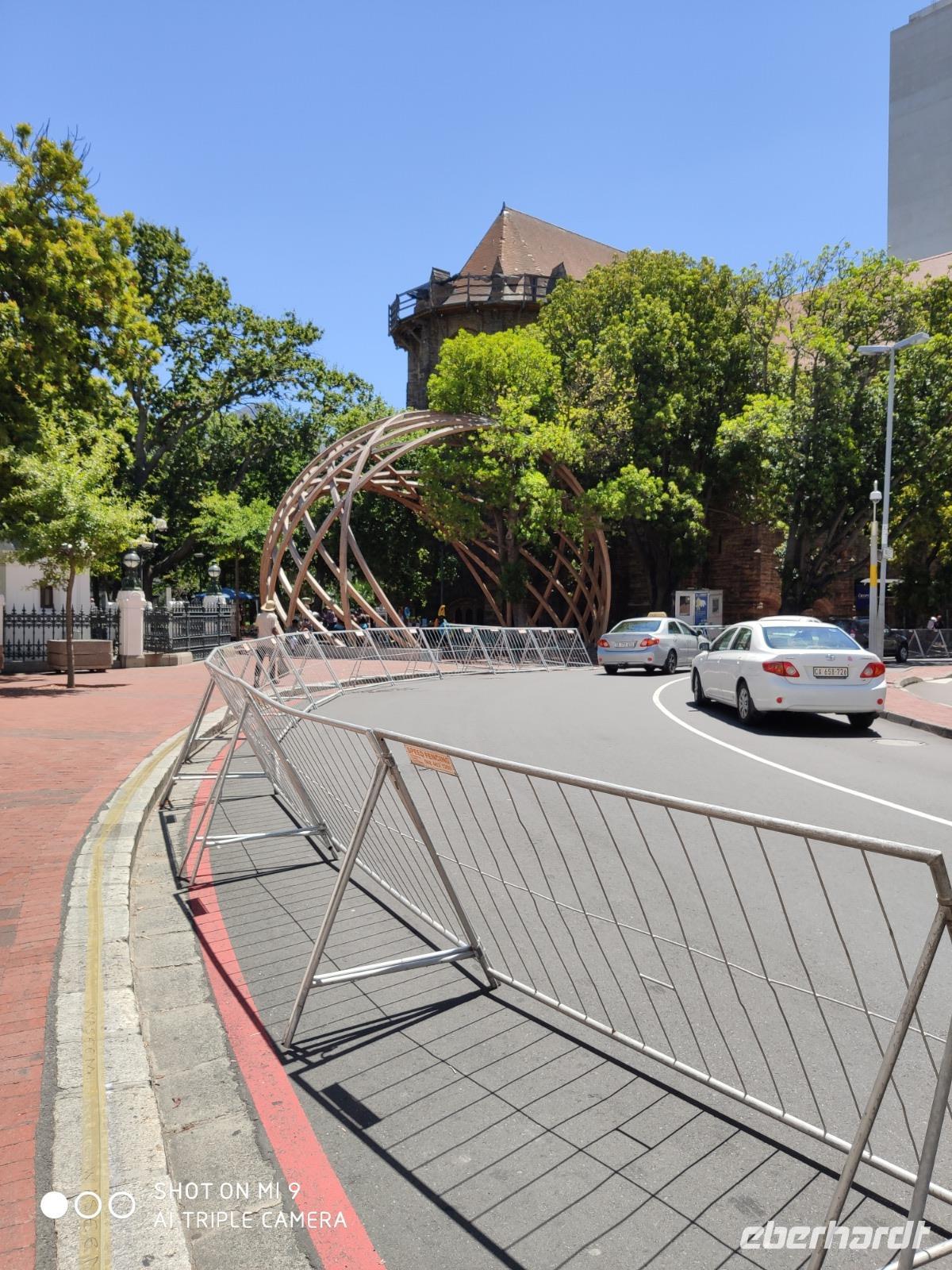 Nachdem man das ausgiebige Frühstück genossen hatte, sollte uns die Reise in die zweitgrößte Stadt Südafrikas- Kapstadt führen. Auf dem Weg dorthin passierte man allerhand Vororte, in denen Wellblechhütten standen und die vorwiegend von Einwanderen bewohnt werden. Diese kommen größtenteils aus Botsuana, Simbabwe und Mosambik und erhoffen sich in Südafrika und gerade in Region um Kapstadt ein besseres Leben. Leider schaffen es nur die wenigsten aus diesen Vierteln heraus, in denen es kein fließend Wasser gibt und der Strom größtenteils illegal abgezapft wird. Vorbei am Krankenhaus Groote Schuur, wo Christiaan Neethling Barnard 1967 die erste Herztransplantation vornahm, ging es leider nicht auf den Tafelberg, war dieser wegen Wind gesperrt. Aber auch vom Signal Hill hatte man einen fantastischen Blick über die Stadt und die Hout Bucht, an der Kapstadt liegt. Weit entfernt konnte man sogar die Weinregion ausmachen, mit ihren markanten Bergen. Darüber hinaus konnte man die Wolkendecke, die auf dem Tafelberg lag sehen, die als Tischdecke beschrieben wird. Diese entsteht durch auftreibende warme Luftschichten, die verhindern, dass die Wolken vom Tafelberg absinken. Vom Signal Hill herunter fuhr man in das farbenfrohe Viertel „Bo-Kaap", was soviel wie „über dem Kap" heißt. Bei einem Spaziergang konnte man sich mit köstlich duftenden Gewürzen eindecken und eine Kleinigkeit, die sogenannten „Samosas" probieren. Der Legende nach wurden die Häuser deswegen farblich unterschiedlich angestrichen, da sie keine Hausnummern hatten und man sie dadurch unterscheiden konnte. Weiter ging es in die Innenstadt Kapstadts mit dem Companys Garden. Ursprünglich wurde dieser zu einer Zeit angelegt, als die Seemänner noch mit Skorbut an Bord der Schiffe konfrontiert waren. Gemüse und Obst sollte hier gedeihen und den Mannschaften zur Verfügung gestellt werden. Heutzutage ist hier eine Oase mitten in der Innenstadt entstanden, durch die man herrlich im Schatten flanieren kann. Über die Long Street, der Hauptvergnügungsstraße mit zahlreichen Bars und Restaurant, führte uns der Weg zum Mittagessen in einem lokalen Foodmarket. Das Ambiente war einfach und größtenteils aßen hier Einheimische bei riesigen Portionen zu Mittag. Im Anschluss schlenderte man zurück zum Bus und sah dabei noch das Monument Arch for Arch, das Desmond Tutu's Spitzname "Arch" (Bogen) gewidmet ist Nachdem alle ihre Zimmer im Hotel bezogen hatten, nutzte die meisten die Freizeit für einen Bummel zur Waterfront, die inzwischen die meist frequentierte Touristenattraktion in Kapstadt ist. Hier reihen sich Geschäfte, Restaurants und Bars aneinander und das Leben pulsierte auf den Straßen dank zahlreicher Künstler, die hier ihr Können darbieten.