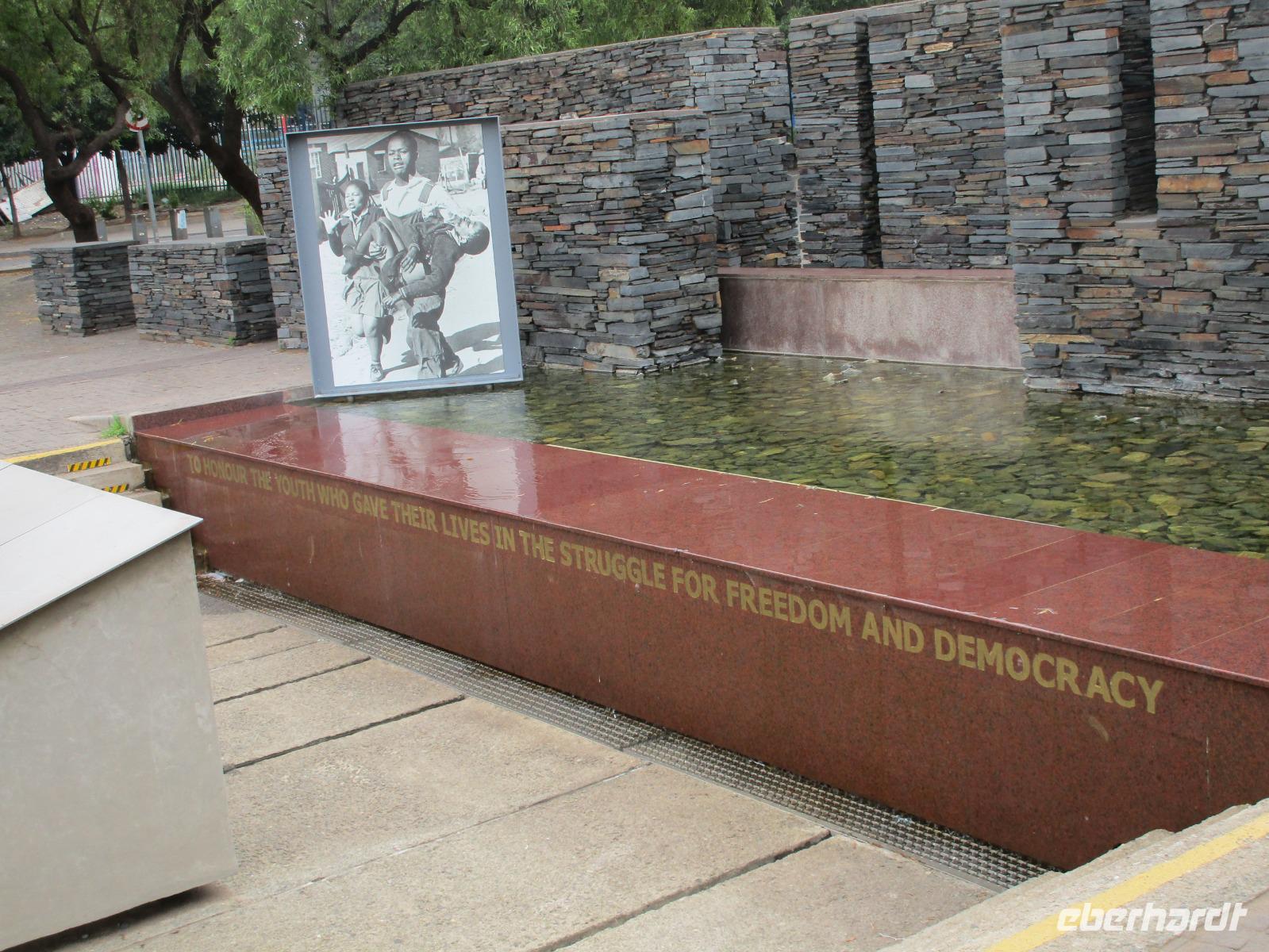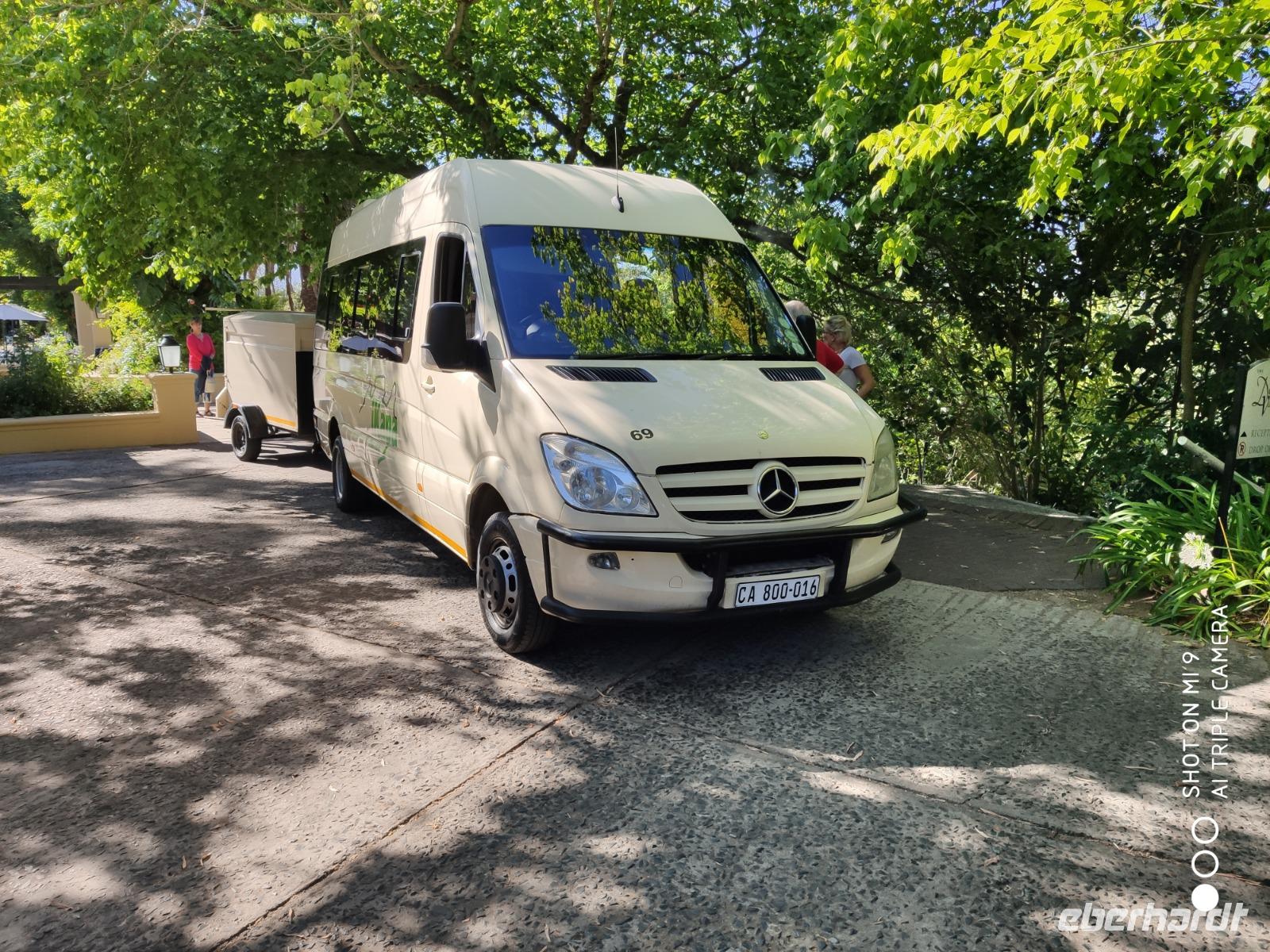 Bevor wir unseren Inlandsflug nach Kapstadt antreten sollten, konnten wir noch einen speziellen Punkt in unser Programm aufnehmen. Die Zeit ließ es zu mit dem Bus in das bekannte Viertel „Soweto" zu fahren und hier einen kleinen Spaziergang vor Ort zu unternehmen. Soweto, was für „South Western Town" steht, hat mehrere Millionen Einwohner und spielte eine bedeutende Rolle in der Historie Südafrikas. Eine unrühmliche Geschichte fand hier im Jahr 1976 statt, als der Junge Hector Peterson während einer Demonstration starb. Das entstandene Foto ging um die Welt und kann auch an der Gedenkstätte angesehen werden. In der Villakazi Straße, in der als einzige Straße auf der Welt gleich zwei Friedensnobelpreisträger zeitglich wohnten, konnte man sowohl das Haus von Nelson Mandela, als auch Desmond Tutu sehen. Angekommen am O. R Tambo Airport in Johannesburg verabschiedete man sich von Frans und Hennie und man bestieg den Inlandsflug nach Kapstadt. Bereits aus der Luft konnte man den weltberühmten Tafelberg entdecken, den wir in den nächsten Tagen noch häufiger sehen sollten. Doch bevor man sich in Kapstadt einquartierte, wollte man zwei Tage in der Weinregion um Stellenbosch verbringen. Mit einer neuen Reiseleitung, Busfahrer und einem neuen Bus ging es in Nordöstliche Richtung in das wundervoll gelegene Devon Valley Hotel. Man hatte eine hervorragende Aussicht von der Restaurantterrasse über die grüne Landschaft mit ihren sanft geschwungenen Hügeln und Weinbergen. Bei einem schmackhaften Abendessen mit musikalischer Untermalung, ließ man sich das ein oder andere südafrikanische Tröpfchen schmecken und war voller Vorfreude auf den nächsten Tag, sollte man die Möglichkeit haben an zwei Weinverkostungen teilzunehmen.