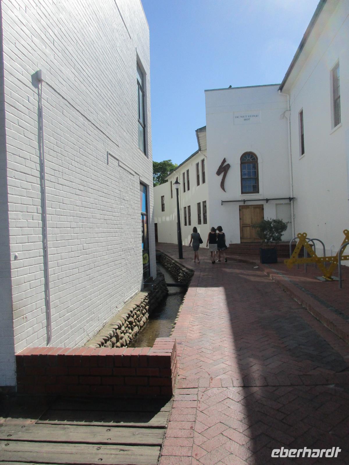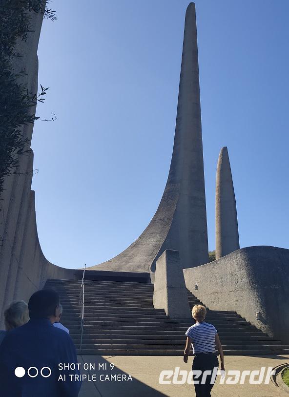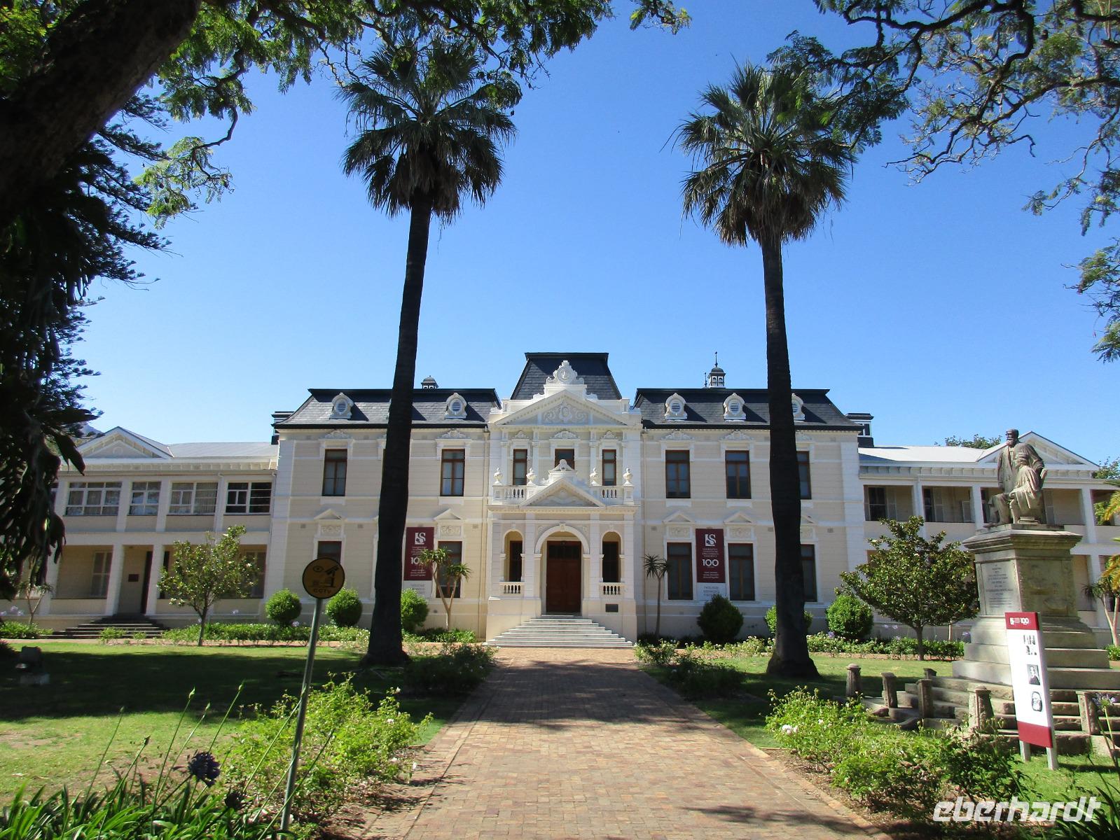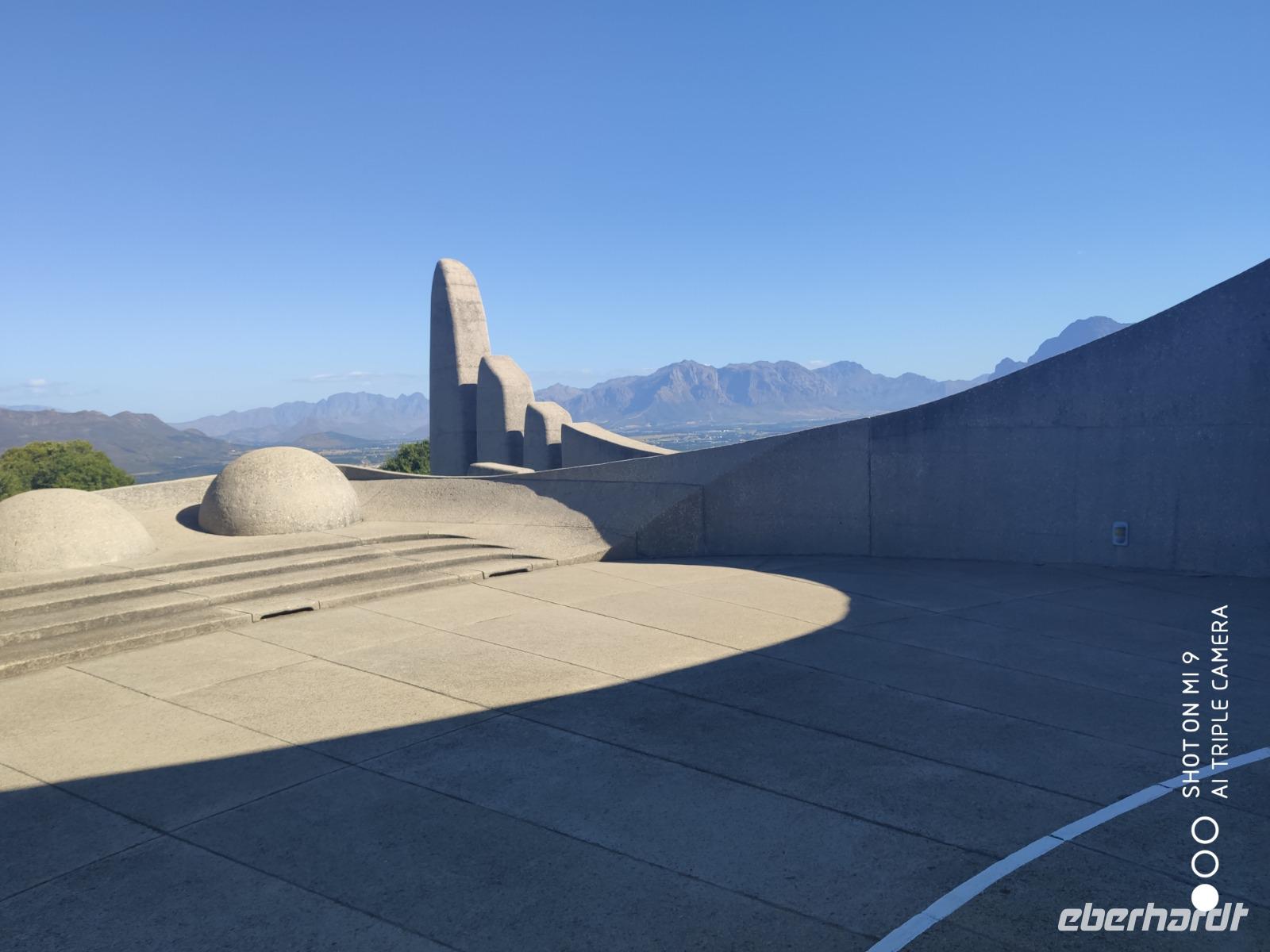 Das erste Ziel des heutigen Tages war zuerst die Universitätsstadt Stellenbosch, die zweitälteste Stadt in Südafrika. Diese beherbergt heute 20.000 Studenten und ist vor allem bekannt für die medizinische und juristische Fakultät. Dies erzählte uns unsere Reiseleiterin Maya, die hier selbst studiert hat, bei einer Rundfahrt duch die malerische Stadt. Vor Ort ist vor allem die Kapholländische Architektur verbreitet, leitet sich der Name „Stellenbosch" von dem Begründer des Ortes Simon van der Stel ab. Dieser hatte den Auftrag für die Niederlande einen geeigneten Platz zum Anlegen eines Gartens zu finden. Bei einem Rundgang durch das Zentrum wurde uns vermittelt, was diese Architektur ausmacht und man konnte selbst einen Eindruck erhalten, wie sich hier das Leben während der niederländischen Kolonialzeit abgespielt haben muss. Das erste Weingut was im Anschluss besucht wurde trägt den Namen Blaauwklippen und wurde 1682 gegründet. Heutzutage ist der Inhaber ein Ex-Rugby Spieler. Bei einer Führung durch die Keller des Weingutes erfuhr man unter anderem, dass es auf dem gesamten Weingut keine Anbauflächen für Trauben gibt, sondern diese extern eingekauft werden. Nach der Verkostung setzte man sich zur Mittagszeit unter den Schatten und ließ sich kulinarisch verwöhnen. Vor allem die Muscheln schmeckten vorzüglich, sodass einige den opuenten Nachtisch ausfallen ließen. Mehrere Stunden verbrachte man hier und schaute sich den nebenan stattfindenden Markt an, auf dem wundervolle handgefertigte Sachen verkauft wurden. Eine tolle Szenerie, die zeigt, wie schön das Leben an diesem Ort der Erde sein kann, vorausgesetzt, man verfügt über die notwendigen finanziellen Mittel. Über Franzschhoek, ein Ort, der von den Franzosen errichtet wurde, erreichte man im Anschluss das zweite Weingut „Haute Cabariere", das vor allem mit einer fantastischen Aussicht auf die Hottentots-Berge aufwarten konnte. Ganz in der Nähe wurde ein Monument für die Sprache Afrikaans gebaut. Mehrere unterschiedlich hohe Säulen symbolisieren dabei, aus welchen Sprachen sich die Sprache bildet. Die höchste Säule mit 57m ist nach oben hin offen und verdeutlicht, dass die Entwicklung der Sprache immer weitergeht. Nach einem Spaziergang durch den angrenzenden Garten, fuhr man wieder zum Hotel zurück und der ein oder andere Reiseteilnehmer erfrischte sich im Hotelpool.