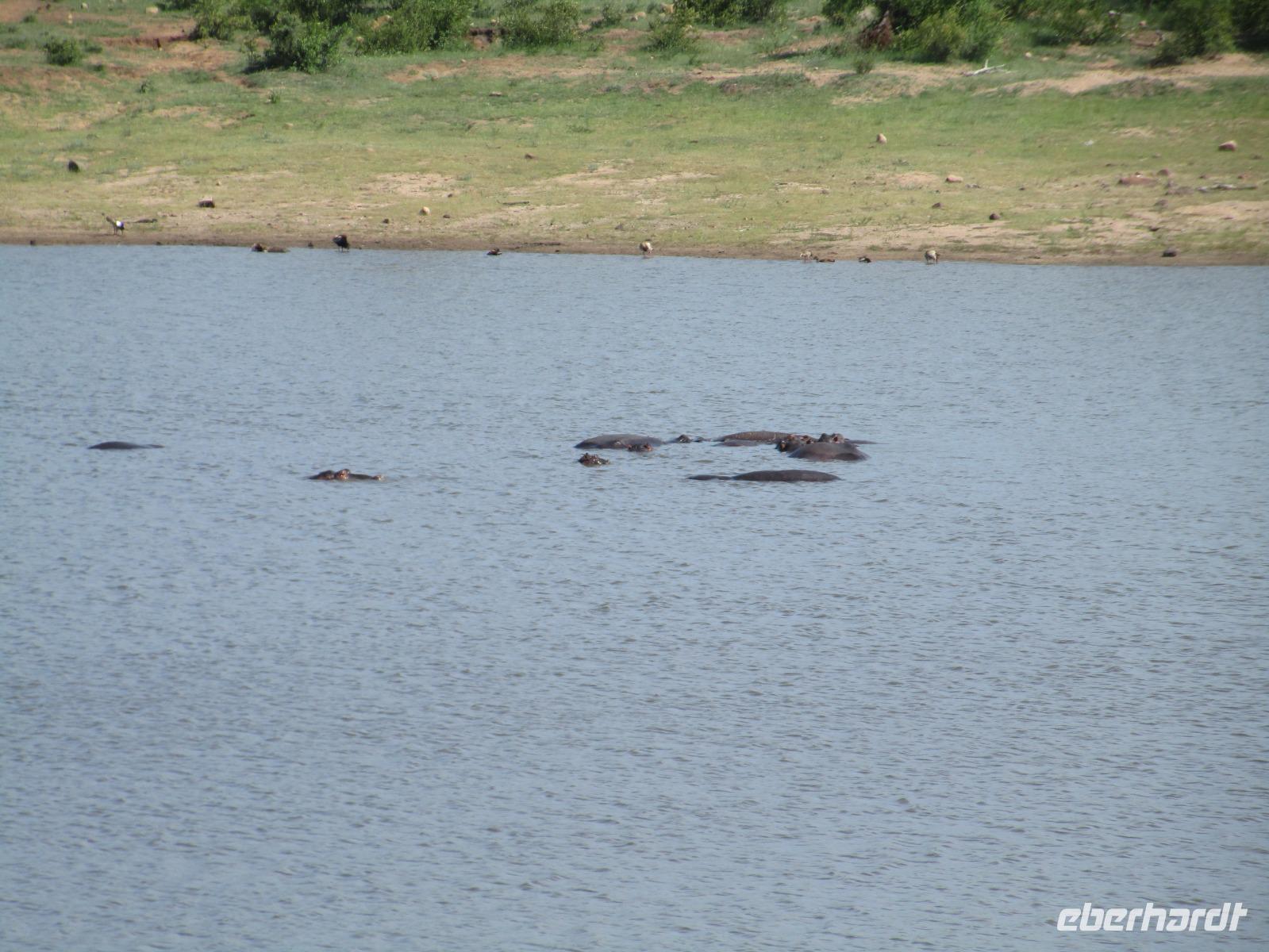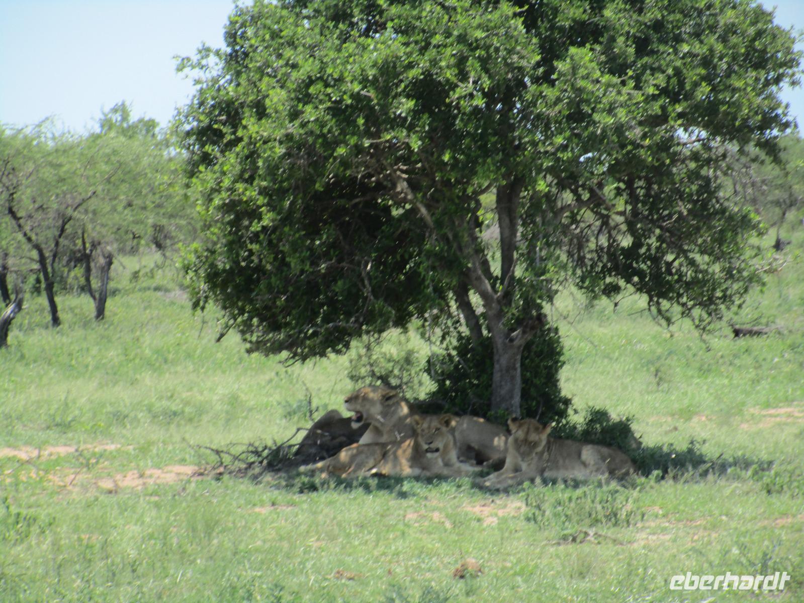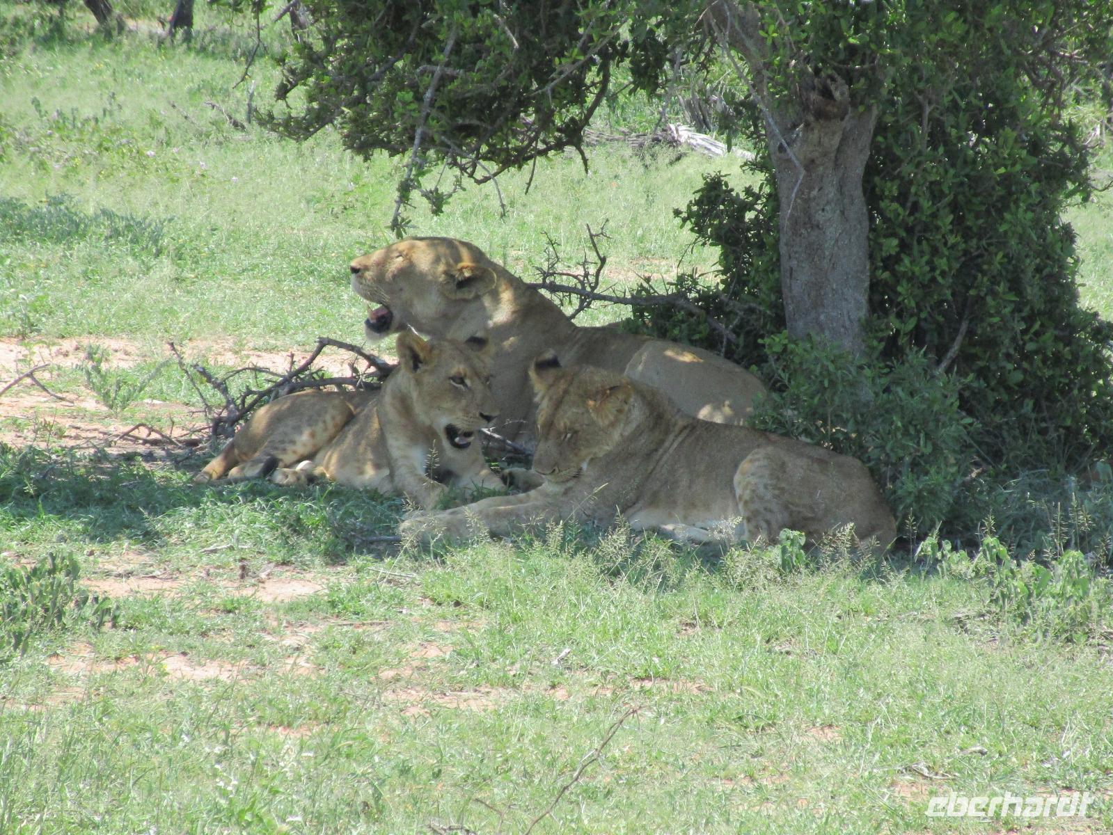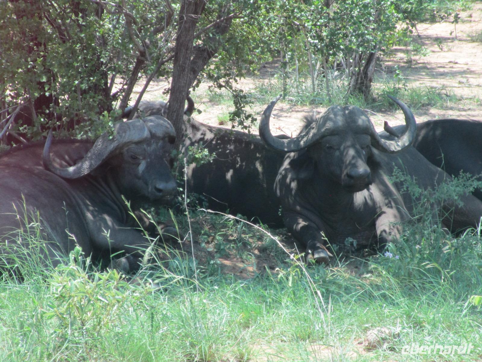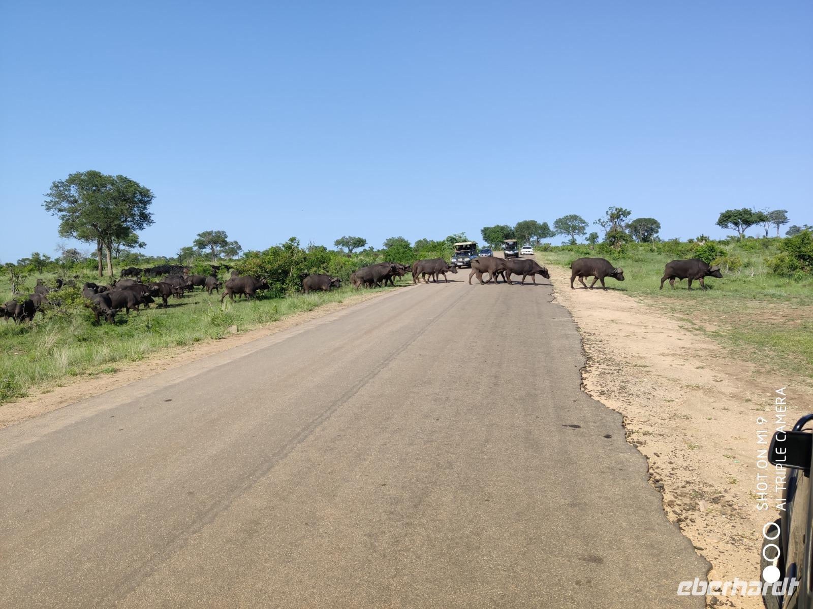 Früh aufstehen hieß es heute um den zweiten Teil der Safari, heute mit dem Jeep, in Angriff zu nehmen. Aufgrund des zeitigen Aufbruchs bestand das Frühstück nur aus einer Tasse Kaffee und Tee. Das Frühstück wollte man dann im Park zu sich nehmen. Über unbefestigte Straßen ging es durch die Savanne vor allem mit dem Ziel die Big Five zu vervollständigen. Über das Funkgerät wurde unseren Jeeps mitgeteilt, dass ein Leopard zu sehen sein sollte. Also nichts wie los- mit ordentlich Tempo fuhr man über die Ruckelpisten, um auf ein solches seltenes Exemplar zu sichten, wie es sich in der Baumkrone gemütlich machte. Der Ranger versorgte uns neben frischen, kühlen Wasser auch mit allerhand Informationen über die Tiere. Außerdem erklärte er uns, dass niemand bis auf die Park Polizei bewaffnet sei und im Zweifelsfall die Flucht durch Treten des Gaspedals erfolgen würde. Ein besonderes Schauspiel bot sich, als eine Büffelherde die Straße direkt vor unseren Jeeps überquerte. Nach dem Mittagessen konnte noch eine Löwenmama mit ihren Kindern beobachtet werden, die unter einem schattigen Baum der Hitze zu entgehen versuchte. Nach weiteren Stunden im Park konnte man zumindest vier der großen fünf betrachten. Lediglich das Nashorn bekamen wir nicht zu Gesicht. Gegen Nachtmittag kehrte man zurück in die Lodge und die meisten kühlten sich eine Runde im Hotelpool ab. Beim Abendessen in der Lodge tauschten sich die Reisegruppen vor allem über die Erlebnisse im Park und die gesehenden Tiere aus.