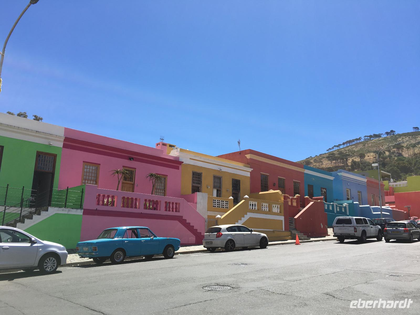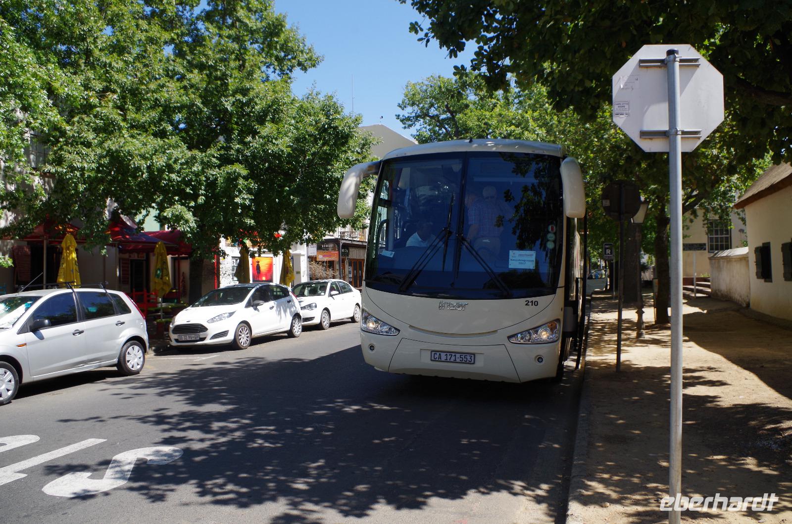 Nach einem langen Flug landen wir pünktlich gegen 08.05 Uhr und mit einer Stunde Zeitverschiebung zu Deutschland am internationalen Flughafen in Johannesburg. Die Passkontrolle und Kofferannahme am Gepäckband 9 verlaufen ohne Schwierigkeiten, obwohl wir alle Fingerabdrücke nehmen lassen müssen. Anschließend laufen wir gemeinsam den grünen Korridor entlang, da wir keine Ware zu verzollen haben. Auch wenn unsere Koffer bis Kapstadt durchgecheckt sind, müssen wir dennoch die Koffer am Gepäckband holen und beim Re-Check-In wieder aufgeben. Hier haben wir allerdings noch ein kleines Problem aufgrund einer verlorenen Kofferbanderole, welches wir aber vollständig klären können. Alle Koffer werden abermals eingecheckt. Dann laufen wir zum Abfluggate E2 im Terminal B in der zweiten Etage. Gegen 09.25 Uhr sind wir bei der Sicherheitskontrolle, obwohl parallel bereits das Boarding beginnt. Eine Rückfrage nach einer Express-Sicherheitskontrolle wurde verneint, so dass wir uns höflich, aber konsequent an den wartenden Passagieren vorbeischlängeln, um unseren Anschlussflug rechtzeitig zu erreichen. Unsere kleinen Wasserflaschen vom Flug aus Frankfurt/Main können wir mitnehmen. Um 09.40 Uhr findet das Boarding statt und wenig später begrüßen wir im Flieger unsere zwei Gäste mit Direktflug aus München. Die Reisegruppe ist nun auch vollständig ;o) Um 10.10 Uhr fliegen wir pünktlich mit South African Airways, kurz SAA, SA 323 von Johannesburg nach Kapstadt. Ein belegtes Baguette und Getränke erhalten wir an Bord. Nun liegen rund zwei Stunden Flugzeit vor uns. Um 12.15 Uhr landen wir pünktlich in Kapstadt. Die Gepäckannahme verläuft problemlos und in der Eingangshalle des Flughafens begrüßt uns freundlich unser örtlicher Reiseleiter Herbie. Es ist rund 25 Grad warm, sonnig und wir werden mit einem "Herzlich Willkommen!" oder besser gesagt "Sawubona!" empfangen. Die südafrikanisch Hauptstadt heißt Tshwane (Pretoria), welche zugleich das Verwaltungszentrum Südafrikas ist und wo rund 3 Millionen Menschen leben. Im rund 50 Kilometer südlich gelegenem Johannesburg wohnen circa 4,4 Millionen und in Kapstadt rund 3,7 Millionen Einwohner. Kurz nach ein Uhr fahren wir Richtung Innenstadt. Im Bus werden wir mit einer Flasche Wasser versorgt, weitere Getränke können beim Busfahrer erworben werden. Wir fahren zuerst zu einem Souvenirladen, wo wir relativ zügig und zu einem - wie wir später noch feststellen werden - relativ guten Kurs unser Geld wechseln können. Der Kurs beträgt aktuell 1 € zu 14 ZAR (Afrikanischer Rand). Zudem wird in Südafrika ein dreipoliger Adapter benötigt. Den Adapter für rund 30 Rand pro Stück wird Herbie auf Wunsch in den nächsten Tagen für uns versorgen, Danke Herbie! Gern können die Gäste schon jetzt ihre ersten Postkarten besorgen, eine Karte kostet rund zehn Rand. Anschließend fahren wir direkt zum Tafelberg, da die Wetteraussichten sehr gut ausschauen. Aber hier angekommen erwartet uns eine riesige Menschenschlange und eine Wartezeit von über zwei Stunden! So gern wir heute auch mit der Bahn den Tafelberg erklimmen möchten, die Wartezeit ist einfach viel zu lang und in unseren teilweise noch warmen Wintersachen aus Deutschland viel zu anstrengend. Wir werden es einfach an einem anderem Tag nochmals versuchen ;-) Unsere Fahrt führt uns weiter zum buntem Viertel Bo-Kaap mit seinen in verschiedenen Farben gestrichenen Häusern. Hier unternehmen wir einen kleinen Spaziergang durch das Viertel. Unsere Reise führt uns anschließend zum 4-Sterne-Hotel "Devon Valley Hotel" in Stellenbosch in Südafrika. Auf der Autobahn stehen wir aber noch über eine Stunde im Stau fest, da sich die Polizei an einem Freitag zur Hauptverkehrszeit überlegt hat, eine Verkehrssicherheitskontrolle durchzuführen, was um diese Uhrzeit an einem solchen Tag vor einem verlängerten Wochenende mehr als ungünstig ist! Aber auch diese Hürde überwinden wir und gegen 17.00 Uhr werden in der wunderschönen mitten in einer Weinregion liegenden Hotelanlage mit einem Glas Roséwein empfangen. Wir beziehen unsere Zimmer und genießen das warme Wetter, schwimmen im Pool oder entspannen einfach auf der Terrasse vom Restaurant. Auf dem Zimmer finden wir zwei Glasflaschen Wasser vor, welche im Zimmerpreis inkludiert sind. Auf Nachfrage bei Herbie ist es unbedenklich, Leitungswasser zu trinken, auch wenn er dies nicht unbedingt empfehlen würde, da das Wasser schon gewöhnungsbedürftig ist. Zum Abendessen werden wir von Eberhardt auf ein Glas köstlichen, aus der Region stammenden Wein eingeladen. Gemeinsam stoßen wir auf eine wunderbare Neujahrsreise in Südafrika an, na dann Prost :-) Bei der Vorspeise haben wir die Wahl zwischen Broccoli-Feta-Suppe oder in Pesto eingelegtes Hühnchen mit Salat, beim Hauptgang zwischen auf Holzkohle gegrilltem Rumpfsteak oder Seeteufel Dreierlei sowie zum Nachtisch zwischen Haselnuss Brulée oder Schokoladen-Muffin mit Vanilleeis. Sowohl das Abendessen als auch der Wein sind vorzüglich. Anschließend sitzen wir auf der Terrasse zusammen und genießen unseren ersten Abend in Südafrika bei warmen Temperaturen. Nach 22.00 Uhr verabschieden wir uns langsam voneinander und wünschen eine angenehme Nacht!