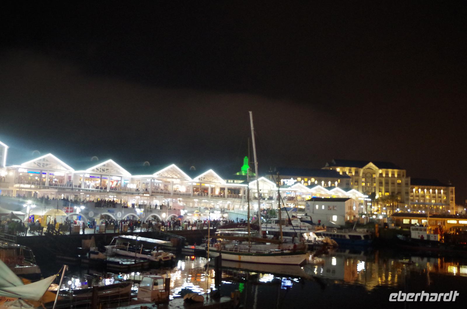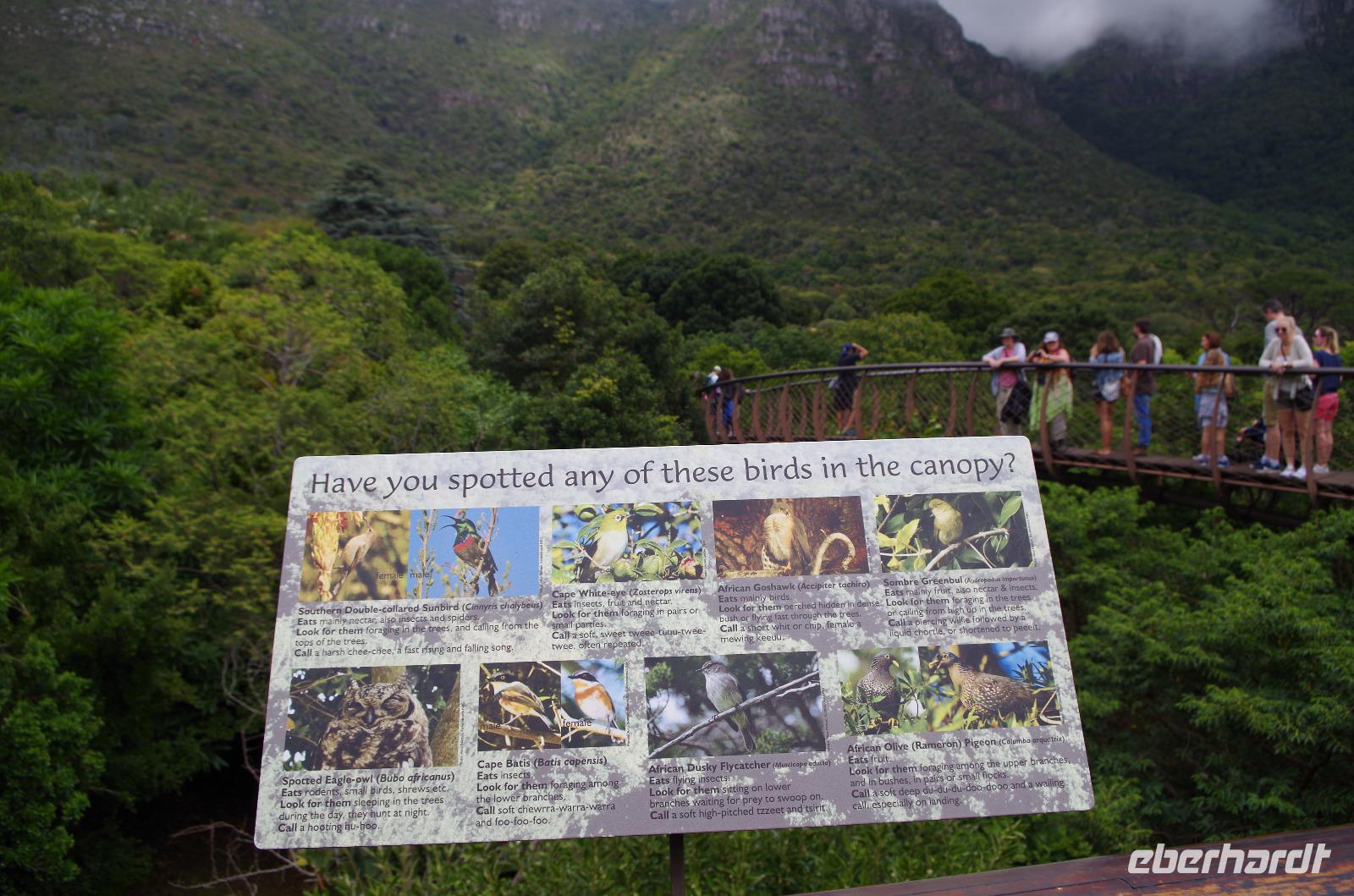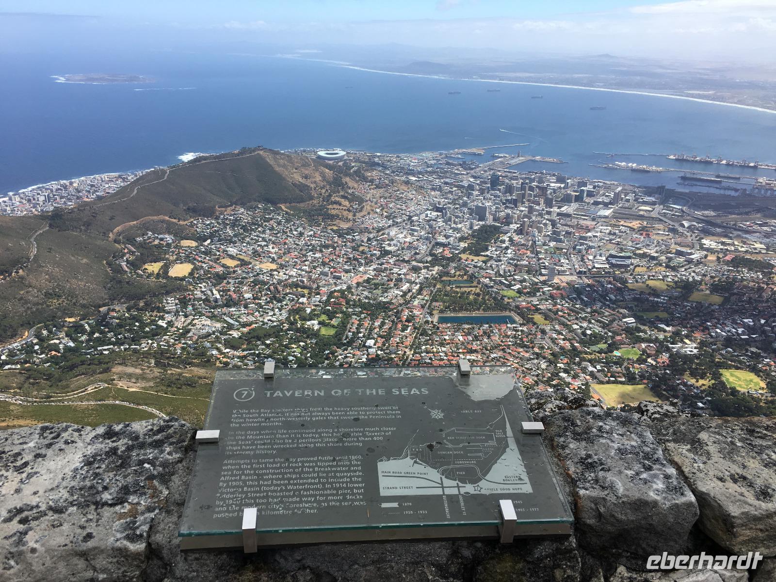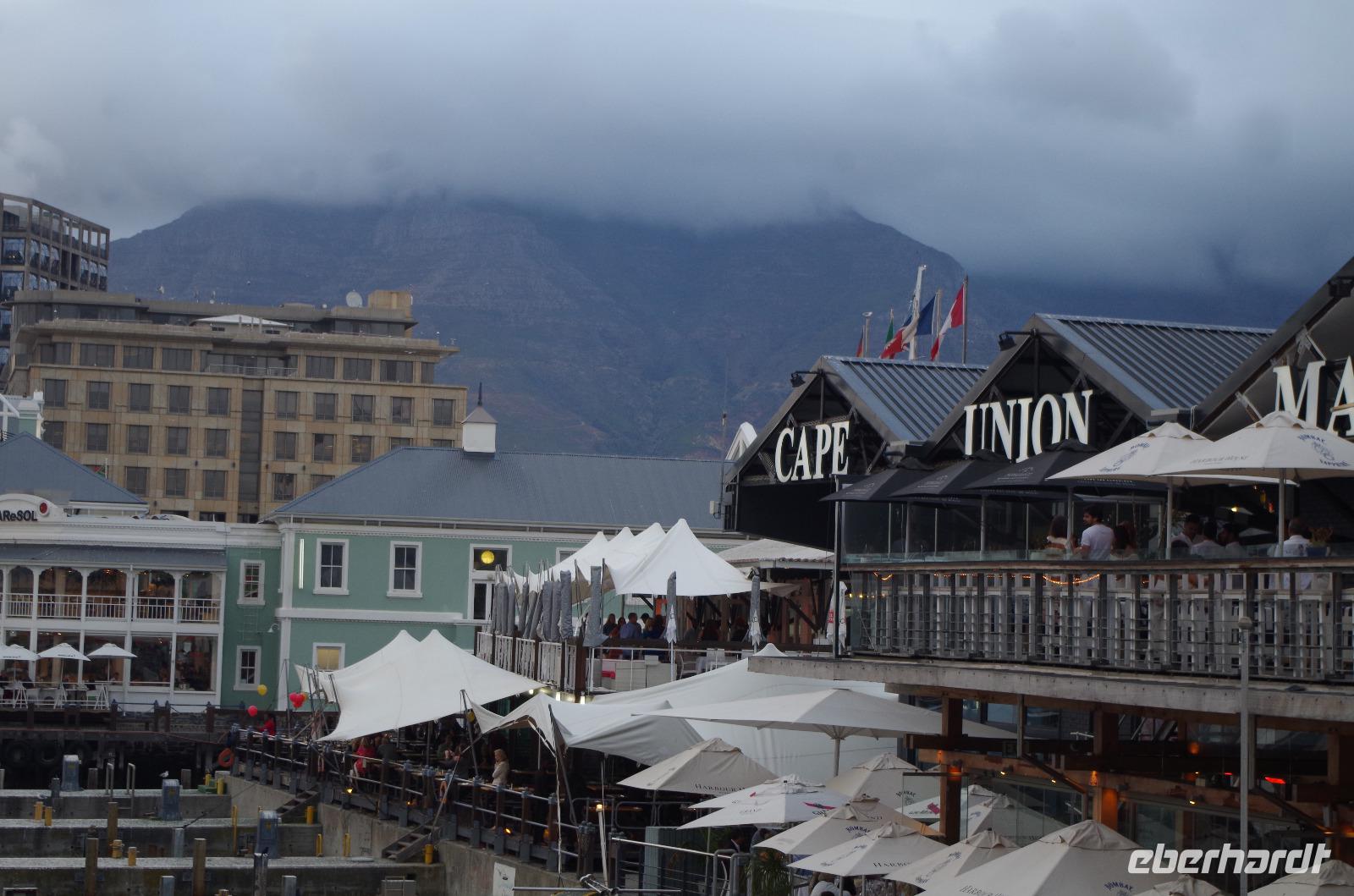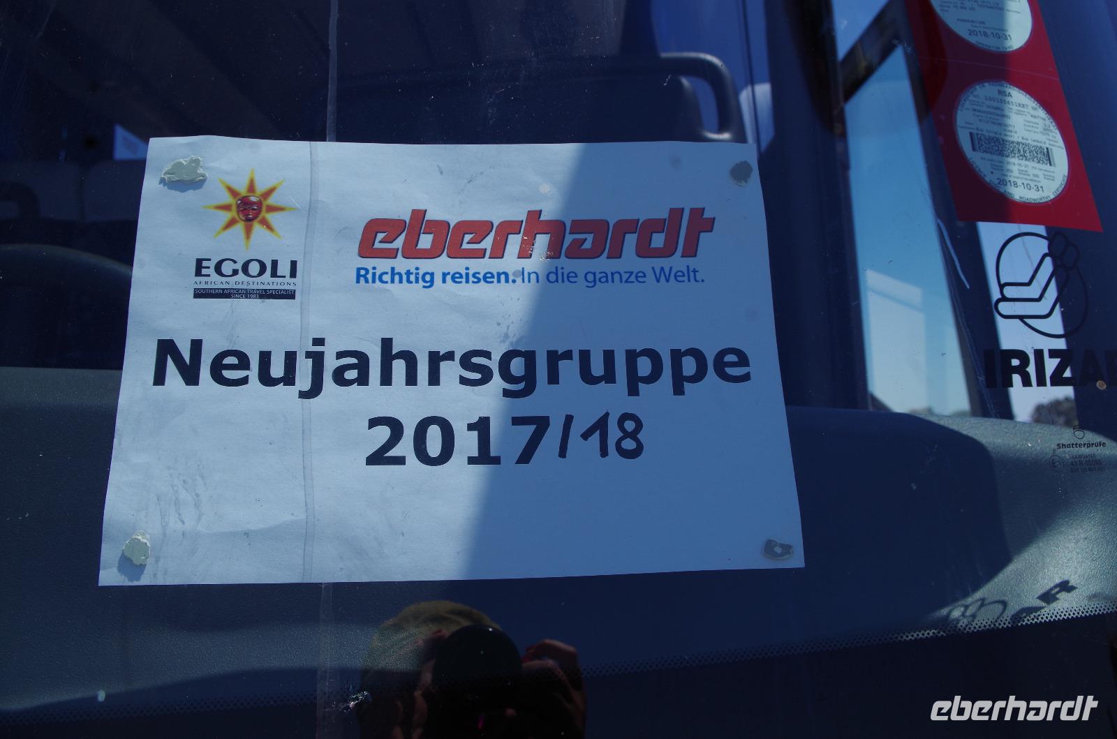 Das Jahr 2017 verabschiedet sich nicht gerade auf angenehme Art und Weise von uns. Der Morgen ist grau und windig, in Kapstadt regnet es. Das sind wirklich keine rosigen Aussichten, aber wir machen wie immer das Beste daraus! Das Frühstück ist abermals ab 06.30 Uhr möglich. Danach heißt es Koffer packen, auschecken und um 09.00 Uhr fahren wir nach Kapstadt. Auf unserem heutigen Plan steht der Besuch des 1913 errichteten Nationalen Botanischen Gartens in Kirstenbosch, welchen wir rund eine Stunde später erreichen. Der Garten steht unter Verwaltung vom South African National Biodiversity Institute, kurz SANBI, und ist mit rund 36 Hektar der größte der zehn nationalen botanischen Gärten. Wir erfahren von Herbie, dass seine Entstehung ins Jahr 1652 zurückzuführen ist. Zu der Zeit hatte der Gouverneur Jan van Riebeeck den Waldbestand überprüfen und rund acht Jahre später eine Schutzmaßnahme sowie Siedlungsgrenze bestehend aus Brombeerhecken und wilden Mandelbäumen errichten lassen. Die Namensgebung ist zurückzuführen auf einen früheren Landwirt mit Namen Jan Frederik Kirsten und dessen Farm Veldhuisen, welche sich vorher an der heutigen Stelle des Botanischen Gartens befunden hatte. Die Hauptaufgabe des Parks besteht darin, die einheimischen südafrikanischen Pflanzen zu kultivieren, zu pflegen und zu erforschen. Am Eingang erhalten wir alle eine Wegbeschreibung und erkunden individuell die schöne Anlage mit den riesigen Bäumen und einzigartigen Pflanzen. Was können wir hier sehen und entdecken? Wer möchte, folgt den "Spuren der Vergangenheit" auf dem rund zwei Kilometer langen "Historischen Pfad", wobei auf die Wegweiser "Heritage Trail" mit den entsprechenden Erklärungen zu achten ist. Weitere Highlights sind der Duftgarten, der Mathews Steingarten, der Erica Garten, der Protea Garten, die Van Riebeeck's Hecke, der Skulpturengarten sowie der Garten der gefährdeten Pflanzen. Zudem befindet sich im Garten das Restaurant "moyo Kirstenbosch" sowie die Kirstenbosch Tee-Stube. Der leichte anhaltende Nieselregen stört uns nicht weiter, es wird sicher noch besser werden ;-) Um 11.30 Uhr treffen wir uns in Eingangsnähe, um ein weiteres Gruppenfoto aufzunehmen. Und nein, es wird nicht das letzte Gruppenfoto sein *grins* Zunächst stoßen wir mit leckerer alkoholhaltiger Schokolade "Anthon Berg Since 1884 Chocolate Liqueurs" auf eine schöne Reise an und anschließend entsteht ein tolles Foto mit Eberhardt Schild. Aber was passiert dann? Durch eine Windböe landet das Schild im nahegelegenen Teich! Hmmm, was nun? Wie bekommen wir das Schild wieder aus dem Teich gefischt? Wir wollen ja schließlich die Umwelt nicht verschmutzen! Alle Versuche, das Schild mit einem Stock herauszuholen, misslingen, so dass die Reisebegleitung die Hosenbeine hochkrempelt und selbst in den Teich steigt. Zum Glück ist sowohl das Wasser als auch die Außentemperatur sehr angenehm. Das Schild ist "gerettet" und ein witziges Foto im Teich im Botanischen Garten von der Reisebegleitung entsteht. Unterhaltsam war die Aktion für die Gäste und auch für die Reisebegleitung allemal ;o) Dann schauen wir uns gemeinsam mit Herbie den eher unscheinbaren Nationalbaum Südafrikas an, den Real Yellowwood "Podocarpus latifolius". Gegen 12.00 Uhr laufen einige Gäste den Skywalk "Centenary Tree Canopy Walkway" mit tollem Blick über den Botanischen Garten entlang. Bevor wir den Garten verlassen, schauen wir uns noch im Souvenirladen um. Um 13.00 Uhr fahren wir weiter ins Zentrum von Kapstadt. Wir besuchen den "The Company's Garden" und gönnen uns einen Kaffee und kleinen Mittagsimbiss im "The Company's Gardens Restaurant". Das Wetter ist zwar immer noch grau und nebelig, aber es hat immerhin mit Regnen aufgehört! Dann fahren wir zum 4-Sterne-Hotel "City Lodge V & A Waterfront", wo wir die nächsten drei Nächte übernachten werden. Wir checken 16.00 Uhr ein und entspannen bis zum Abend. Um 18.00 Uhr treffen wir uns, um gemeinsam zur berühmten "Victoria & Alfred Waterfront" zu spazieren, welche sich nur rund zehn bis fünfzehn Gehminuten vom Hotel entfernt befindet. Hier angekommen verteilt sich die Gruppe. Es gibt eine große Shopping Mall, Souvenirgeschäfte und ein Riesenrad. Die Waterfront eignet sich auch für einen tollen Spaziergang am Hafen entlang. Es ist jedoch zu beachten, dass in Kapstadt ein striktes Alkoholverbot besteht und kleine Handtaschen-Regenschirme können als Gewaltstöcke angesehen werden! Abermals regnet es in Kapstadt. Beim Essen wird uns der Regen aber nicht stören, da wir drinnen im Restaurant unser Menü genießen werden. Um 20.15 Uhr treffen wir uns wieder zum Abendessen an der Victoria & Alfred Waterfront vorm Restaurant "Quay Four: Seafood Restaurant & Tavern", wo unsere Abendveranstaltung stattfinden wird. Wir werden mit einem Glas Champagner empfangen und nehmen die Sitzplätze an zwei großen Tischen für bis zu neun Personen ein. Der Tisch ist schön mit Luftballons und Luftschlangen dekoriert, mitgebracht von der Reisebegleitung aus Deutschland. Das Tischschild von Eberhardt darf da natürlich nicht fehlen! Zum Glück kann das Schild dieses Mal nicht wegfliegen :-) Wir werden mit einem ausgezeichneten Fünf-Gänge-Menü verwöhnt, von leckerem Fisch über eine riesige Portion Fleisch ist für jeden Reisegast etwas dabei. Die Vorspeise besteht aus Burrata, norwegischer Lachs oder Springbock Carpaccio. Zwischen Vor- und Hauptspeise wird uns ein Salat und ein Sorbet gereicht. Bei der Hauptspeise haben wir die Wahl zwischen Meeresfrüchte-Platte, ein vegetarisches Wachtel-Ei-Pilz-Gericht, Straußenfilet oder Prime Rip. Natürlich können wir nicht ohne eine leckere Süßspeise ins Neue Jahr starten, so dass wir als Dessert ein Dreierlei aus Zitronenpudding, einer Art Schwarzwälder Kirschtorte sowie Blaubeereiscreme mit Ingwerschnaps serviert bekommen. Wir unterhalten uns über die vergangenen Tage im alten Jahr und freuen uns auf die kommenden Erlebnisse im neuen Jahr. Die Zei