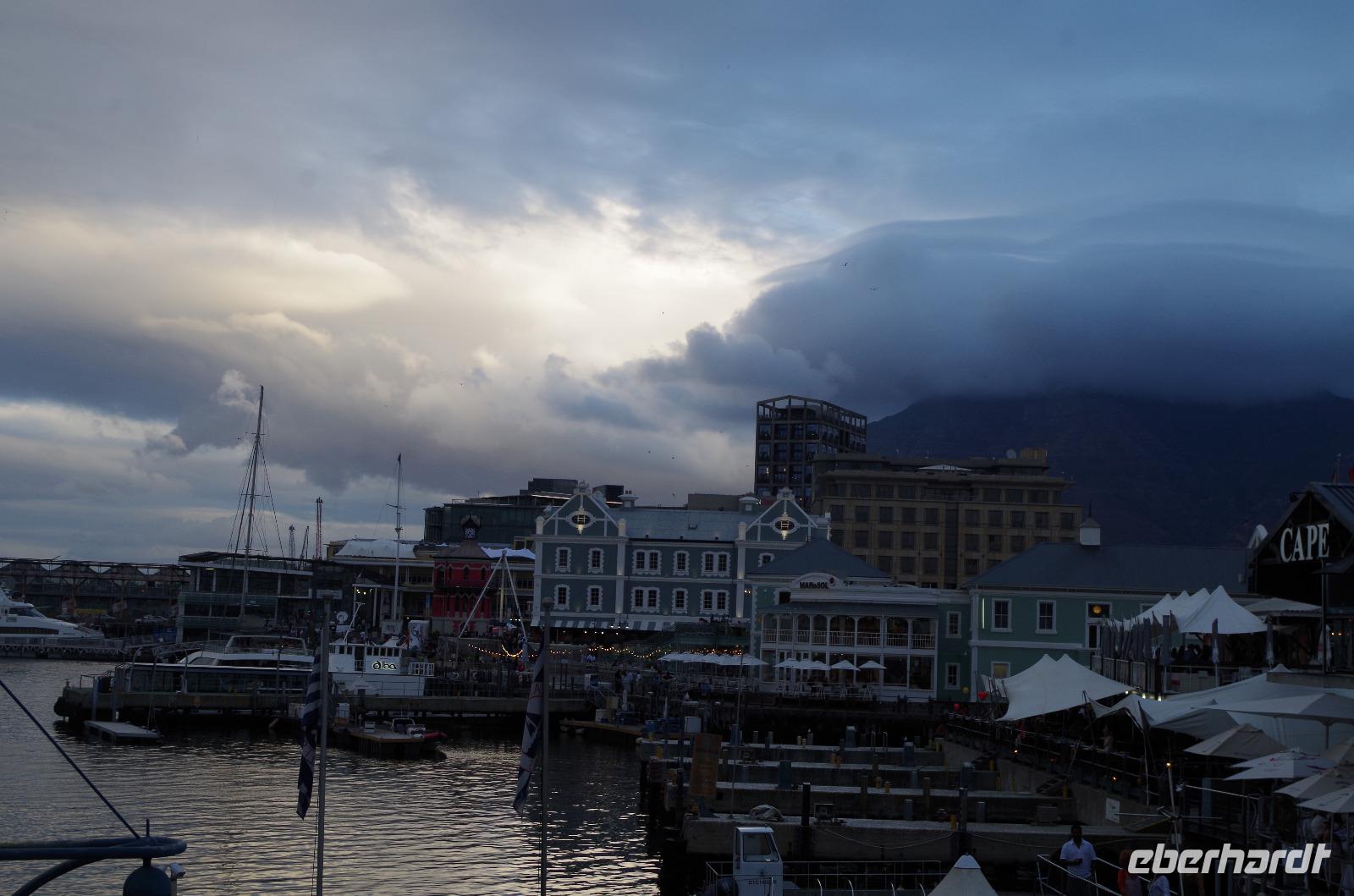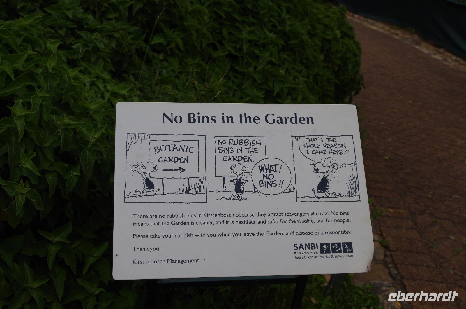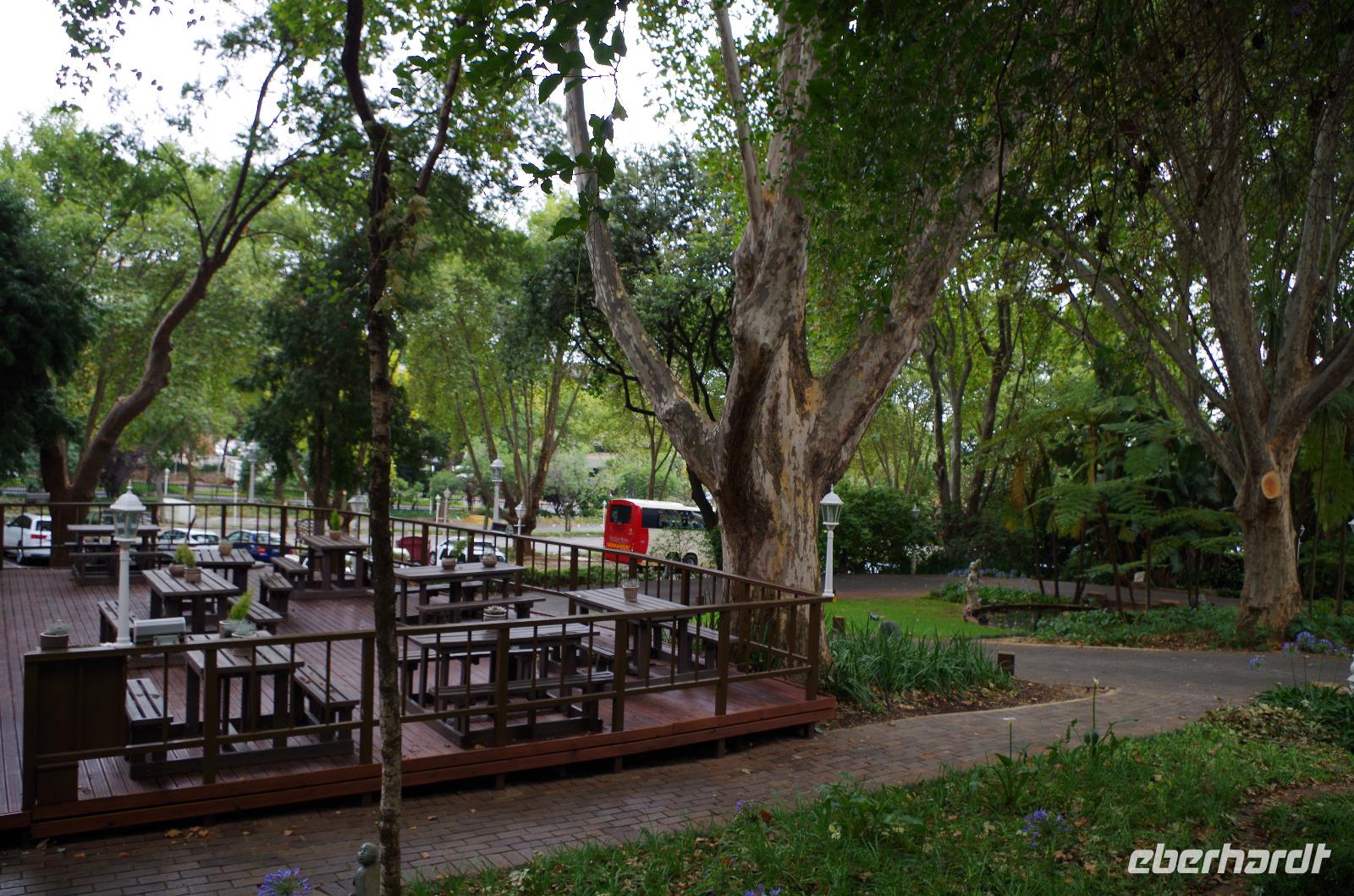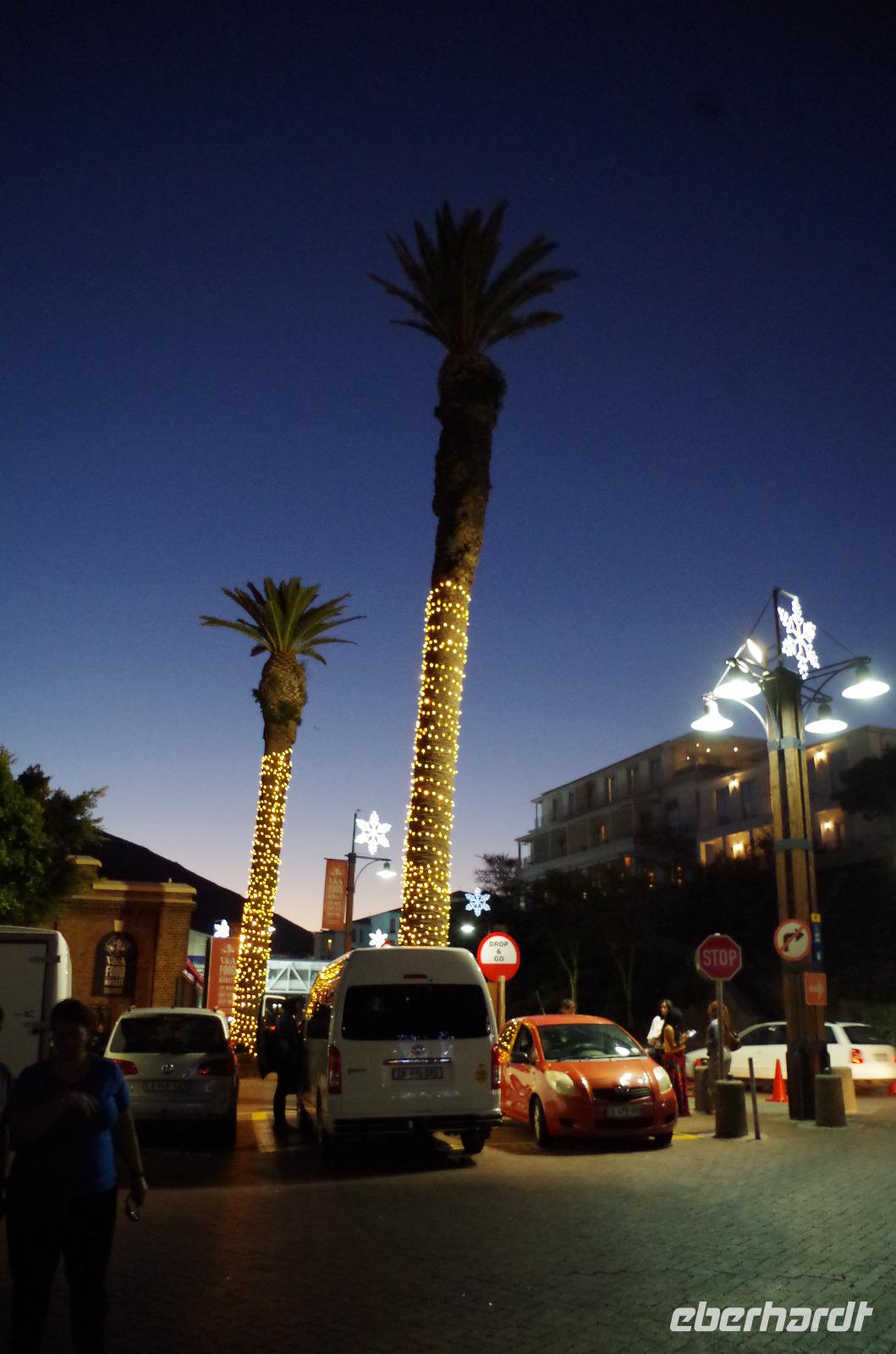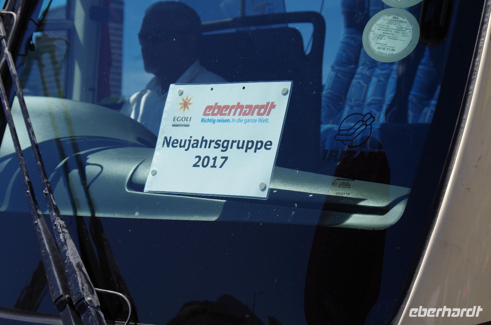 Das Jahr 2017 verabschiedet sich nicht gerade auf angenehme Art und Weise von uns. Der Morgen ist grau und windig, in Kapstadt regnet es. Das sind wirklich keine rosigen Aussichten, aber wir machen wie immer das Beste daraus! Das Frühstück ist abermals ab 06.30 Uhr möglich. Danach heißt es Koffer packen, auschecken und um 09.00 Uhr fahren wir nach Kapstadt. Auf unserem heutigen Plan steht der Besuch des 1913 errichteten Nationalen Botanischen Gartens in Kirstenbosch, welchen wir rund eine Stunde später erreichen. Der Garten steht unter Verwaltung vom South African National Biodiversity Institute, kurz SANBI, und ist mit rund 36 Hektar der größte der zehn nationalen botanischen Gärten. Wir erfahren von Herbie, dass seine Entstehung ins Jahr 1652 zurückzuführen ist. Zu der Zeit hatte der Gouverneur Jan van Riebeeck den Waldbestand überprüfen und rund acht Jahre später eine Schutzmaßnahme sowie Siedlungsgrenze bestehend aus Brombeerhecken und wilden Mandelbäumen errichten lassen. Die Namensgebung ist zurückzuführen auf einen früheren Landwirt mit Namen Jan Frederik Kirsten und dessen Farm Veldhuisen, welche sich vorher an der heutigen Stelle des Botanischen Gartens befunden hatte. Die Hauptaufgabe des Parks besteht darin, die einheimischen südafrikanischen Pflanzen zu kultivieren, zu pflegen und zu erforschen. Am Eingang erhalten wir alle eine Wegbeschreibung und erkunden individuell die schöne Anlage mit den riesigen Bäumen und einzigartigen Pflanzen. Was können wir hier sehen und entdecken? Wer möchte, folgt den "Spuren der Vergangenheit" auf dem rund zwei Kilometer langen "Historischen Pfad", wobei auf die Wegweiser "Heritage Trail" mit den entsprechenden Erklärungen zu achten ist. Weitere Highlights sind der Duftgarten, der Mathews Steingarten, der Erica Garten, der Protea Garten, die Van Riebeeck's Hecke, der Skulpturengarten sowie der Garten der gefährdeten Pflanzen. Zudem befindet sich im Garten das Restaurant "moyo Kirstenbosch" sowie die Kirstenbosch Tee-Stube. Der leichte anhaltende Nieselregen stört uns nicht weiter, es wird sicher noch besser werden ;-) Um 11.30 Uhr treffen wir uns in Eingangsnähe, um ein weiteres Gruppenfoto aufzunehmen. Und nein, es wird nicht das letzte Gruppenfoto sein *grins* Zunächst stoßen wir mit leckerer alkoholhaltiger Schokolade "Anthon Berg Since 1884 Chocolate Liqueurs" auf eine schöne Reise an und anschließend entsteht ein tolles Foto mit Eberhardt Schild. Aber was passiert dann? Durch eine Windböe landet das Schild im nahegelegenen Teich! Hmmm, was nun? Wie bekommen wir das Schild wieder aus dem Teich gefischt? Wir wollen ja schließlich die Umwelt nicht verschmutzen! Alle Versuche, das Schild mit einem Stock herauszuholen, misslingen, so dass die Reisebegleitung die Hosenbeine hochkrempelt und selbst in den Teich steigt. Zum Glück ist sowohl das Wasser als auch die Außentemperatur sehr angenehm. Das Schild ist "gerettet" und ein witziges Foto im Teich im Botanischen Garten von der Reisebegleitung entsteht. Unterhaltsam war die Aktion für die Gäste und auch für die Reisebegleitung allemal ;o) Dann schauen wir uns gemeinsam mit Herbie den eher unscheinbaren Nationalbaum Südafrikas an, den Real Yellowwood "Podocarpus latifolius". Gegen 12.00 Uhr laufen einige Gäste den Skywalk "Centenary Tree Canopy Walkway" mit tollem Blick über den Botanischen Garten entlang. Bevor wir den Garten verlassen, schauen wir uns noch im Souvenirladen um. Um 13.00 Uhr fahren wir weiter ins Zentrum von Kapstadt. Wir besuchen den "The Company's Garden" und gönnen uns einen Kaffee und kleinen Mittagsimbiss im "The Company's Gardens Restaurant". Das Wetter ist zwar immer noch grau und nebelig, aber es hat immerhin mit Regnen aufgehört! Dann fahren wir zum 4-Sterne-Hotel "City Lodge V & A Waterfront", wo wir die nächsten drei Nächte übernachten werden. Wir checken 16.00 Uhr ein und entspannen bis zum Abend. Um 18.00 Uhr treffen wir uns, um gemeinsam zur berühmten "Victoria & Alfred Waterfront" zu spazieren, welche sich nur rund zehn bis fünfzehn Gehminuten vom Hotel entfernt befindet. Hier angekommen verteilt sich die Gruppe. Es gibt eine große Shopping Mall, Souvenirgeschäfte und ein Riesenrad. Die Waterfront eignet sich auch für einen tollen Spaziergang am Hafen entlang. Es ist jedoch zu beachten, dass in Kapstadt ein striktes Alkoholverbot besteht und kleine Handtaschen-Regenschirme können als Gewaltstöcke angesehen werden! Abermals regnet es in Kapstadt. Beim Essen wird uns der Regen aber nicht stören, da wir drinnen im Restaurant unser Menü genießen werden. Um 20.15 Uhr treffen wir uns wieder zum Abendessen an der Victoria & Alfred Waterfront vorm Restaurant "Quay Four: Seafood Restaurant & Tavern", wo unsere Abendveranstaltung stattfinden wird. Wir werden mit einem Glas Champagner empfangen und nehmen die Sitzplätze an zwei großen Tischen für bis zu neun Personen ein. Der Tisch ist schön mit Luftballons und Luftschlangen dekoriert, mitgebracht von der Reisebegleitung aus Deutschland. Das Tischschild von Eberhardt darf da natürlich nicht fehlen! Zum Glück kann das Schild dieses Mal nicht wegfliegen :-) Wir werden mit einem ausgezeichneten Fünf-Gänge-Menü verwöhnt, von leckerem Fisch über eine riesige Portion Fleisch ist für jeden Reisegast etwas dabei. Die Vorspeise besteht aus Burrata, norwegischer Lachs oder Springbock Carpaccio. Zwischen Vor- und Hauptspeise wird uns ein Salat und ein Sorbet gereicht. Bei der Hauptspeise haben wir die Wahl zwischen Meeresfrüchte-Platte, ein vegetarisches Wachtel-Ei-Pilz-Gericht, Straußenfilet oder Prime Rip. Natürlich können wir nicht ohne eine leckere Süßspeise ins Neue Jahr starten, so dass wir als Dessert ein Dreierlei aus Zitronenpudding, einer Art Schwarzwälder Kirschtorte sowie Blaubeereiscreme mit Ingwerschnaps serviert bekommen. Wir unterhalten uns über die vergangenen Tage im alten Jahr und freuen uns auf die kommenden Erlebnisse im neuen Jahr. Die Zei
