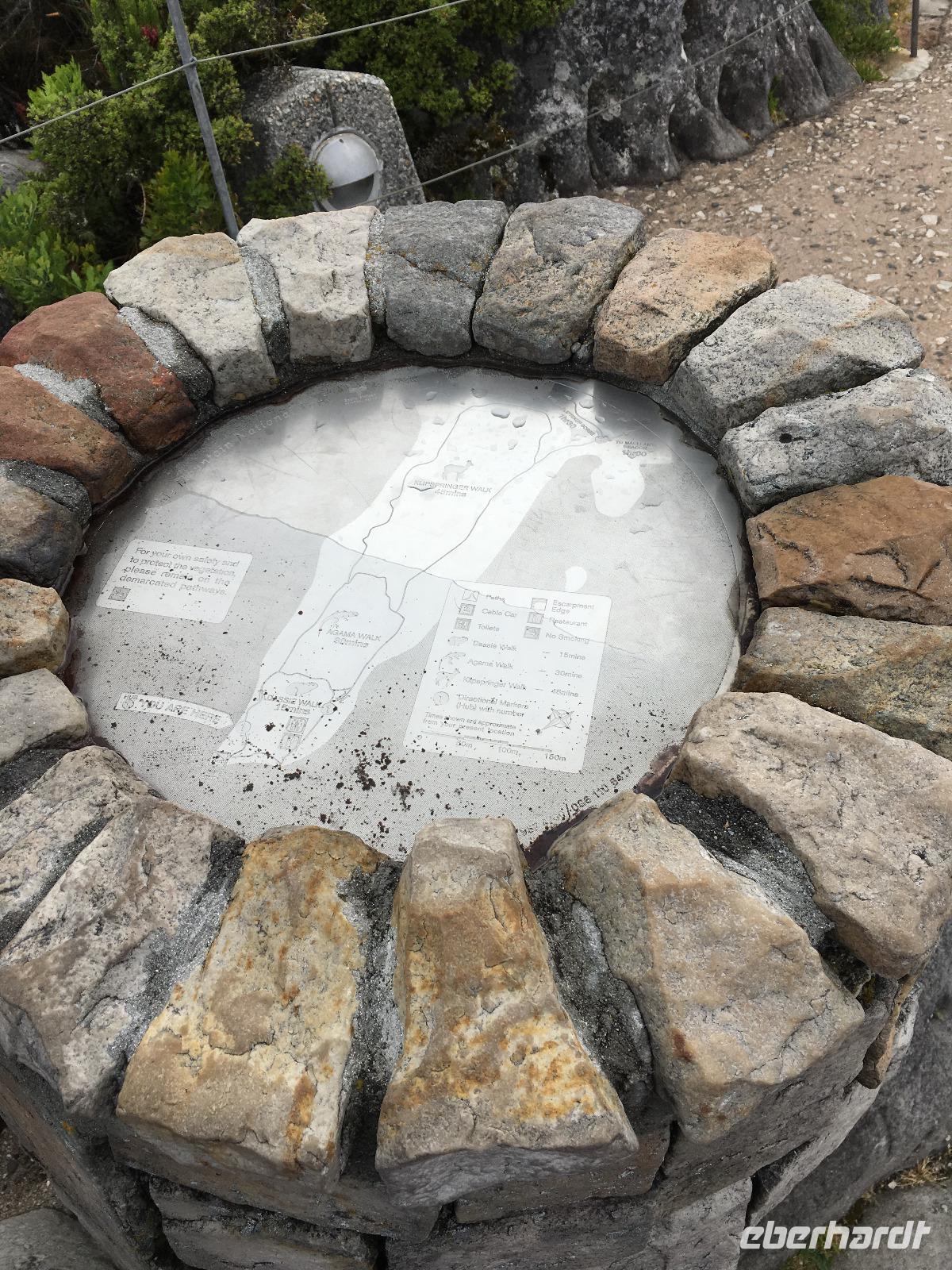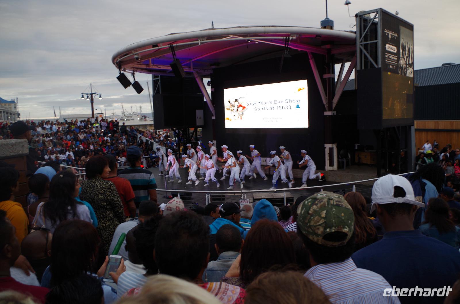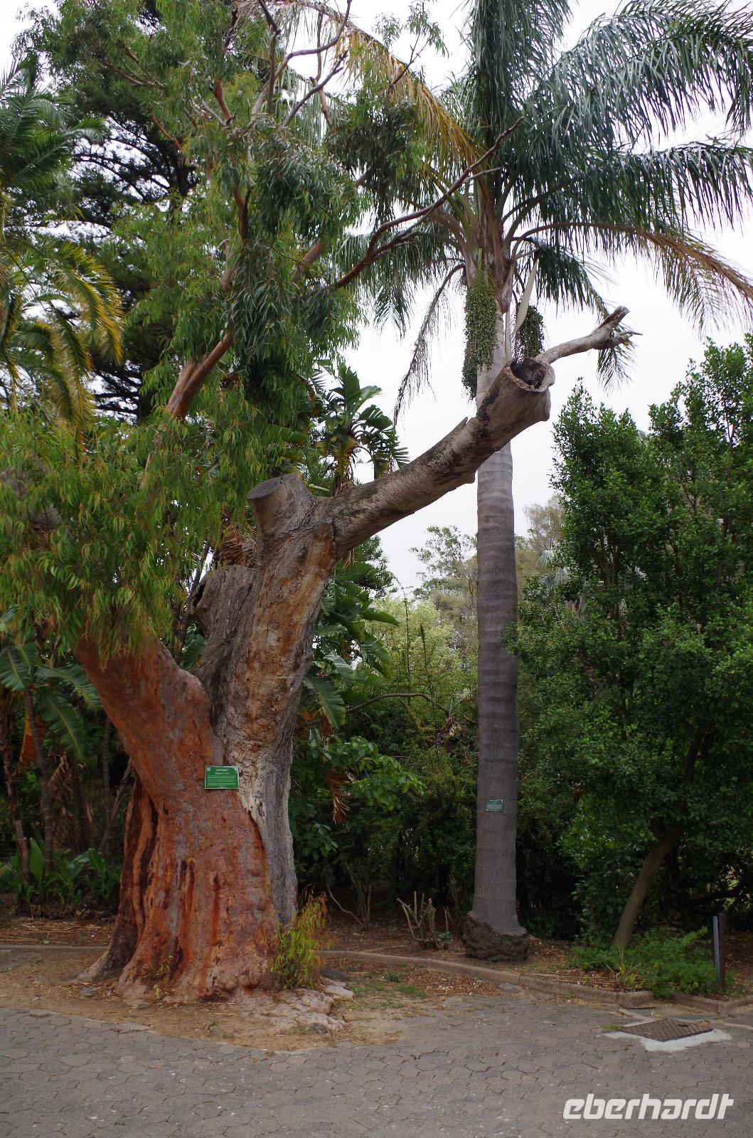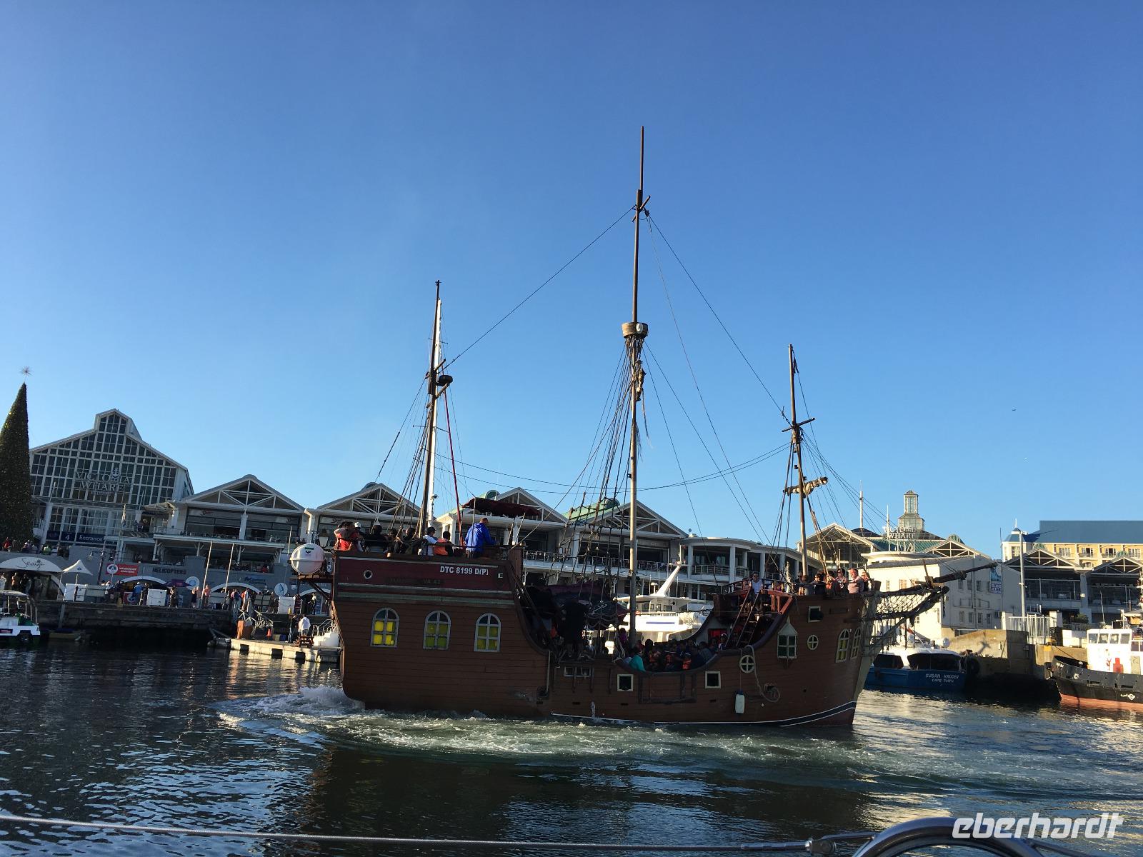 Das Jahr 2017 verabschiedet sich nicht gerade auf angenehme Art und Weise von uns. Der Morgen ist grau und windig, in Kapstadt regnet es. Das sind wirklich keine rosigen Aussichten, aber wir machen wie immer das Beste daraus! Das Frühstück ist abermals ab 06.30 Uhr möglich. Danach heißt es Koffer packen, auschecken und um 09.00 Uhr fahren wir nach Kapstadt. Auf unserem heutigen Plan steht der Besuch des 1913 errichteten Nationalen Botanischen Gartens in Kirstenbosch, welchen wir rund eine Stunde später erreichen. Der Garten steht unter Verwaltung vom South African National Biodiversity Institute, kurz SANBI, und ist mit rund 36 Hektar der größte der zehn nationalen botanischen Gärten. Wir erfahren von Herbie, dass seine Entstehung ins Jahr 1652 zurückzuführen ist. Zu der Zeit hatte der Gouverneur Jan van Riebeeck den Waldbestand überprüfen und rund acht Jahre später eine Schutzmaßnahme sowie Siedlungsgrenze bestehend aus Brombeerhecken und wilden Mandelbäumen errichten lassen. Die Namensgebung ist zurückzuführen auf einen früheren Landwirt mit Namen Jan Frederik Kirsten und dessen Farm Veldhuisen, welche sich vorher an der heutigen Stelle des Botanischen Gartens befunden hatte. Die Hauptaufgabe des Parks besteht darin, die einheimischen südafrikanischen Pflanzen zu kultivieren, zu pflegen und zu erforschen. Am Eingang erhalten wir alle eine Wegbeschreibung und erkunden individuell die schöne Anlage mit den riesigen Bäumen und einzigartigen Pflanzen. Was können wir hier sehen und entdecken? Wer möchte, folgt den "Spuren der Vergangenheit" auf dem rund zwei Kilometer langen "Historischen Pfad", wobei auf die Wegweiser "Heritage Trail" mit den entsprechenden Erklärungen zu achten ist. Weitere Highlights sind der Duftgarten, der Mathews Steingarten, der Erica Garten, der Protea Garten, die Van Riebeeck's Hecke, der Skulpturengarten sowie der Garten der gefährdeten Pflanzen. Zudem befindet sich im Garten das Restaurant "moyo Kirstenbosch" sowie die Kirstenbosch Tee-Stube. Der leichte anhaltende Nieselregen stört uns nicht weiter, es wird sicher noch besser werden ;-) Um 11.30 Uhr treffen wir uns in Eingangsnähe, um ein weiteres Gruppenfoto aufzunehmen. Und nein, es wird nicht das letzte Gruppenfoto sein *grins* Zunächst stoßen wir mit leckerer alkoholhaltiger Schokolade "Anthon Berg Since 1884 Chocolate Liqueurs" auf eine schöne Reise an und anschließend entsteht ein tolles Foto mit Eberhardt Schild. Aber was passiert dann? Durch eine Windböe landet das Schild im nahegelegenen Teich! Hmmm, was nun? Wie bekommen wir das Schild wieder aus dem Teich gefischt? Wir wollen ja schließlich die Umwelt nicht verschmutzen! Alle Versuche, das Schild mit einem Stock herauszuholen, misslingen, so dass die Reisebegleitung die Hosenbeine hochkrempelt und selbst in den Teich steigt. Zum Glück ist sowohl das Wasser als auch die Außentemperatur sehr angenehm. Das Schild ist "gerettet" und ein witziges Foto im Teich im Botanischen Garten von der Reisebegleitung entsteht. Unterhaltsam war die Aktion für die Gäste und auch für die Reisebegleitung allemal ;o) Dann schauen wir uns gemeinsam mit Herbie den eher unscheinbaren Nationalbaum Südafrikas an, den Real Yellowwood "Podocarpus latifolius". Gegen 12.00 Uhr laufen einige Gäste den Skywalk "Centenary Tree Canopy Walkway" mit tollem Blick über den Botanischen Garten entlang. Bevor wir den Garten verlassen, schauen wir uns noch im Souvenirladen um. Um 13.00 Uhr fahren wir weiter ins Zentrum von Kapstadt. Wir besuchen den "The Company's Garden" und gönnen uns einen Kaffee und kleinen Mittagsimbiss im "The Company's Gardens Restaurant". Das Wetter ist zwar immer noch grau und nebelig, aber es hat immerhin mit Regnen aufgehört! Dann fahren wir zum 4-Sterne-Hotel "City Lodge V & A Waterfront", wo wir die nächsten drei Nächte übernachten werden. Wir checken 16.00 Uhr ein und entspannen bis zum Abend. Um 18.00 Uhr treffen wir uns, um gemeinsam zur berühmten "Victoria & Alfred Waterfront" zu spazieren, welche sich nur rund zehn bis fünfzehn Gehminuten vom Hotel entfernt befindet. Hier angekommen verteilt sich die Gruppe. Es gibt eine große Shopping Mall, Souvenirgeschäfte und ein Riesenrad. Die Waterfront eignet sich auch für einen tollen Spaziergang am Hafen entlang. Es ist jedoch zu beachten, dass in Kapstadt ein striktes Alkoholverbot besteht und kleine Handtaschen-Regenschirme können als Gewaltstöcke angesehen werden! Abermals regnet es in Kapstadt. Beim Essen wird uns der Regen aber nicht stören, da wir drinnen im Restaurant unser Menü genießen werden. Um 20.15 Uhr treffen wir uns wieder zum Abendessen an der Victoria & Alfred Waterfront vorm Restaurant "Quay Four: Seafood Restaurant & Tavern", wo unsere Abendveranstaltung stattfinden wird. Wir werden mit einem Glas Champagner empfangen und nehmen die Sitzplätze an zwei großen Tischen für bis zu neun Personen ein. Der Tisch ist schön mit Luftballons und Luftschlangen dekoriert, mitgebracht von der Reisebegleitung aus Deutschland. Das Tischschild von Eberhardt darf da natürlich nicht fehlen! Zum Glück kann das Schild dieses Mal nicht wegfliegen :-) Wir werden mit einem ausgezeichneten Fünf-Gänge-Menü verwöhnt, von leckerem Fisch über eine riesige Portion Fleisch ist für jeden Reisegast etwas dabei. Die Vorspeise besteht aus Burrata, norwegischer Lachs oder Springbock Carpaccio. Zwischen Vor- und Hauptspeise wird uns ein Salat und ein Sorbet gereicht. Bei der Hauptspeise haben wir die Wahl zwischen Meeresfrüchte-Platte, ein vegetarisches Wachtel-Ei-Pilz-Gericht, Straußenfilet oder Prime Rip. Natürlich können wir nicht ohne eine leckere Süßspeise ins Neue Jahr starten, so dass wir als Dessert ein Dreierlei aus Zitronenpudding, einer Art Schwarzwälder Kirschtorte sowie Blaubeereiscreme mit Ingwerschnaps serviert bekommen. Wir unterhalten uns über die vergangenen Tage im alten Jahr und freuen uns auf die kommenden Erlebnisse im neuen Jahr. Die Zei